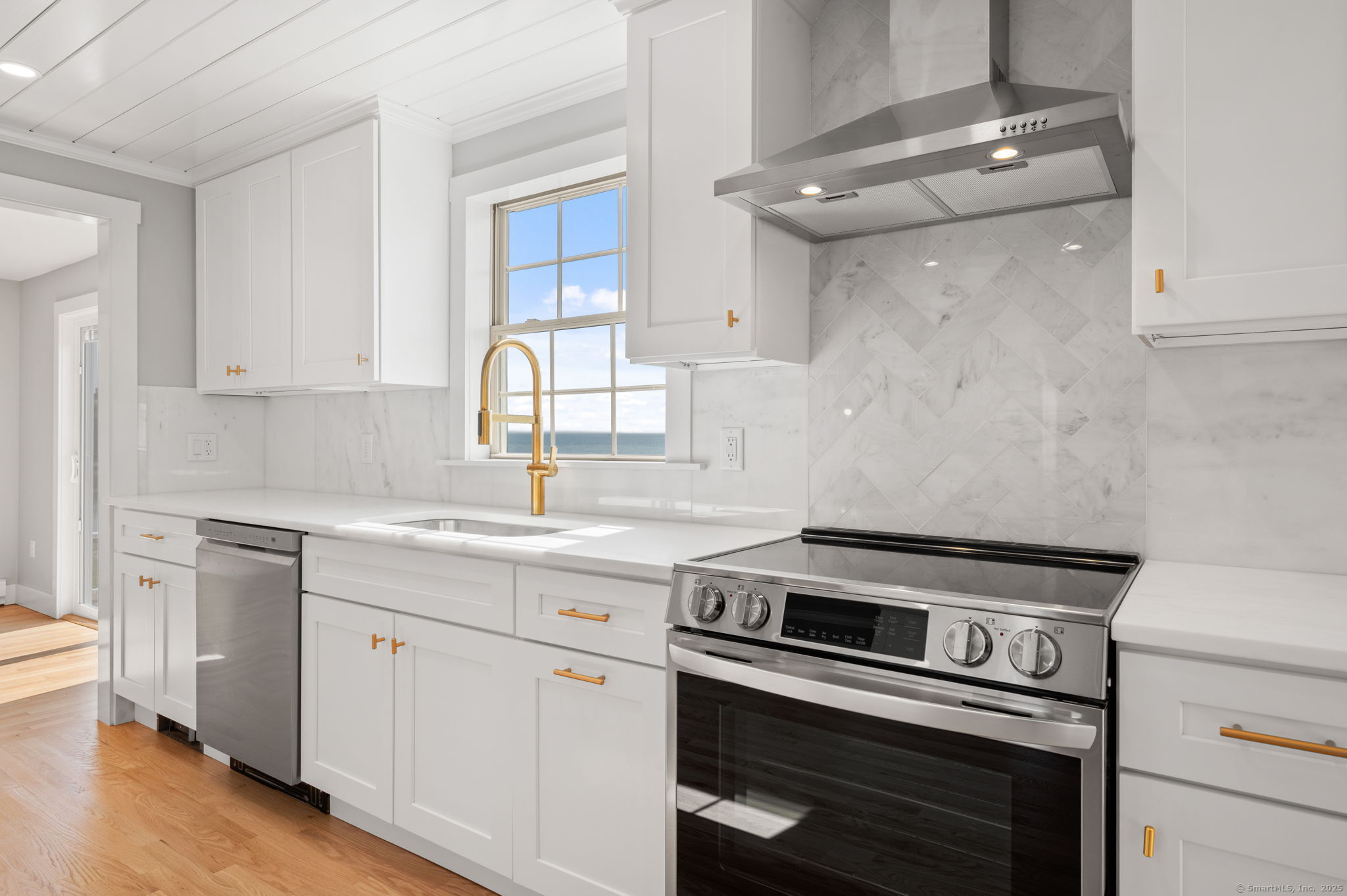 Picture this: you wake and step onto the beach for a morning of swimming, fishing, and sunbathing. You walk down the street for a mid-day grinder before an afternoon of golf around the corner, a quick drive to Niantic village for dinner, and back home for an evening drink on the back deck while enjoying panoramic sunset views. This can be your new lifestyle at 25 Division St, a beautifully remodeled 3/4 bedroom Cape offering a year-round waterfront vista & DIRECT ACCESS to Jordan Cove & the LI Sound. Inside, the herringbone tiled foyer opens to the family room with a fireplace for colder nights, & a slider leading onto the custom multi-level Mahogany deck overlooking the Sound. The open concept gourmet kitchen features soft-close cabinetry, marble counters & backsplash, stainless steel appliances, & large pantry for added storage. Refinished gleaming hardwoods flow through the main level, which is finished with a full bath including a stand-up tiled shower for washing off the sand, & a one-car garage. Upstairs are 2 well-appointed bedrooms and another full bath featuring a shower/tub combo with custom ocean-blue tile surround. The primary bedroom also leads to a large dormered 21'x16' unfinished space which could eventually complete your primary en-suite with a full bath & walk-in closet (among other options). To top it off, the full basement is partially finished with laundry area, 2 large finished/heated rooms for a rec room, office space, or bedroom, & a workshop area.