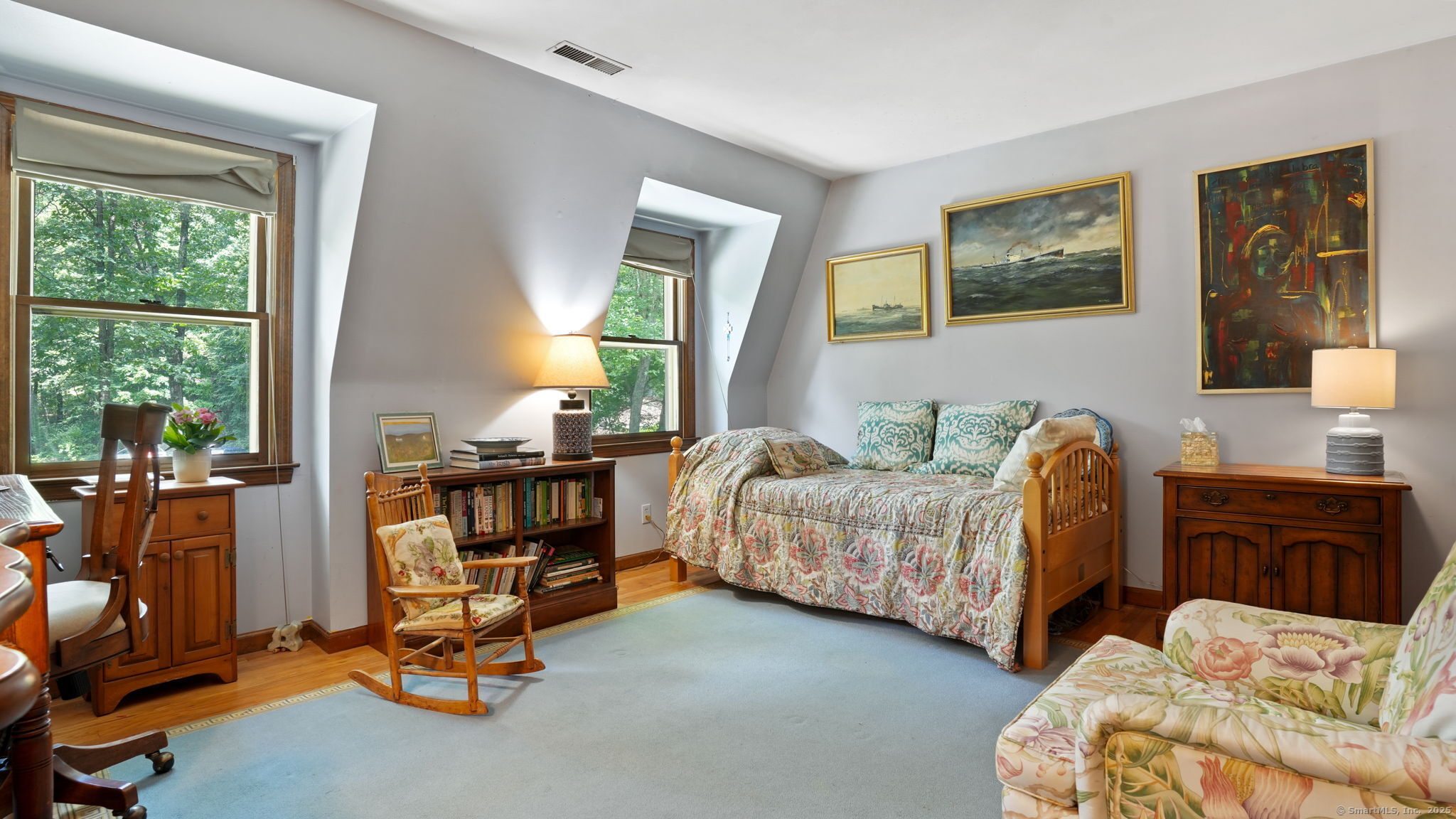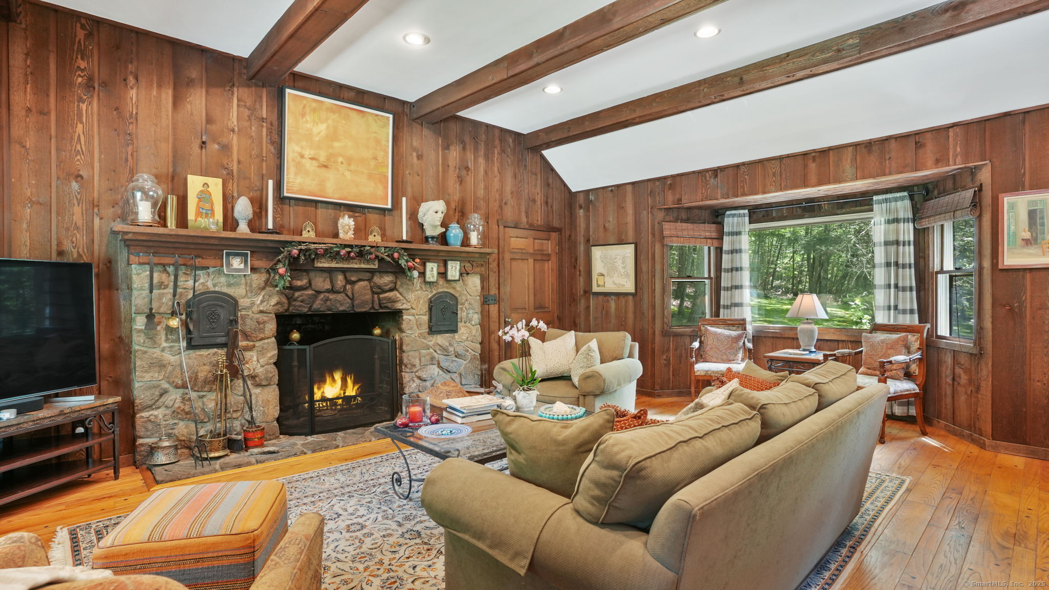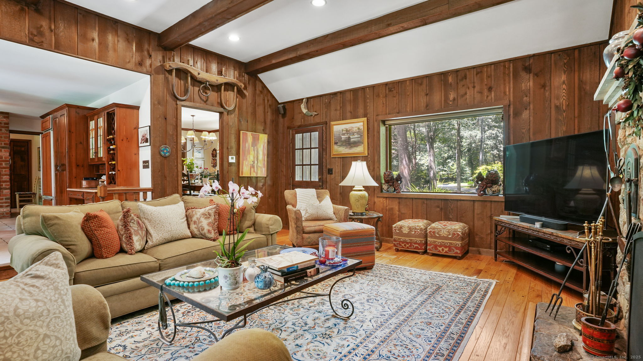 Tucked away at the end of a serene cul-de-sac, abutting protected land, is this timeless forever home. As you approach this immaculate property be wowed but the welcoming curb appeal, the casual elegance, and the natural beauty of the setting. Step inside and feel the warm embrace and Old World European charm of this inviting home. It features a traditional center hall colonial layout, but is not a cookie-cutter home by any means. The front to back living room feels like a country estate with its real wood-paneled wall, stately hearth, and French doors to the screened porch. The oversized dining room is wonderful a place to gather. The heart of the home is the open concept eat-in kitchen/family room featuring an oversized stone hearth with Dutch ovens, vaulted ceiling, exposed beams, exposed brick, sub-zero fridge, mudroom, half bath, & laundry. Upstairs retreat to the tranquil primary suite with walk-in closet, dressing room, & updated bath. 3 more spacious bedrooms and a hall bath complete the 2nd floor. The center bedroom is being used as a well-designed home office with view of the front circular driveway. The studio apartment over the 3 car garage with its kitchen, full bath, & 3rd fireplace is ideal for home office, in-law, adult kids, nanny, & more. The bright and airy finished walkout LL features hardwood floors and a 4th charming brick fireplace - plus a ton of storage. Enjoy the privacy of the sweeping back yard with beautiful views from the deck.