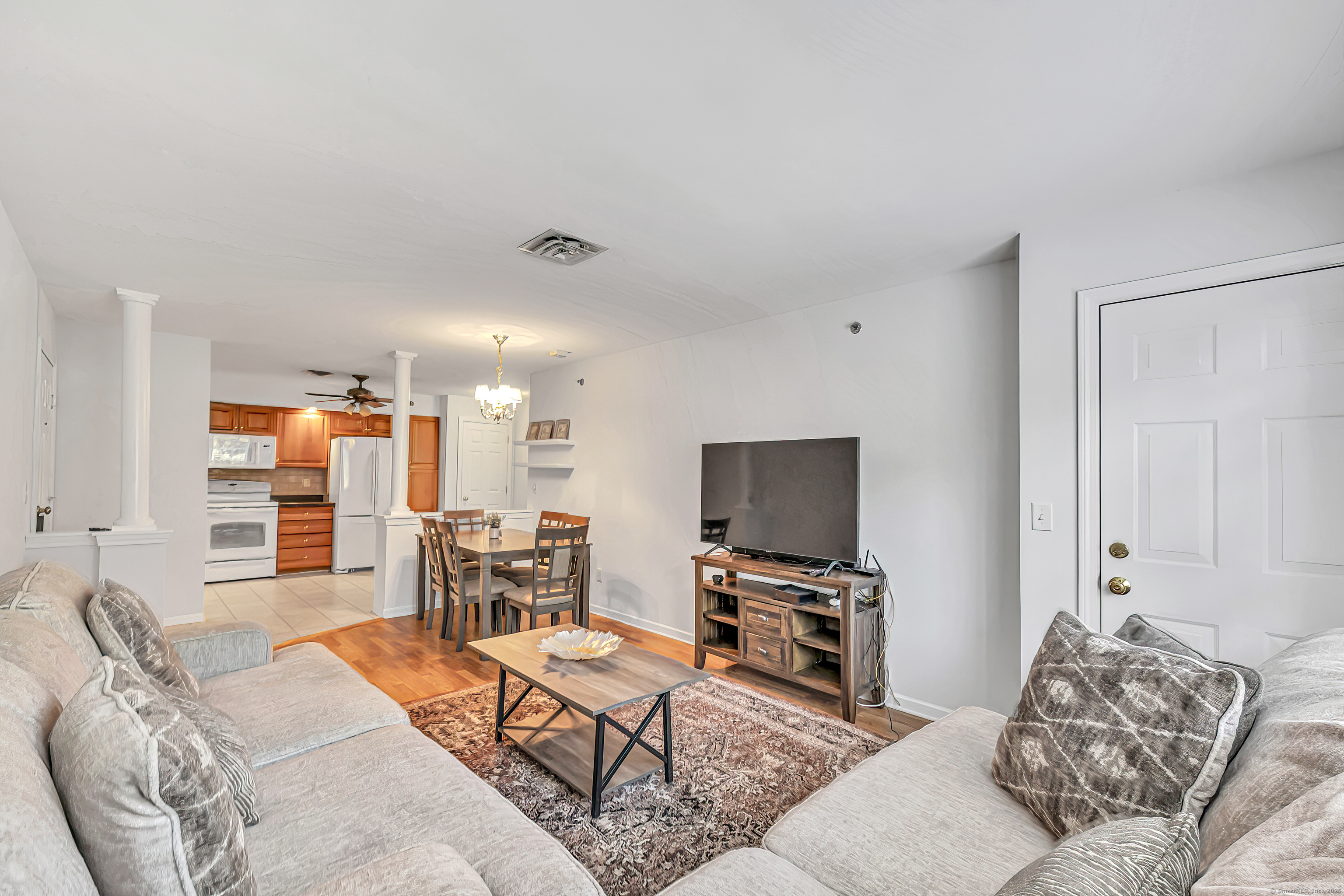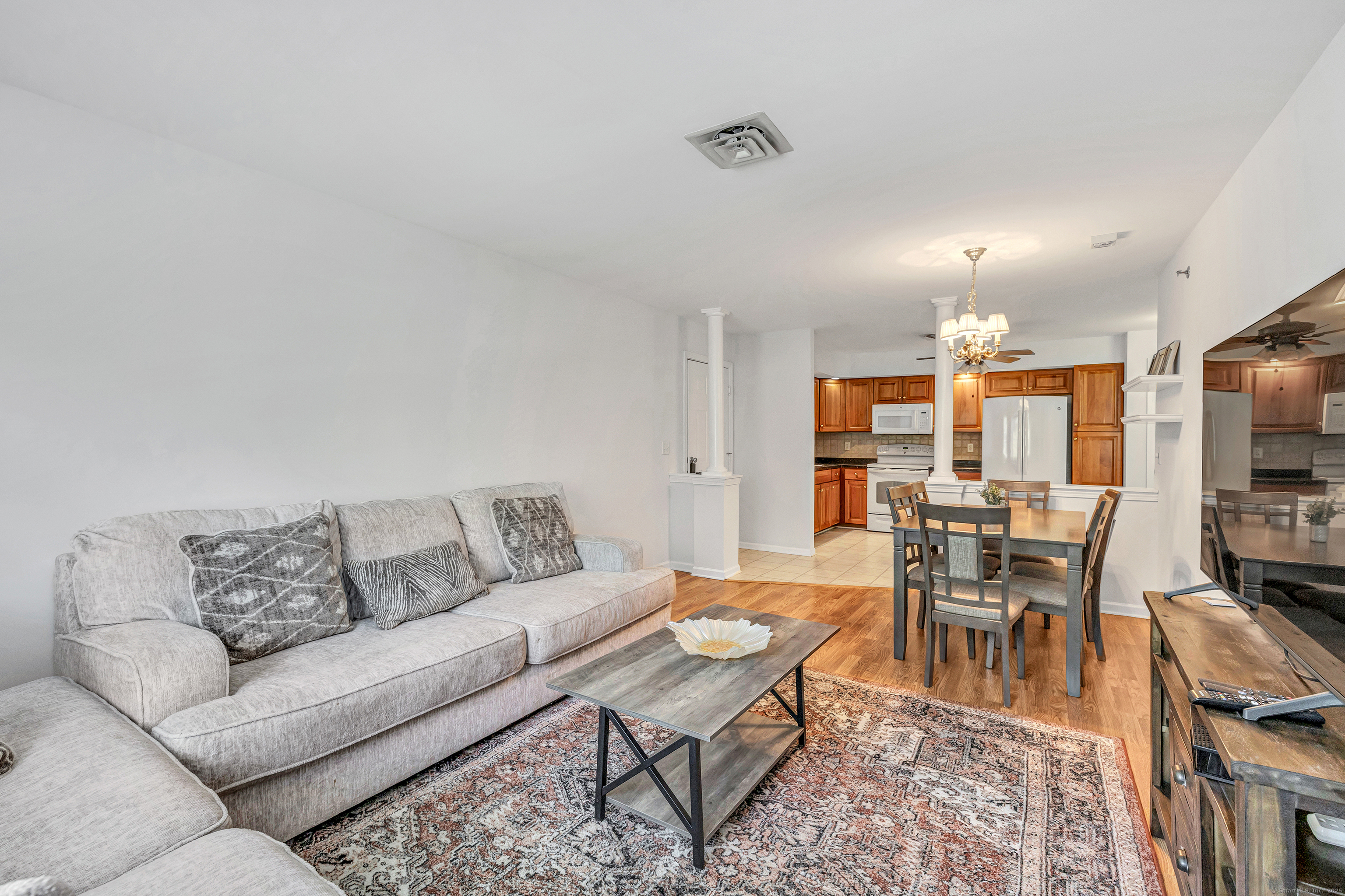 Welcome to life at Tashua Terrace, a friendly and affordable 55+ community designed for comfort and ease! This charming, freshly painted unit is maintenance-free ranch-style unit offers effortless one-level living with a warm, open layout. The spacious living room features wood-look Pergo floors and opens to a private balcony-perfect for your morning coffee or evening unwind. The eat-in kitchen is fully equipped with appliances, a pantry, and easy-care tile flooring. The large main bedroom includes a full bath and walk-in closet, while the second bedroom and full hall bath with laundry add convenience and flexibility. Additional features include a dedicated basement storage space, an under-unit 1-car garage, and a newer hot water heater. Unit has been freshly painted and features new bathroom vanities! Set in a great central Trumbull location, this home is just minutes from restaurants, shopping, parks, town amenities, and easy highway access. Enjoy the best of low-maintenance living in a wonderful community!