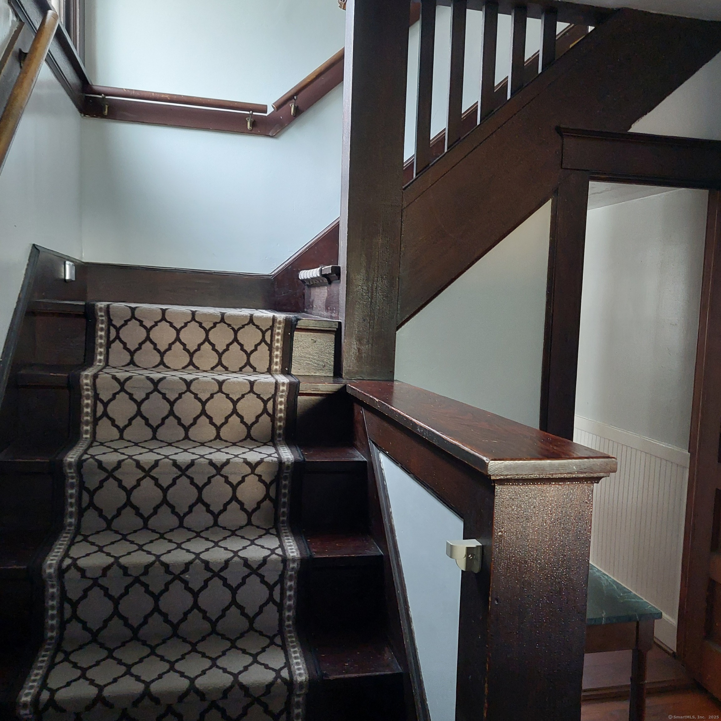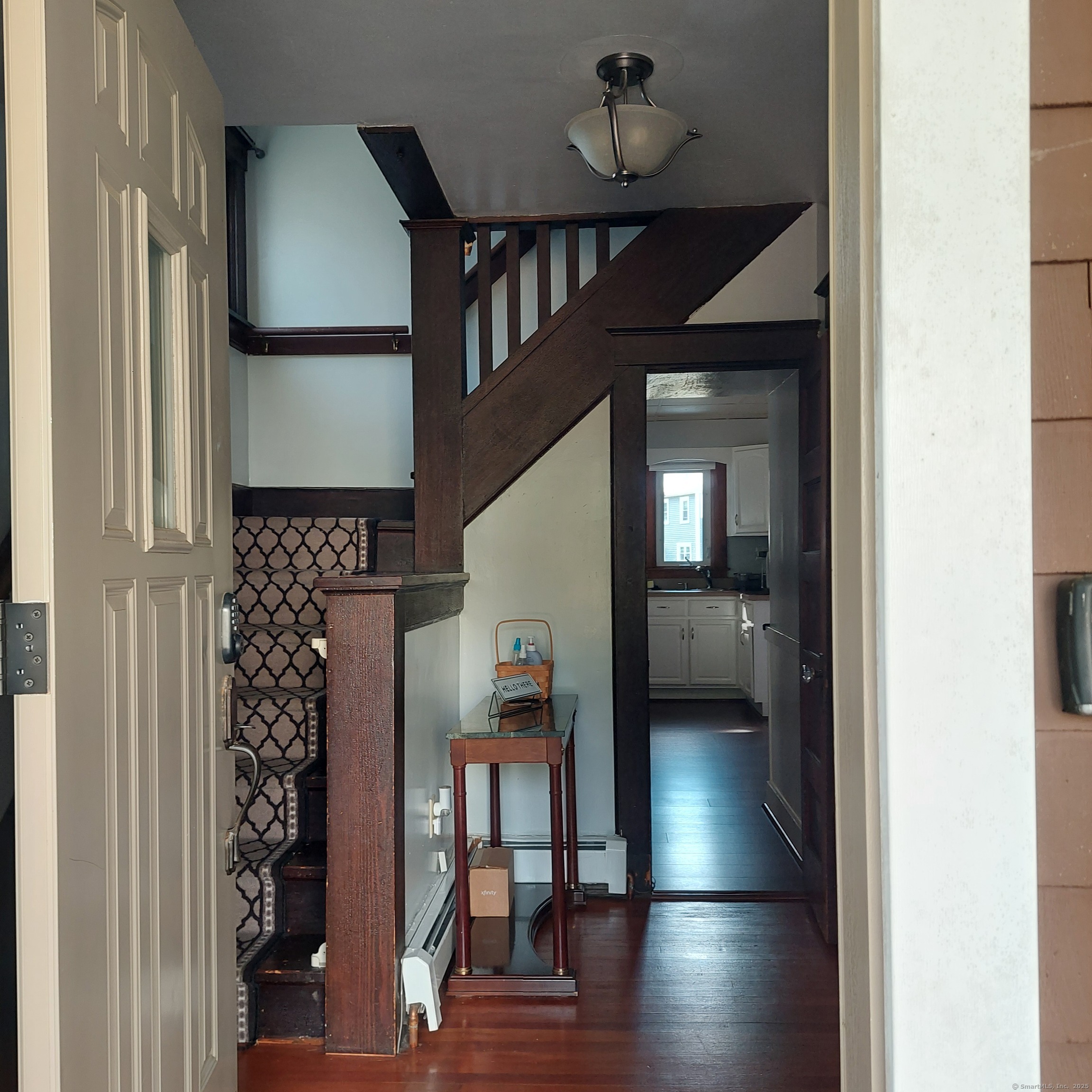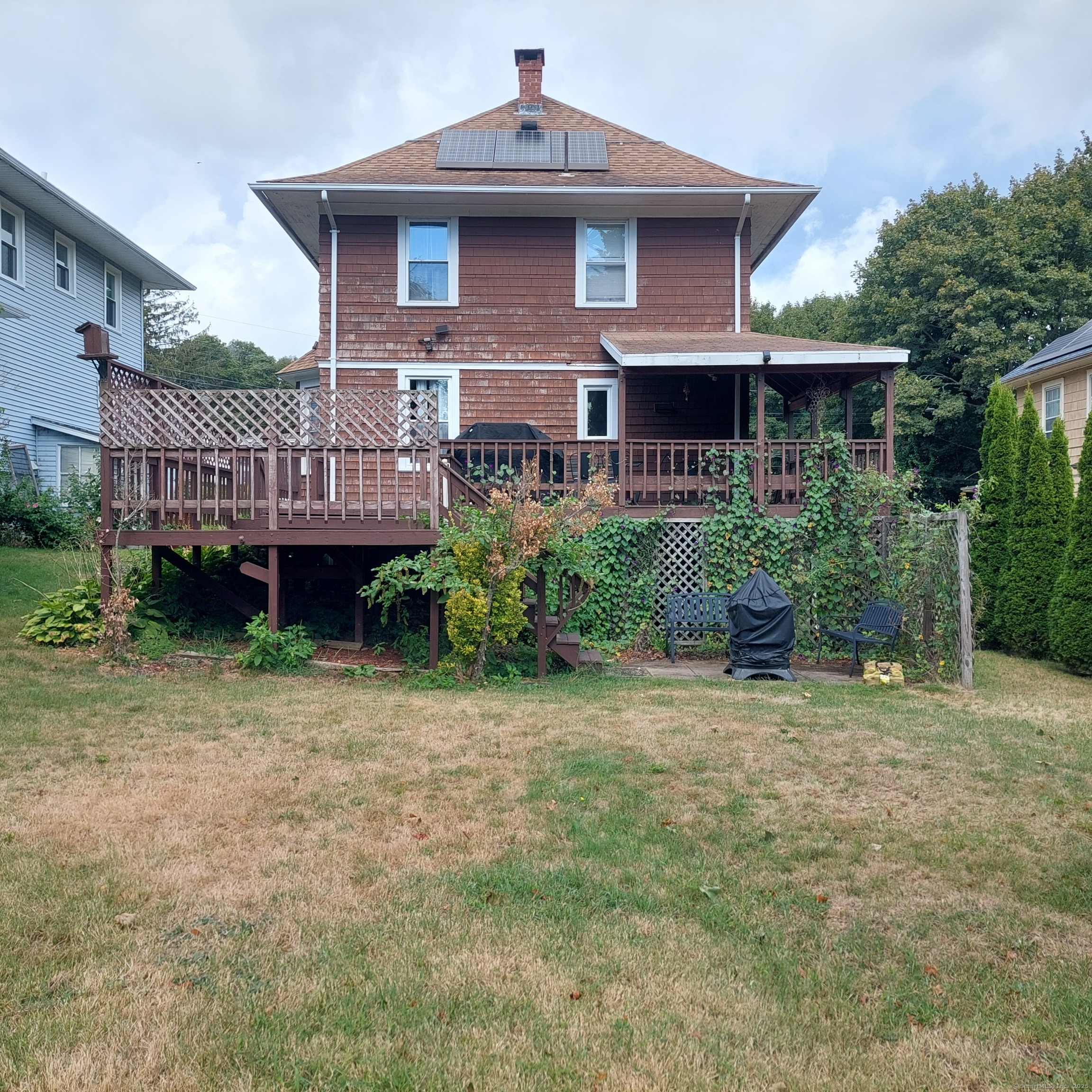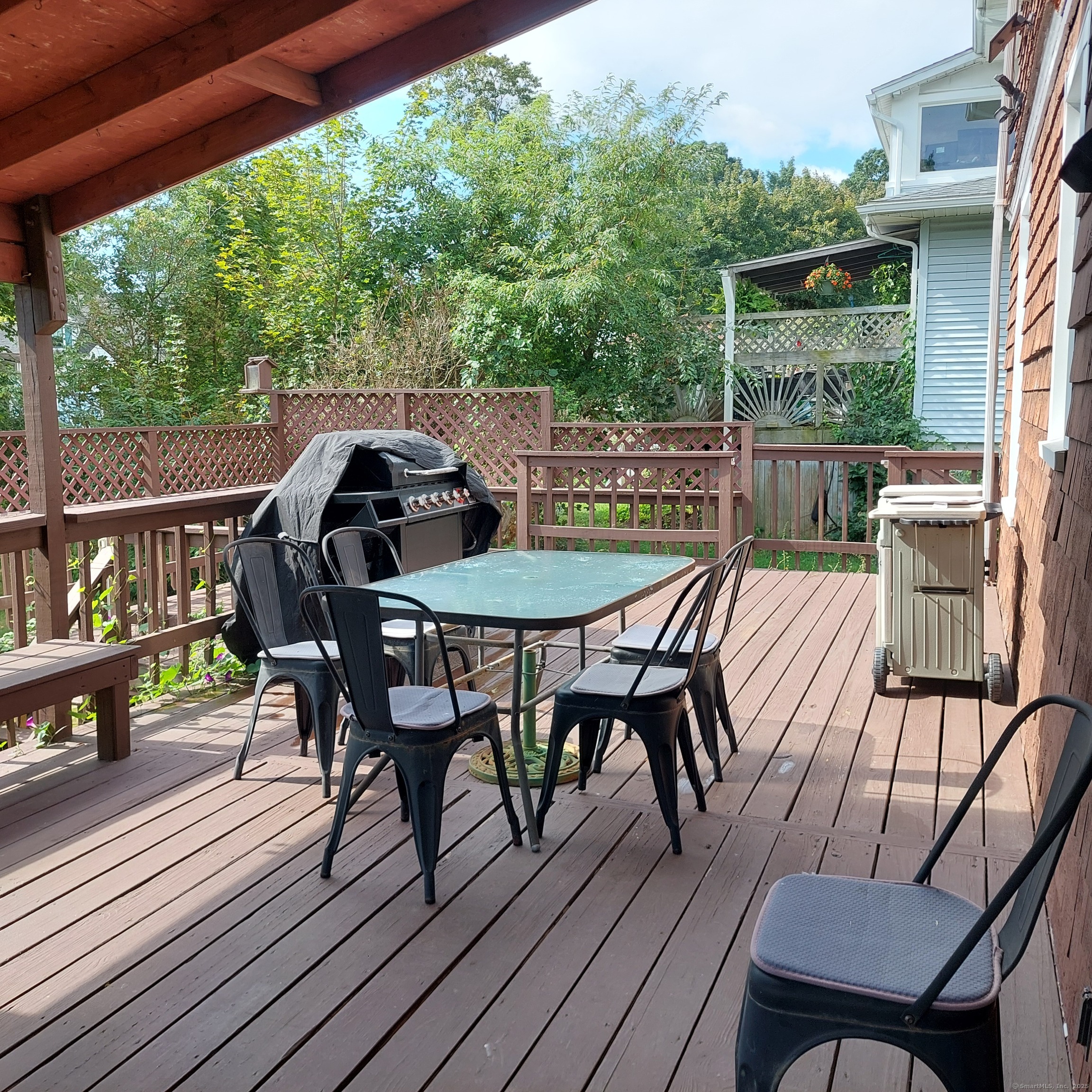 The welcoming foyer of this lovely Arts and Crafts era, 'Four Square' style home is stunning. Original trim, beautiful hardwood floors, grand open casements in the living room lead to a lovely formal dining room with a classic built in hutch, so well preserved. The updated eat-in kitchen has plenty of light, and a gas range! and it connects directly to a spacious outdoor deck, partially covered, so you can sit with your morning coffee and enjoy it in any weather. And if you are a 'porch dweller', this home has a front porch that won't disappoint! The upper floor has three bedrooms, all with hardwood floors and an updated bath. But wait! There's more! the walk up attic has plenty of storage and a lot of potential. The list goes on, but you'll just have to come see it all for yourself!