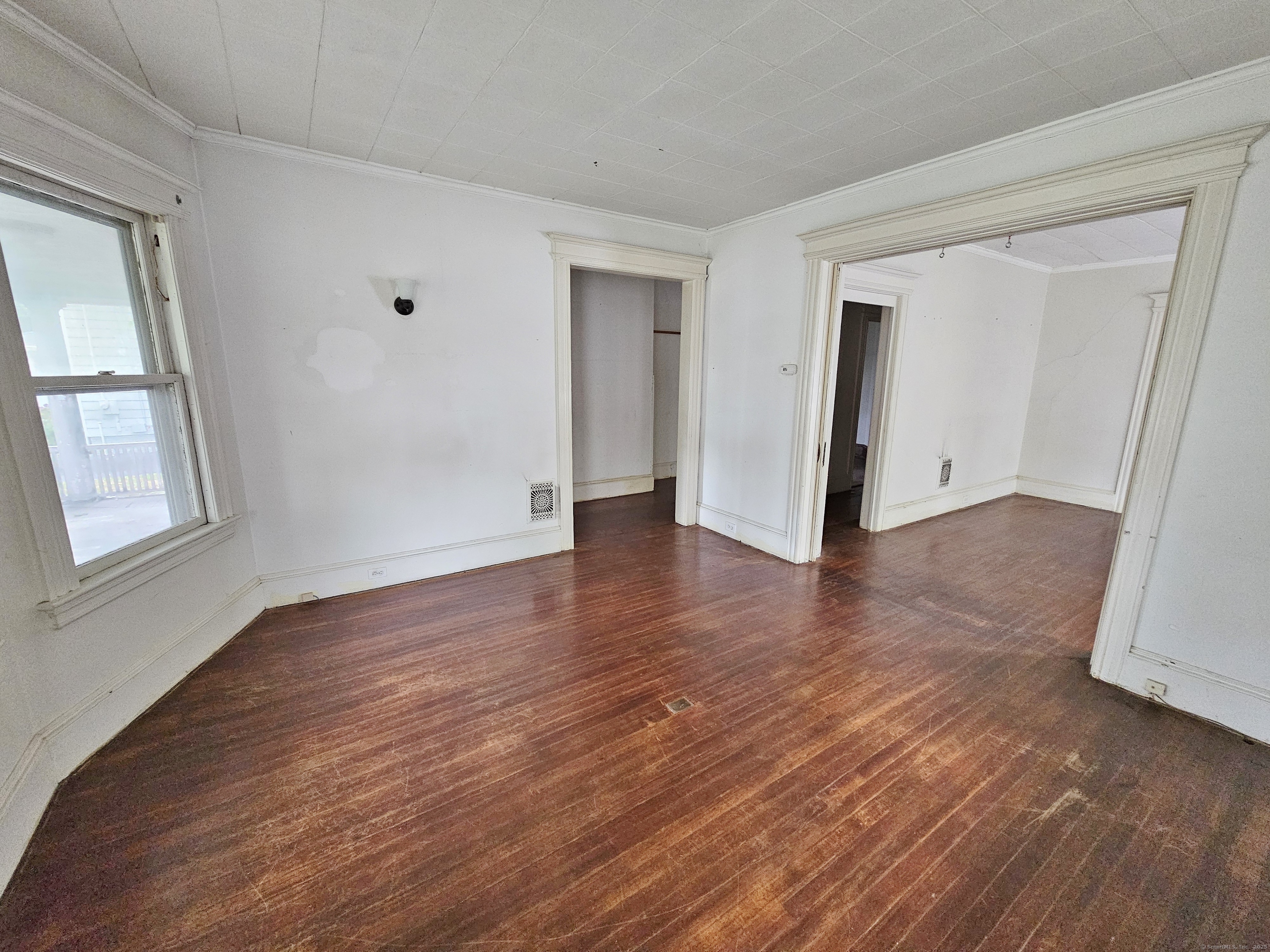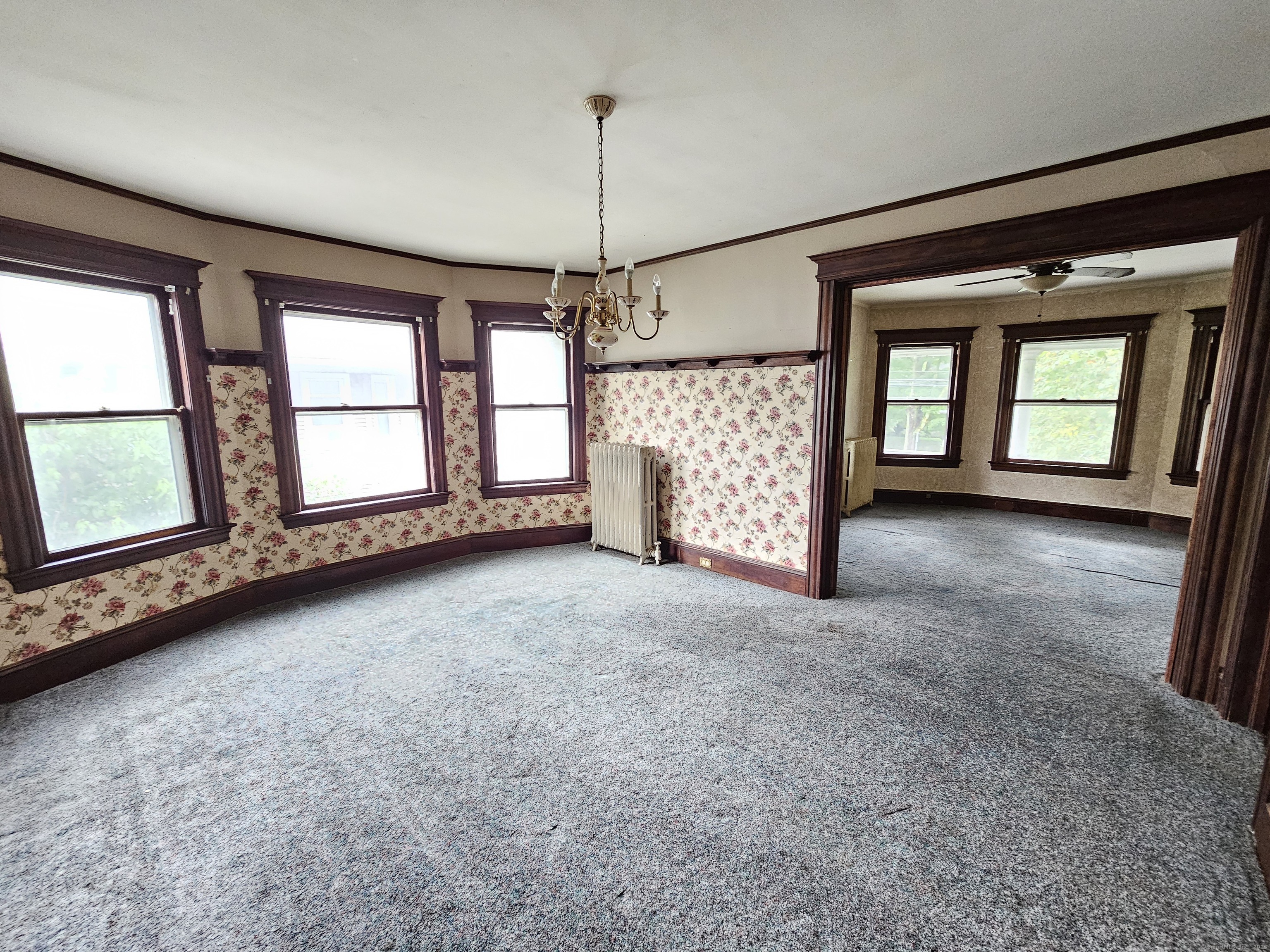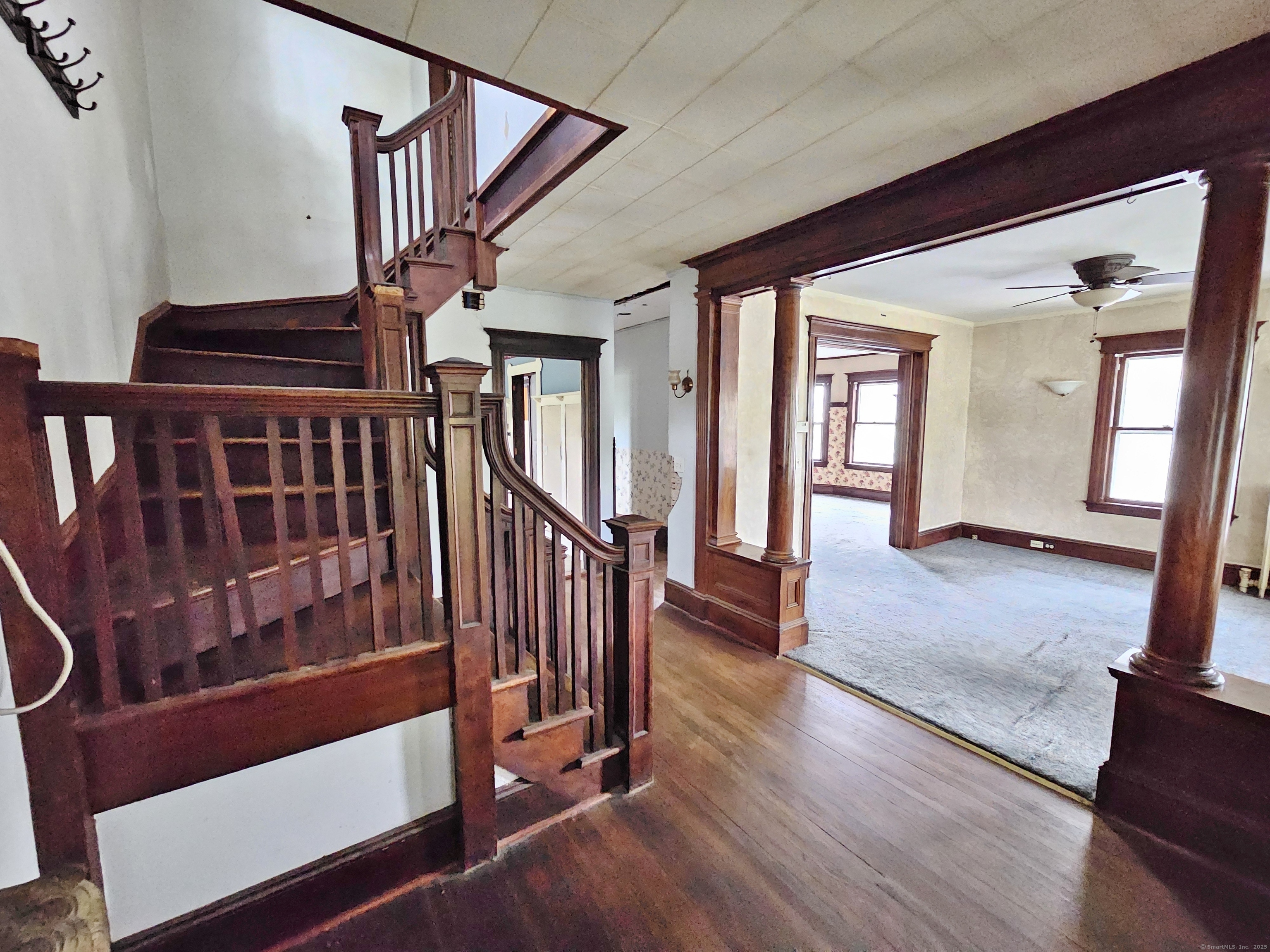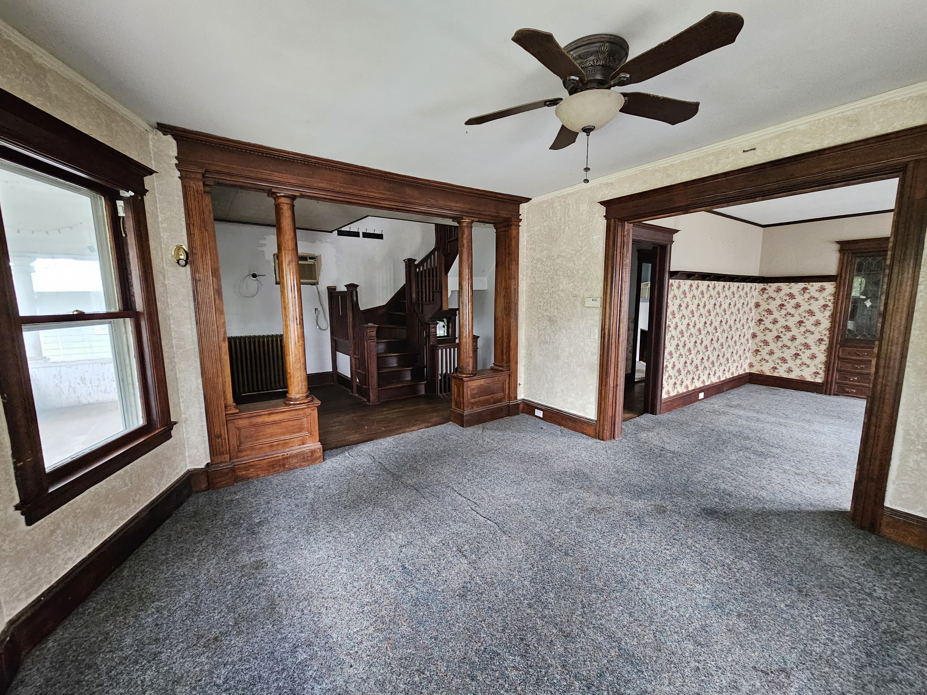 For serious investors and seasoned owner-occupants, a substantial opportunity awaits. Located directly on Main Street in Stratford, this property boasts a deep, expansive lot in addition to a generous carriage house, offering considerable potential for outdoor amenities or expansion. With a "Very Walkable" score of 76, most daily errands can be accomplished on foot, and the property is also conveniently situated near the Stratford train station, providing easy access for commuters. The home itself is a blank canvas for a complete rehabilitation, featuring high ceilings, oversized rooms, and a wealth of original details like stained woodwork, moldings, plaster work, and columns. The first-floor unit contains five rooms, including a living room, dining room, kitchen, butler's pantry, two bedrooms, and a full bath. The second unit shares a similar layout on its main level but expands into a finished third floor with three additional bedrooms and two full baths. Due to its current condition, this property requires significant work and is suited for a rehab loan or cash purchase. A creative investor may also explore the potential for a three-family conversion, pending verification with building and zoning departments. This property is being sold strictly "as is."