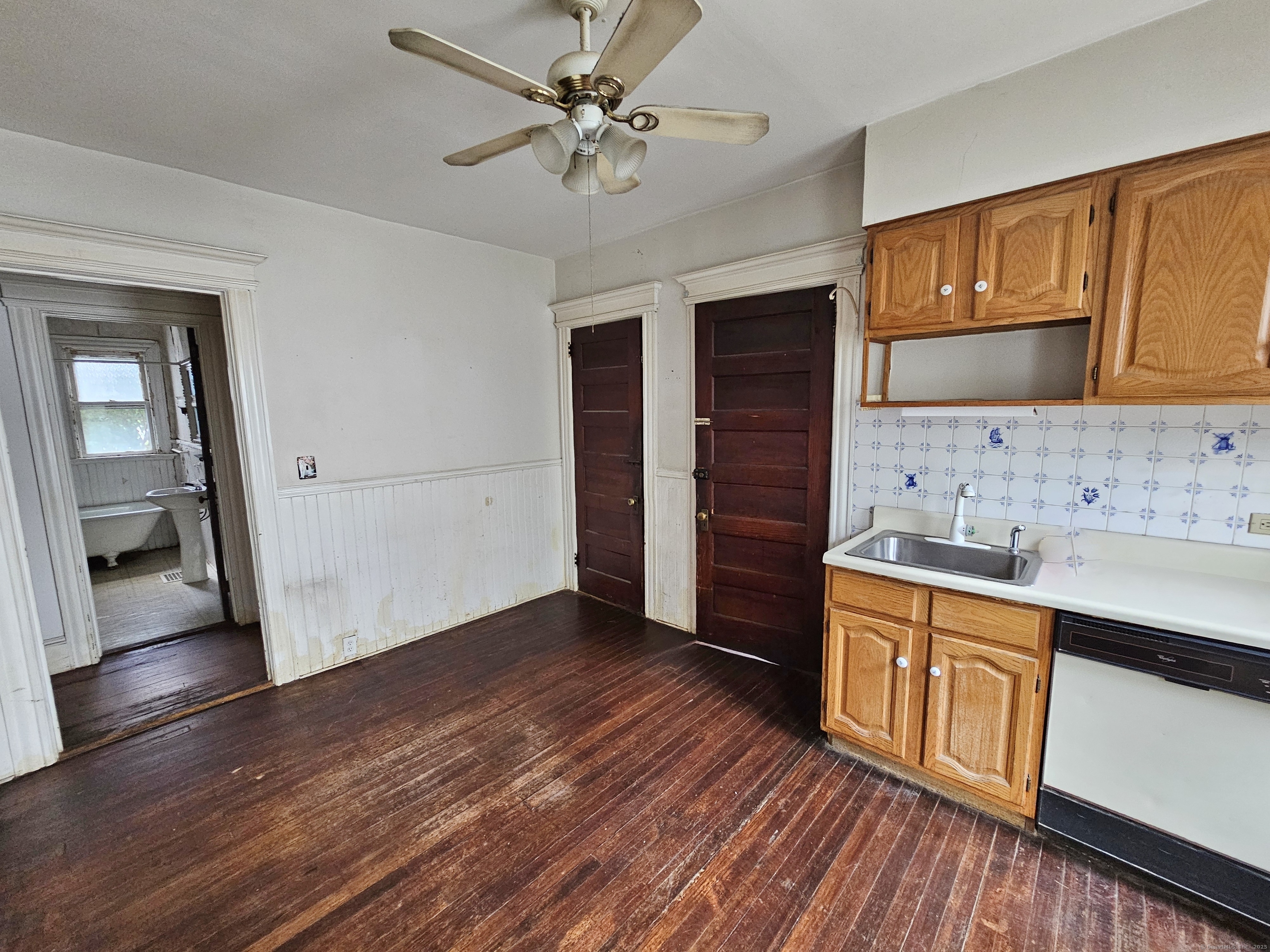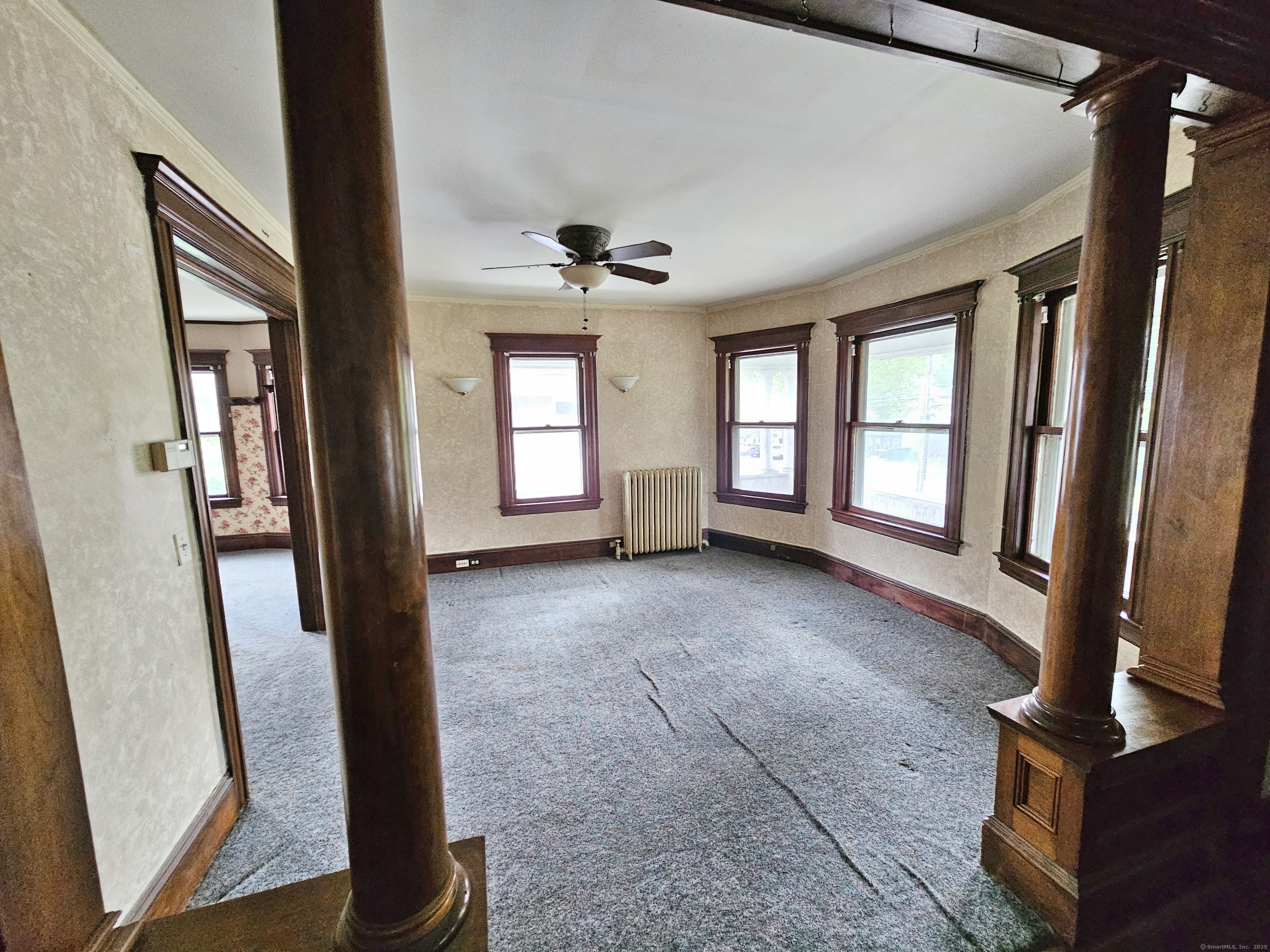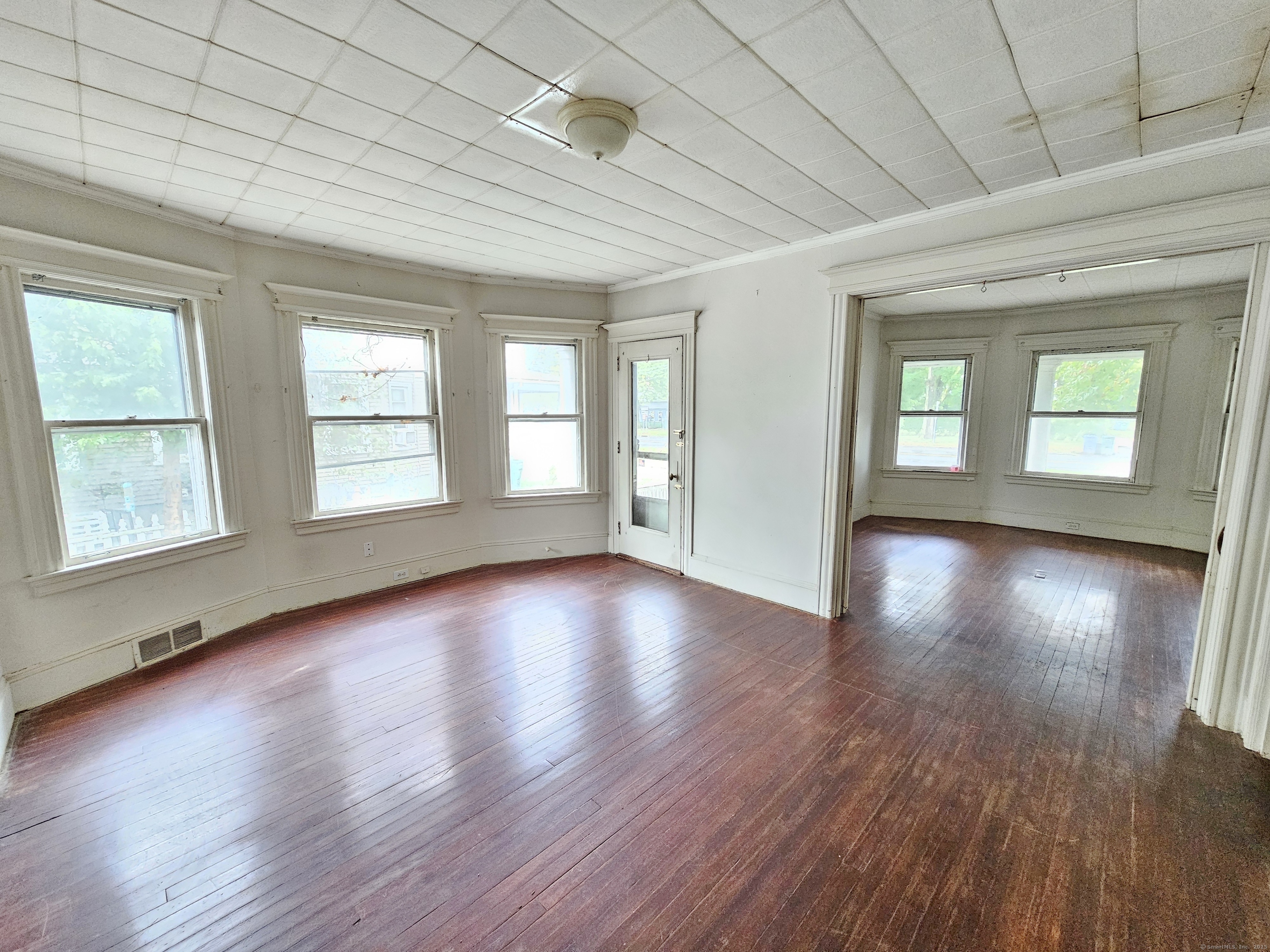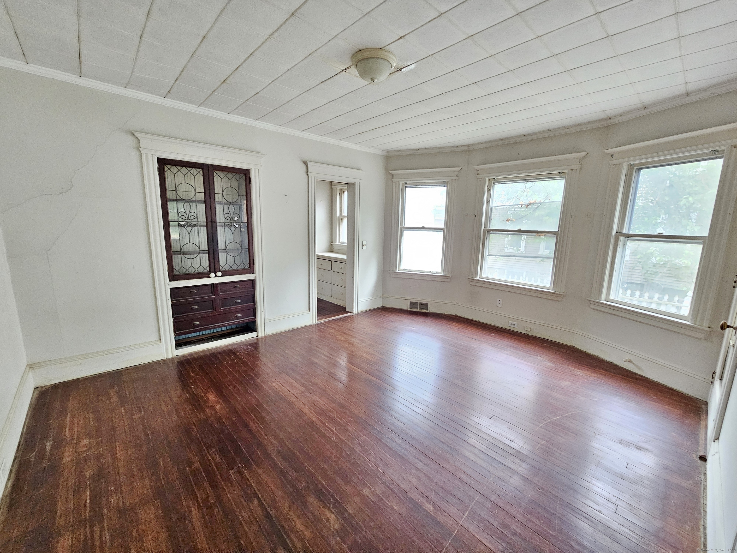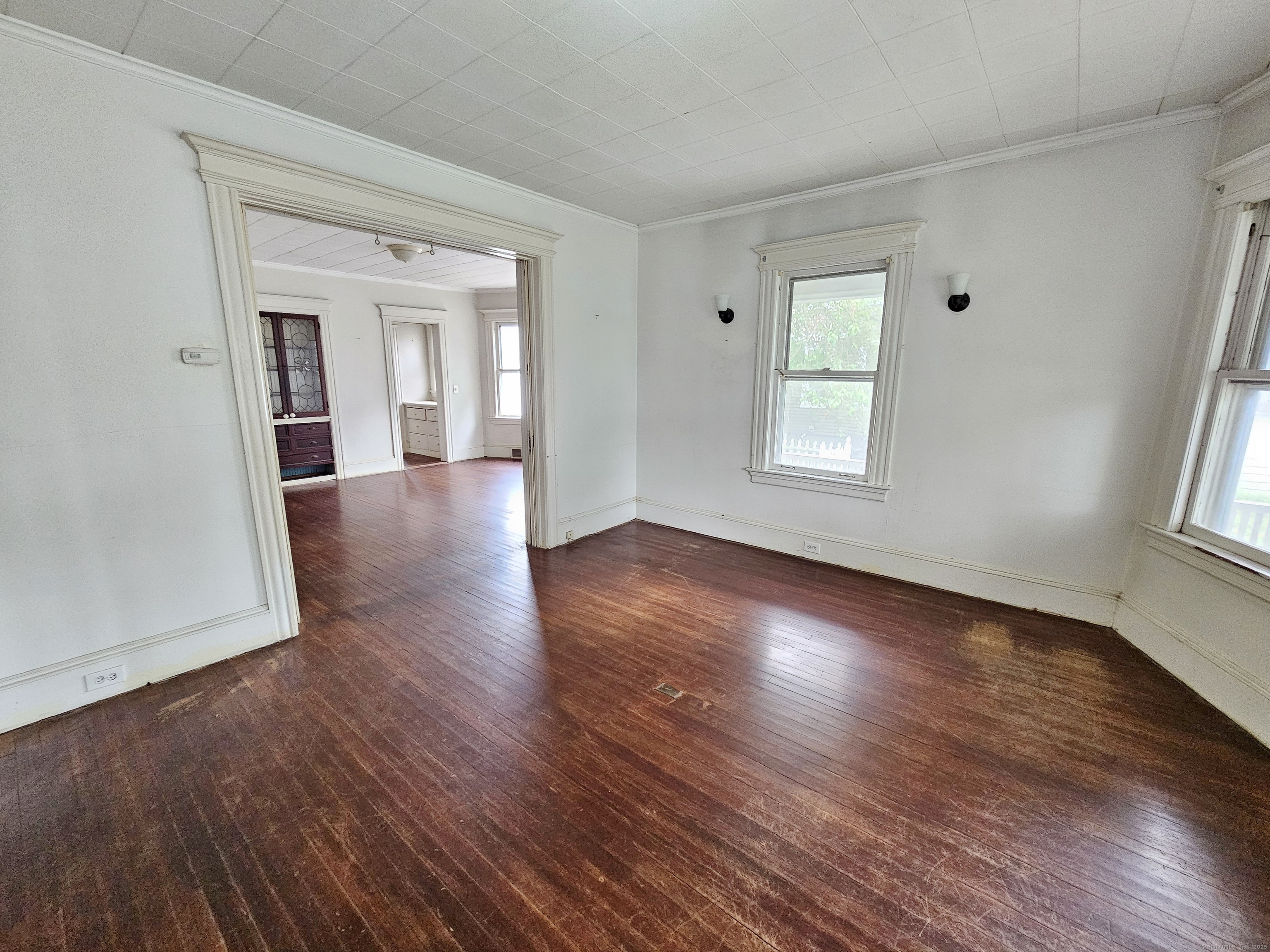 For serious investors and seasoned owner-occupants, a substantial opportunity awaits. Located directly on Main Street in Stratford, this property boasts a deep, expansive lot in addition to a generous carriage house, offering considerable potential for outdoor amenities or expansion. With a "Very Walkable" score of 76, most daily errands can be accomplished on foot, and the property is also conveniently situated near the Stratford train station, providing easy access for commuters. The home itself is a blank canvas for a complete rehabilitation, featuring high ceilings, oversized rooms, and a wealth of original details like stained woodwork, moldings, plaster work, and columns. The first-floor unit contains five rooms, including a living room, dining room, kitchen, butler's pantry, two bedrooms, and a full bath. The second unit shares a similar layout on its main level but expands into a finished third floor with three additional bedrooms and two full baths. Due to its current condition, this property requires significant work and is suited for a rehab loan or cash purchase. A creative investor may also explore the potential for a three-family conversion, pending verification with building and zoning departments. This property is being sold strictly "as is."