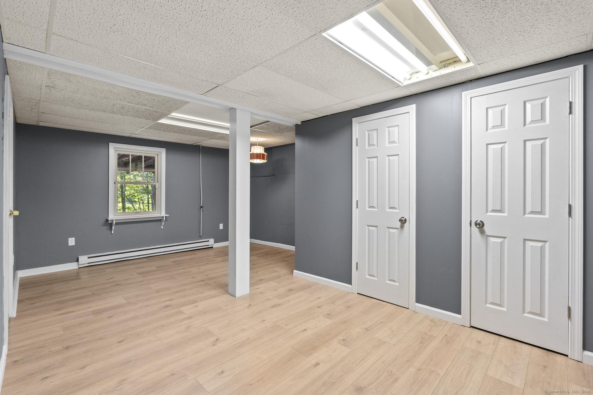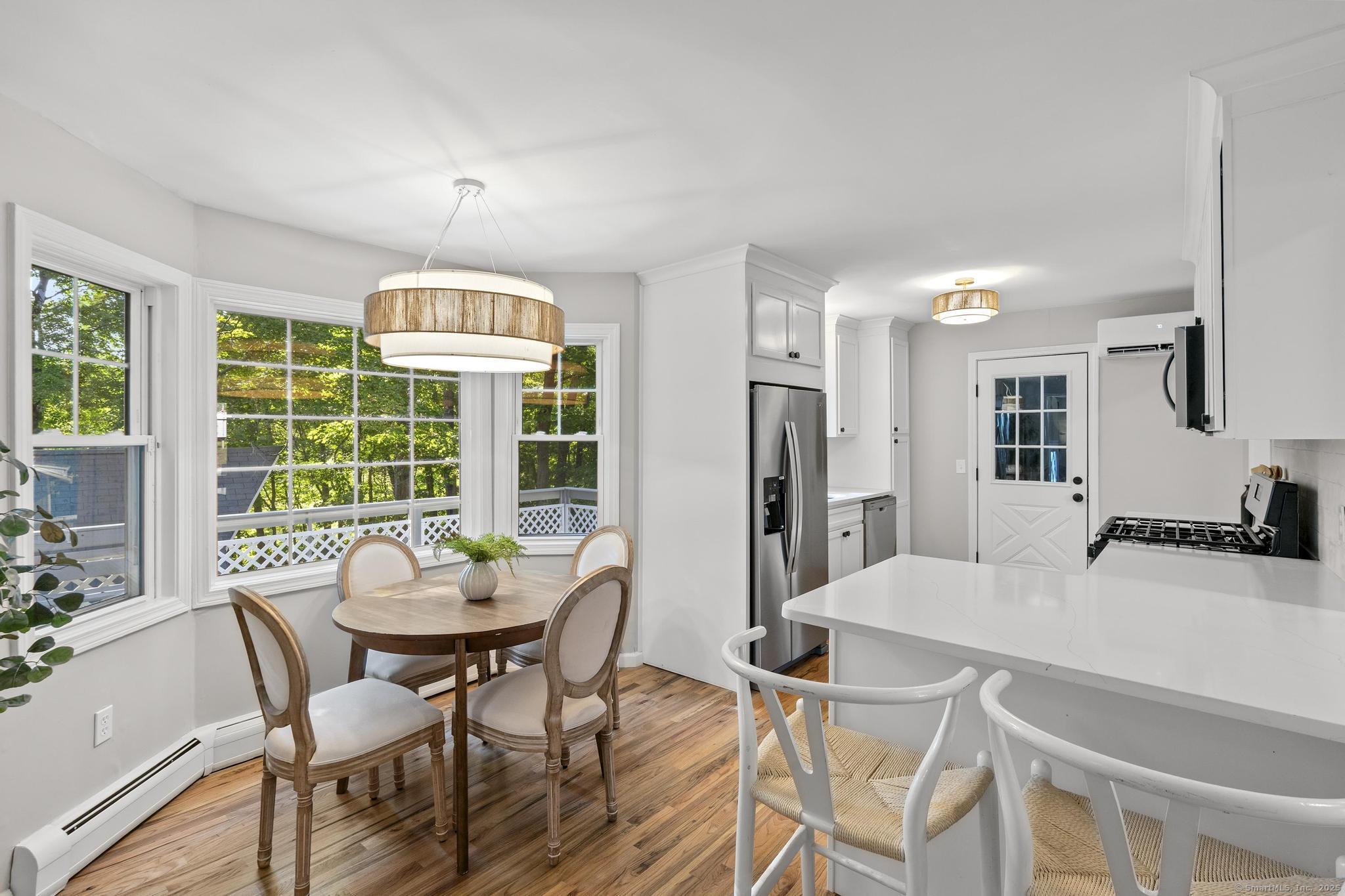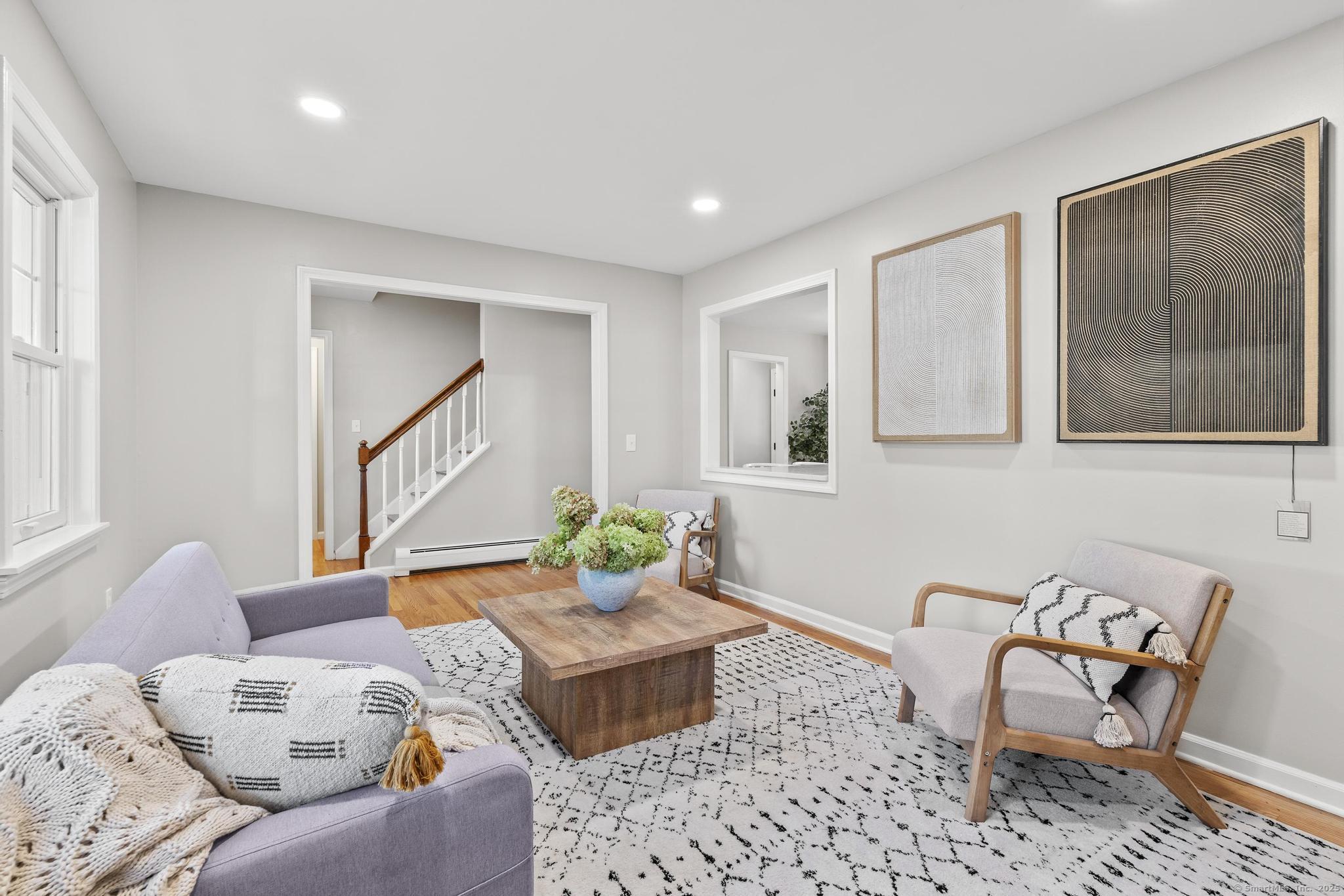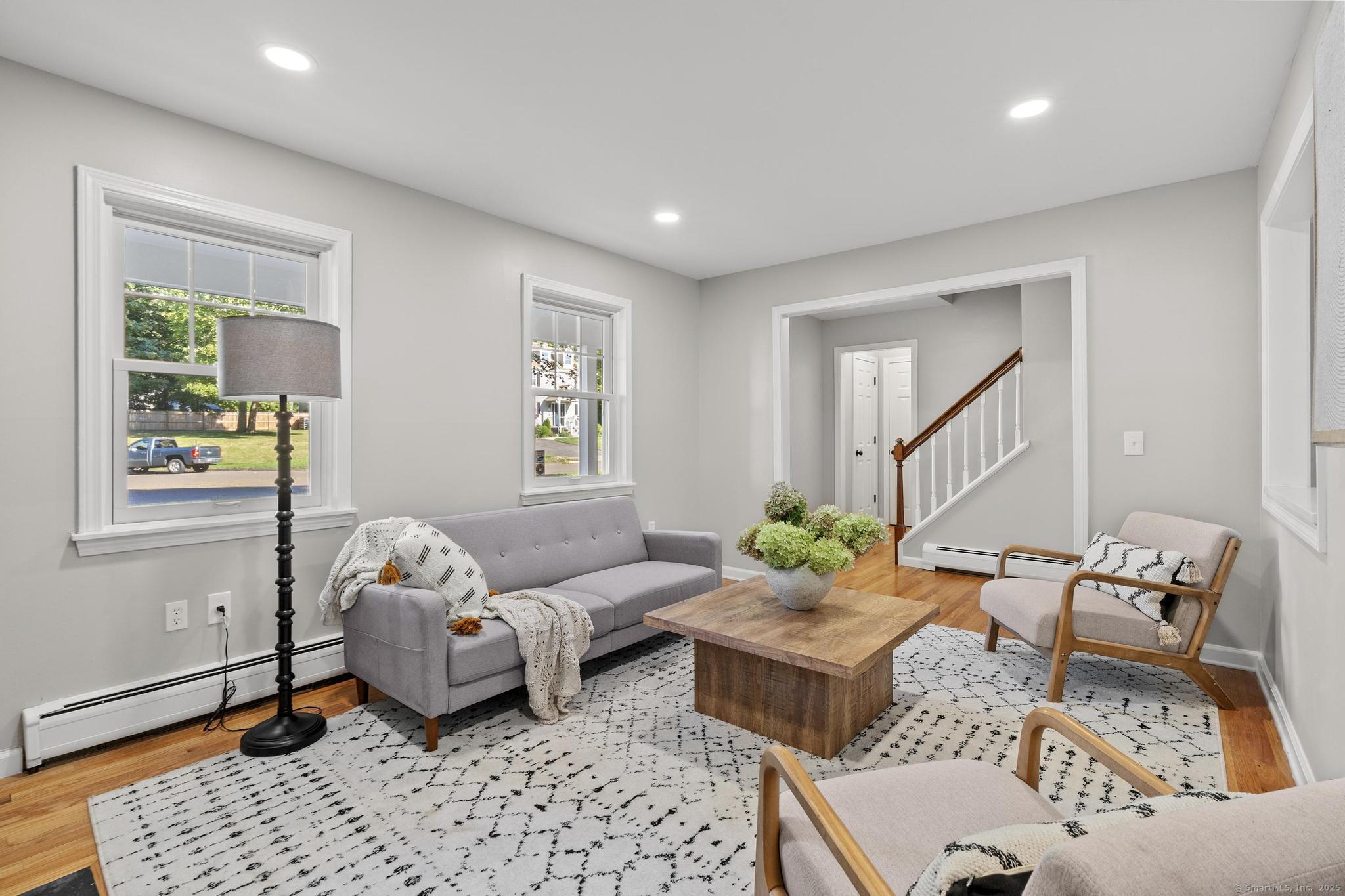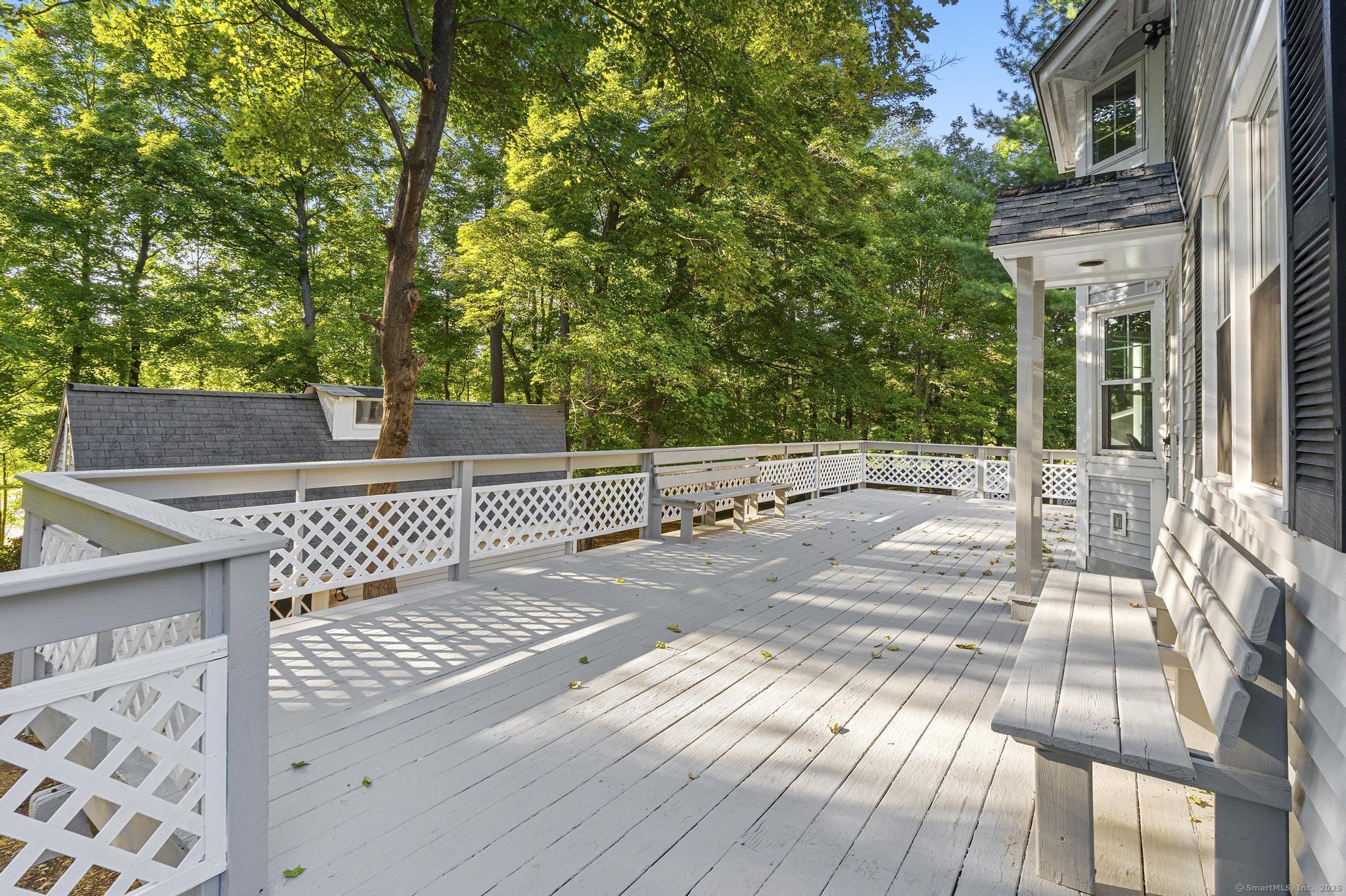 This oversized 3-bedroom, 2.5-bath Cape Cod with attached 2 car garage located on a desirable cul-de-sac has a finished basement with plenty of storage. This home has been beautifully updated inside and out. Step into a bright interior with refinished hardwood floors throughout. The stunning new kitchen with all-new cabinetry, and appliances, and a gas stove, The primary suite on the main level includes a walk-in closet and a fully remodeled bathroom with gorgeous tile. glass shower doors. Additional highlights include new AC, new hot water tank, and two versatile outbuildings. Truly move-in ready, this home combines classic Cape charm with modern updates. Enjoy cozy evenings by the living room fireplace or entertain on the expansive back deck that spans the entire length of the home, easily accessed from the front porch and ramp walkway.