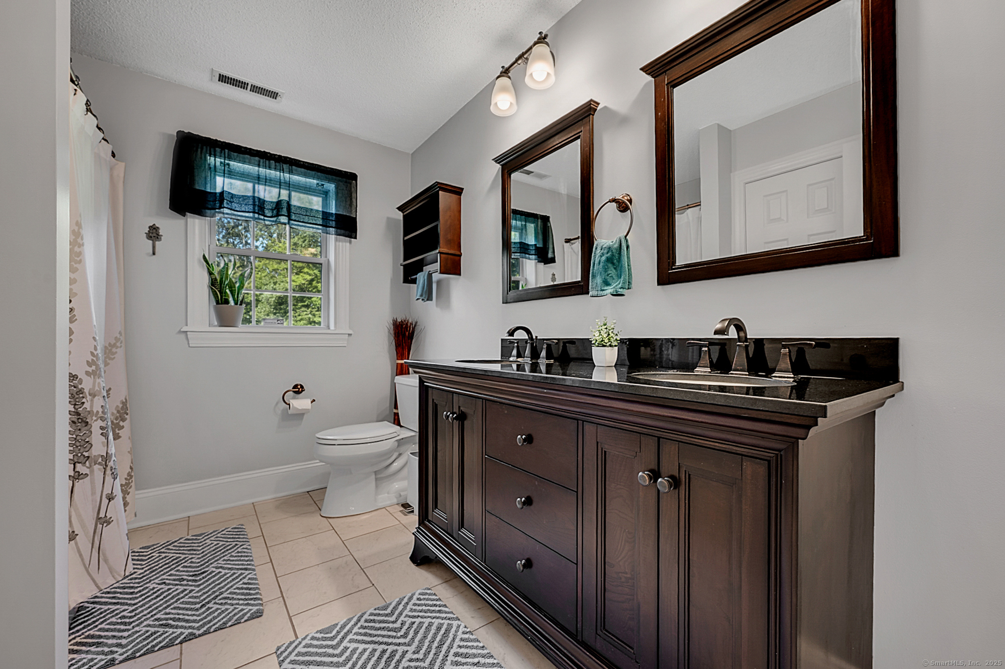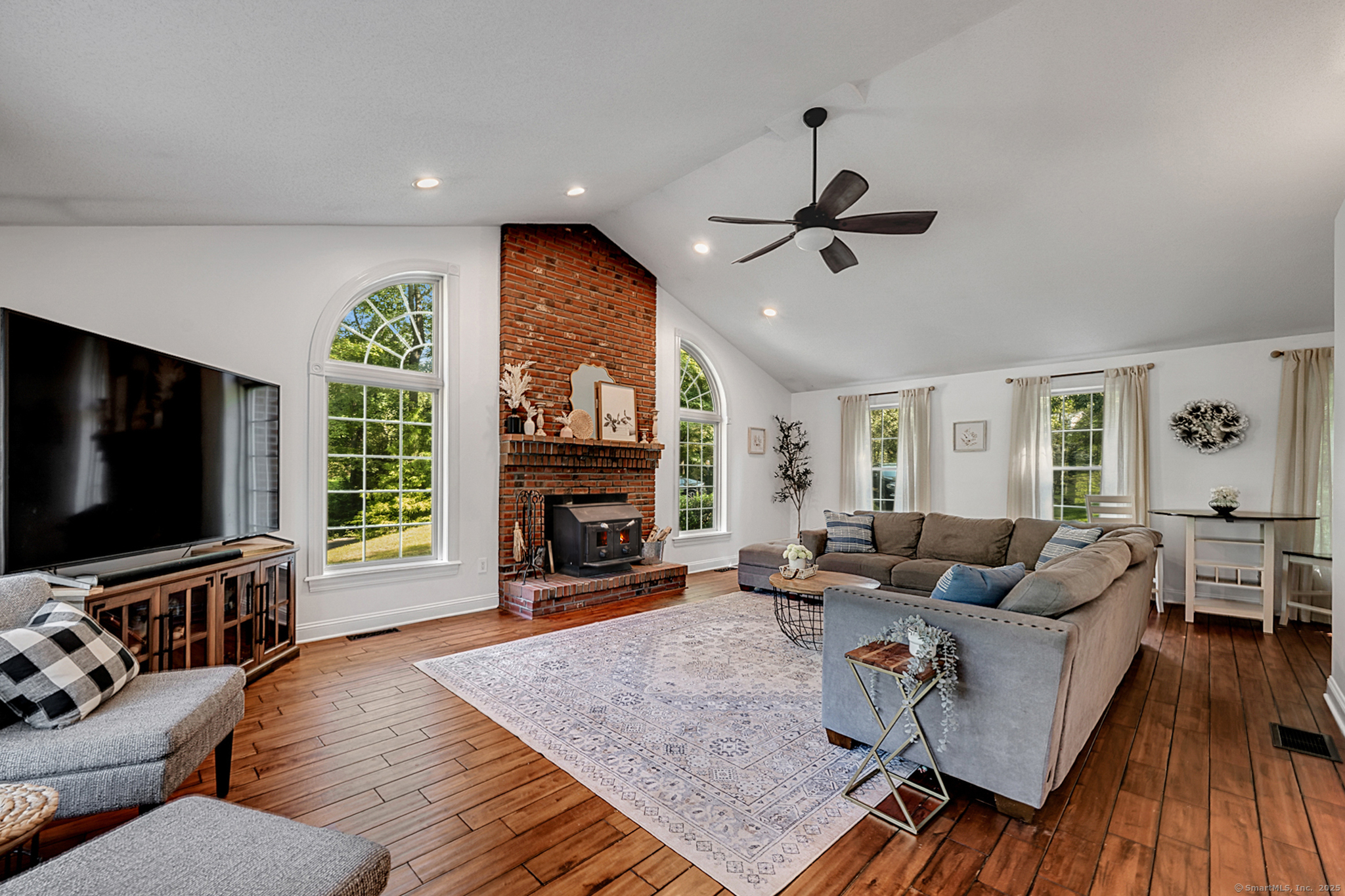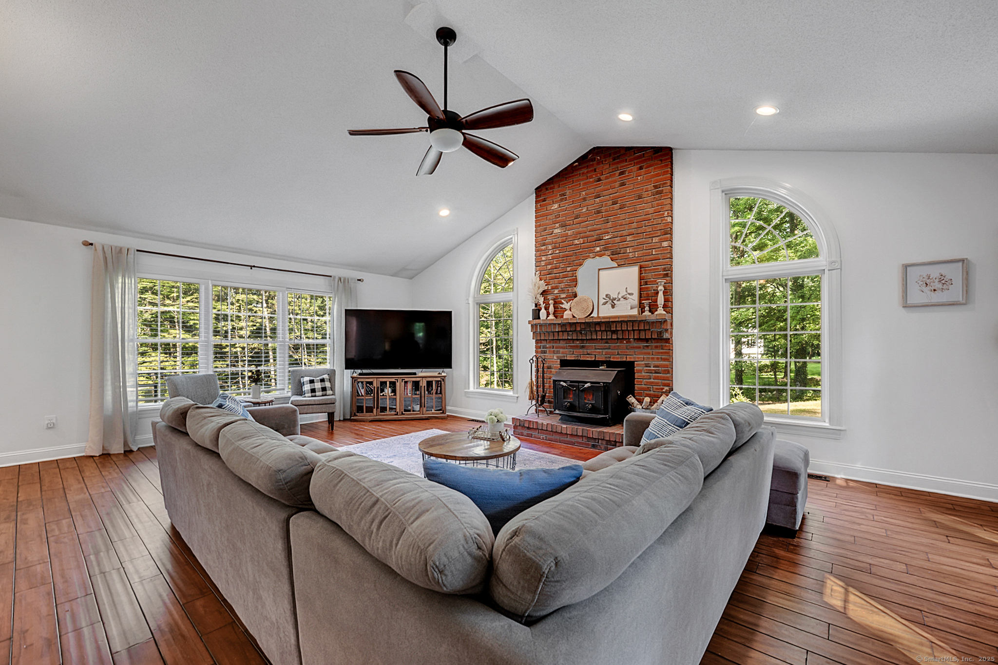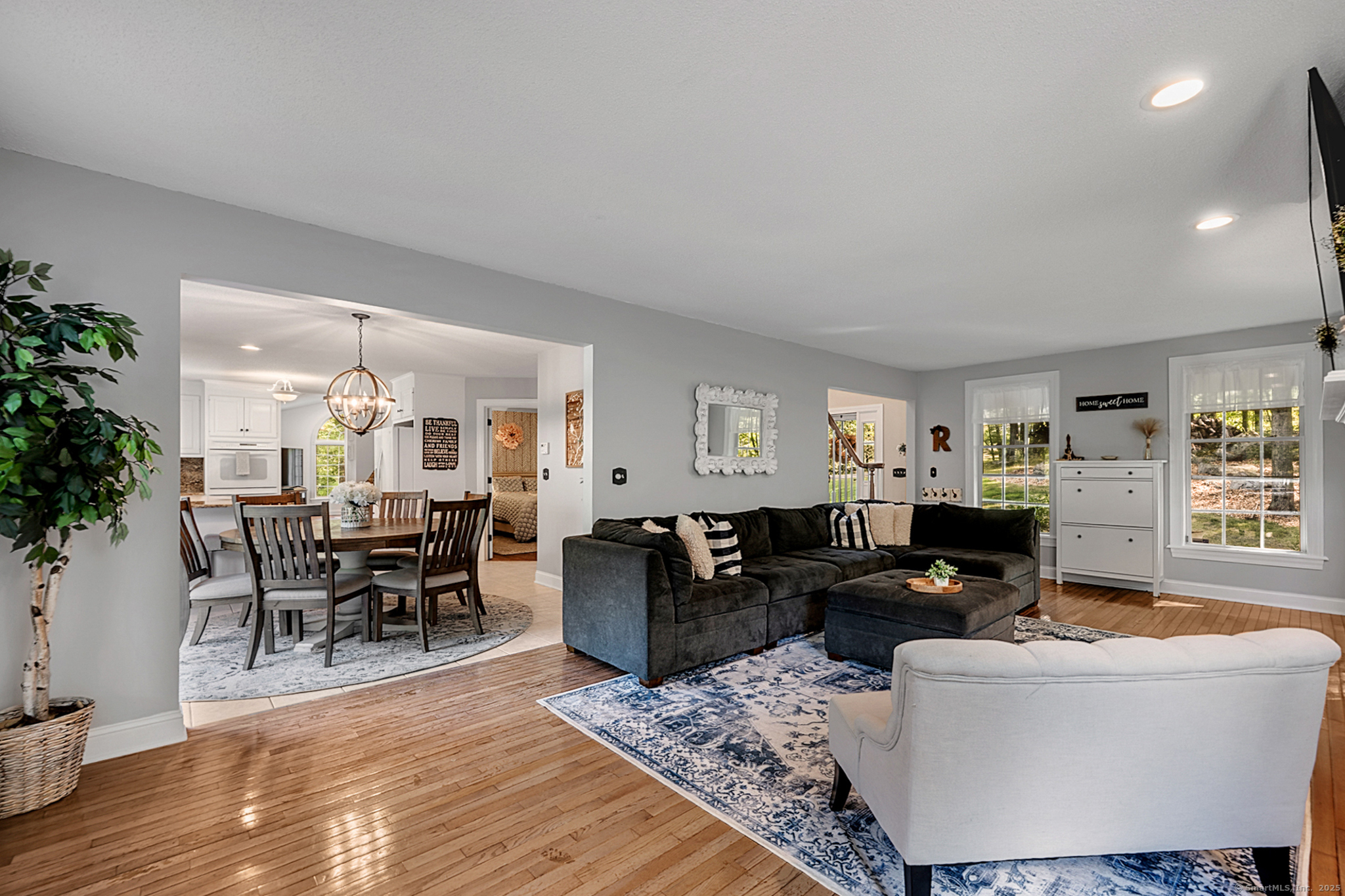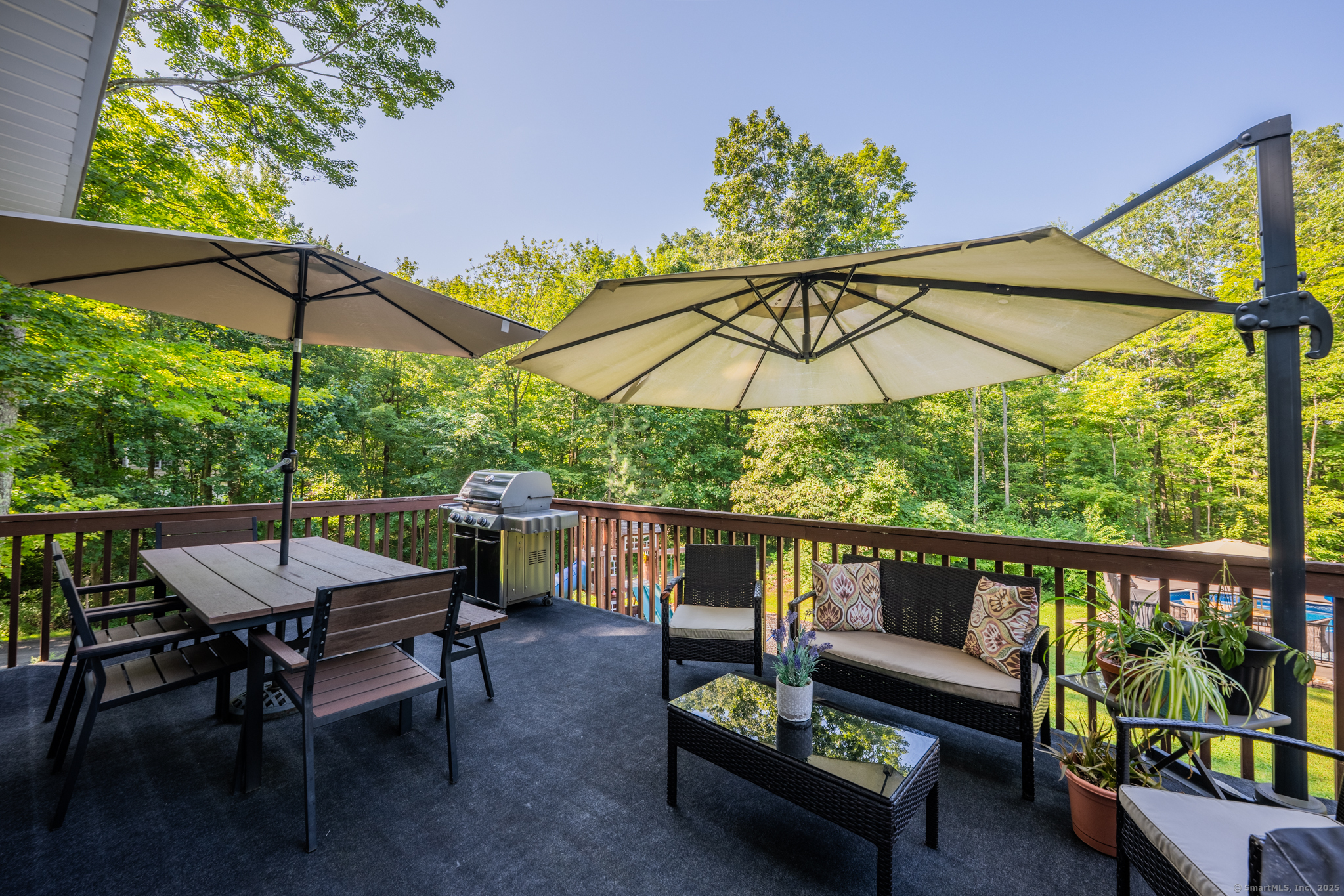 Beautiful 4 bedroom colonial with front porch set on 2.13 acres of secluded, landscaped grounds. Located in a highly desirable section of Watertown and minutes from Litchfield center! This home delivers privacy, comfort, and a perfect blend of indoor/outdoor living. The inviting main level, all freshly painted, features a 2 story foyer, first floor bedroom, hardwood floors, and an easy flow layout with convenient first floor laundry. An intimate living room with propane fireplace creates the perfect cozy retreat, while the expansive family room offers a wood stove, wet bar, updated half bath, & soaring, vaulted ceilings that fill the space with natural light from the beautiful, oversized windows. The bright and functional kitchen features granite counters, double ovens, and a breakfast bar. Upstairs you'll find the primary bedroom complete with cathedral ceilings, a walk in closet , and a full size bath with private vanity. Two additional well proportioned bedrooms and a full size guest bath complete the upstairs. Step outside to your brand new sports pool and composite deck, perfect for summer entertaining or relaxing. A large walk out basement offers incredible storage or the potential for future finished space. Extra long driveway for tons of parking and 2 car garage. Other highlights include a bluestone walkway, extensive landscape renovations, brand new water softener system, & a 6 stage reverse osmosis system. Property line extends all the way back into the woods.
