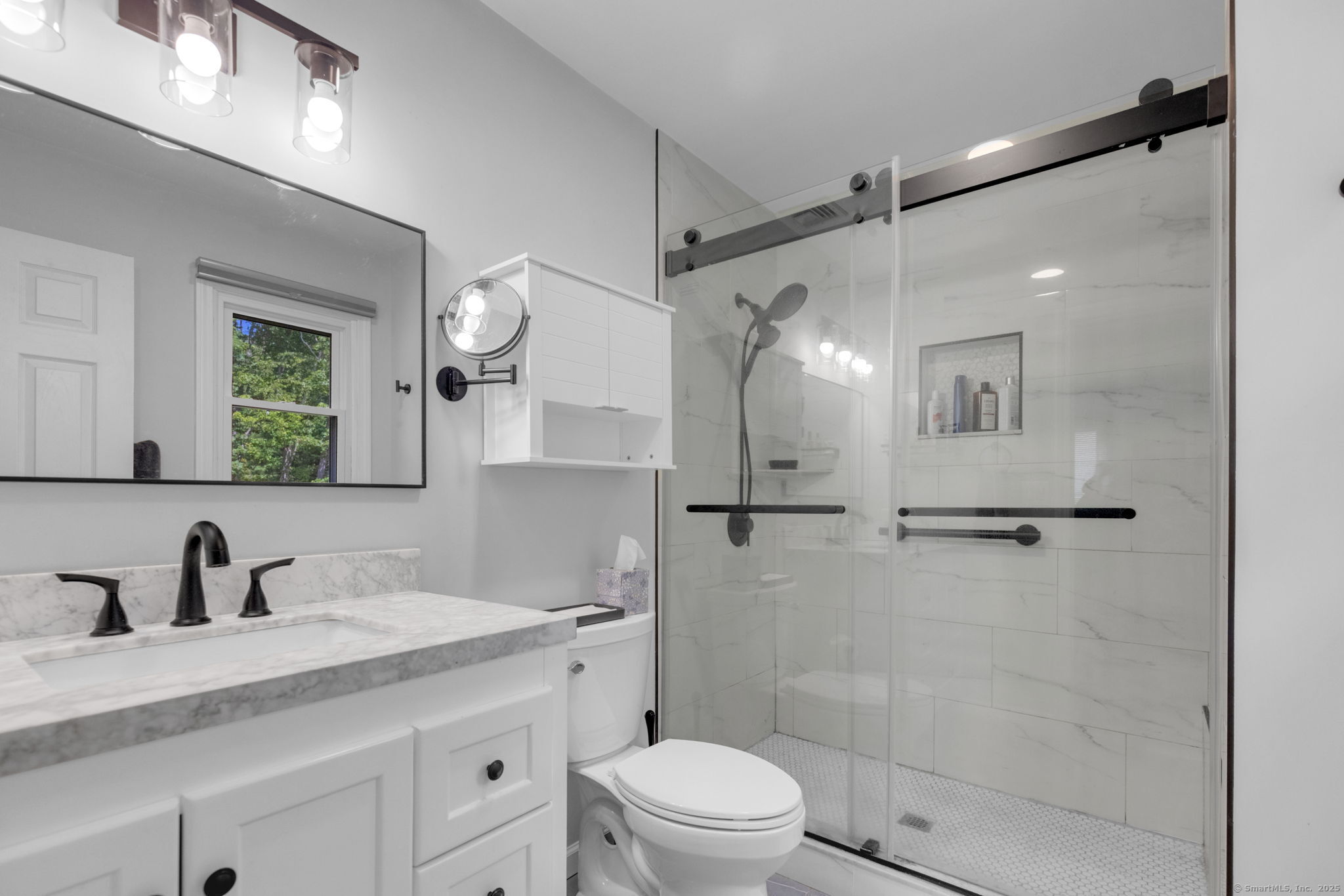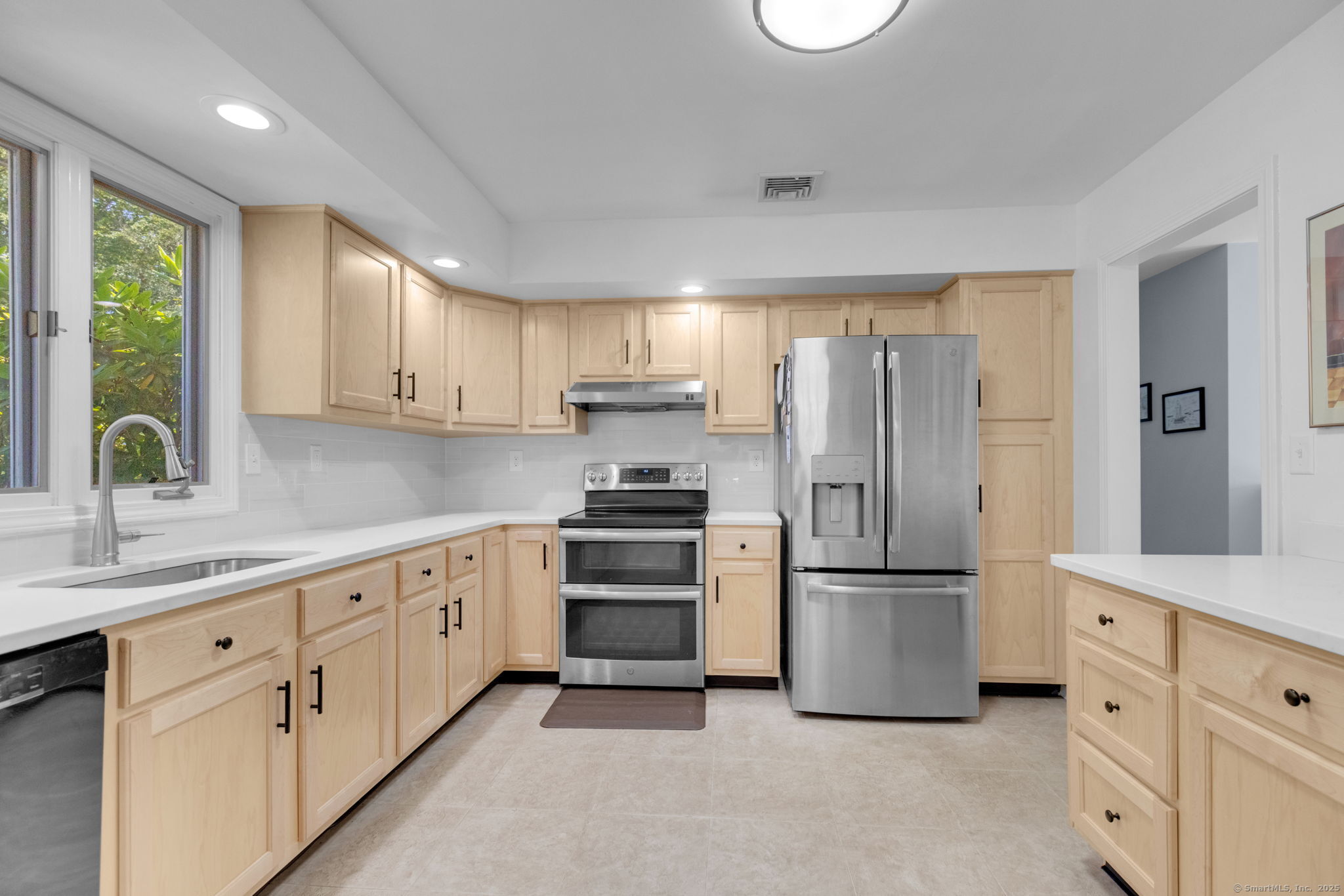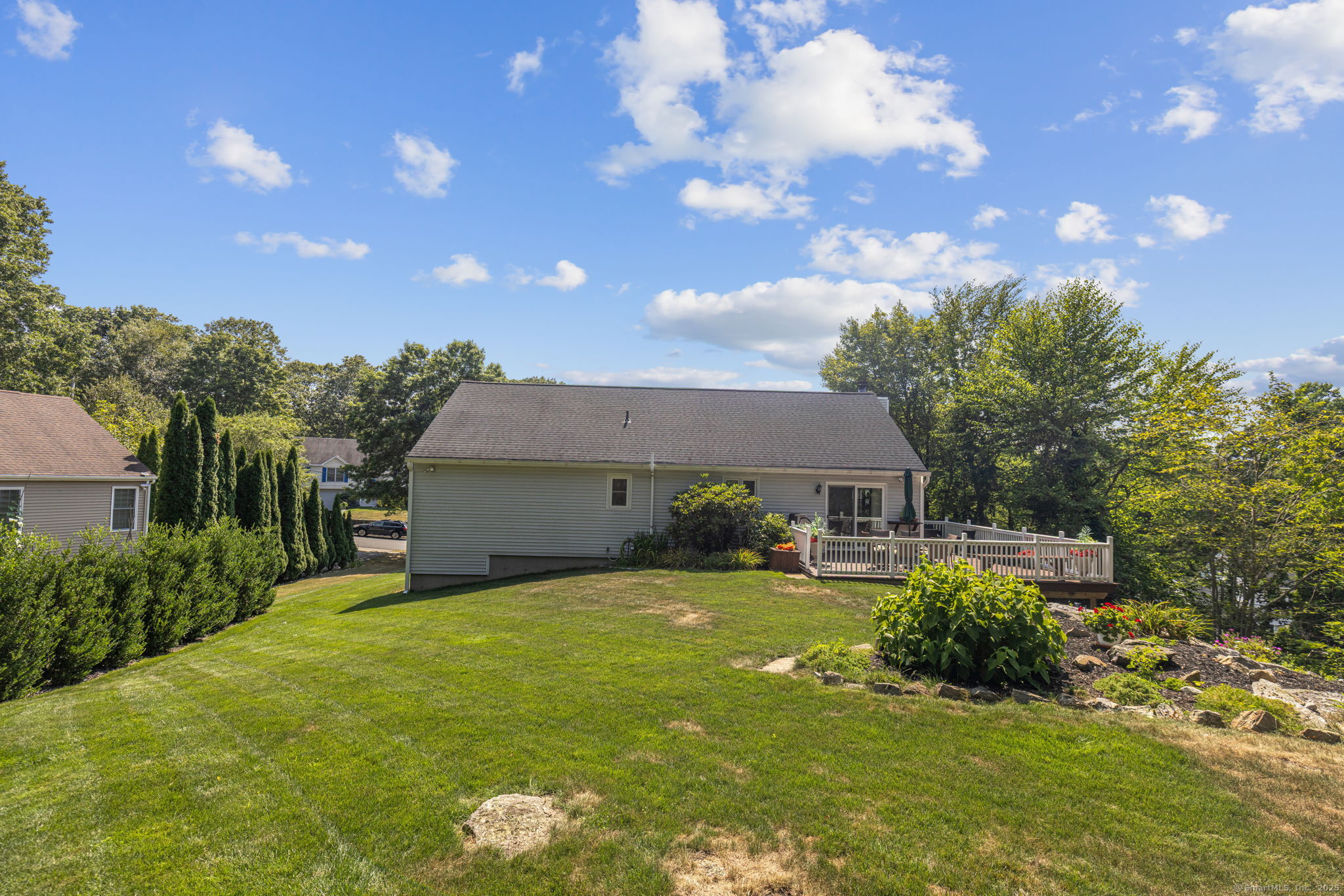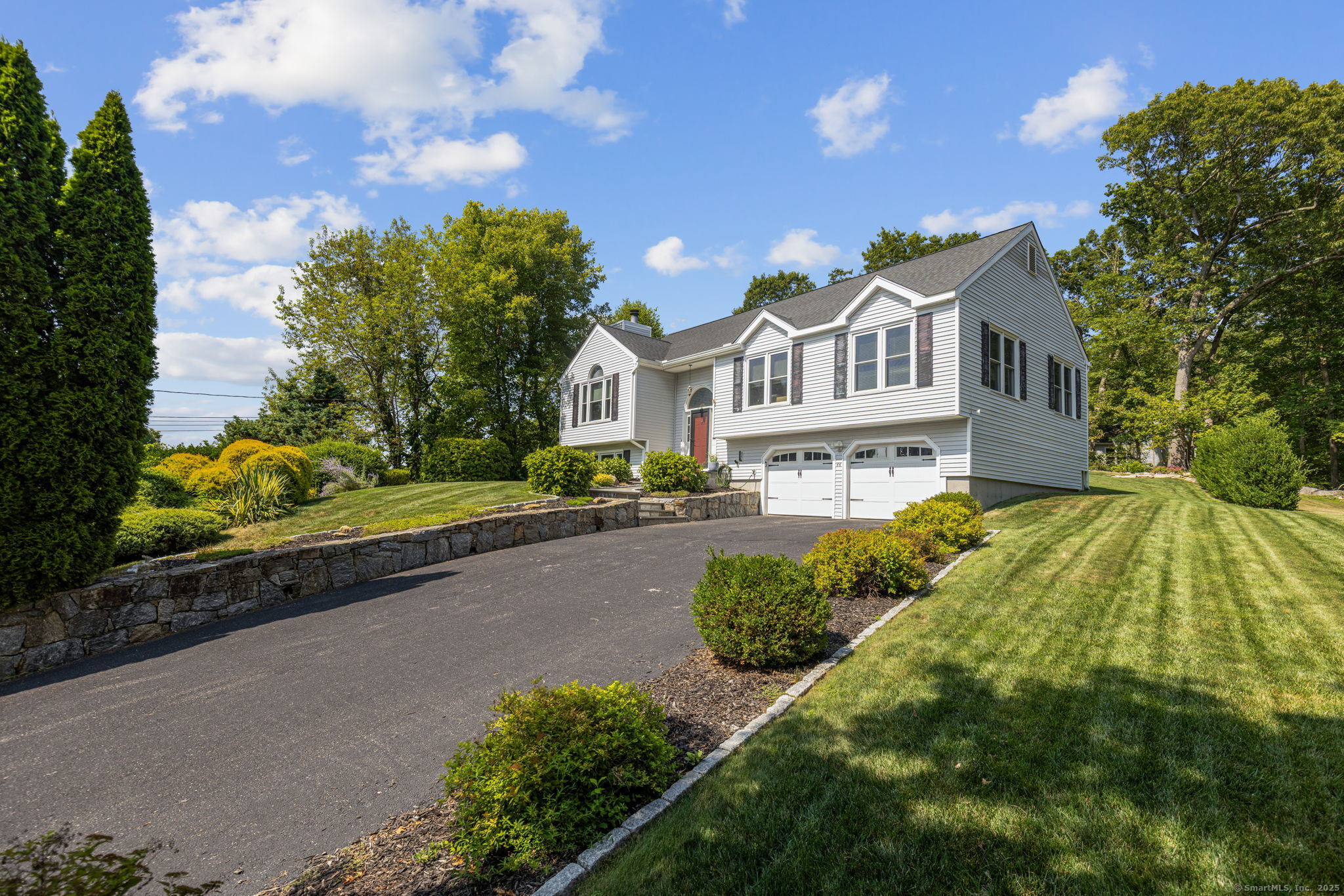Meticulously Maintained and move in ready Raised Ranch. Recent upgrades include: New roof, gutters, leaf guards and soffit, new boiler, new thermopane windows, renovated kitchen with quartz countertops, renovated master bath with walk in shower. Renovated hallway bath with new tub, new bluestone walkway and front porch, irrigation system, new garage doors and new air conditioning system. Open concept floor plan with generous living and entertainment spaces. The lower level space (with half bath) offers endless possibilities: home office, gym, media room or guest suite. Outside, rolling grounds and a spacious backyard provide the perfect backdrop for summer barbecues, gardening and play. A rare combination of privacy, style & convenience!