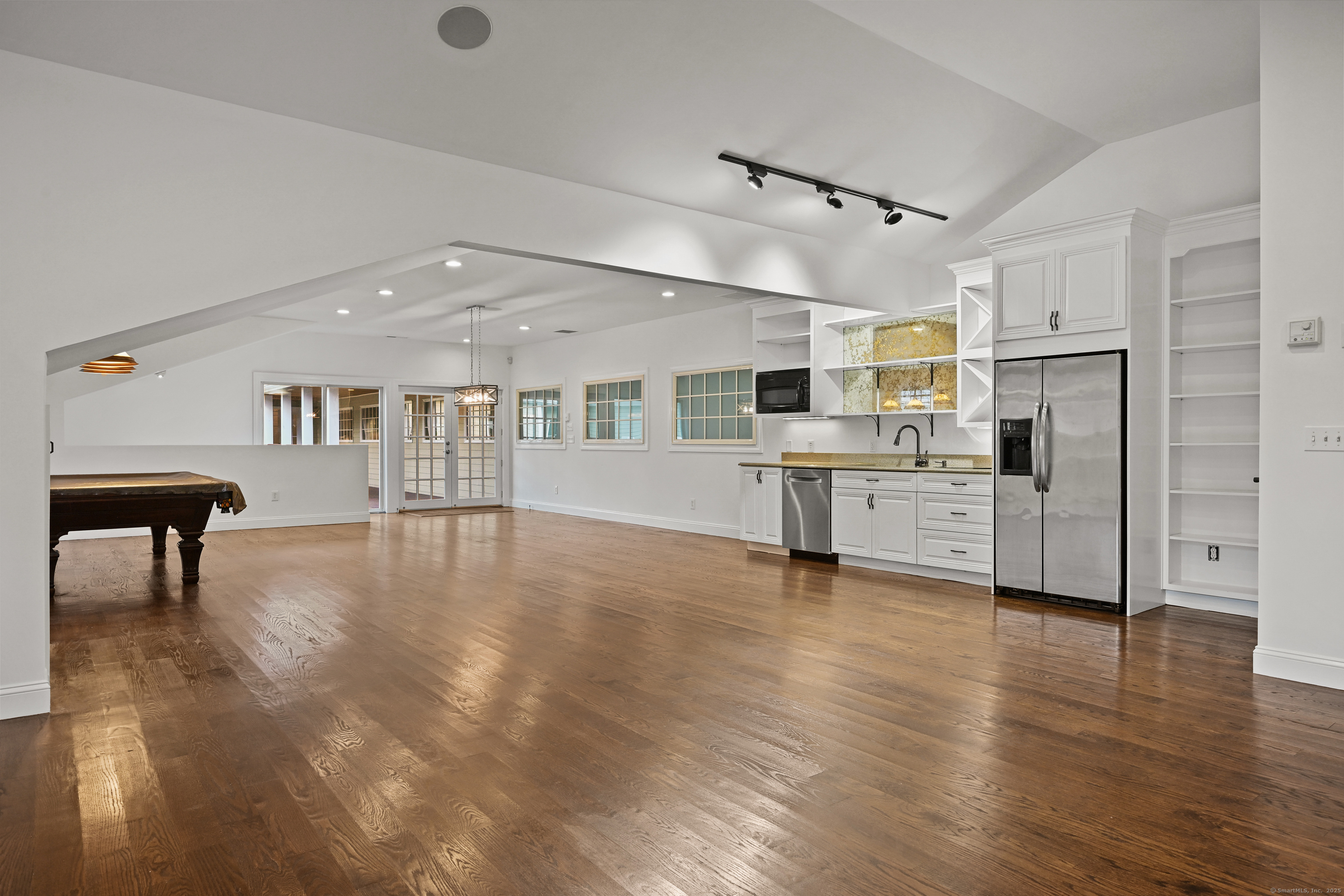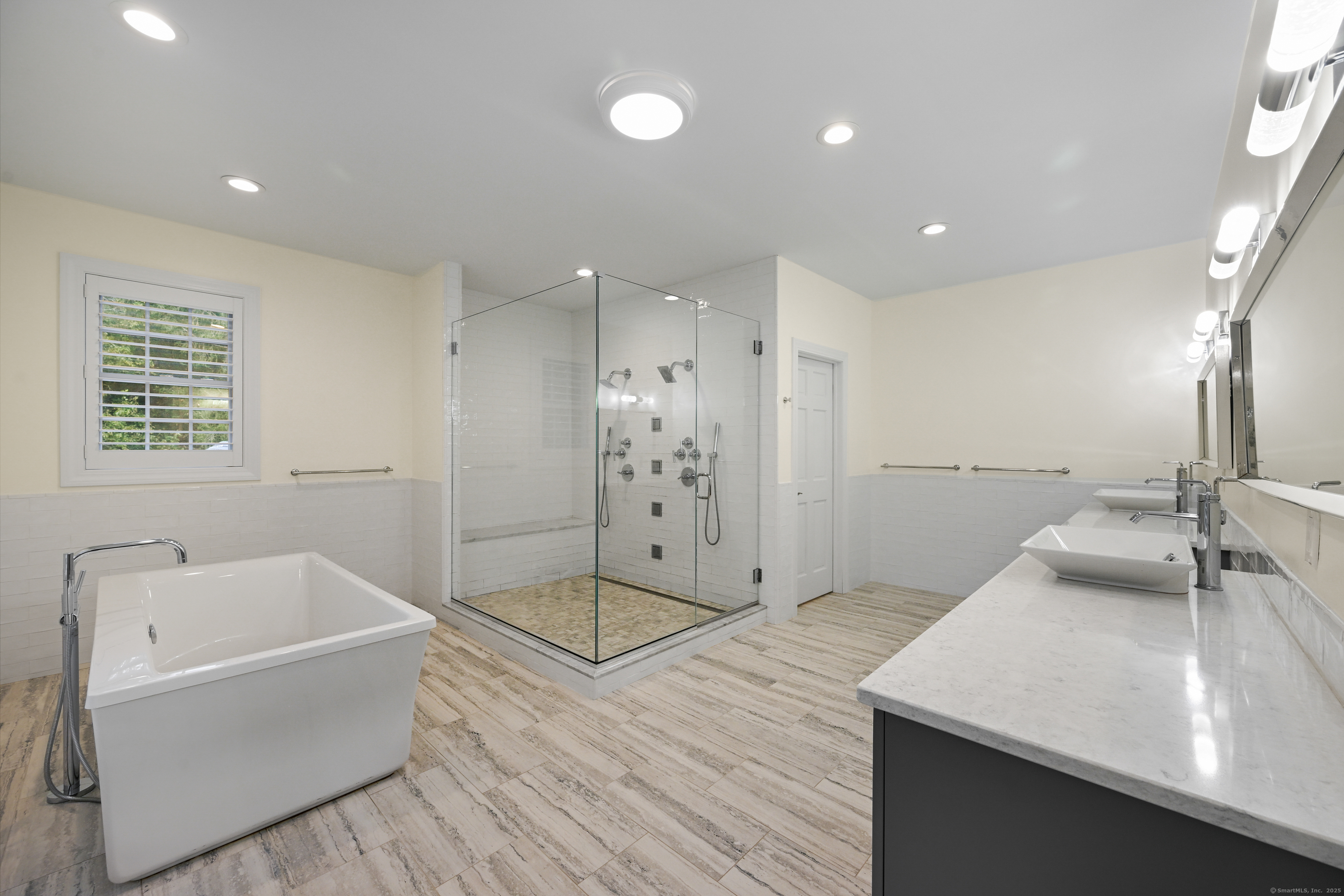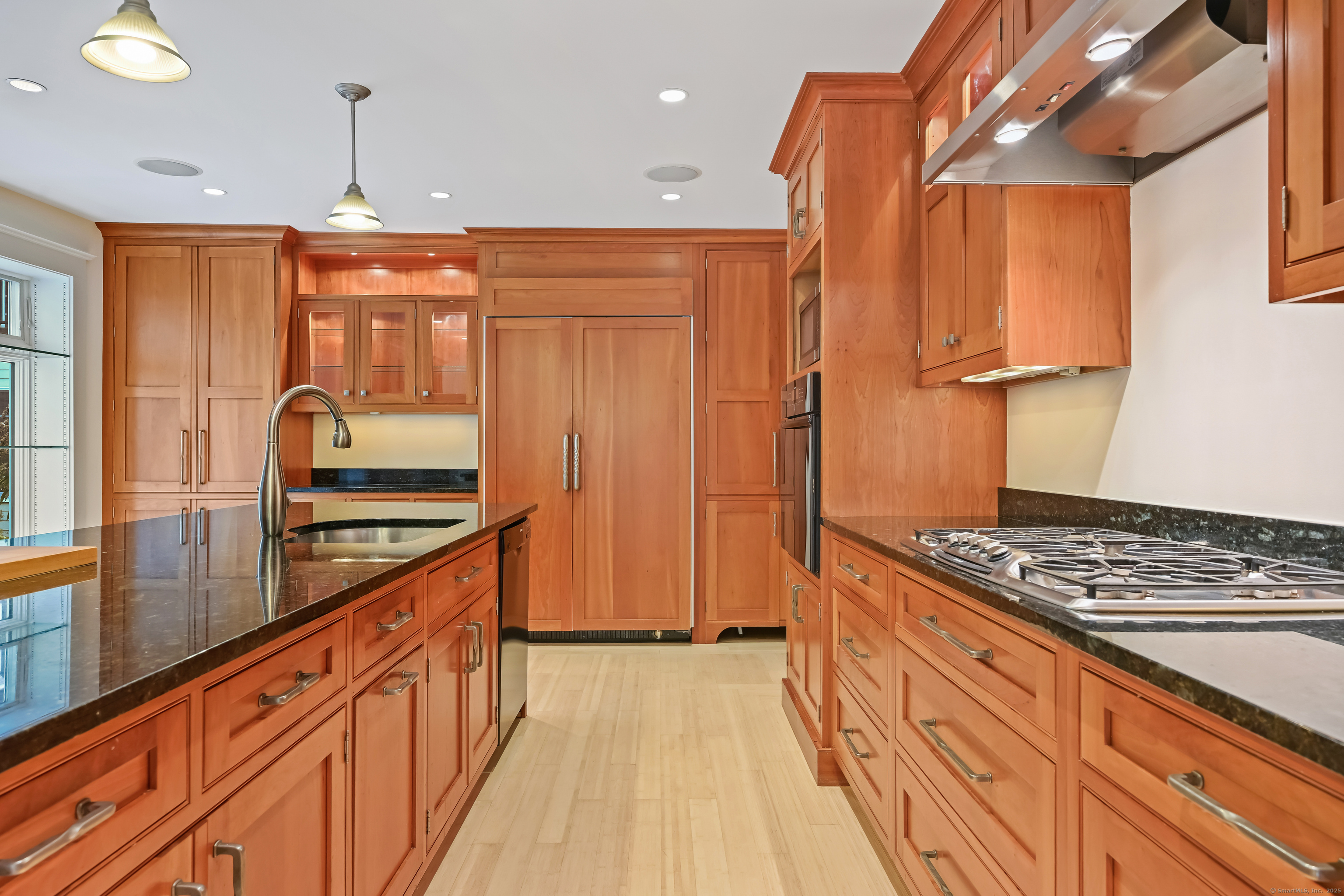Nestled on the Norwalk/Westport border,this bright and spacious colonial offers impressive amenities and thoughtful details throughout.The chef's kitchen is the heart of the home, with custom cabinetry, granite countertops, stainless steel appliances, and an expanded center island ideal for entertaining.The primary suite offers 2 walk-in closets and a spa-like bathroom with a soaking tub, double vanities, and a shower.Each additional bedroom is en suite with updated baths, providing comfort and privacy for all.The flexible floor plan allows for the addition of another bedroom if desired.The inviting and spacious living room and family room both have fireplaces, creating warmth and charm throughout the home.The recreation room has its own private entry.Outfitted with a wet bar, microwave, refrigerator, and cabinetry, it's perfect for guests, family fun or an in-law suite.The home includes bamboo floors and paid-in-full solar panels.For year-round enjoyment, there is an indoor lap pool with climate control and advanced air filtration, ensuring comfort all year long.The pool area also includes a full bath with double sinks, and a steam shower.Car enthusiasts will appreciate the oversized 4-car garage, while the outdoor spaces offer a private courtyard with mature plantings, multiple decks overlooking the backyard, a tranquil koi pond, and a screened porch perfect for extending outdoor living across the seasons.Effortless commuting with easy access to I-95 and Metro North