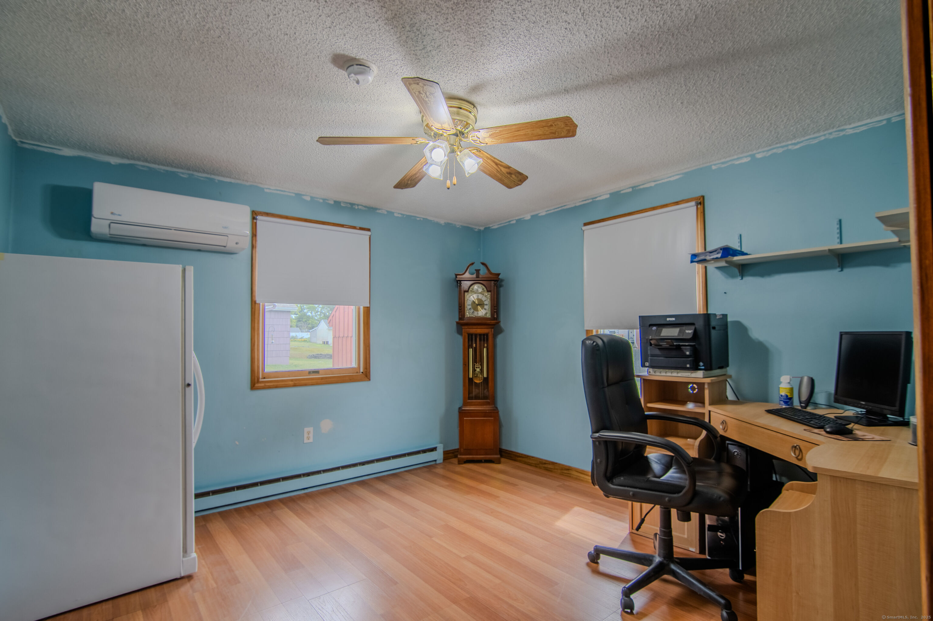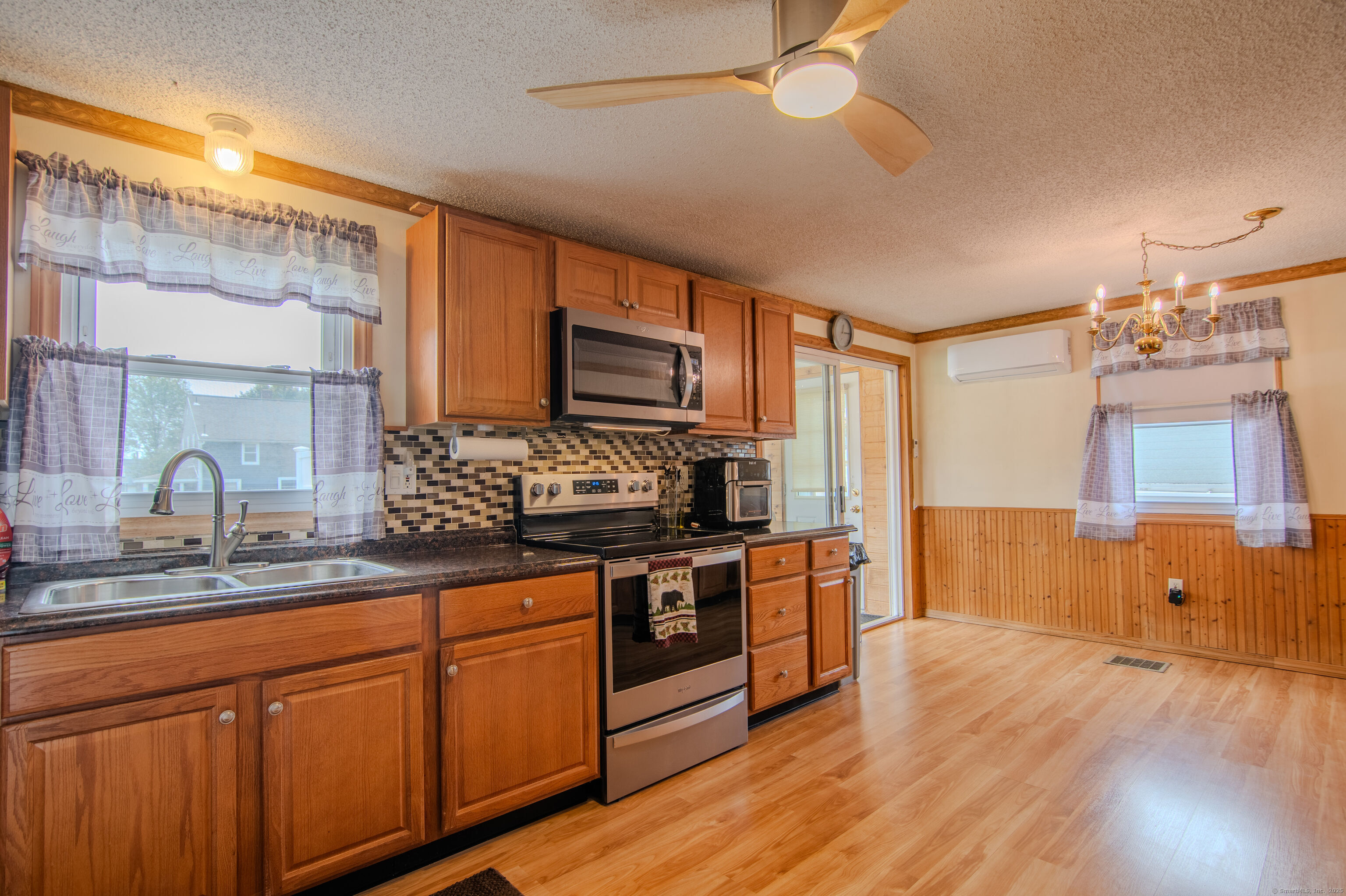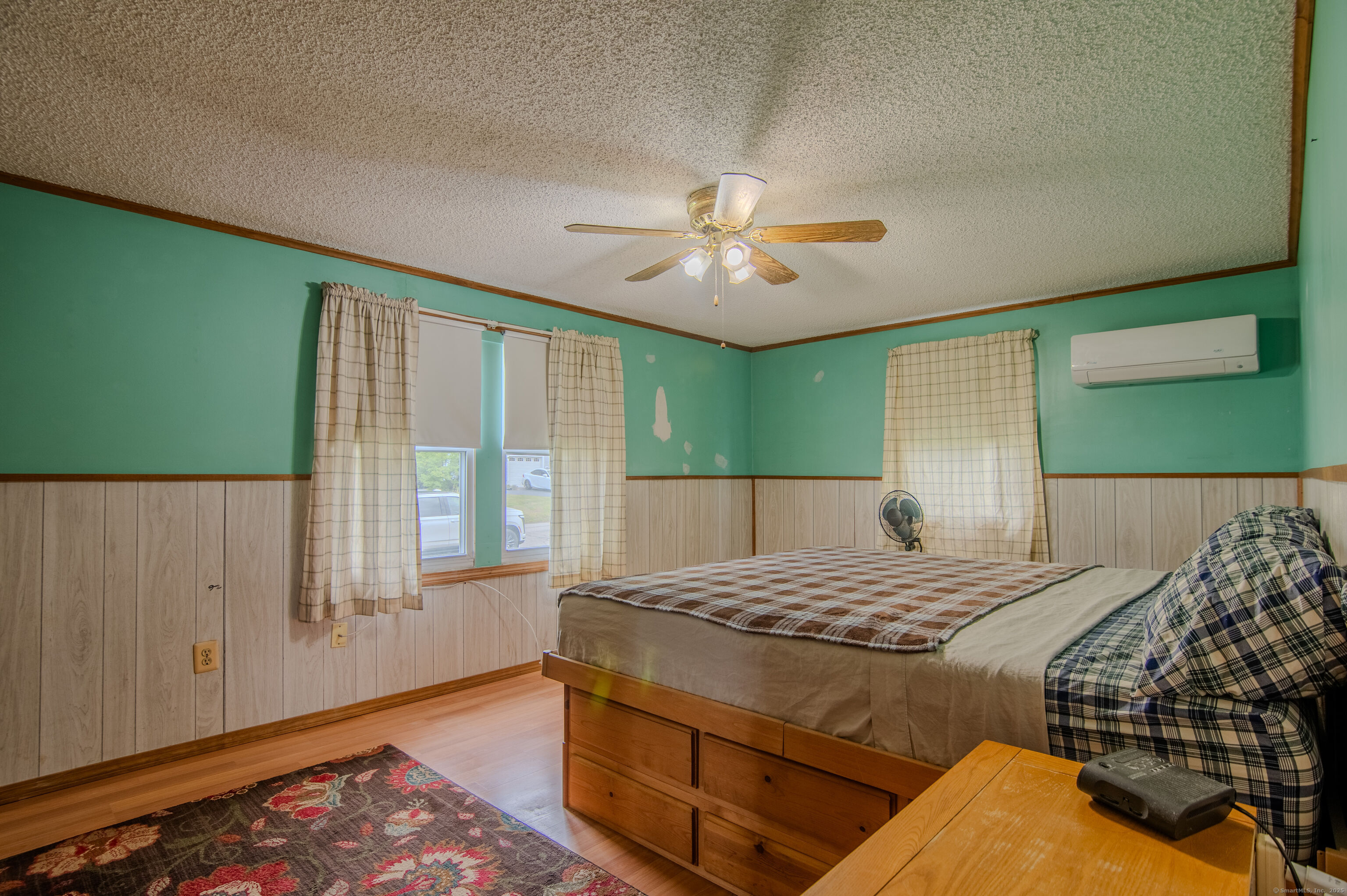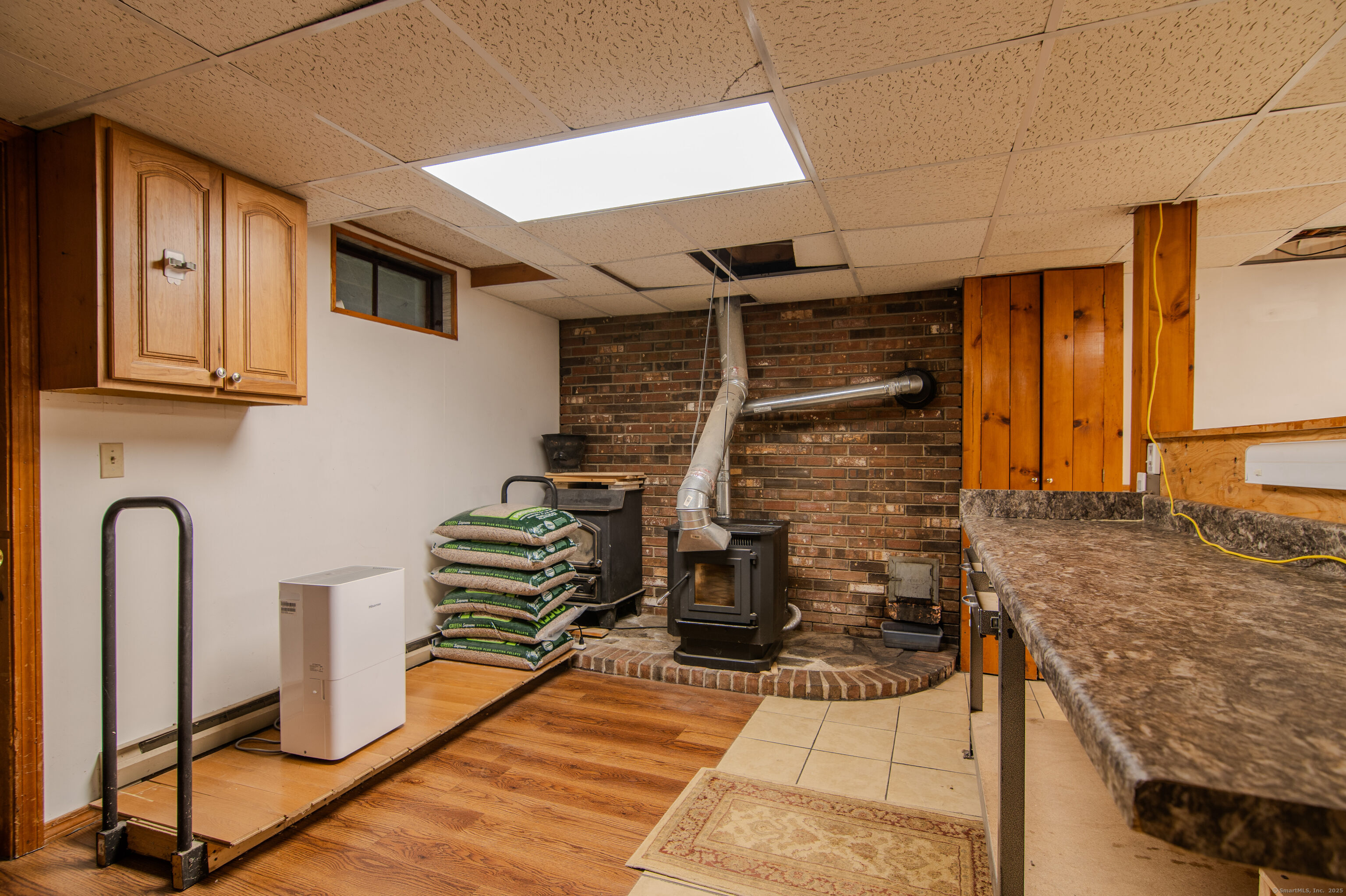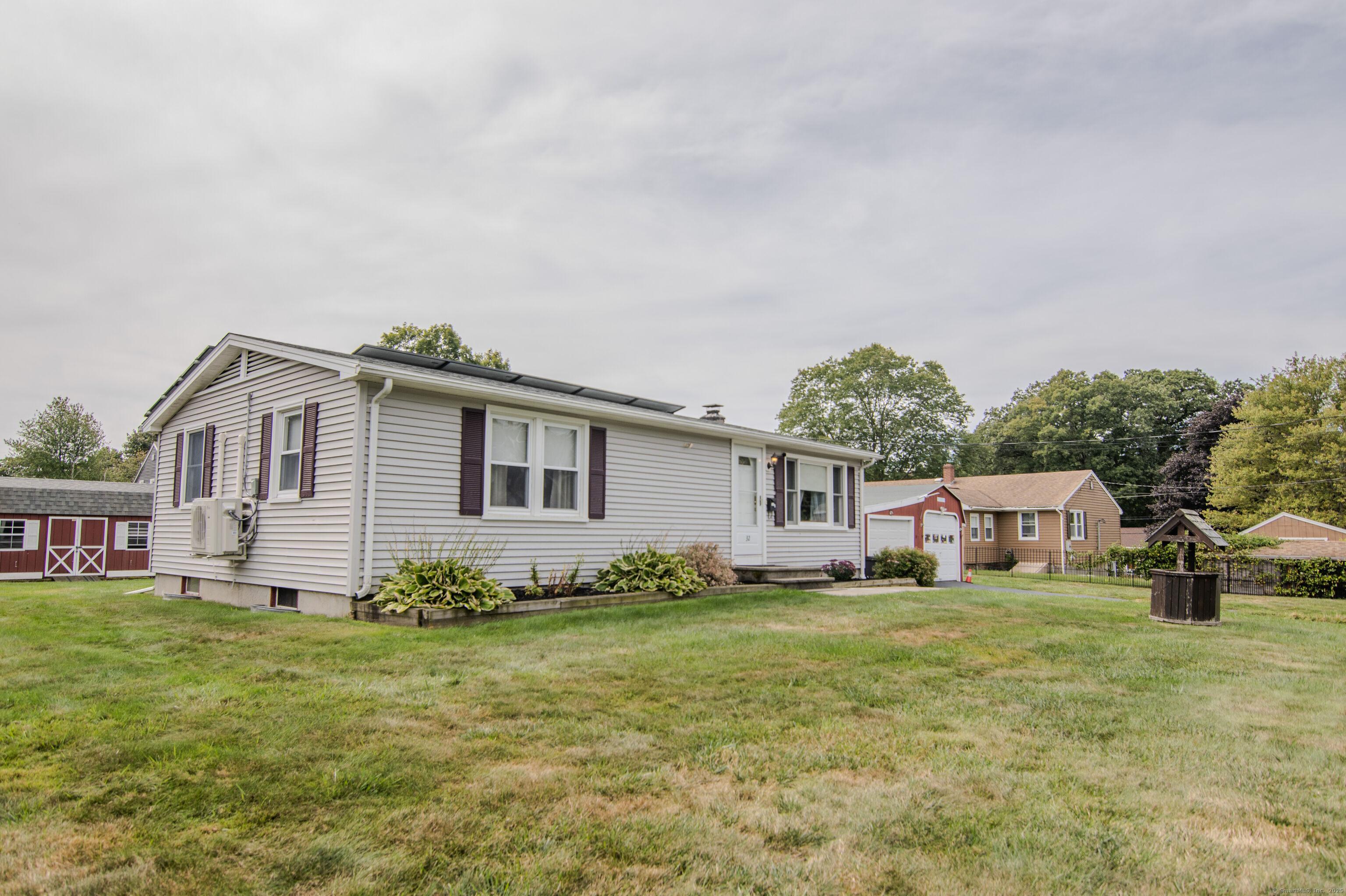Charming ranch home in a desirable location. Nicely kept, this house has OWNED solar, 2 car garage with power, sheds and NEW roofs on all buildings! Updated, eat in kitchen with plenty of cabinets and work space. Sunroom off kitchen makes a lovely sitting area or office. 2 bedrooms on first floor and 2 in lower level. Lower level of additional 960 sq ft offers space for family room, workshop or whatever your needs may be. Heats and cools with options- mini splits, baseboard, wood and pellet stoves. Meticulously kept yard. Move in ready!