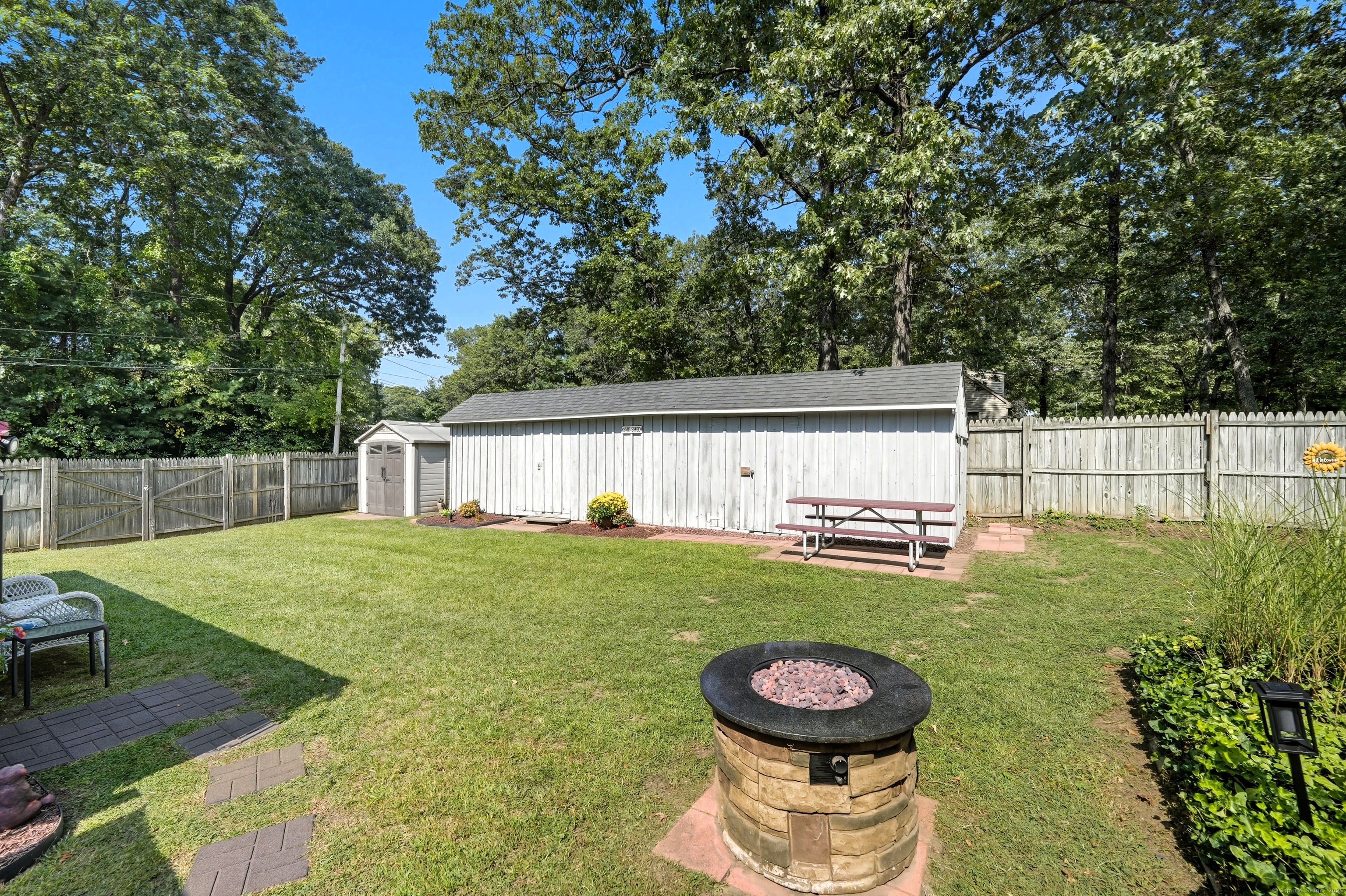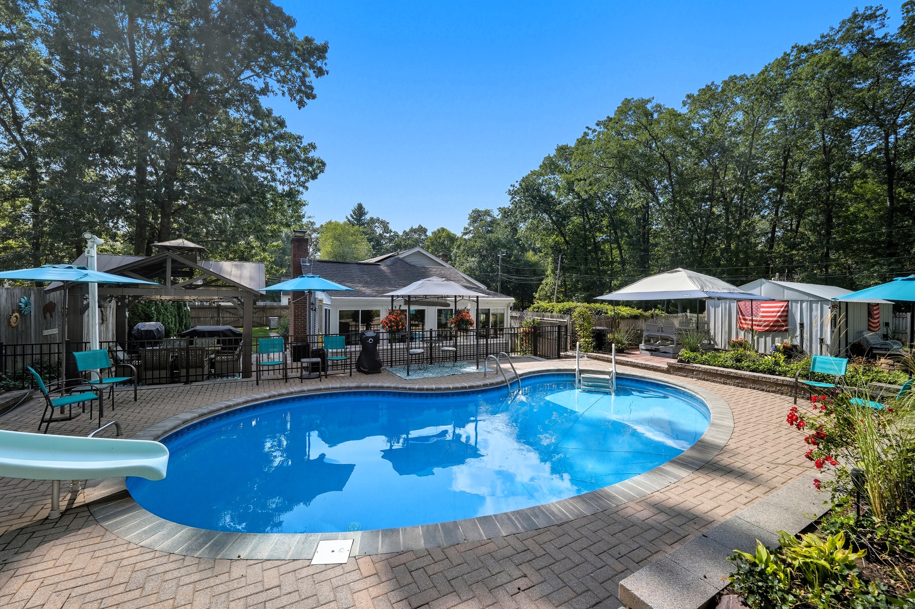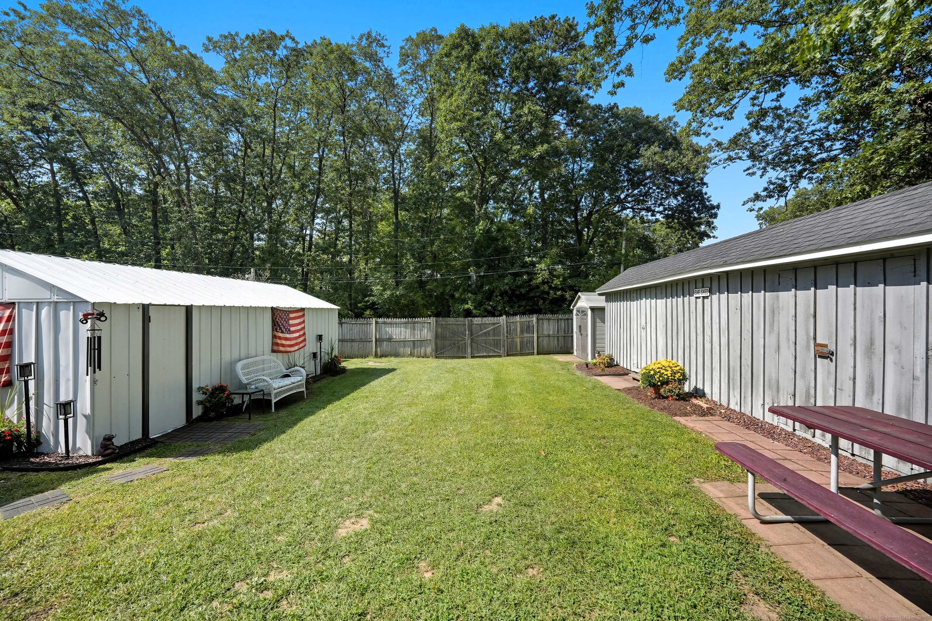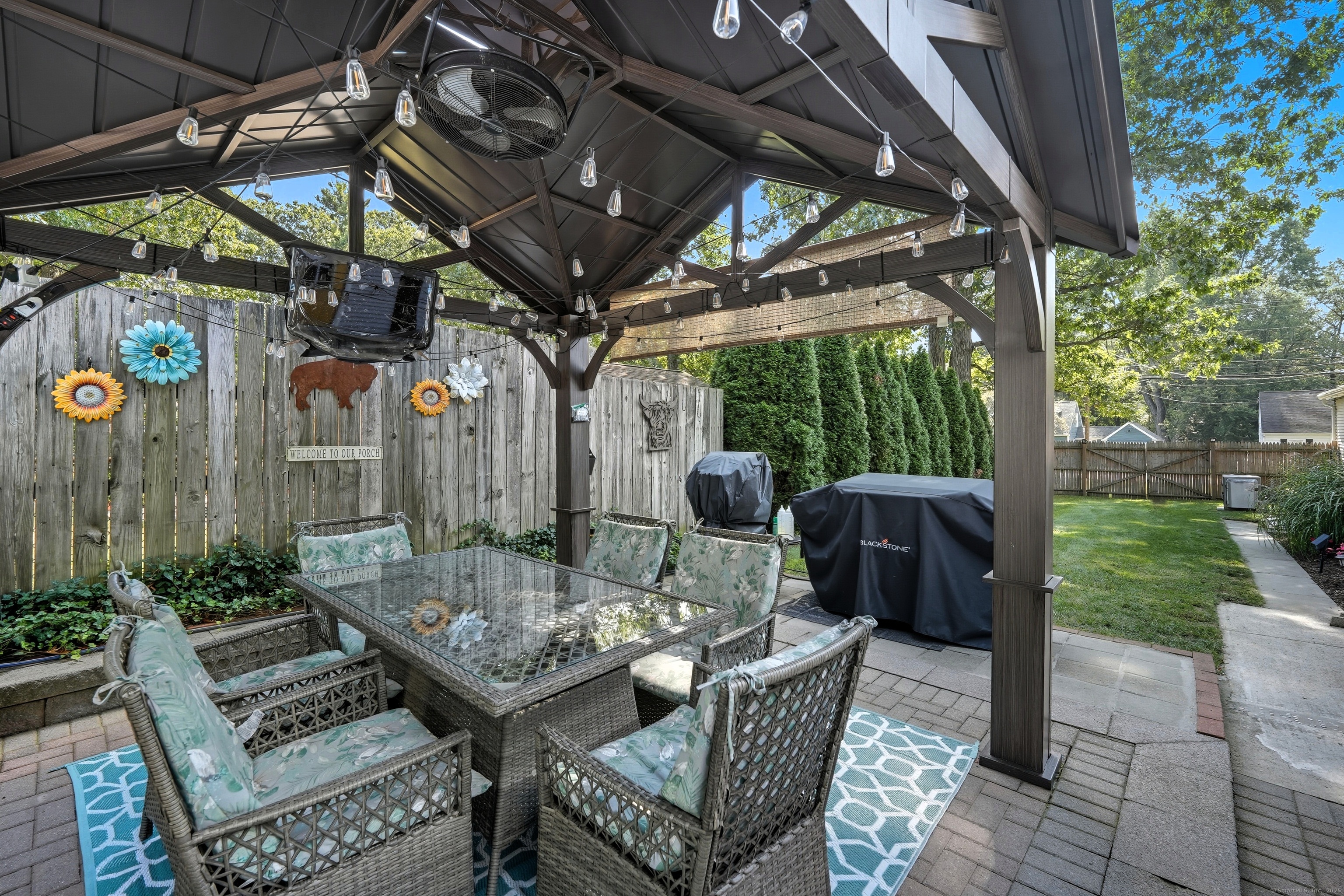 Welcome to the epitome of luxury ranch-style living! This 1,733 sq. ft. custom ranch features 3 bedrooms, 1.5 baths, and an array of impressive updates throughout. The sunken living room is a true showpiece with a gas fireplace, exposed beams framed in reclaimed 1800s barnwood, and oversized windows with remote-powered mini blinds. The spacious kitchen combines style and functionality with a large center island, abundant cabinetry, subway tile backsplash, Dekton Trillium countertops, and luxury vinyl plank flooring. Offering three generously sized bedrooms, one of which features a spacious walk-in closet. A partially finished basement loaded with closet space adds versatile living space, while a whole-house generator provides year-round peace of mind. Step outside to your private backyard retreat complete with an inground pool and a gazebo equipped with a ceiling fan and flat-screen TV-perfect for entertaining. The fully fenced yard and professionally landscaped grounds offer both beauty and privacy. Additional amenities include a one-car garage and two oversized storage sheds. This move-in ready home has been meticulously maintained-nothing to do but unpack and enjoy!