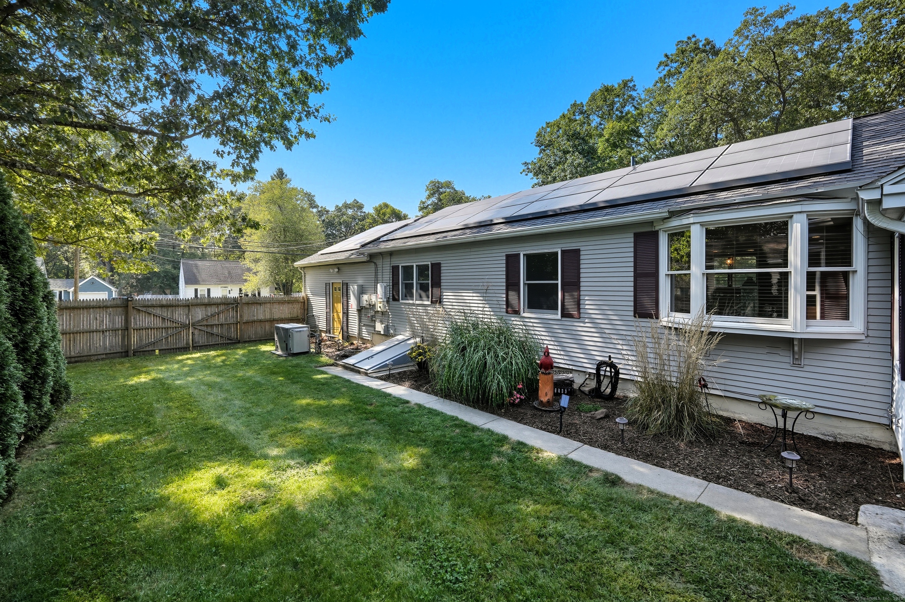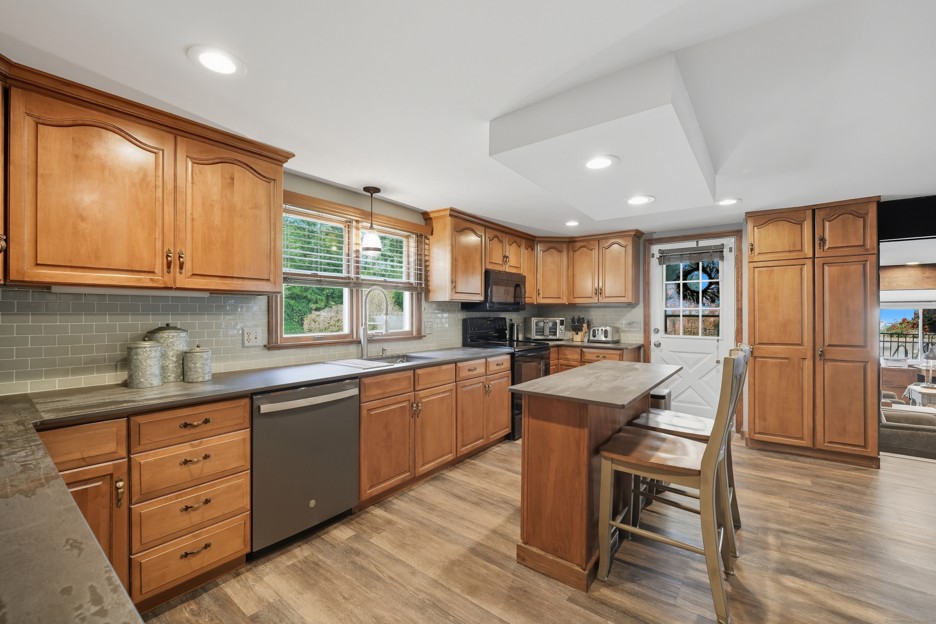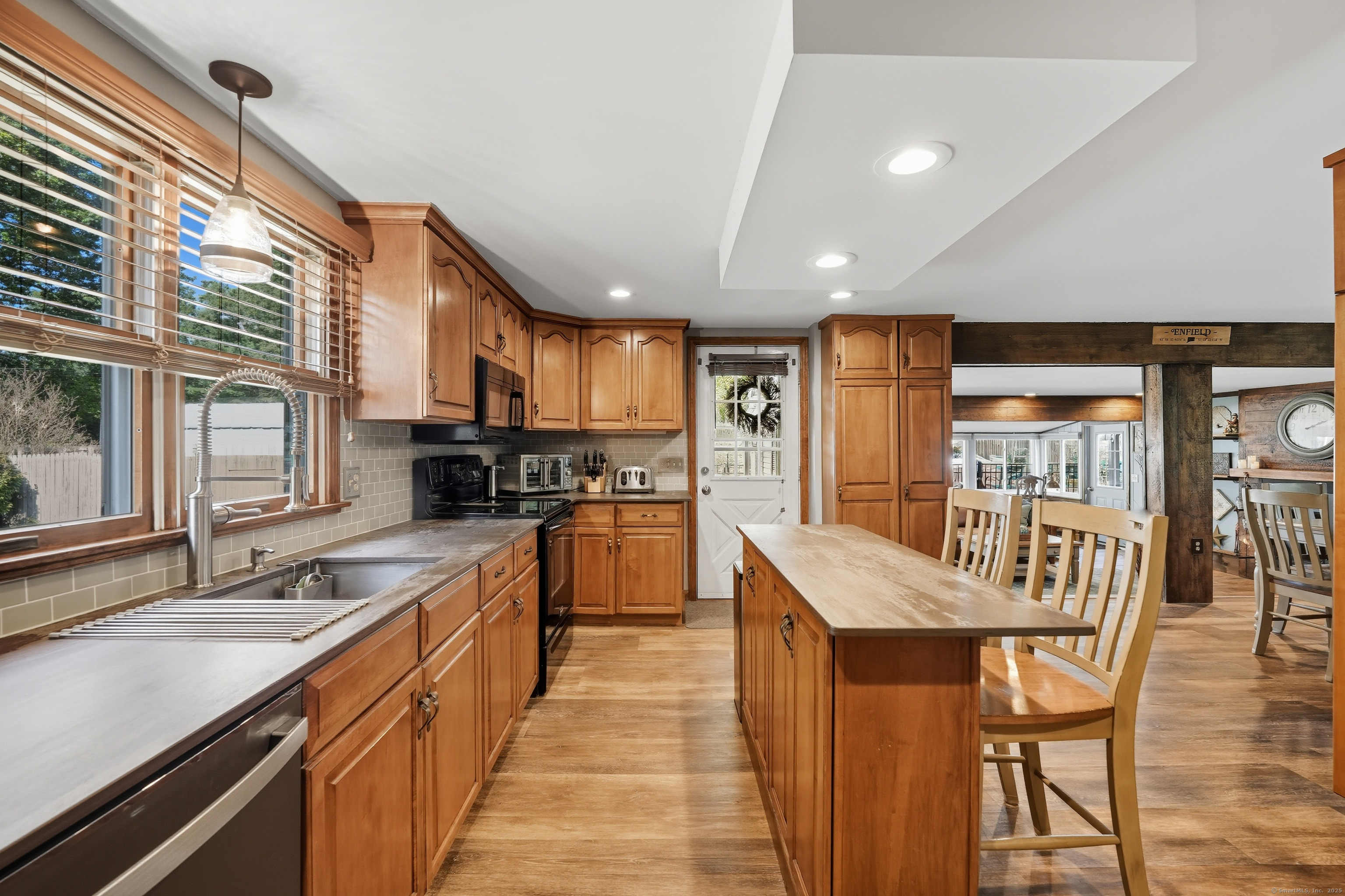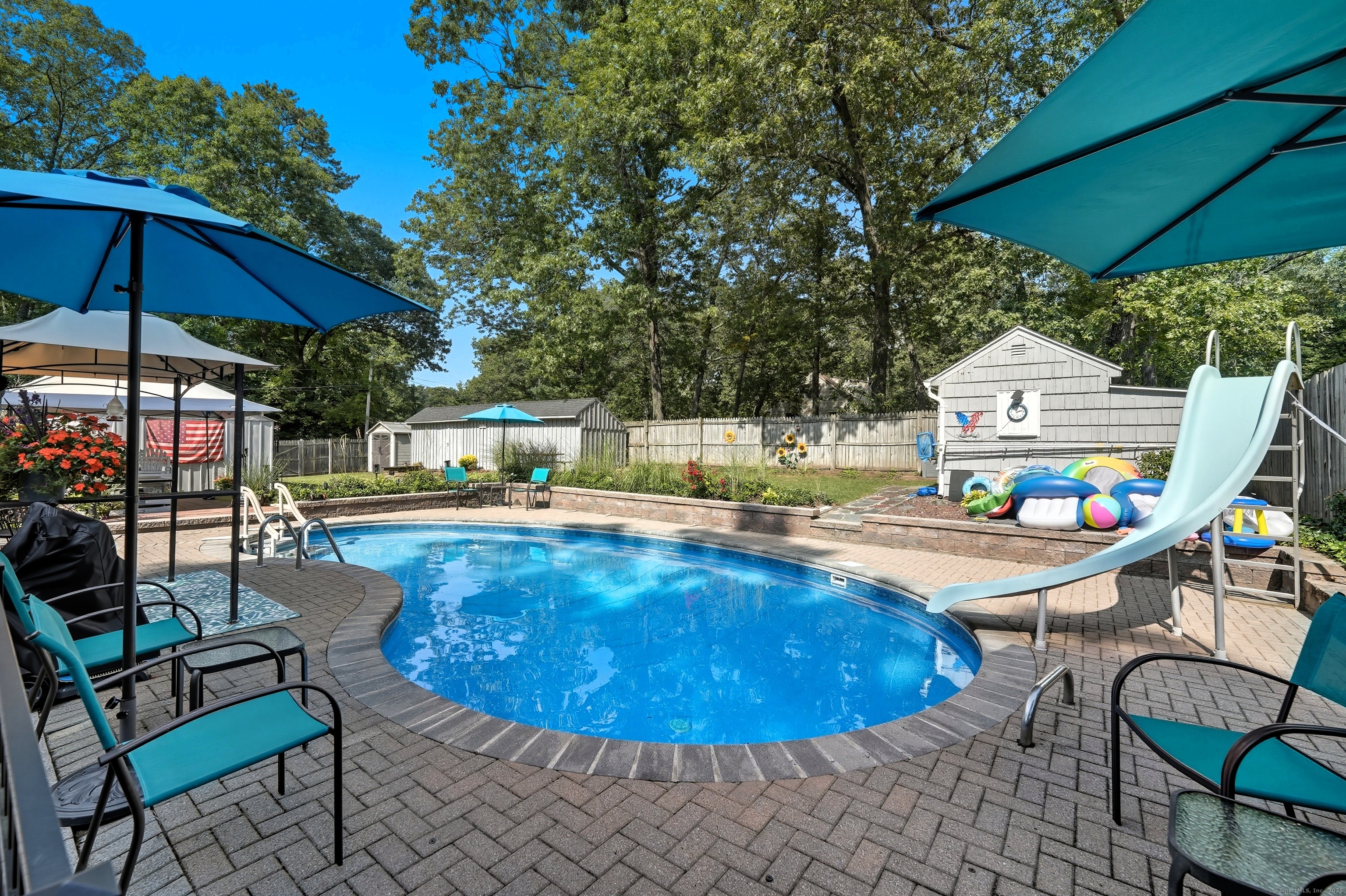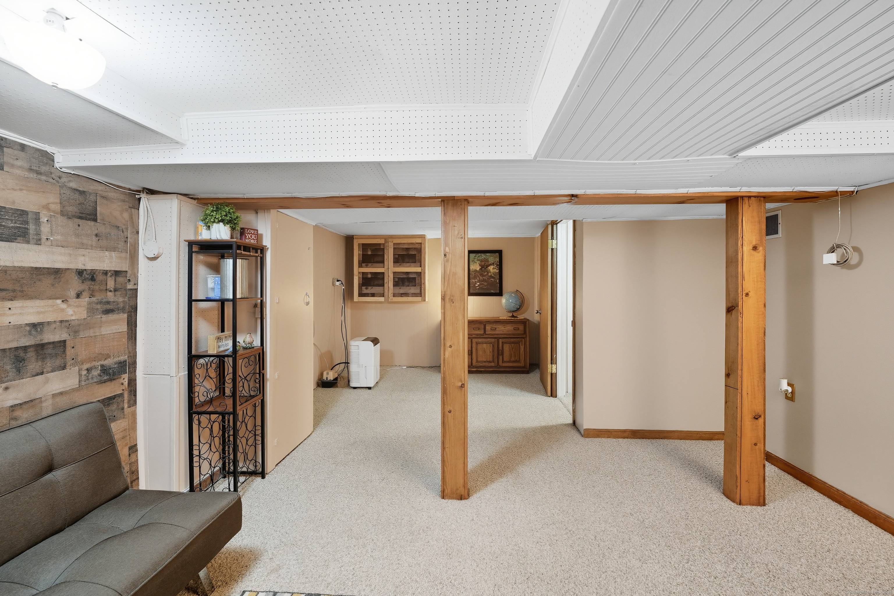 Welcome to the epitome of luxury ranch-style living! This 1,733 sq. ft. custom ranch features 3 bedrooms, 1.5 baths, and an array of impressive updates throughout. The sunken living room is a true showpiece with a gas fireplace, exposed beams framed in reclaimed 1800s barnwood, and oversized windows with remote-powered mini blinds. The spacious kitchen combines style and functionality with a large center island, abundant cabinetry, subway tile backsplash, Dekton Trillium countertops, and luxury vinyl plank flooring. Offering three generously sized bedrooms, one of which features a spacious walk-in closet. A partially finished basement loaded with closet space adds versatile living space, while a whole-house generator provides year-round peace of mind. Step outside to your private backyard retreat complete with an inground pool and a gazebo equipped with a ceiling fan and flat-screen TV-perfect for entertaining. The fully fenced yard and professionally landscaped grounds offer both beauty and privacy. Additional amenities include a one-car garage and two oversized storage sheds. This move-in ready home has been meticulously maintained-nothing to do but unpack and enjoy!