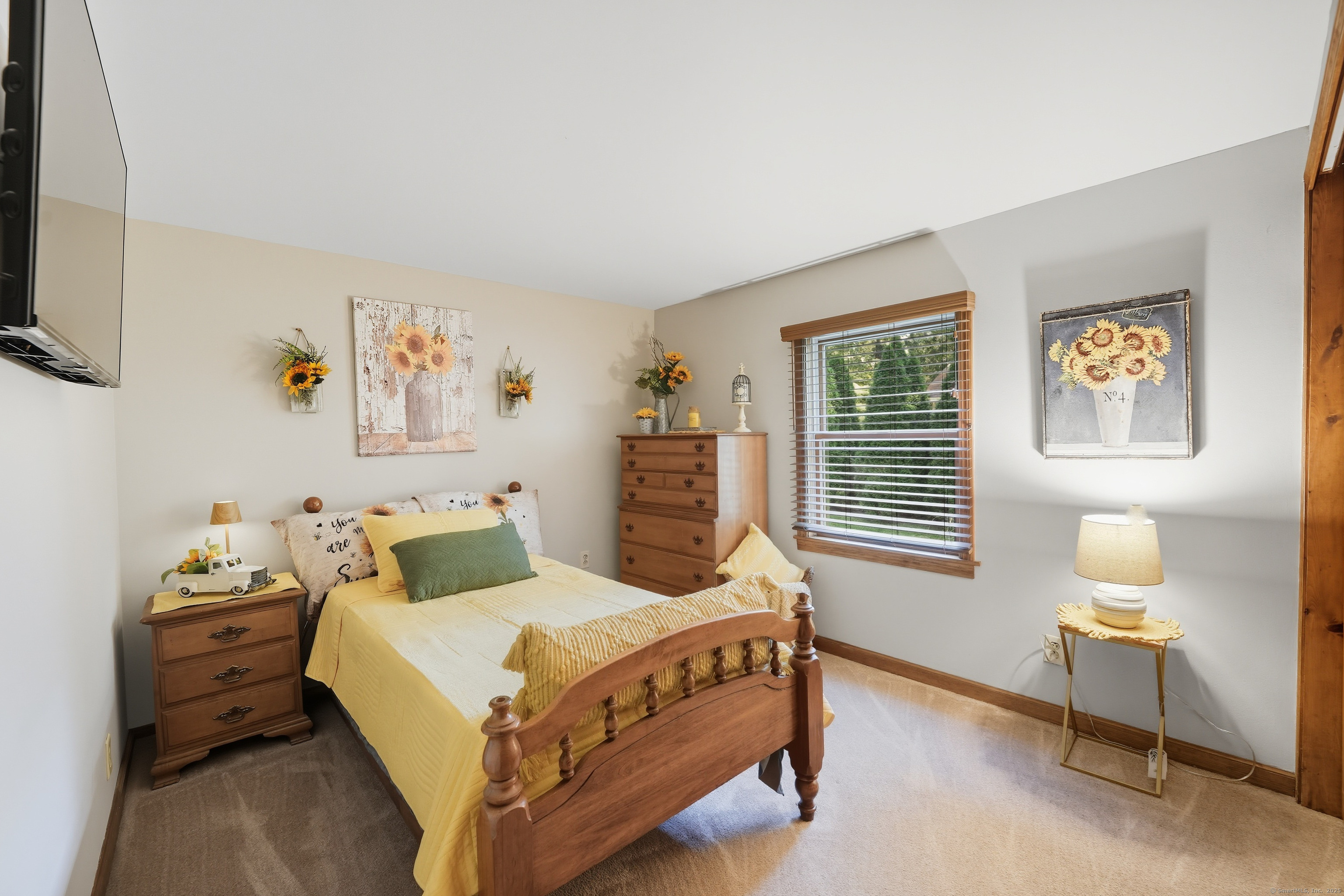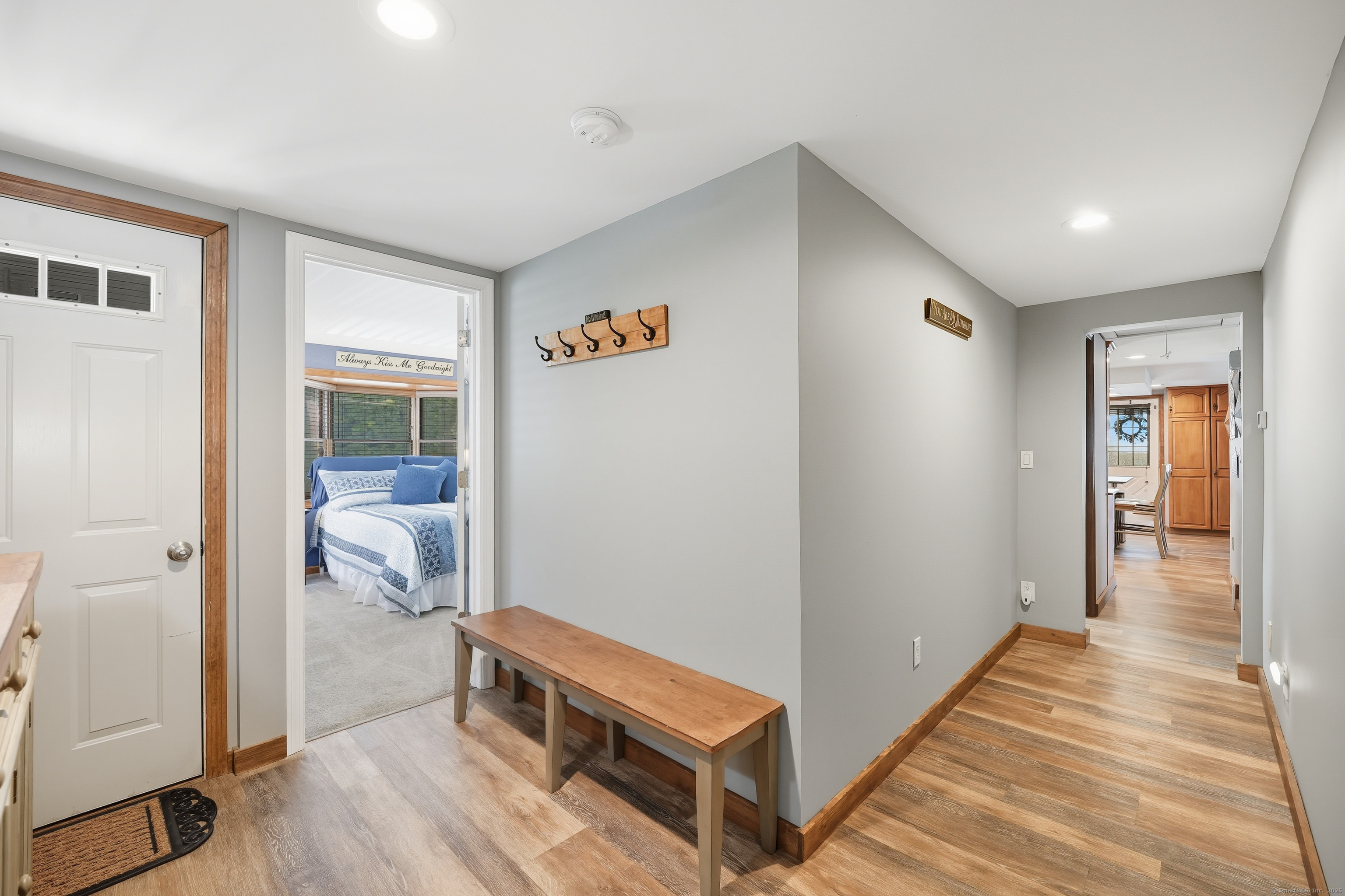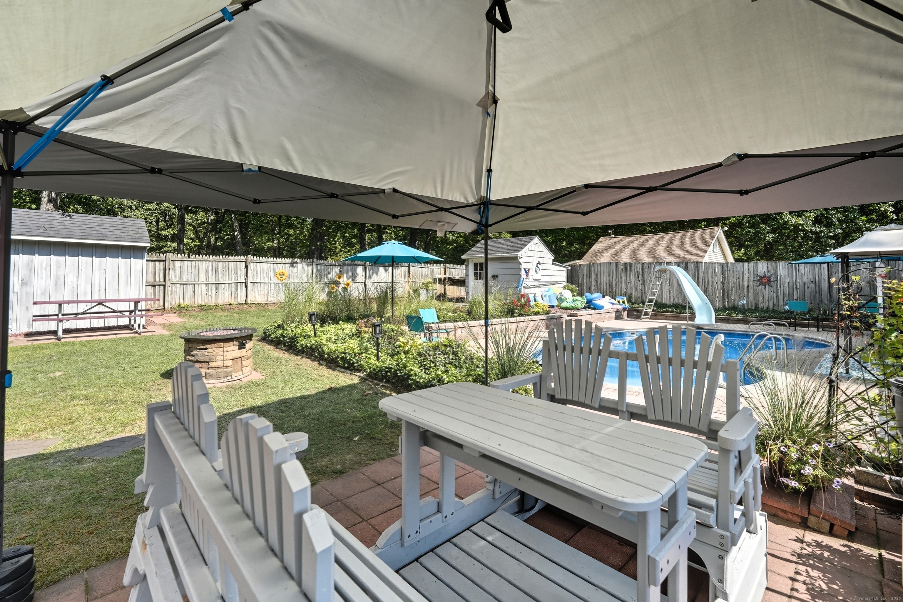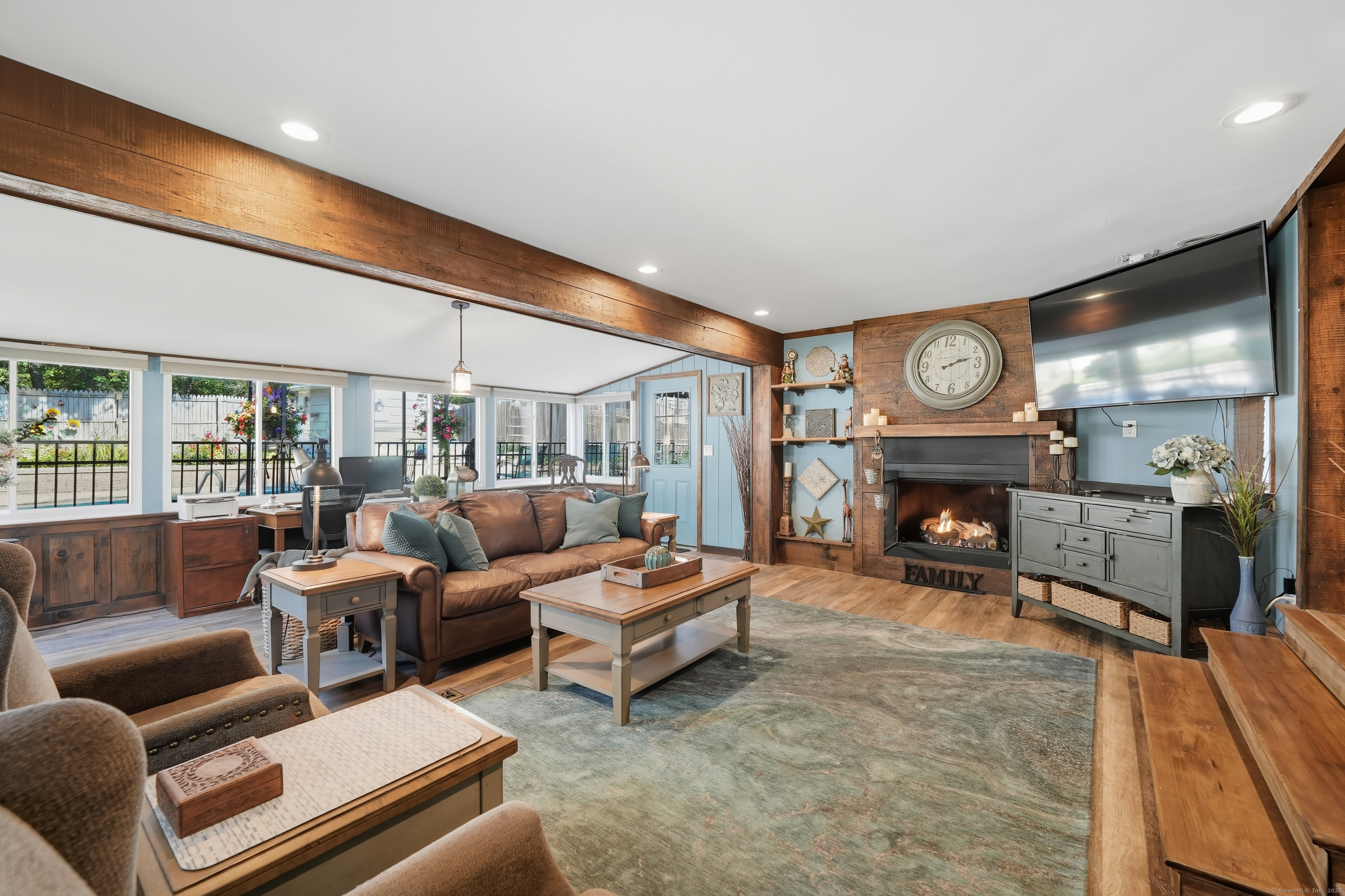 Welcome to the epitome of luxury ranch-style living! This 1,733 sq. ft. custom ranch features 3 bedrooms, 1.5 baths, and an array of impressive updates throughout. The sunken living room is a true showpiece with a gas fireplace, exposed beams framed in reclaimed 1800s barnwood, and oversized windows with remote-powered mini blinds. The spacious kitchen combines style and functionality with a large center island, abundant cabinetry, subway tile backsplash, Dekton Trillium countertops, and luxury vinyl plank flooring. Offering three generously sized bedrooms, one of which features a spacious walk-in closet. A partially finished basement loaded with closet space adds versatile living space, while a whole-house generator provides year-round peace of mind. Step outside to your private backyard retreat complete with an inground pool and a gazebo equipped with a ceiling fan and flat-screen TV-perfect for entertaining. The fully fenced yard and professionally landscaped grounds offer both beauty and privacy. Additional amenities include a one-car garage and two oversized storage sheds. This move-in ready home has been meticulously maintained-nothing to do but unpack and enjoy!