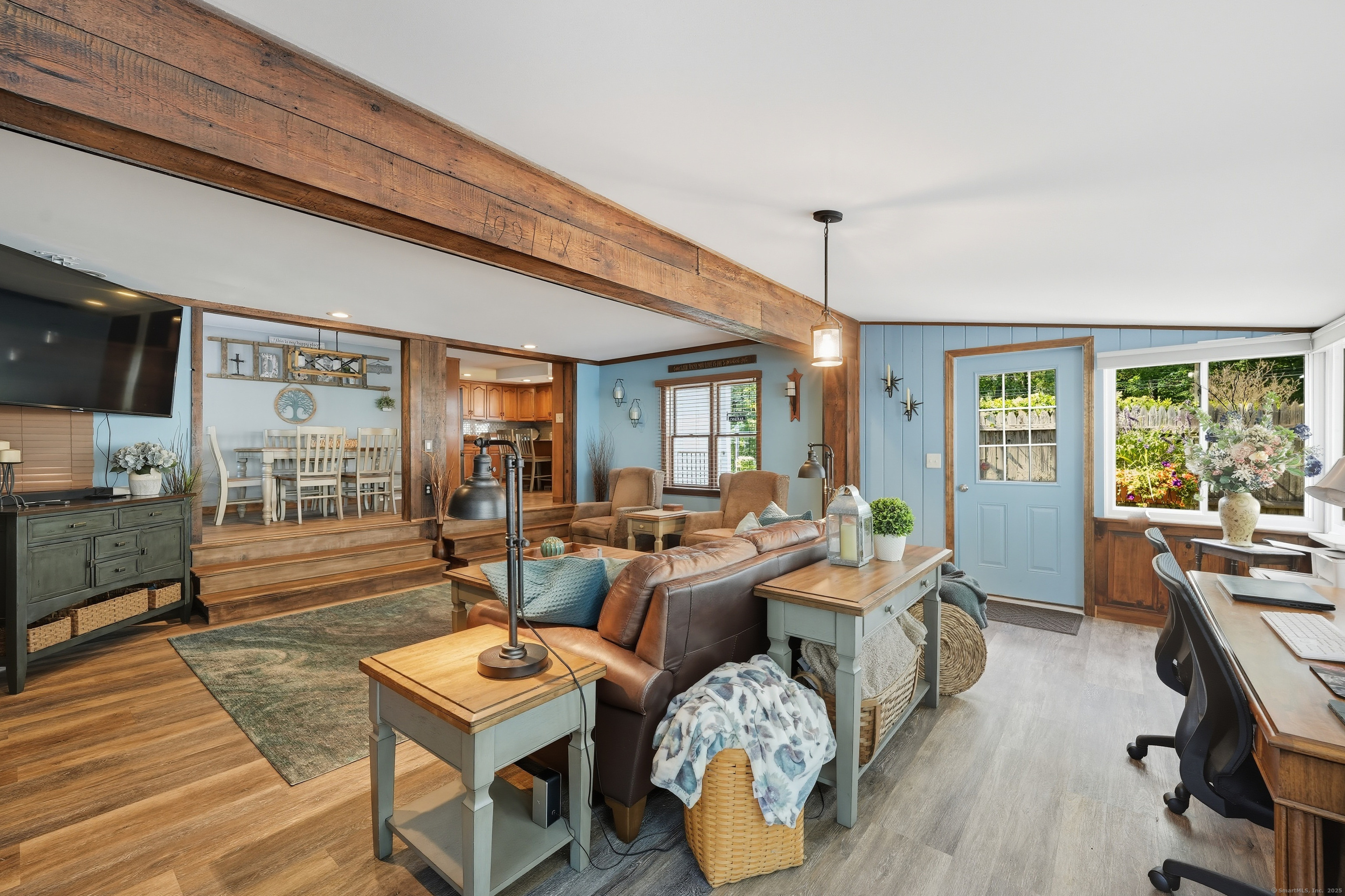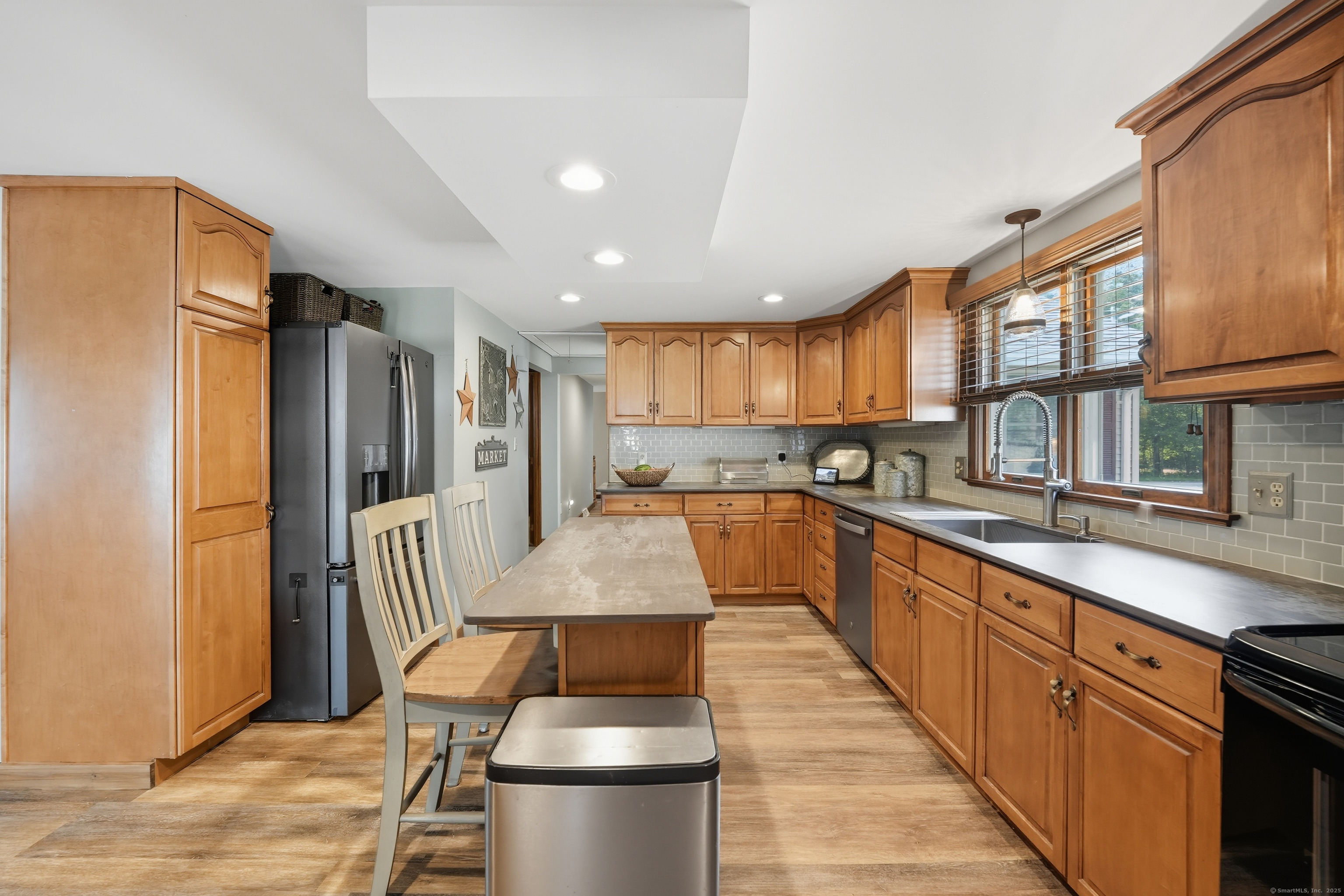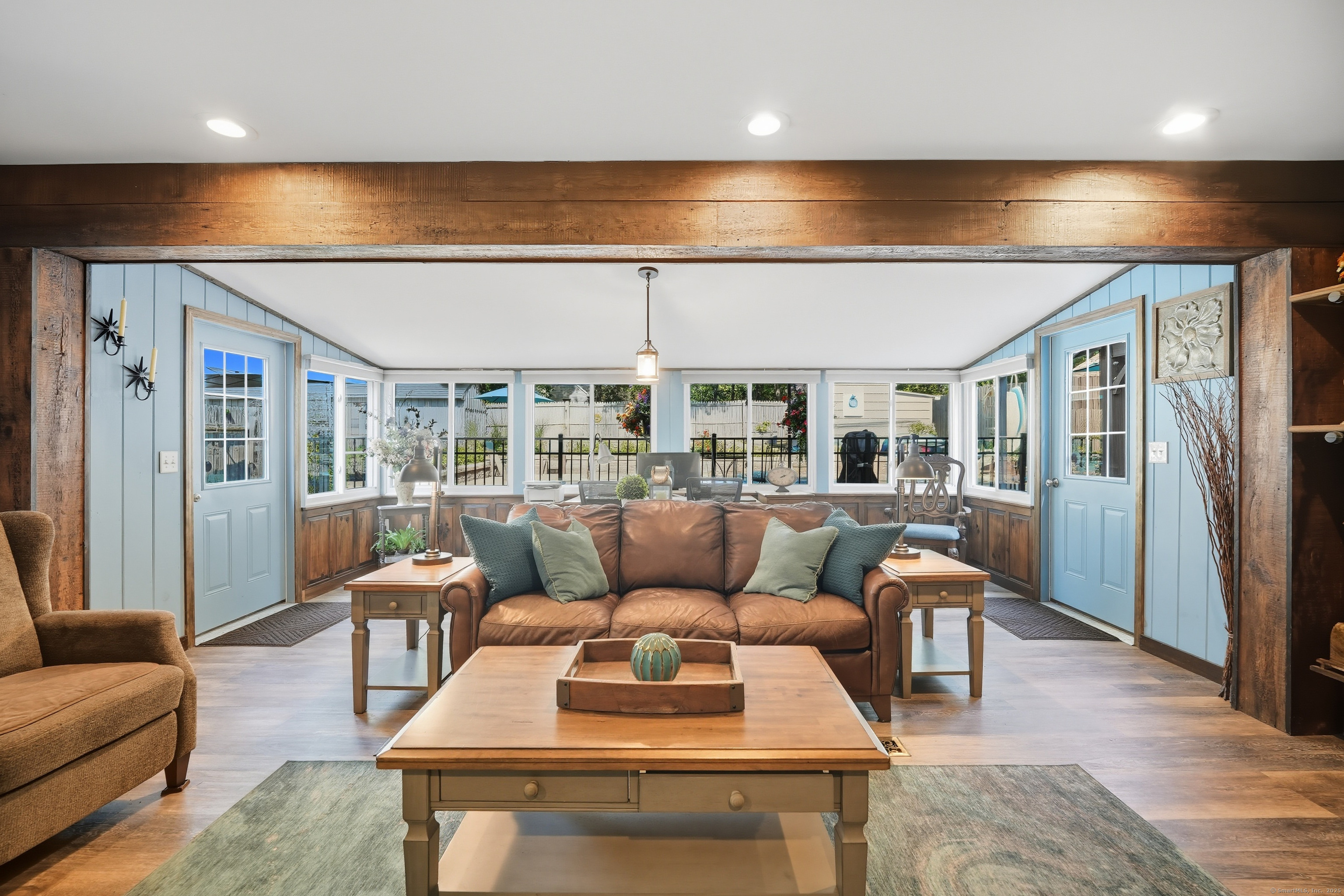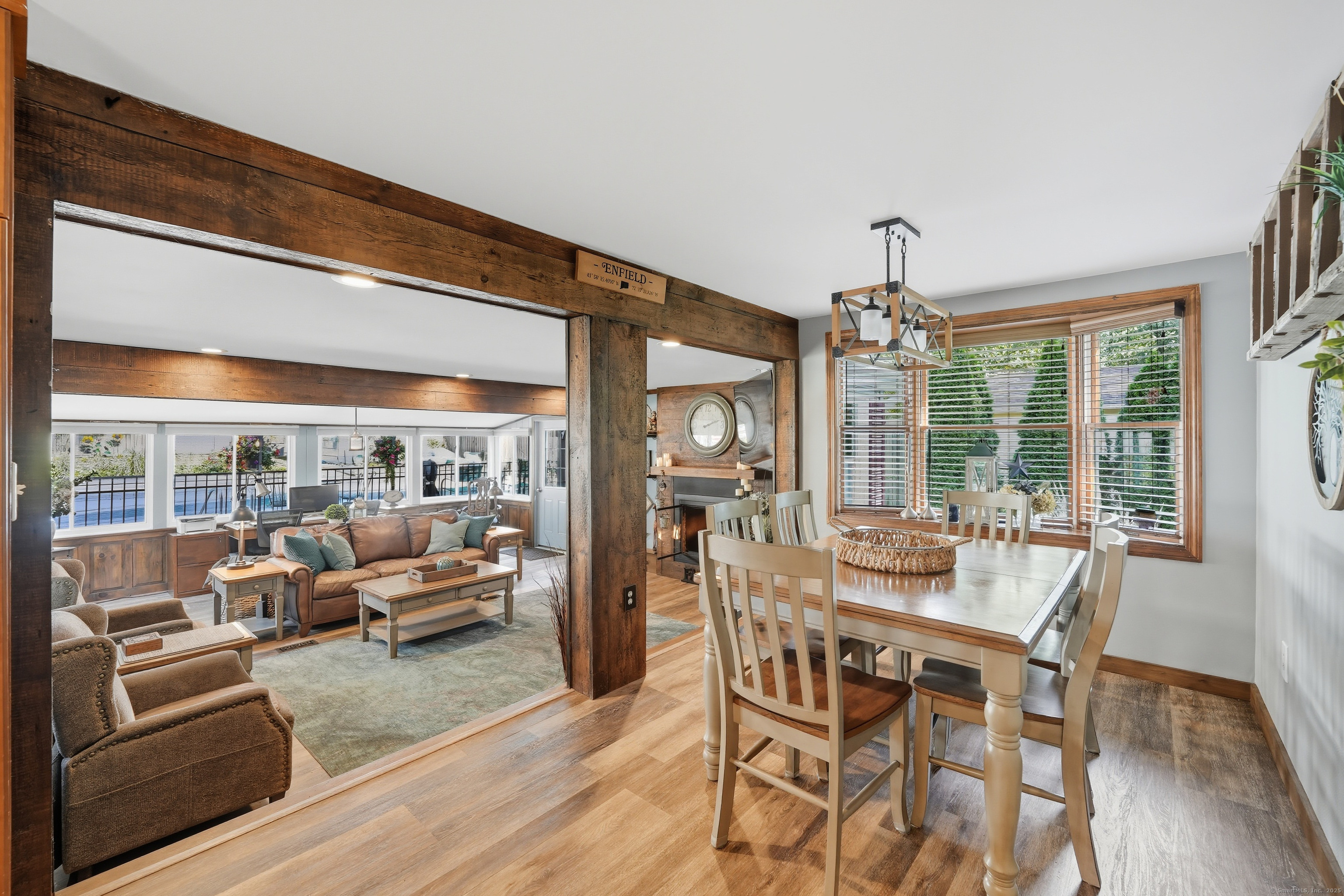 Welcome to the epitome of luxury ranch-style living! This 1,733 sq. ft. custom ranch features 3 bedrooms, 1.5 baths, and an array of impressive updates throughout. The sunken living room is a true showpiece with a gas fireplace, exposed beams framed in reclaimed 1800s barnwood, and oversized windows with remote-powered mini blinds. The spacious kitchen combines style and functionality with a large center island, abundant cabinetry, subway tile backsplash, Dekton Trillium countertops, and luxury vinyl plank flooring. Offering three generously sized bedrooms, one of which features a spacious walk-in closet. A partially finished basement loaded with closet space adds versatile living space, while a whole-house generator provides year-round peace of mind. Step outside to your private backyard retreat complete with an inground pool and a gazebo equipped with a ceiling fan and flat-screen TV-perfect for entertaining. The fully fenced yard and professionally landscaped grounds offer both beauty and privacy. Additional amenities include a one-car garage and two oversized storage sheds. This move-in ready home has been meticulously maintained-nothing to do but unpack and enjoy!