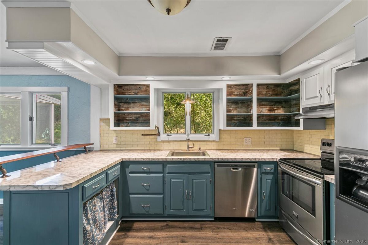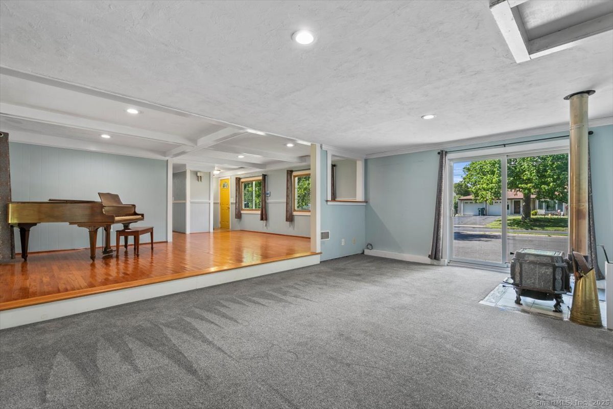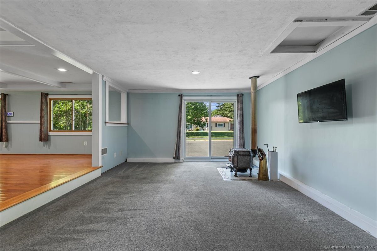 Welcome to this spacious ranch, ideally situated in a desirable neighborhood with sidewalks and easy access to the Farmington Trail. Thoughtfully maintained with many major updates already completed, this home is ready for your personal touch. Offering 3 bedrooms and 2.5 bathrooms, the single-level layout provides ease and comfort. Enjoy three generous living spaces, including a bright living room with a pellet stove, a cozy family room with a wood-burning stove, and main living area with hardwood floors and a dining area that opens to a large screened 3-season porch. The kitchen combines charm and functionality with stainless steel appliances, a breakfast bar, and a roomy pantry. The bedroom wing includes three bedrooms, highlighted by a primary suite with a private half bath. Two additional full bathrooms and convenient main-level laundry complete the floor plan. A newly paved driveway enhances curb appeal and provides ample parking and the security of a fenced in yard. Updates include: Roof, Furnace, Central Air, and Hot Water Heater. This move-in ready ranch offers modern updates, abundant living space, and endless potential.