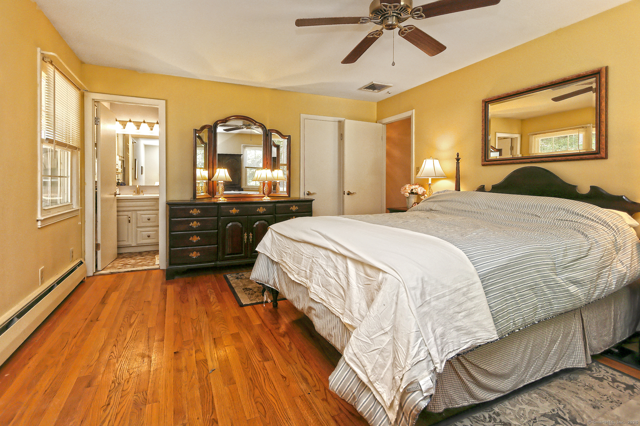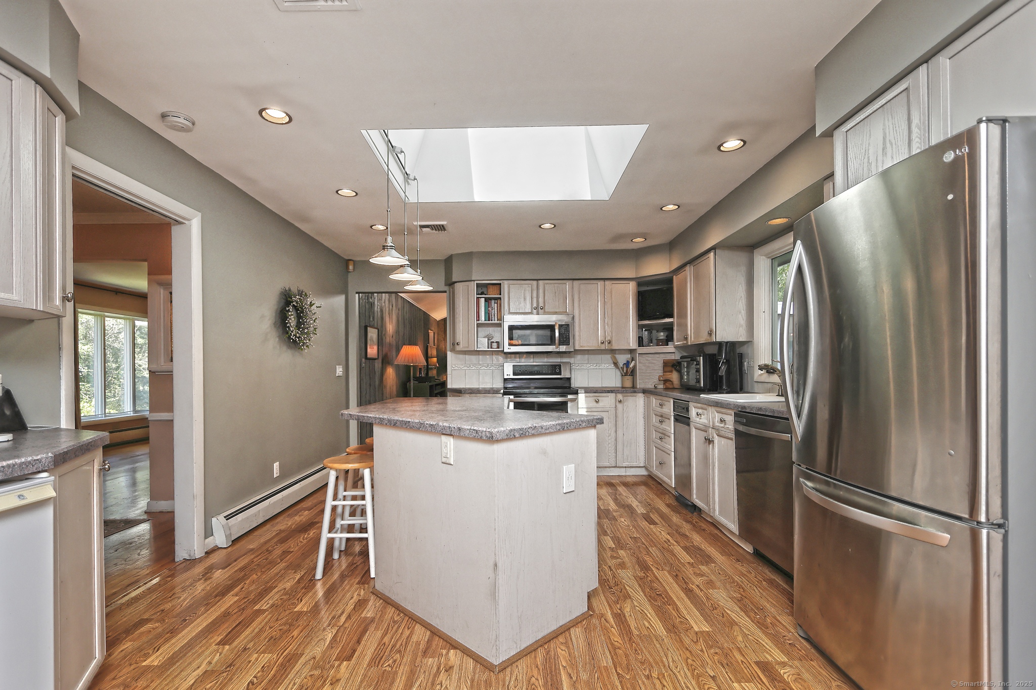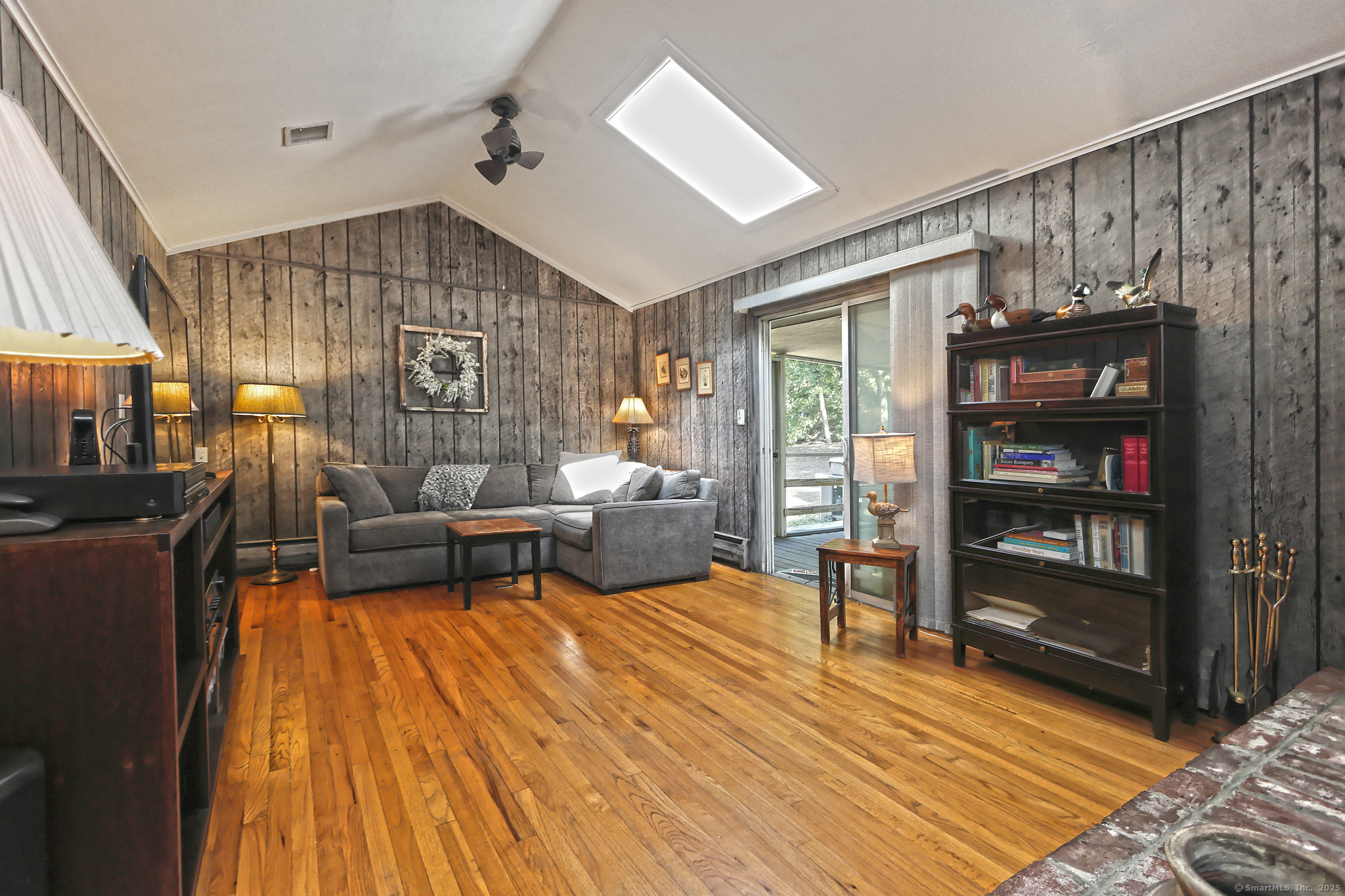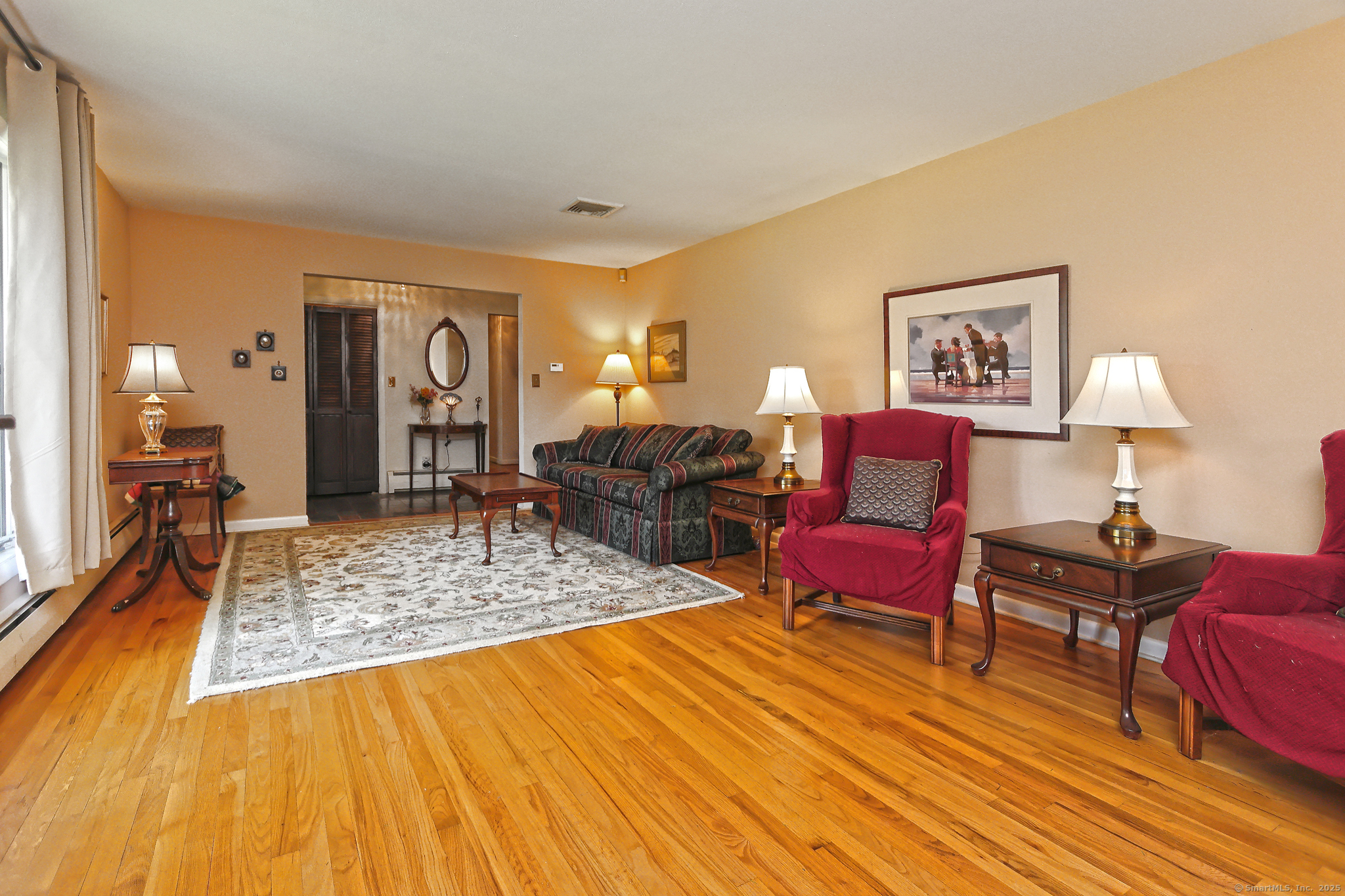Welcome to this beautiful expanded 3-bedroom, 3-bathroom ranch style home in the highly sought-after town of Orange! This spacious home offers a versatile layout with plenty of room to live, work and entertain! Step inside the flagstone foyer with double closets to find a spacious, sun filled formal living room with big bow window, and beautiful hardwood floors, and a formal dining room with beautiful hardwood floors and double window, perfect for hosting gatherings. The rear family room with vaulted ceilings, skylight and tasteful brick fireplace features sliders to the enclosed porch area for outdoor enjoyment. The beautiful eat-in kitchen with large center skylight, large center island, stainless steel appliances and abundance of cabinets, flows seamlessly into a sun filled, picture-perfect breakfast nook/sunroom/office. The primary bedroom features 2 closets, an en-suite full bath with ceramic tile shower. The main hall bath with ceramic tile tub/shower services the additional 2 good size bedrooms with two windows and plenty of closet space. The finished basement adds even more living space, ideal for a playroom/second family room/gym and a bonus room for an office/hobby area. Additional highlights include, 2 driveways, one leading to an under house 2-car garage, ample storage, outdoor space with gardening potential or play and entertaining. Easy access to restaurants, shopping, major highways and award-winning school! Don't miss this great opportunity!