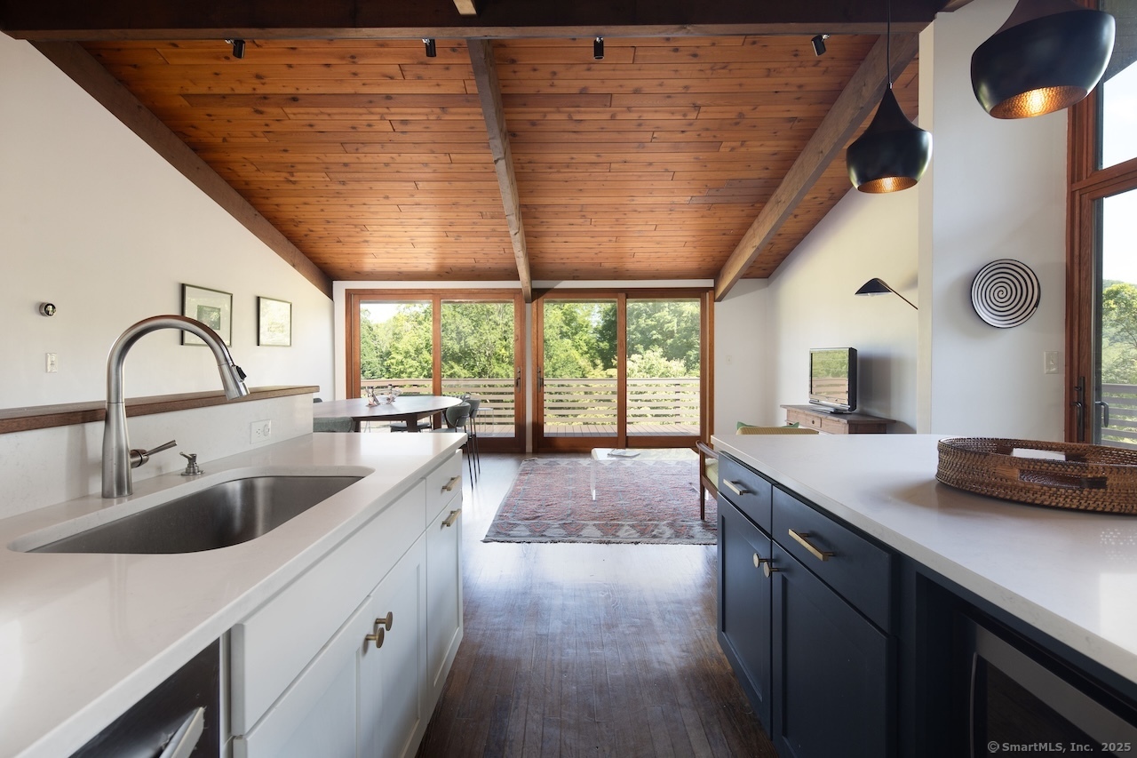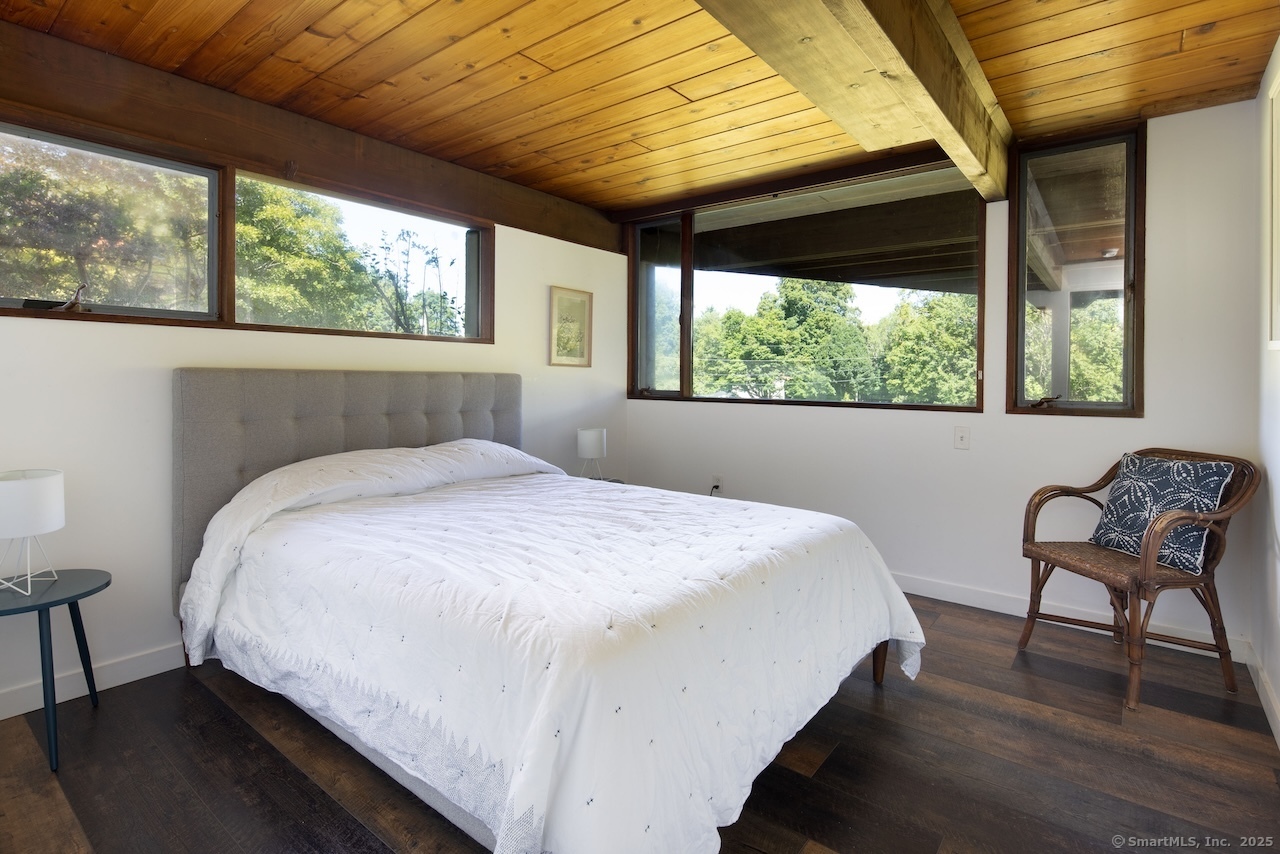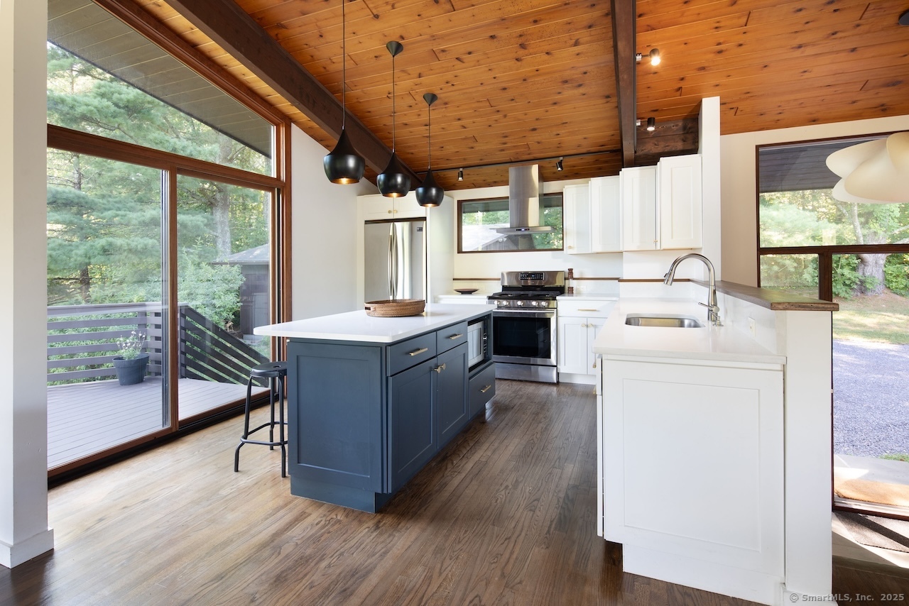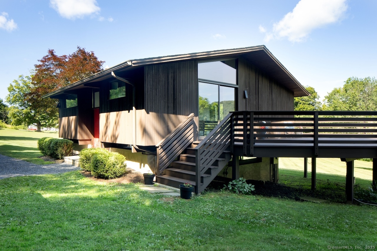 This distinctive mid-century modern Deck House commands seasonal mountain views across the rolling landscape of Northwest Connecticut's Litchfield Hills. Recently renovated with meticulous attention to detail, this contemporary retreat provides 3 bedrooms, a dedicated office space, and 2 full baths - harmoniously blending architectural character with modern comfort. Natural light streams through the signature Deck House windows, highlighting the clean lines and open-concept living spaces that define this architectural style. The thoughtful renovation preserves the home's mid-century aesthetic while incorporating contemporary amenities and finishes throughout the main living areas and kitchen. Three well-appointed bedrooms offer private retreats within the home, complemented by two full bathrooms finished with modern fixtures. The dedicated office space provides a serene work environment. Perfectly positioned for year-round recreation, this home sits just 5 minutes from Lake Wononscopomuc's swimming and sailing opportunities, 25 minutes from skiing at both Mohawk Mountain and Catamount Mountain Resort, and 20 minutes from Wassaic Metro-North Station. The vibrant communities of Lakeville and Salisbury, CT, and Millerton, NY are moments away, as is the renowned Lime Rock Raceway.