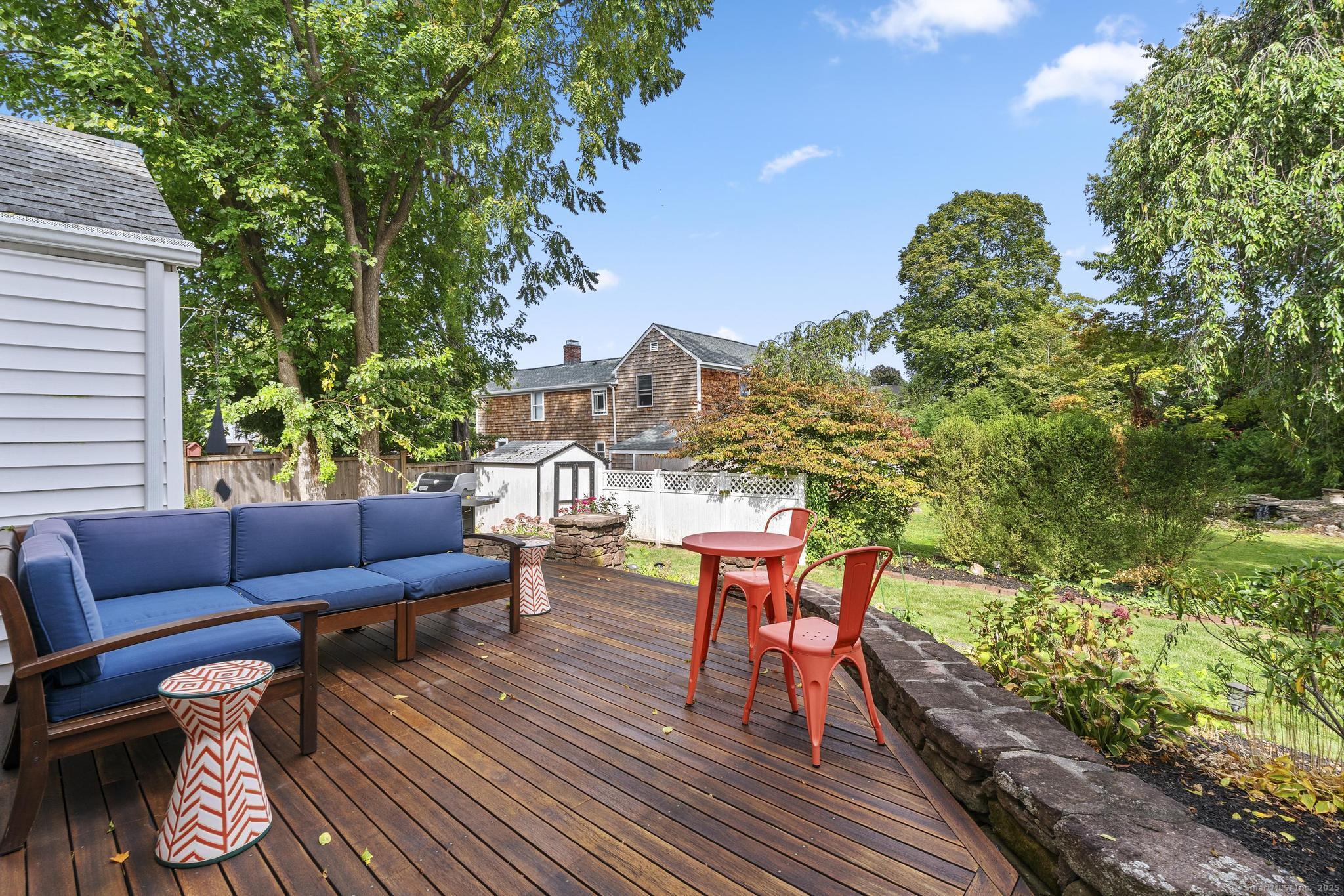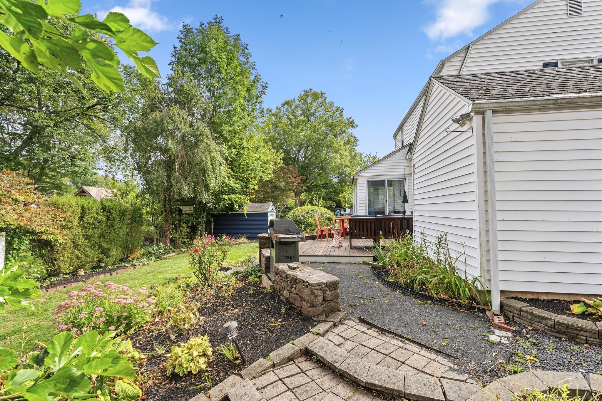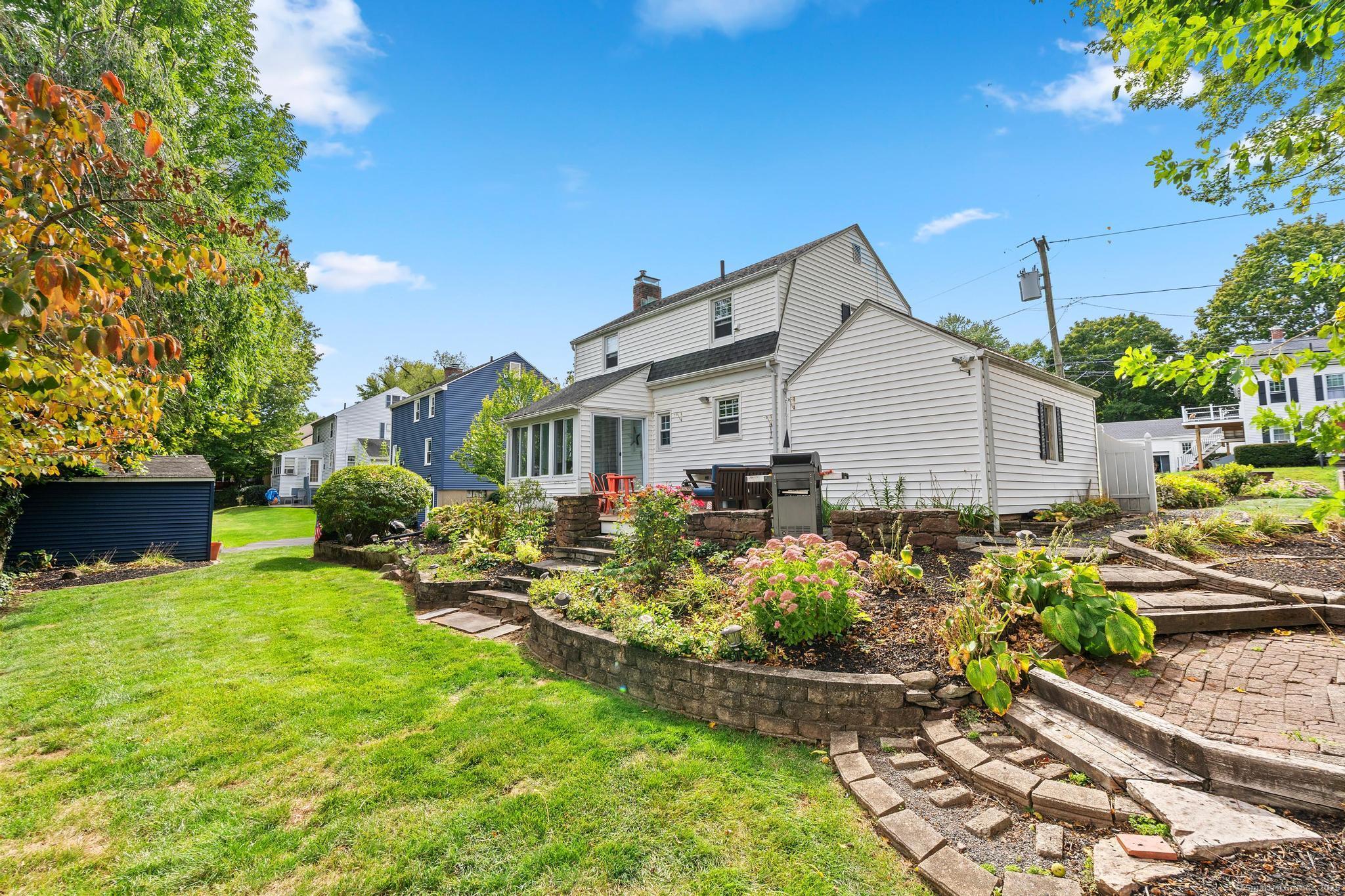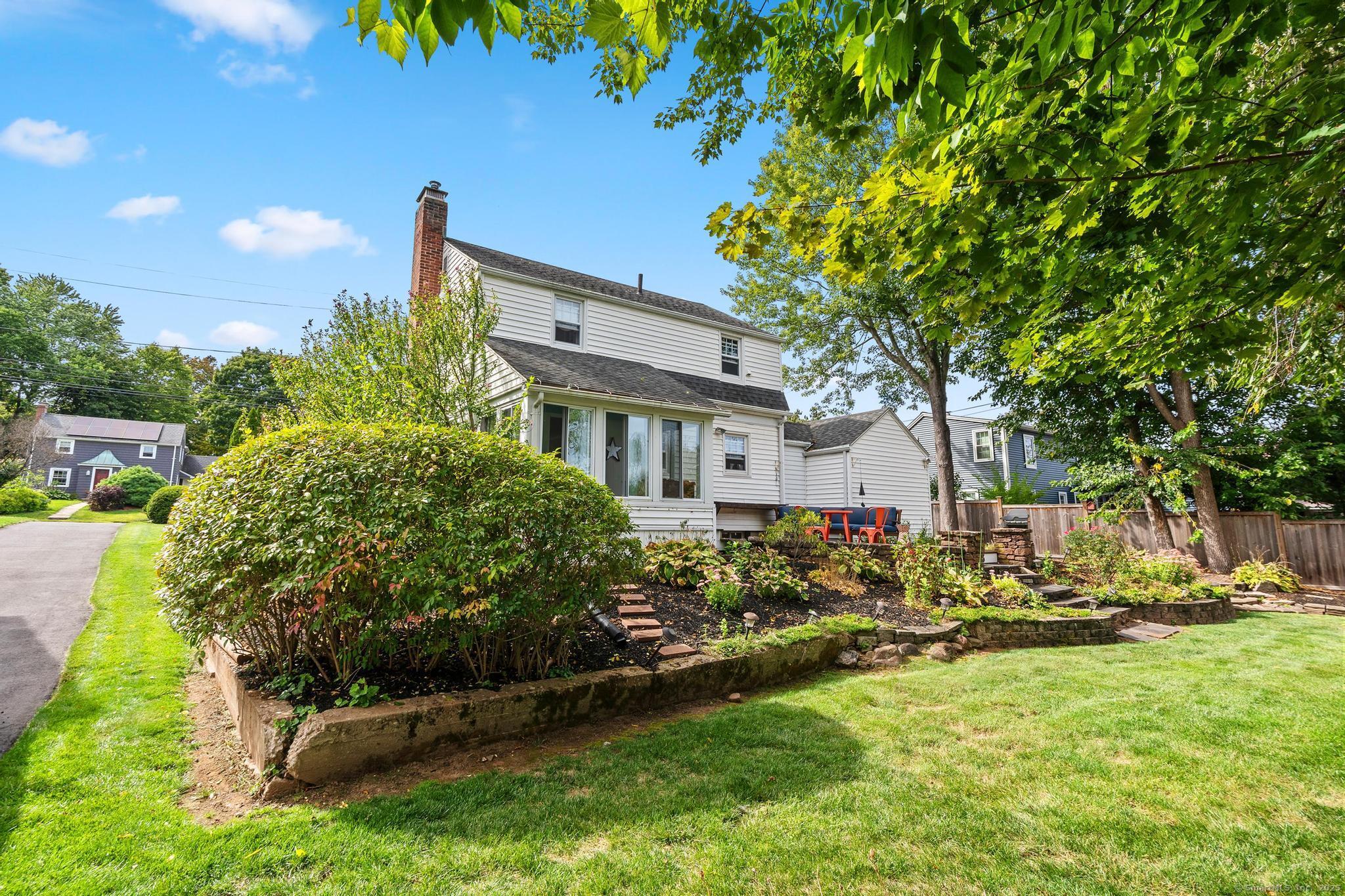 Curb appeal plus! Discover the charm of this exceptional colonial home, ideally situated in a vibrant neighborhood. The heart of the home features a stunningly updated kitchen equipped with top-of-the-line appliances, while the beautifully remodeled bathrooms add a touch of elegance. The expansive living room seamlessly flows into a delightful sunroom/porch, complete with electric heat, perfect for relaxing year-round. Retreat to the generously sized primary bedroom, and appreciate the versatility of the second bedroom, currently used as a home office. This property boasts central air for comfort, refinished hardwood floors that exude warmth, and stylish new light fixtures throughout. The lawn irrigation system, including drip irrigation for window boxes and front garden beds, ensures your landscaping remains pristine. Step outside to a professionally landscaped yard that includes a new paver walkway, a luxurious mahogany front stoop, and an inviting mahogany deck, as well as a convenient shed in the backyard for your storage needs. Experience the ultimate in convenience, as this home is just a short walk to Blue Back Square and West Hartford Center, where a wealth of shopping, dining, and entertainment options await, and a leisurely stroll brings you to the movie theater, Whole Foods, a variety of restaurants, and the public library. This location offers an extraordinary lifestyle that you won't want to miss! Truly a wonderful place to call home!