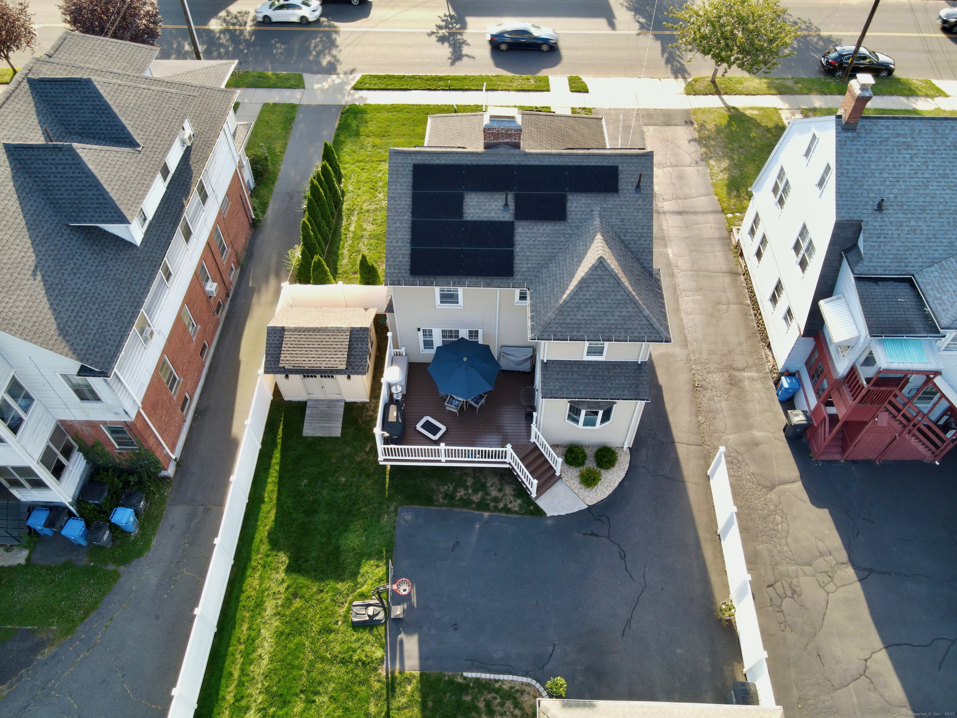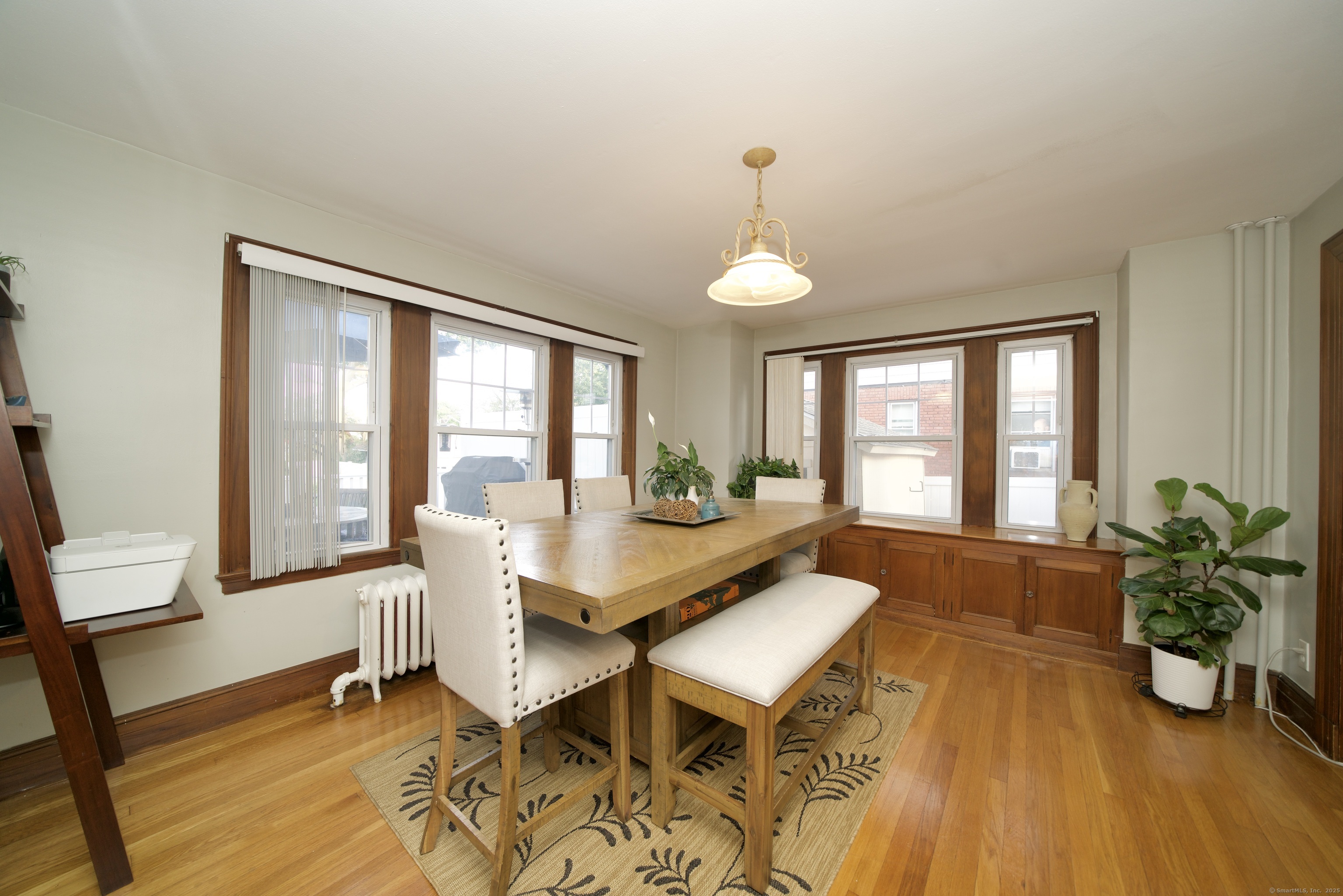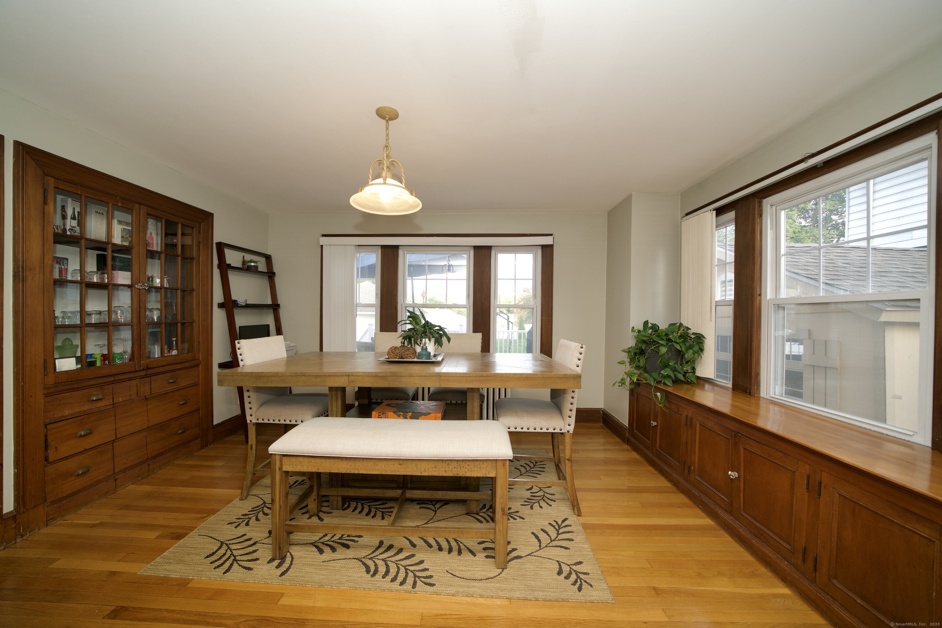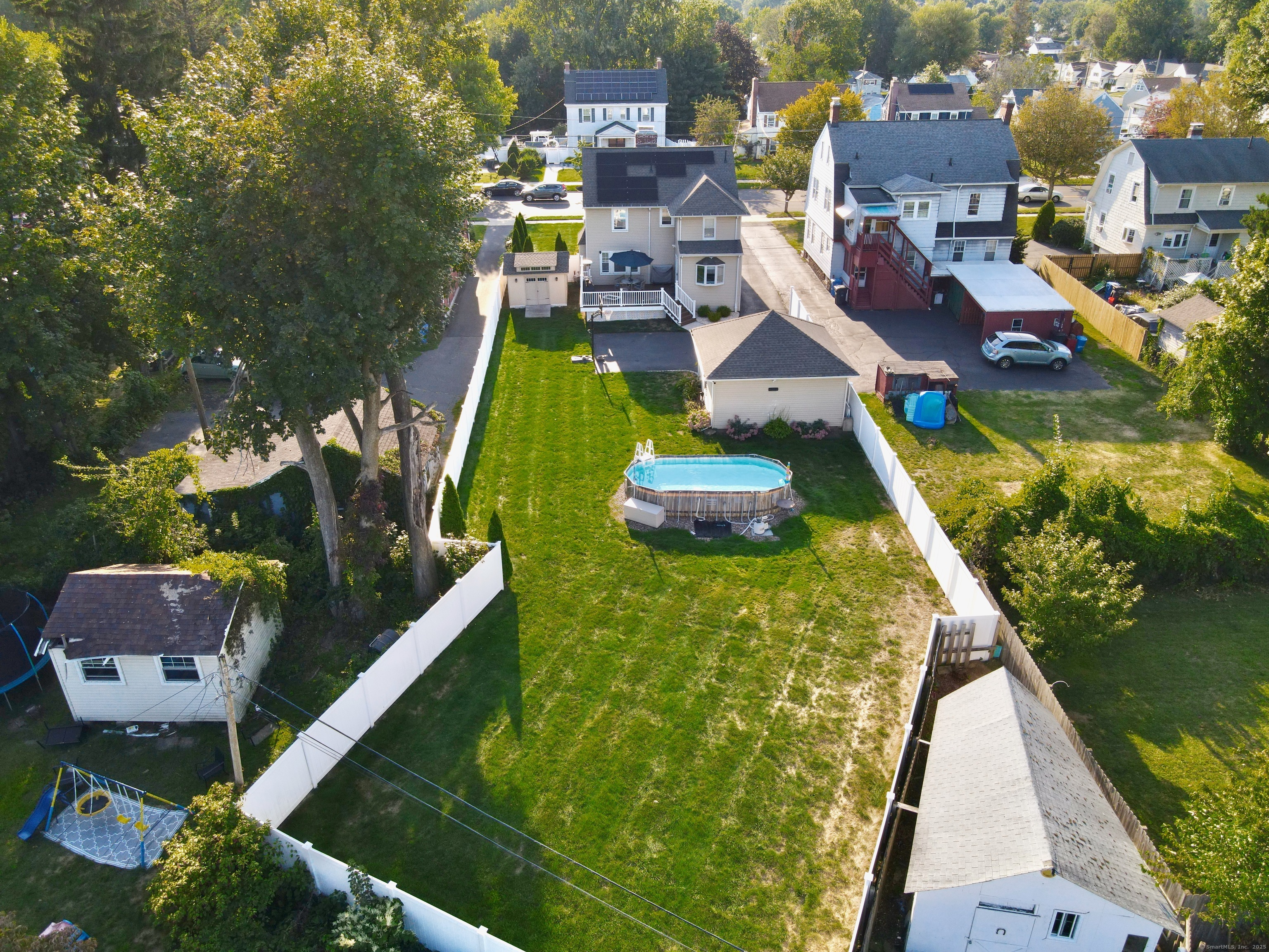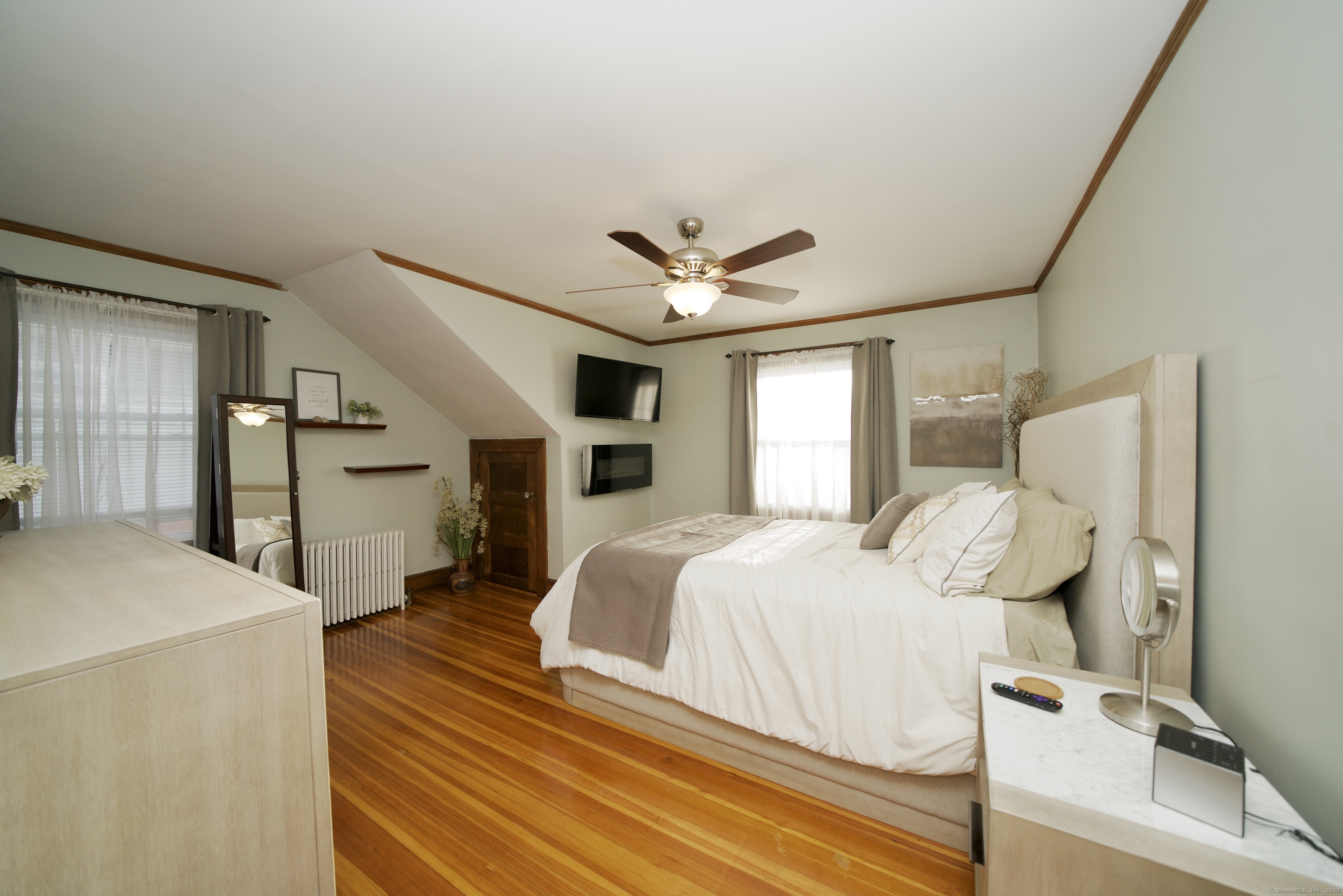 H & B Due Wednesday 9/24 5pm - Welcome to this timelessly elegant home that beautifully blends classic charm with modern comfort. Step onto the inviting covered front deck, complete with privacy awnings-perfect for enjoying crisp fall evenings. As you enter through the gracious front entryway, you're immediately greeted by the rich warmth of a gorgeous original wood staircase and gleaming hardwood floors that flow throughout. The living and dining rooms feature large, updated windows w/natural light & highlight the intricate original wood trim, creating a cozy yet sophisticated ambiance. The updated kitchen flows seamlessly into a charming breakfast nook-the perfect spot for casual meals & morning coffee. Step out onto the TREX deck and into your own backyard retreat-fully fenced & beautifully landscaped, ideal for entertaining. Whether you're hosting summer parties or relaxing in the above-ground heated pool, this backyard oasis is perfect. Upstairs, you'll find 4 generously sized bedrooms, each featuring hardwood floors, newer windows & AC for year-round comfort.1 bedroom offers a dressing/makeup room-a luxurious touch, another includes access to a walk-up finishable attic, perfect for transforming into your dream walk-in closet, studio, or home office. Upgrades include a newer roof, windows, vinyl fence, driveway, shed,2 car detached grg, boiler, hw heater & energy-saving solar panels.This is more than a home-it's a lifestyle of charm, comfort & elegance. You