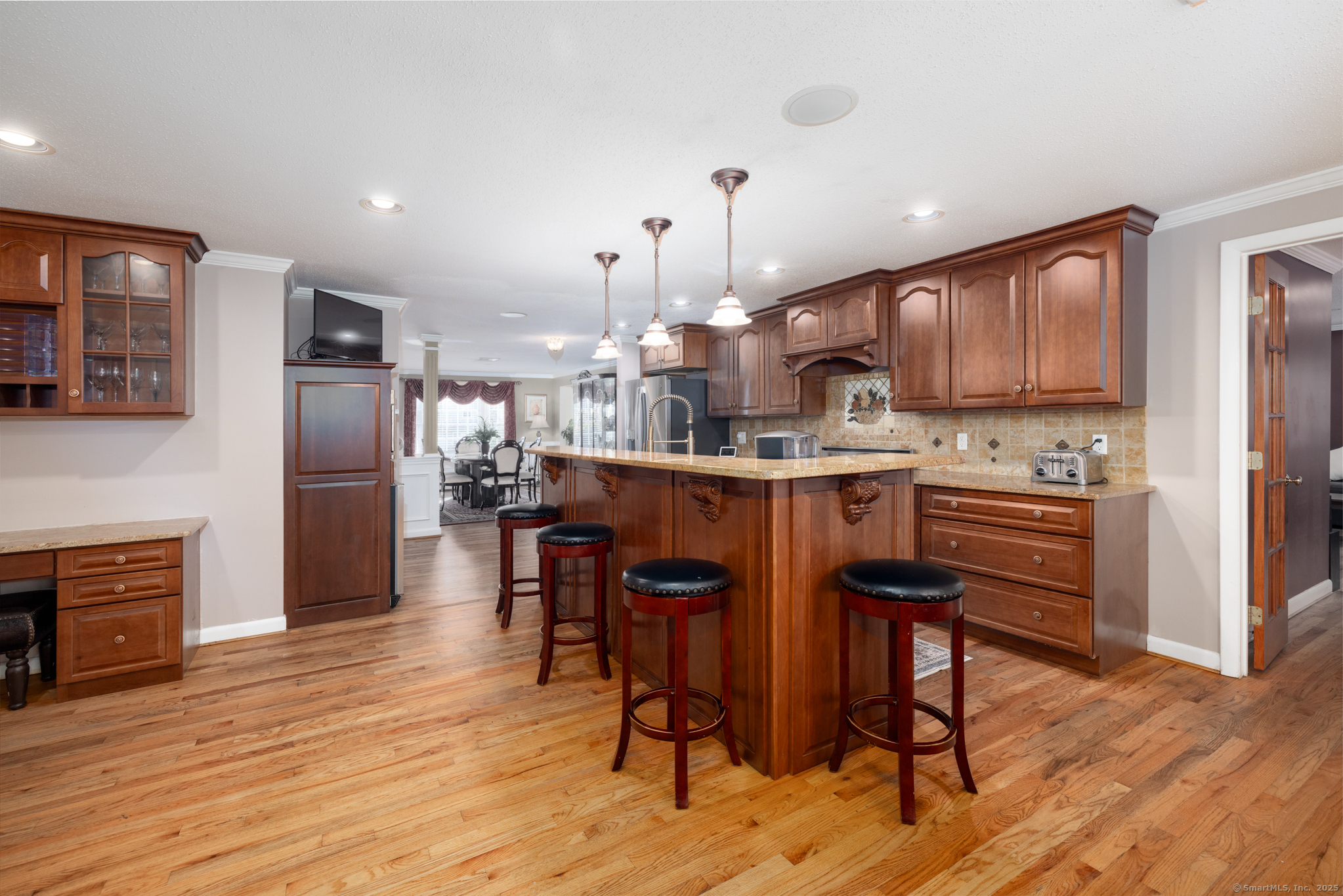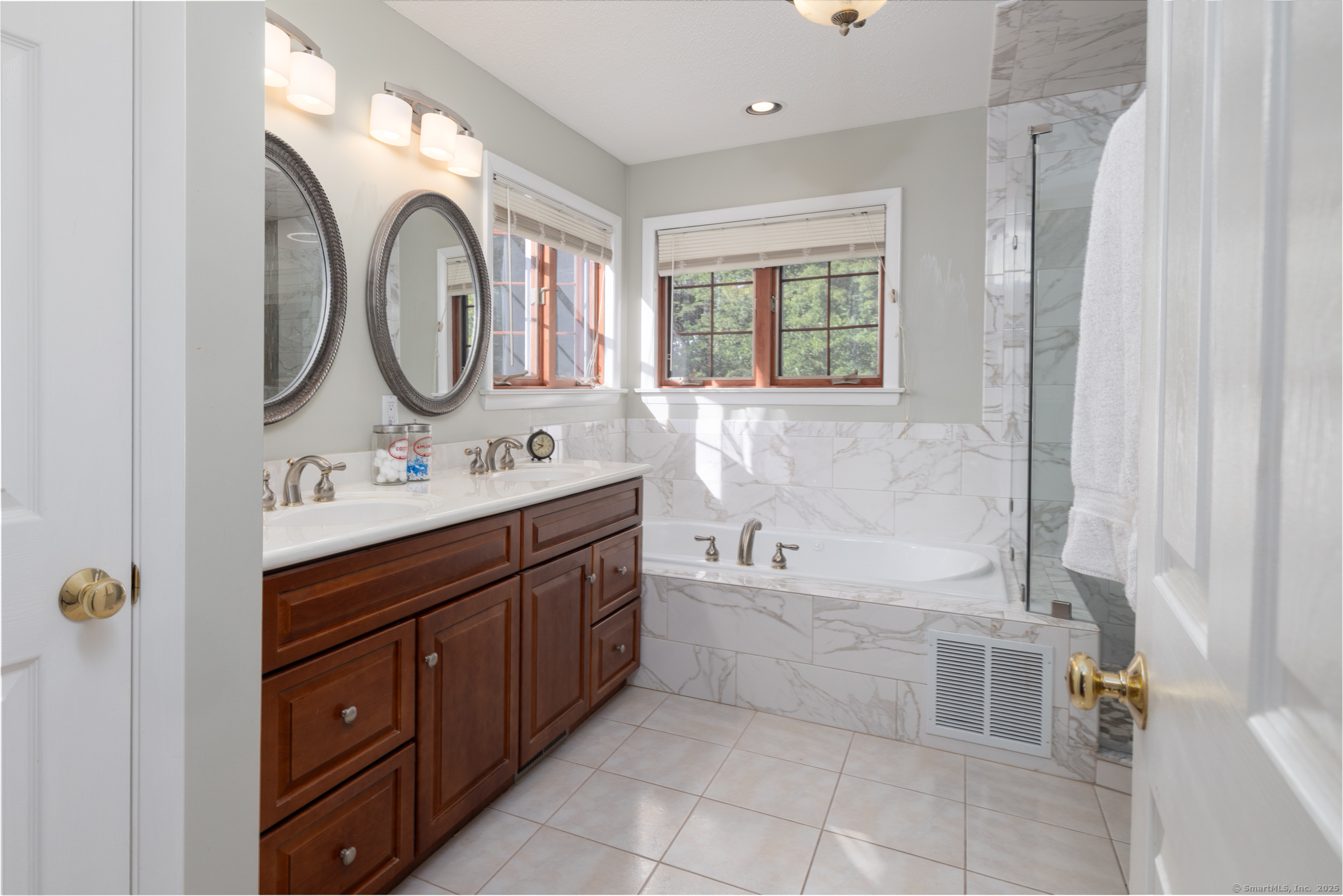 Welcome home to this stunning and spacious Colonial style home located in the desirable and sought after West End of Hartford. With its classic brick and wood exterior the property offers a wonderful blend of historic charm and modern living. Updated for a contemporary lifestyle, it features 4 bedrooms, 3.5 baths, beautiful hardwood floors and crown molding throughout, an attached 2 car garage, central air and a house speaker system. Step inside and discover an expansive 3,517 sq ft layout designed for both comfortable living and elegant entertainment. The formal dining room with Wainscoting flows seamlessly into the open gourmet EIK with granite counters, stainless steel appliances, custom cabinetry and breakfast area. Just off the EIK is the sunroom where you can relax and enjoy the sunset. It can also be used as a gym or home office. Other highlights of the main level are the formal living room with a wood burning fireplace which is perfect for those chilly New England evenings, a half bath just off the spacious family room which has sliders leading to the custom stone patio and outdoor kitchen in the private backyard. On the second level you will find a convenient laundry room, 4 bedrooms and 3 full baths which include a well-appointed private, primary suite with vaulted ceiling, skylights, custom walk-in closet, full bath with whirlpool tub, separate shower and water closet. Two of the bedrooms share a full bath and the fourth bedroom has an ensuite bathroom.