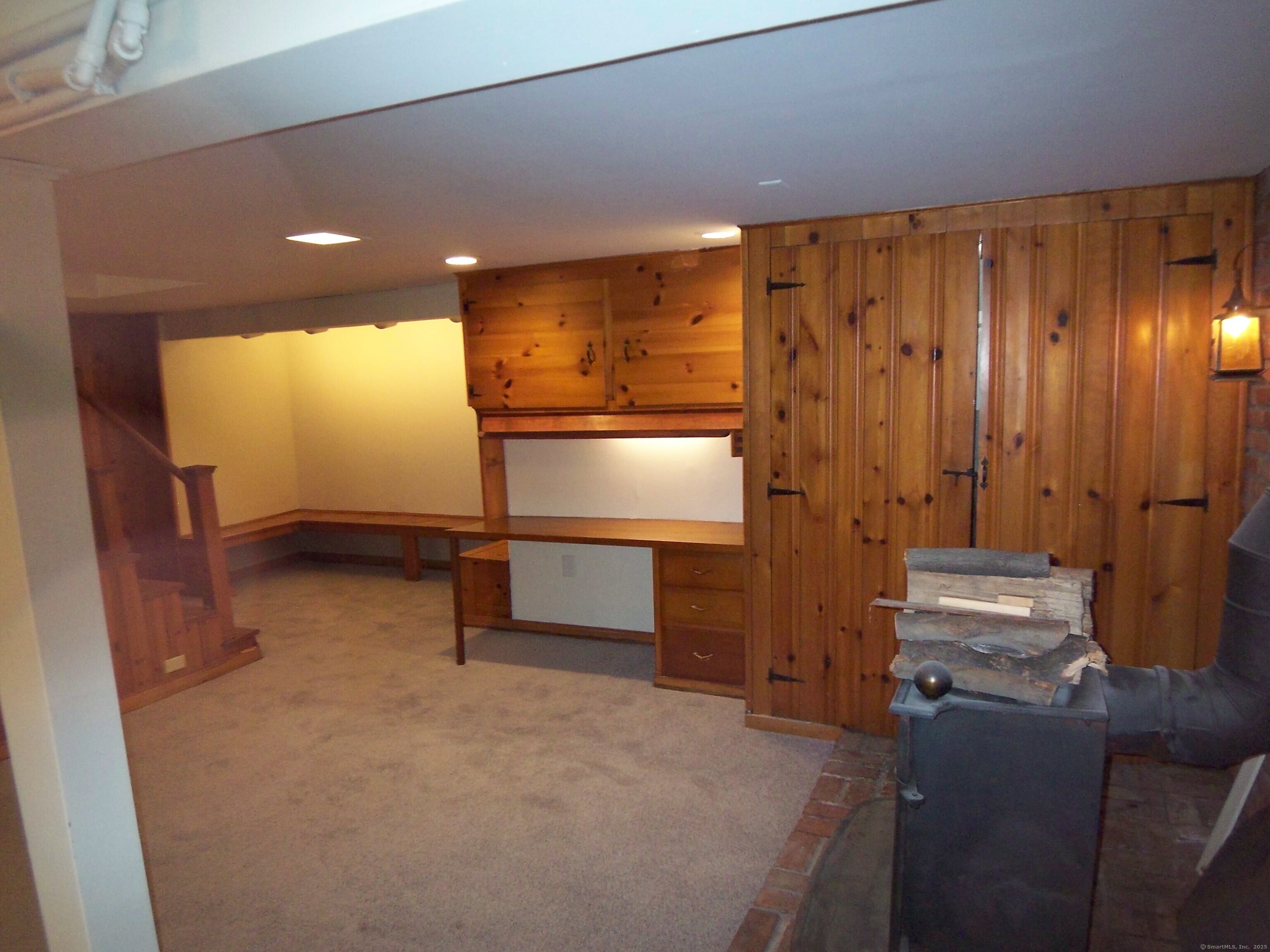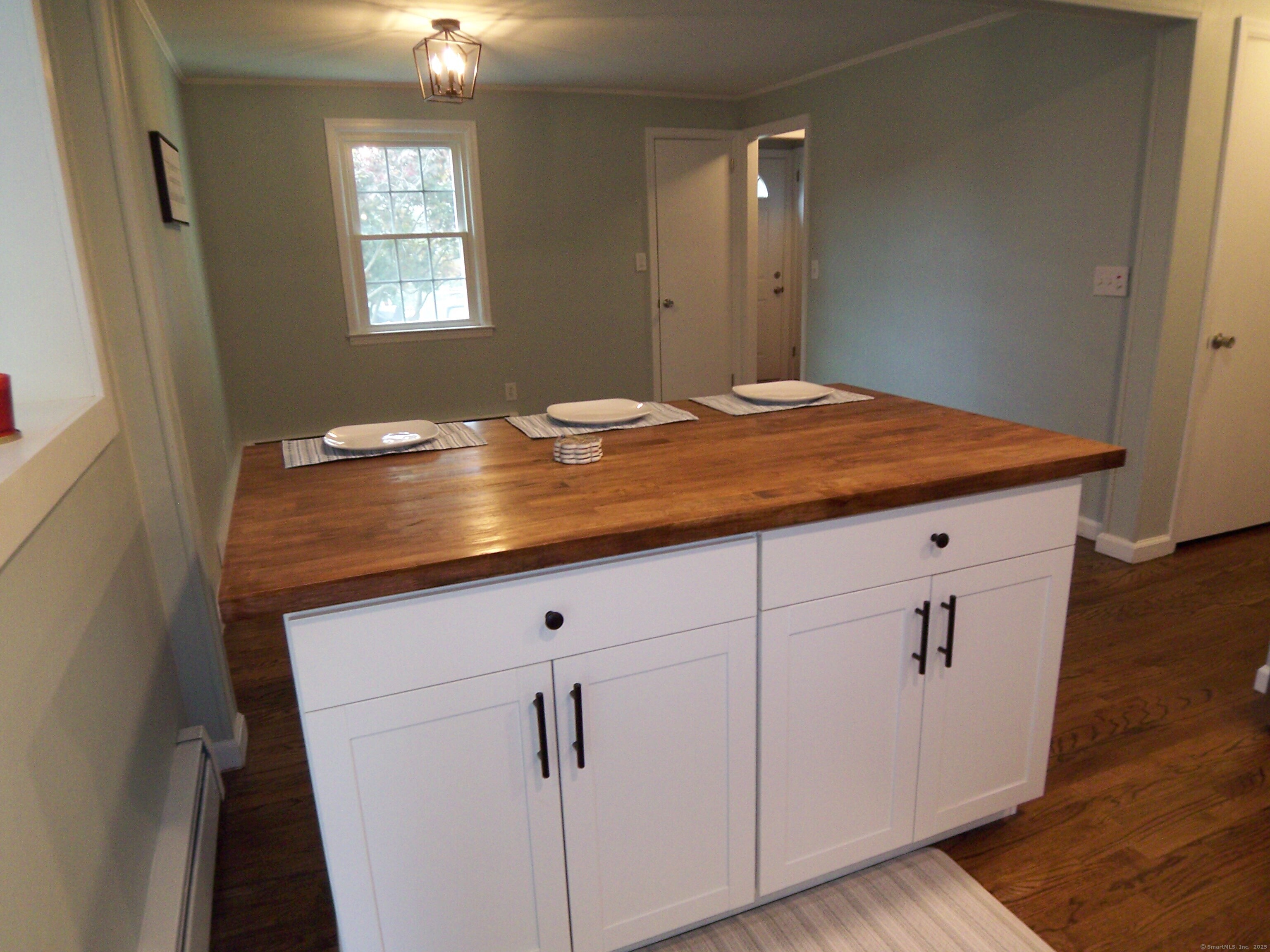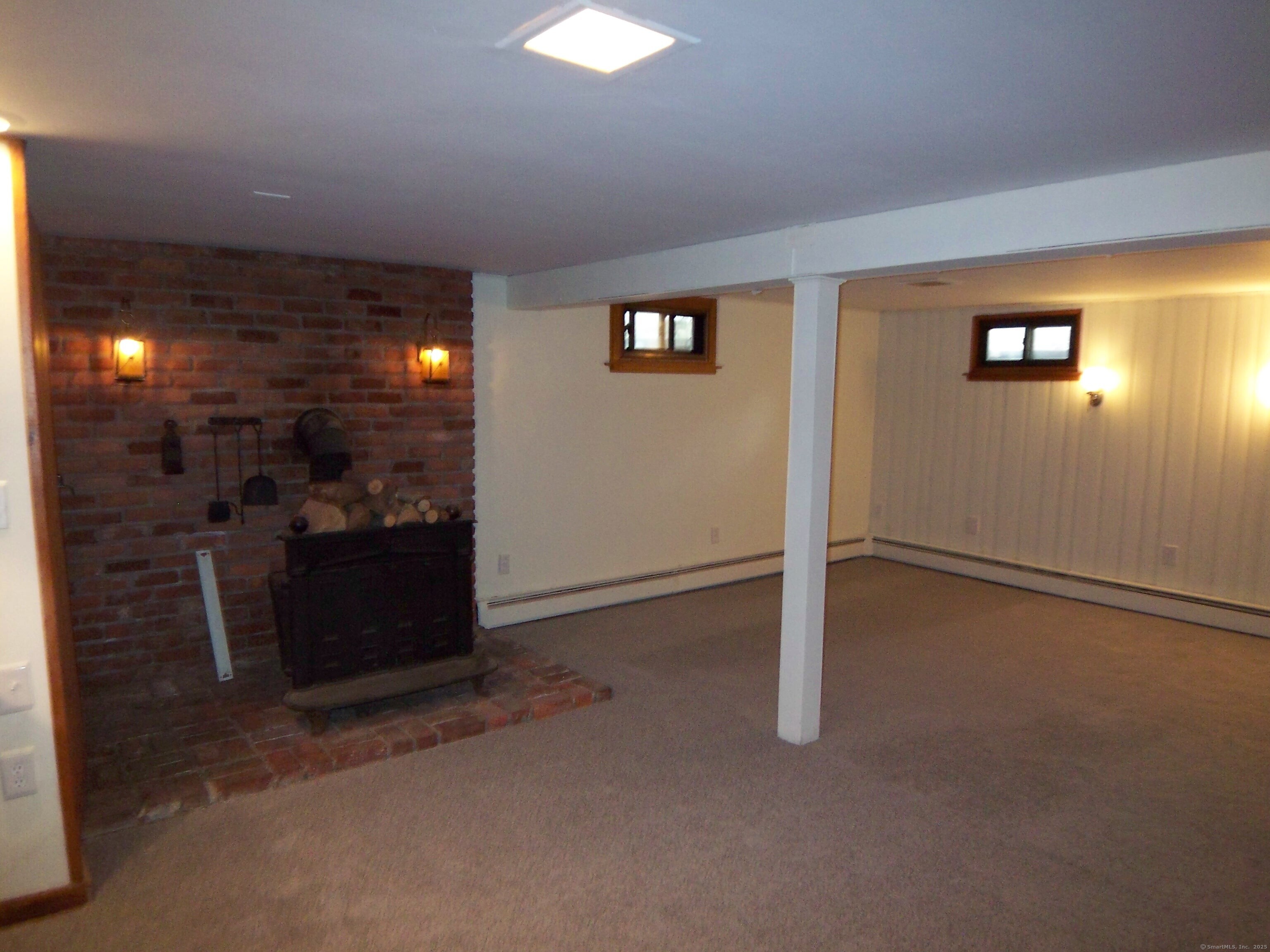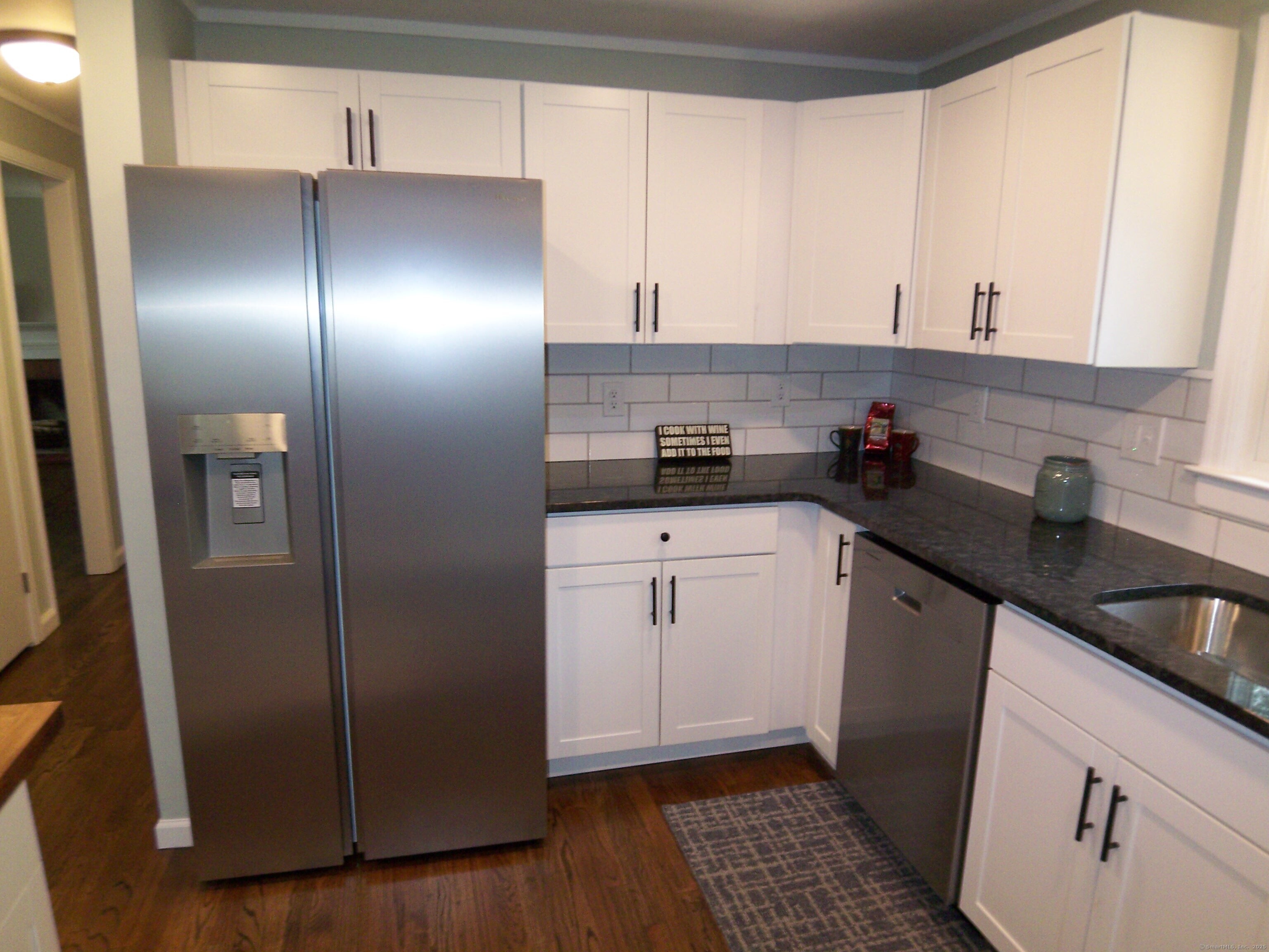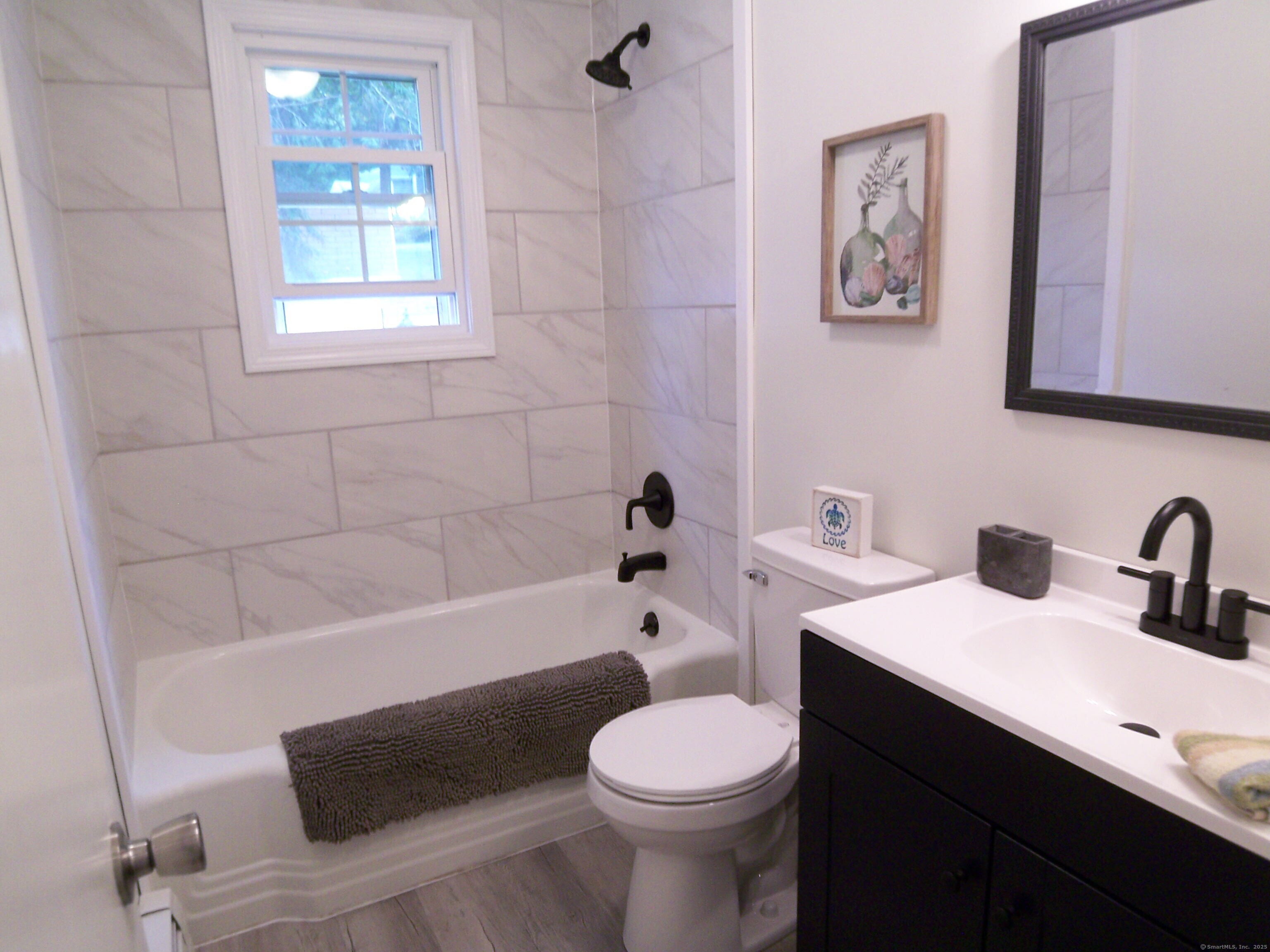 Welcome to this spacious, beautifully renovated cape home in a sought after, quiet neighborhood in Ellington! A totally new kitchen is graced with shaker cabinets, granite counters, ss appliances,custom tile backsplash & a butcher block island & is open to the dining room & a huge bonus room off the kitchen. 1st and 2nd floor full bathrooms have been tastefully updated with new plumbing fixtures, tile surrounds, flooring & lighting. The gorgeous new kitchen floor has been finished to match the refinished hardwoods on both levels. The 1st floor bedroom has an 8' closet & the 2 upstairs bedrooms are large & also have tons of storage. In the living room, there's a cozy fireplace for those winter nights & on the lower level, yet another large finished, heated space to relax or entertain! The backyard is private with a huge deck & even a tiki bar on the end. A large storage shed will house all of your equipment & toys. This home has vinyl siding, energy efficient windows & a newer architectural roof. The location is fantastic and peaceful, yet close to everything & 6 minutes to 84. At almost 2200 sq ft including the lower level, you'll want to call this beautiful house your home for many years to come!