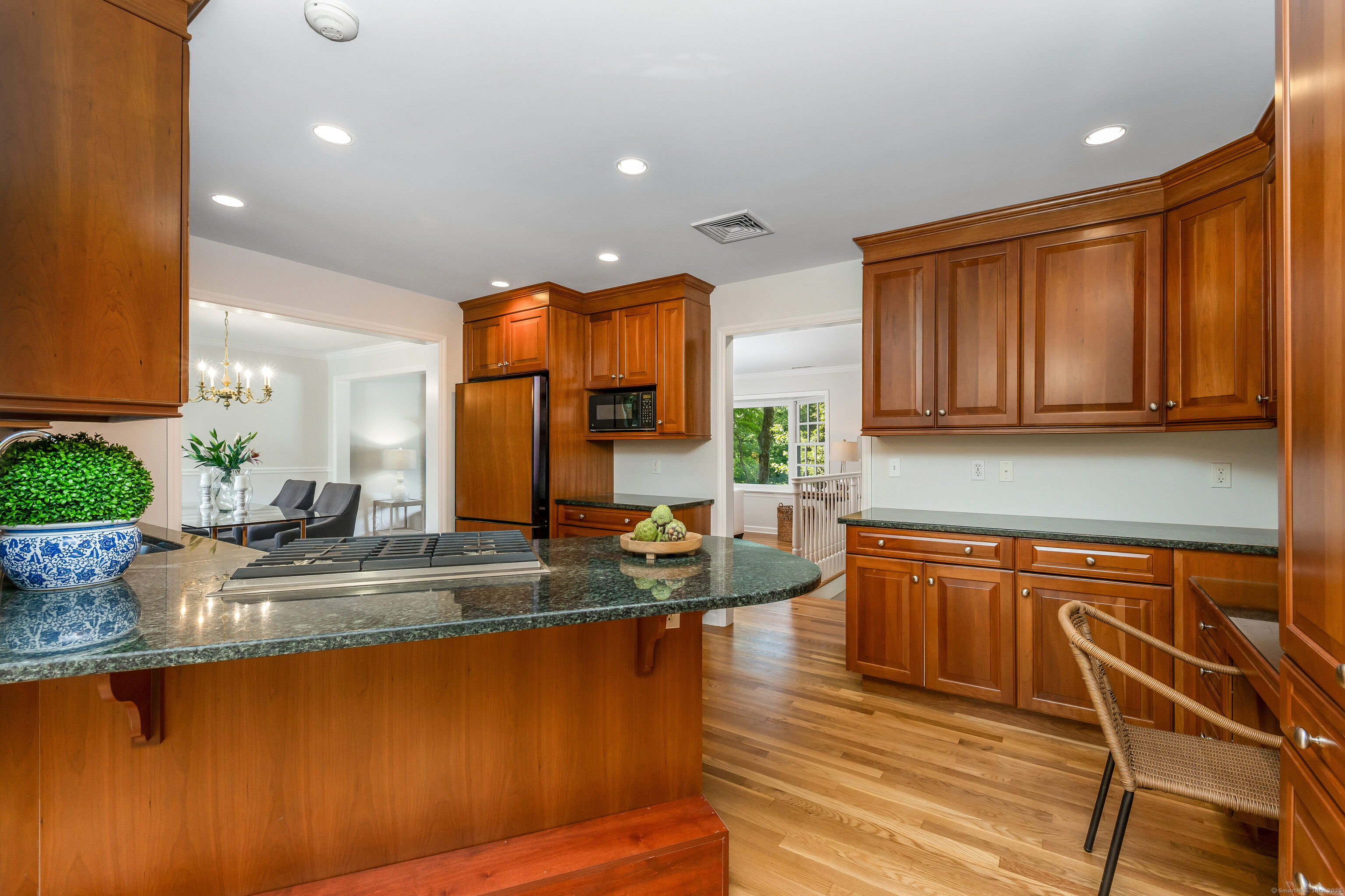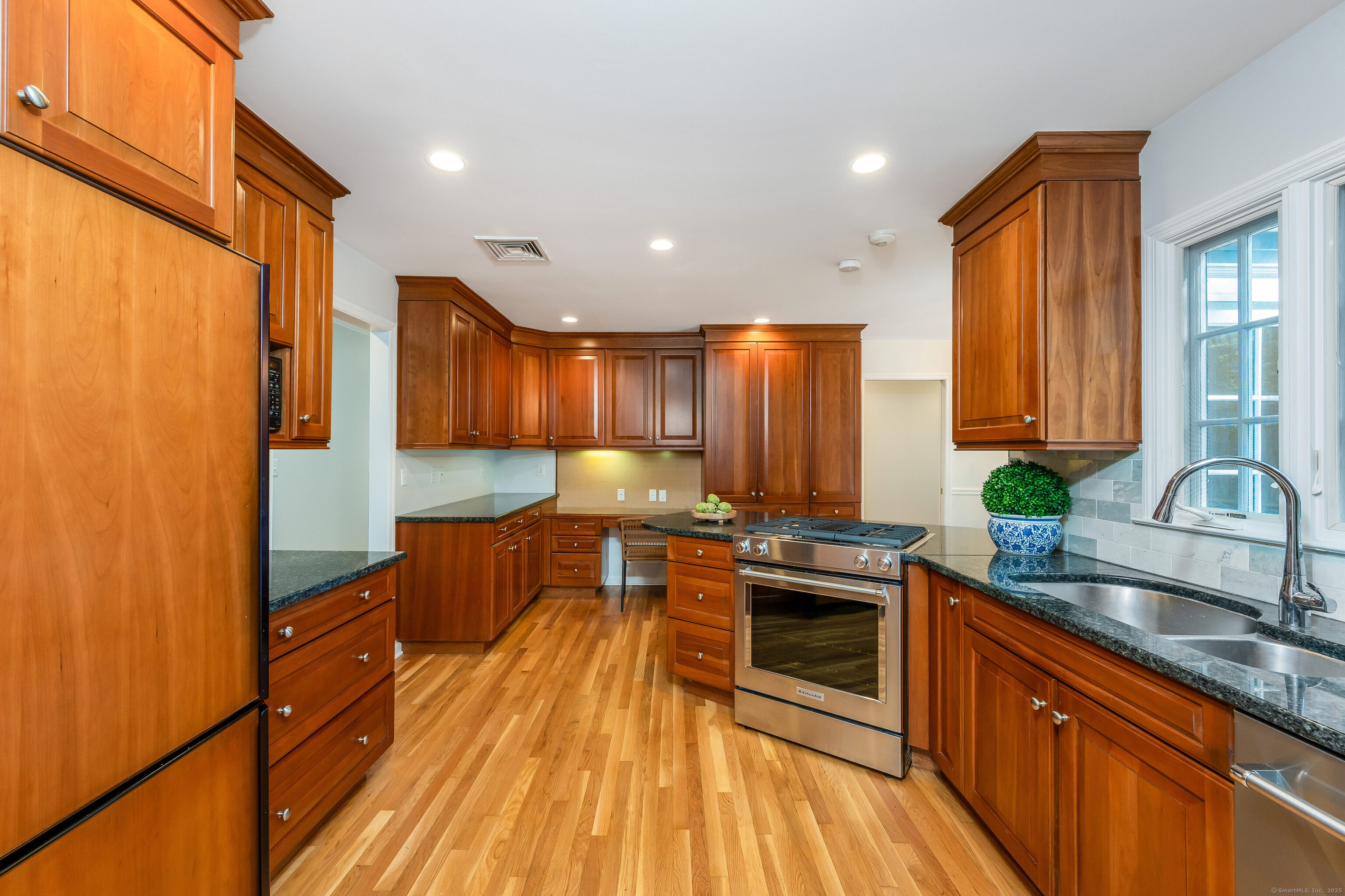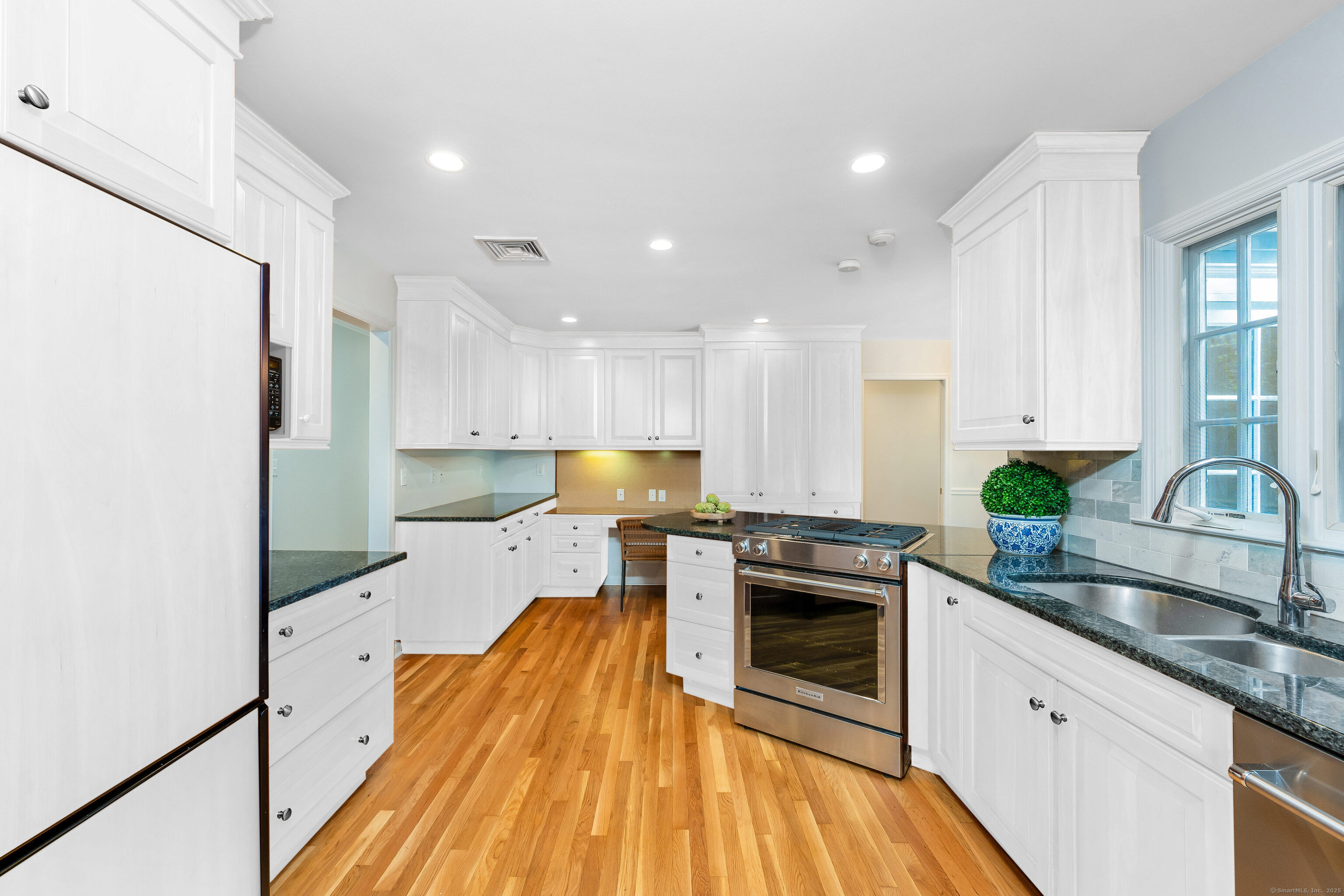 Incredible value in one of Darien's most-loved neighborhoods! 4 bedrooms, 3 full bathrooms with 2,707 square feet of space. Walk to Holmes School, Middlesex Middle School, Darien High School and Noroton Heights train and shopping. Improvements include: fully fenced backyard, new gas range, new dishwasher, refinished hardwood floors and kitchen cabinets, new driveway with Belgium blocks and curb, epoxy garage flooring, entire interior and exterior painted, new kitchen backsplash, new floor in family room and 2020 Trane gas furnace. House was gutted in 2001 with new Marvin windows and sliders, new electrical, plumbing and mechanicals plus the addition of 735 square feet. Cozy-up for fall with two wood burning fireplaces and watch the sun set from the picture-perfect window seat. Sliders from both dining room and breakfast nook open to private patio. Woodland Park is next door with 60 acres of trails and natural habitat. Move-in ready and just in time for the holidays! Exterior and kitchen "virtually" painted white.