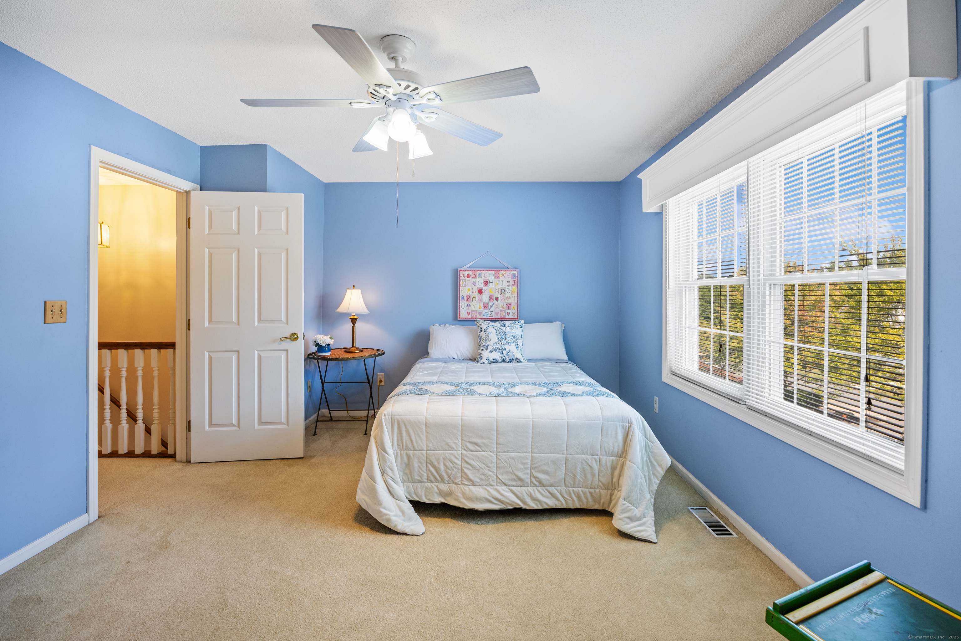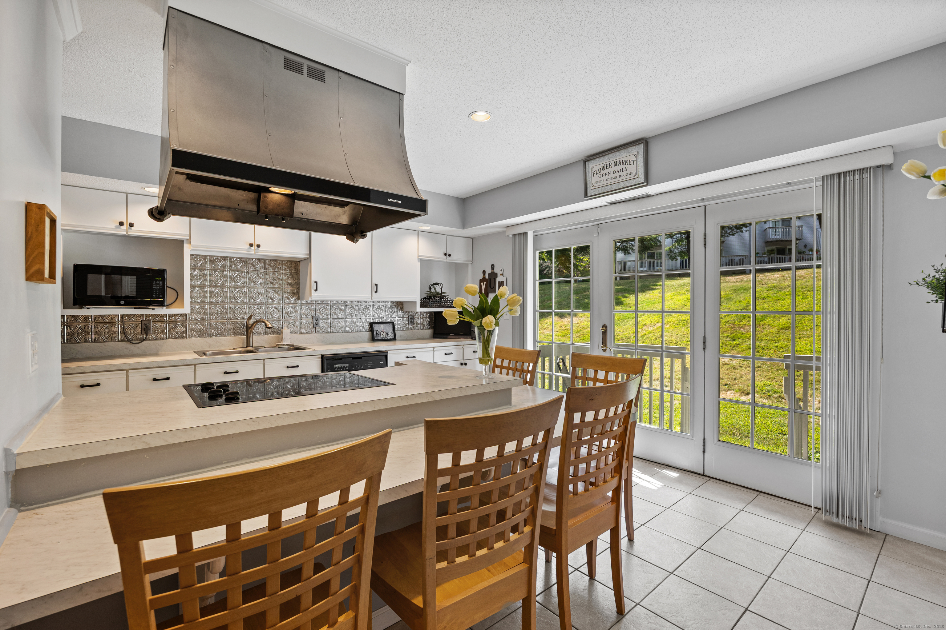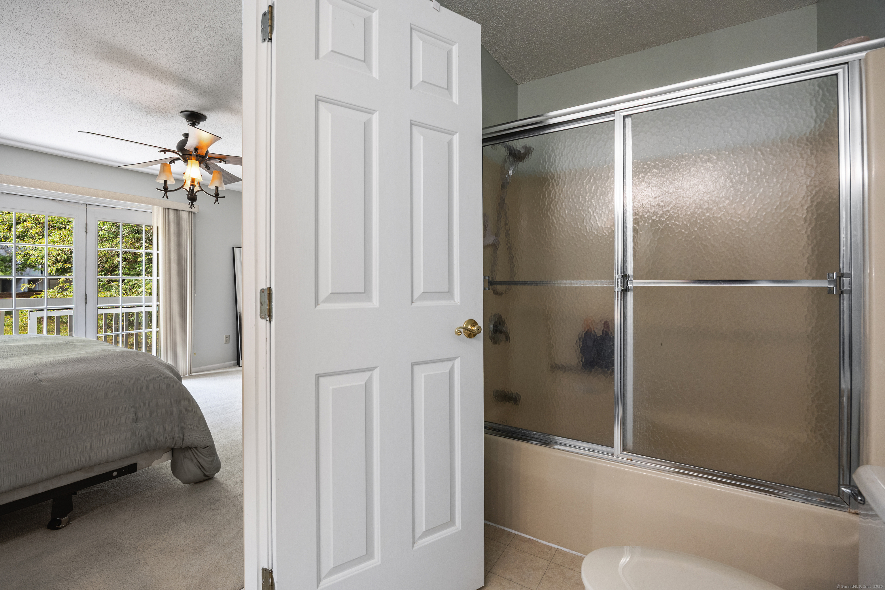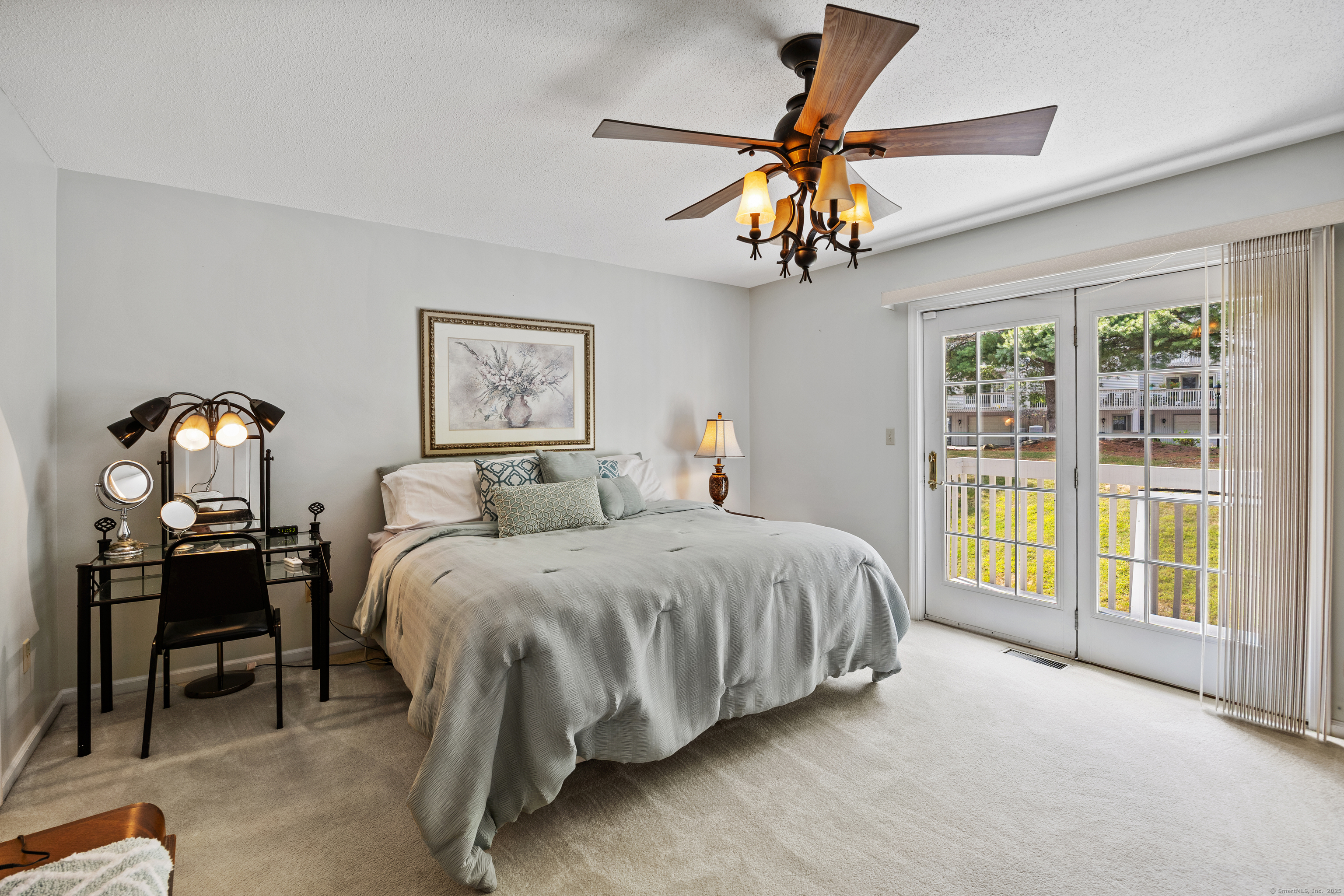 You will surely be delighted the moment you enter this beautiful, tastefully updated home. It features gleaming hardwood floors, and a cozy wood-burning fireplace in the spacious living room with French Doors leading to a lovely deck. Perfect for entertaining or simply unwinding at the end of the day. The eat-in kitchen is flooded with natural light, and is freshly updated with white cabinets, new counter tops, recessed lights and two pantries for ample storage. Laundry area and updated powder room are conveniently located on the main level. The second level features two large bedrooms, each with its own full bathroom, ensuring maximum privacy and comfort. The primary suite also boasts a balcony. Additionally, there is a one car garage with storage room. The serene location is just across from the Scoville Reservoir scenic walking trail. A true gem blending beauty, comfort and convenience!