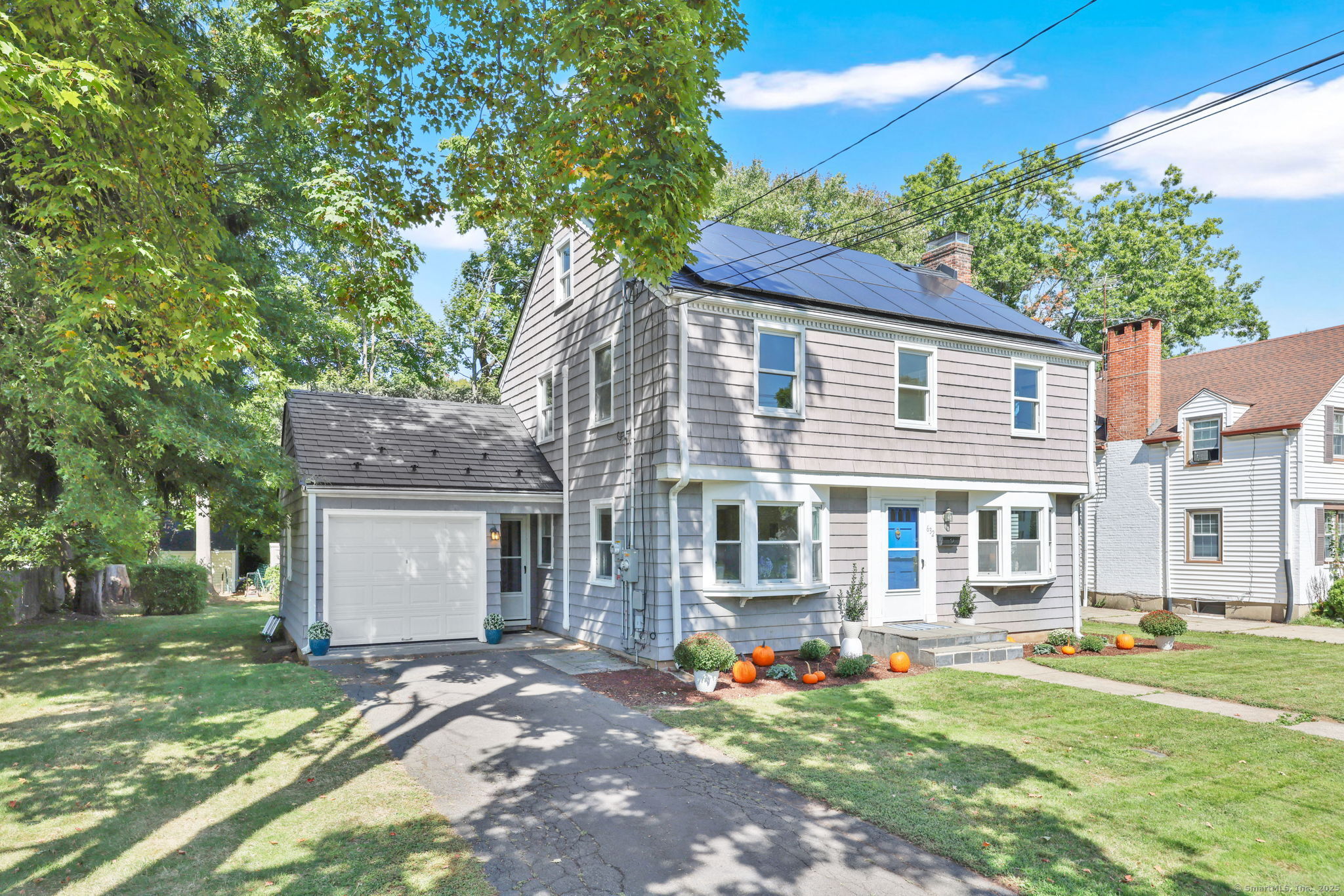 Discover comfort, character, and efficiency at 632 Park Road, a move-in-ready 3-bedroom Colonial perfectly located minutes from West Hartford Center, Blue Back Square, and Park Road's vibrant restaurants. Surprisingly peaceful inside, this well-insulated home blends 1940s charm with smart updates for today's lifestyle. Enjoy freshly refinished hardwood floors, newly painted rooms, and a welcoming living room with fireplace. The kitchen features refaced cabinetry with roll-out shelves, solid Corian counters, and space to personalize over time. Updated baths include a spacious walk-in shower with bench. Upstairs, large bedrooms and a walk-up attic offer flexible options for storage or future expansion. Energy-saving features include a PermaLock metal roof (2007, 50-year transferable warranty), SunRun solar panels, five ductless mini-split heat/AC units, added insulation, and upgraded 200-amp electrical service. A screened porch opens to a level backyard-ideal for relaxing or entertaining. The attached garage and breezeway add everyday convenience. For the right offer, sellers will provide a credit toward widening and resurfacing the driveway. A cherished home for over 50 years, now ready for its next chapter - come experience the warmth and value in person.