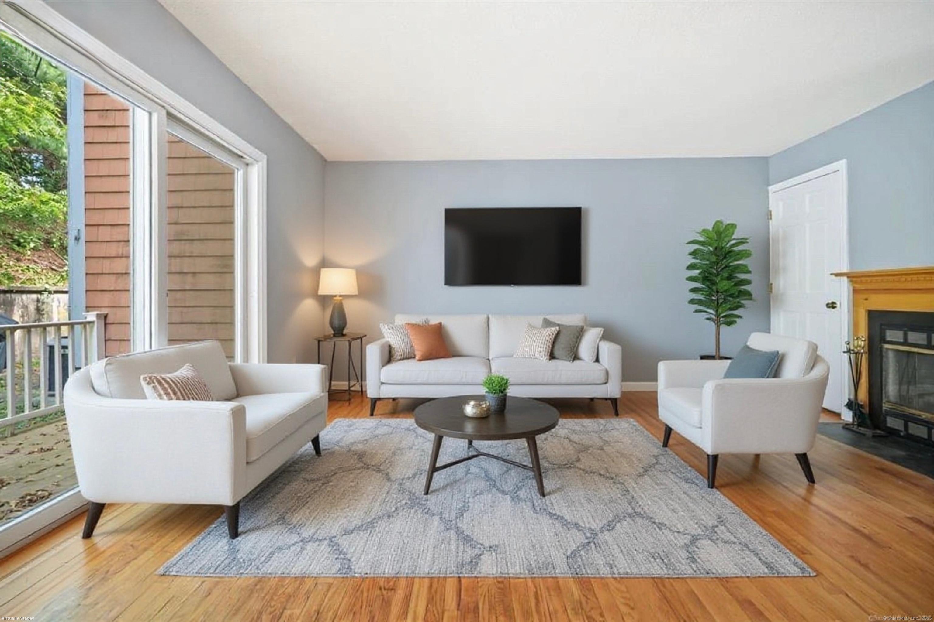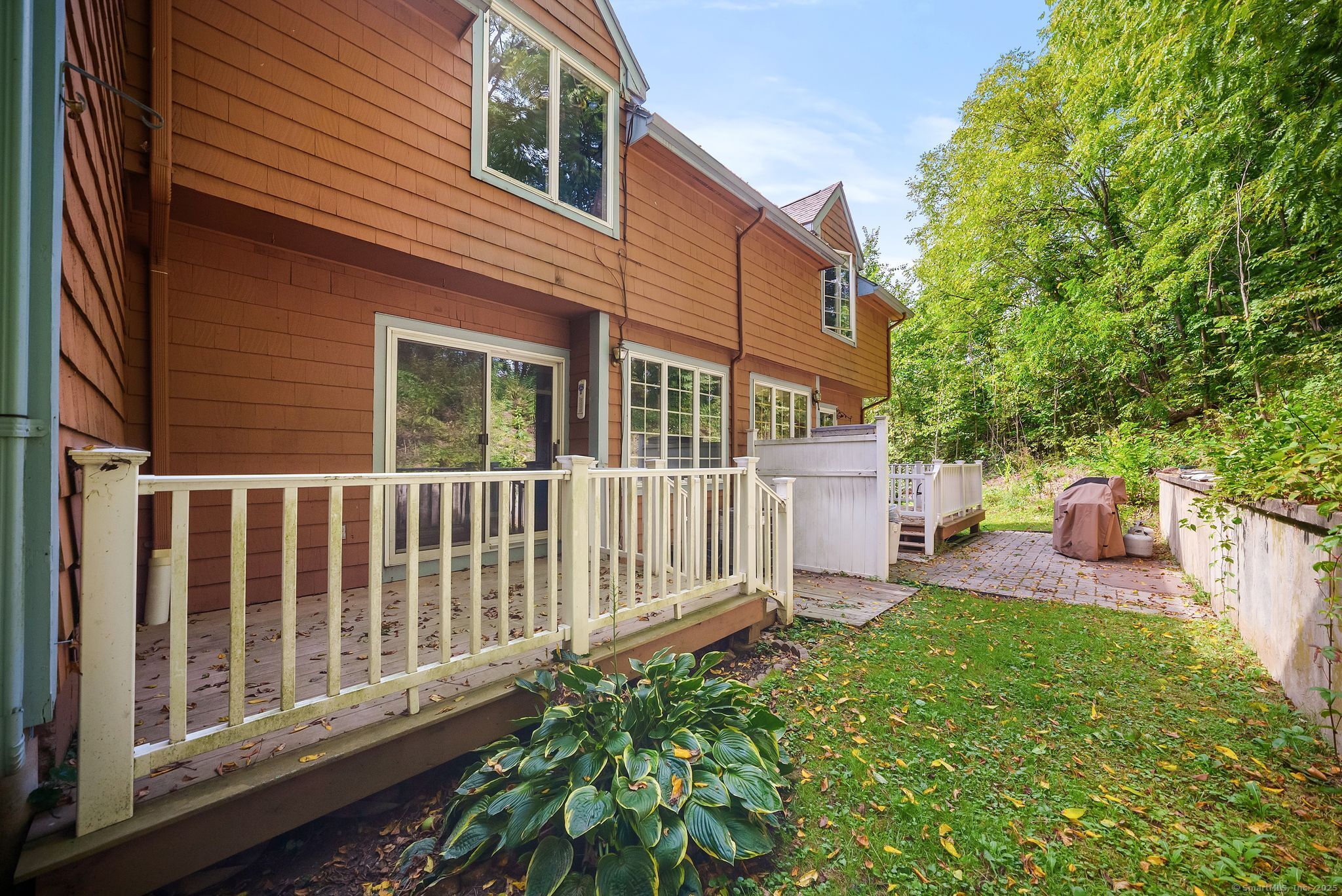Welcome home to an updated townhouse style home! 2 bedrooms, 1 1/2 baths, large open space combo living room/dining room area with slider access to your own private, durable composite deck and stylish vinyl rails! A warm and welcoming wood burning fire place in the living room. Freshly painted interior. Brand new dishwasher, garbage disposal, microwave and stove. Hardwood floors on the lower level, tiled bathroom floors & foyer and cozy wall to wall carpeting on the upper level. Anderson windows throughout. Oversized bedrooms w/soaring ceilings. Additional highlights include: Central Air. Natural gas forced hot air for heat. A spacious fully finished lower level w/convenient laundry closet. Separate utility room in basement. One assigned parking spot that is conveniently located closest to the entrance. Additional guests spots available. New HVAC unit installed in July 2023. New heat exchanger installed March 2025. This turn-key home blends character with modern comforts in an UNBEATABLE LOCATION, just STEPS to local amenities, popular restaurants, businesses, golf courses, hiking trails, workout facilities, major retailers, shops, cafes, bakeries, recreational areas, and highway access. DO NOT MISS THIS OPPORTUNITY TO MAKE THIS YOUR HOME! SCHEDULE YOUR TOUR TODAY!