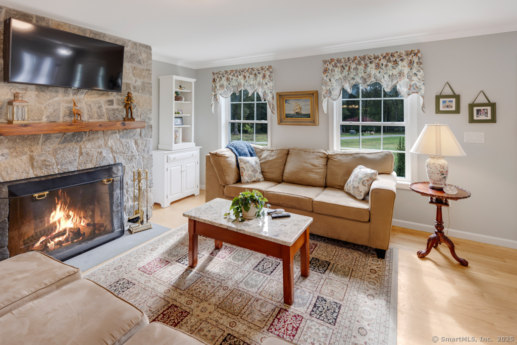 MULTIPLE OFFERS IN-PLEASE SUBMIT ALL HIGHEST AND BEST OFFERS BY THURSDAY, SEPTEMBER 25 AT NOON. Just Four Years Young - Cape-Style Beauty on Eight Private Acres! This one-floor living opportunity truly checks all the boxes! Privately sited on a rear eight-acre lot-level, landscaped, and professionally maintained-this gorgeous cape-style home offers both comfort and classic design. Features include a spacious and gracious first-floor primary suite, an inviting open floor plan, and quality construction with beautiful finishes throughout. A stunning floor-to-ceiling stone fireplace anchors the living room, while gleaming hardwood floors add warmth and charm. The gourmet kitchen and open dining area make entertaining easy. Additional highlights include propane warm air heat with central air, a three-bay garage with a walk-up attic ready for finishing, and a large, clean basement-perfect for storage or future expansion. This home is move-in ready and waiting for its next chapter!