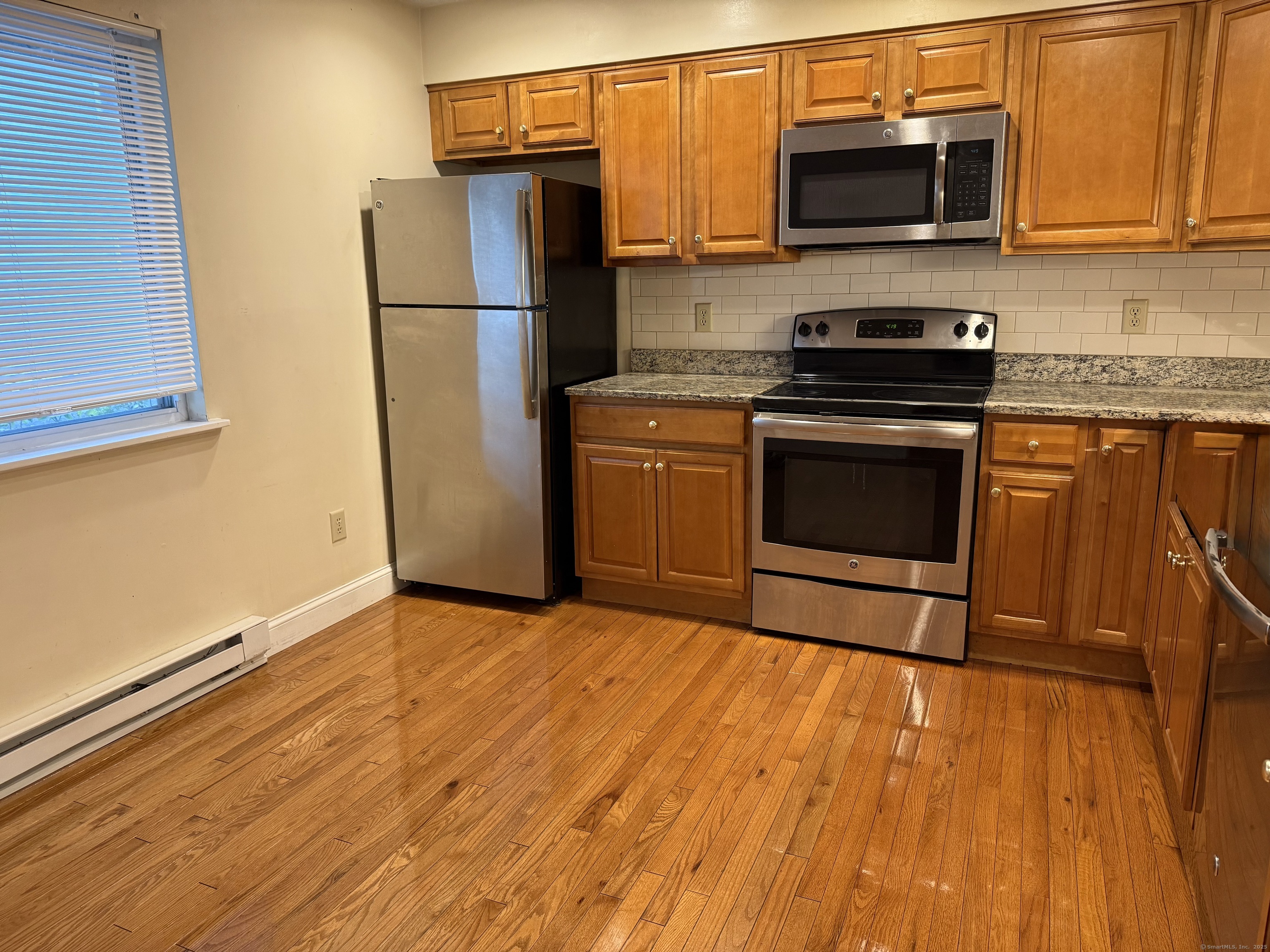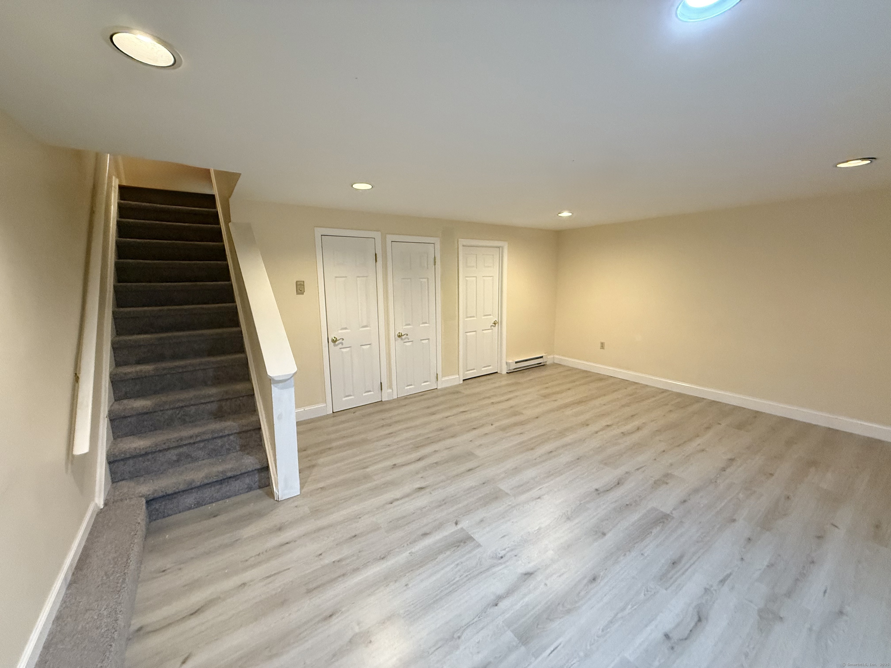 Welcome to this hidden gem nestled in a tranquil community in downtown Danbury.This charming two-bedroom, one-and-a-half-bath townhome has been meticulously maintained, offering a perfect blend of comfort and style. As you step inside, you'll be greeted by stunning hardwood flooring that exudes warmth and elegance. The kitchen is a chef's delight, featuring sleek stainless steel appliances and exquisite granite countertops, ideal for culinary adventures. The spacious living room has a dining area-perfect for intimate gatherings. The glass sliders lead to an outdoor deck with open space. A convenient half bath completes the main level. Venturing to the upper floor, you'll find two generously sized bedrooms, both boasting abundant storage space and brand new hardwood flooring throughout. Freshly painted, these rooms create a soothing retreat. Additionally, a dedicated laundry area enhances your living experience with effortless convenience. The lower level offers a roomy family room, accompanied by two additional closets and an unfinished area that provides ample storage space. Don't miss the chance to make this beautifully maintained townhome your new residence. Close to dining, banking, shopping, hospital, library, downtown Bethel CT, and so much more.