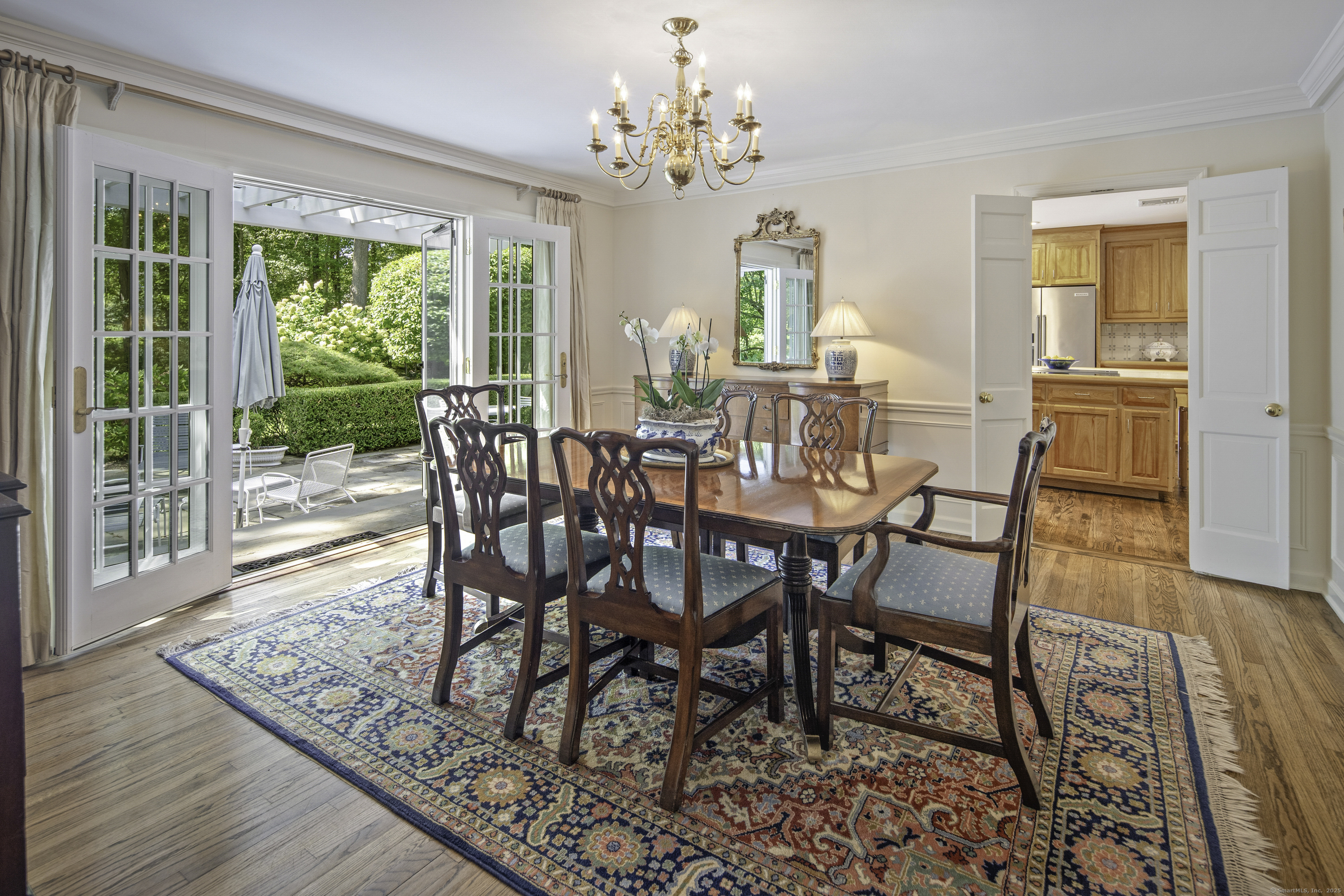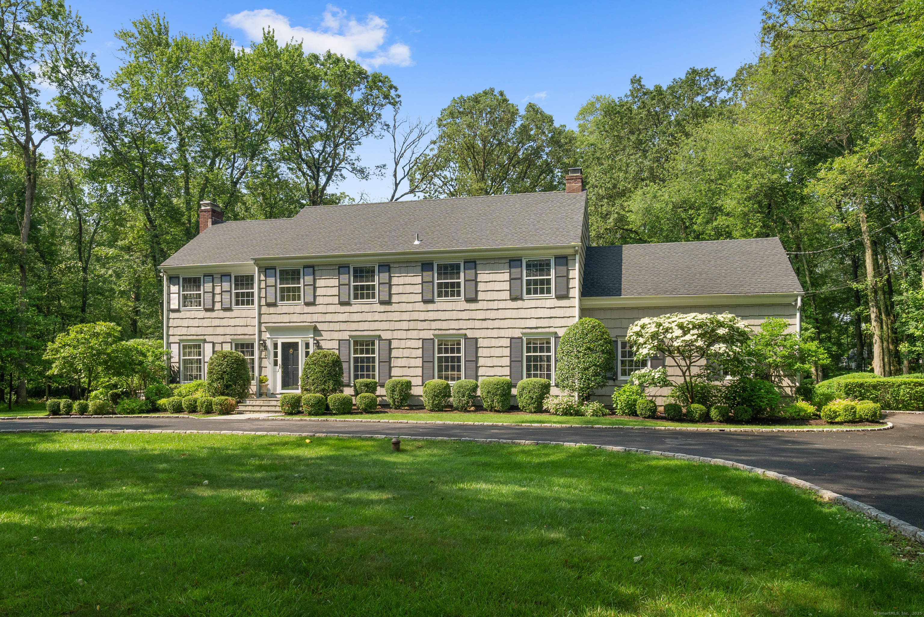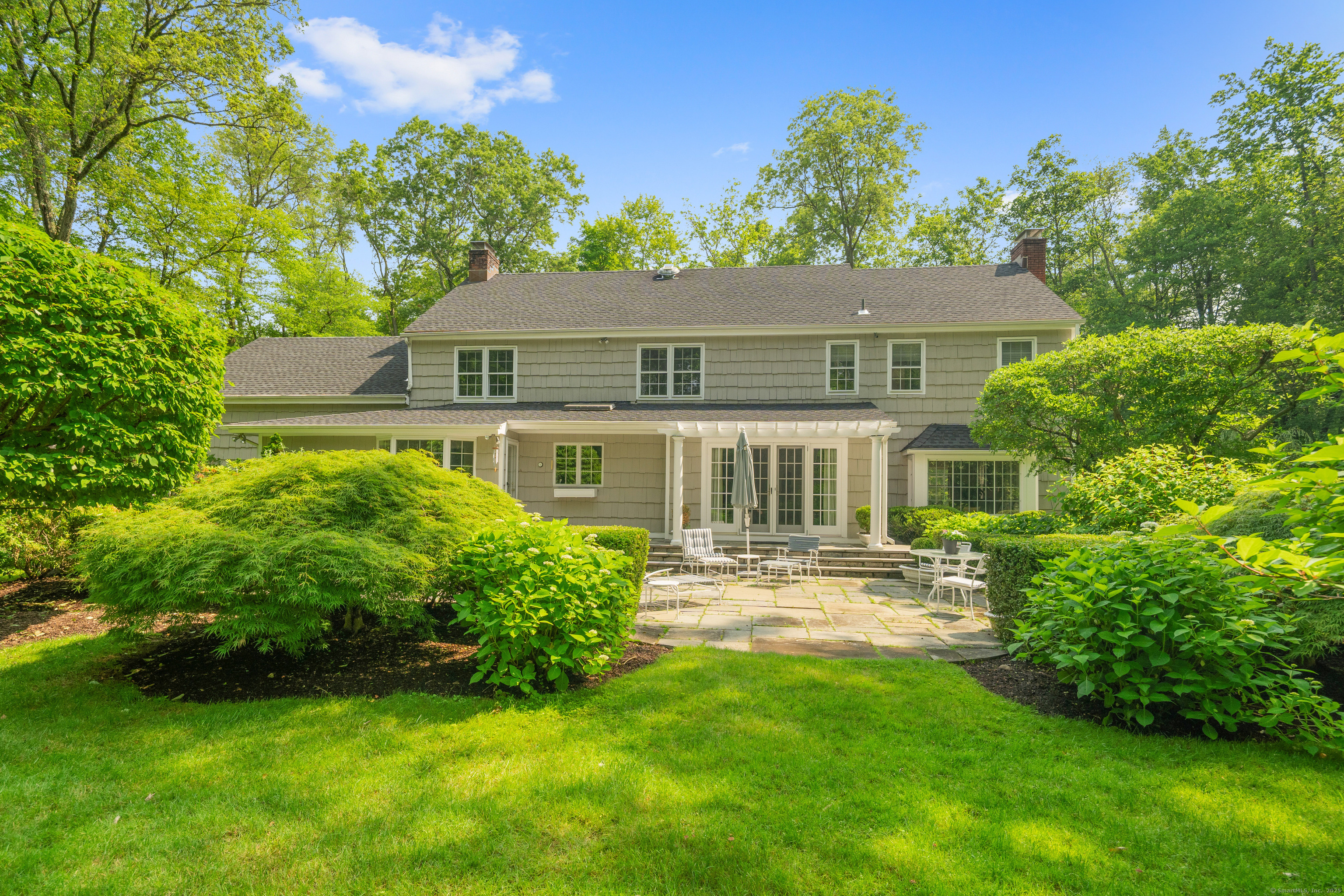 Located at the end of a quiet, tree lined street in the desirable, scenic Stephen Mather neighborhood, is this gracious 5 bedroom, 3.5 bath home awaiting its new owners. Occupied and loved by the same family for almost 50 years, this beautiful, cul-de-sac property is set on 2 lush, private acres enhanced by spectacular seasonal plantings and natural light, which pours into the house through oversized cottage-style and bay windows. The first floor, accented by custom millwork, offers a formal living room with fireplace and built-in window seat, a lovely dining room featuring French doors which lead out to a patio with pergola and specimen plantings, as well as a spacious kitchen with stainless steel appliances and charming sitting area. A cozy family room with a distinctive keyhole fireplace, and a library/home office with built-ins and wet bar complete the first floor. Upstairs is an elegant primary bedroom with fireplace, walk-in closet and an updated full bath, along with 4 other bedrooms, 2 full baths and a large, generous multipurpose room presenting numerous options of use. An automatic generator provides additional convenience and comfort to this wonderful home. Minutes to Metro North, Merritt Parkway and Ox Ridge Elementary School. Agent related to owner.