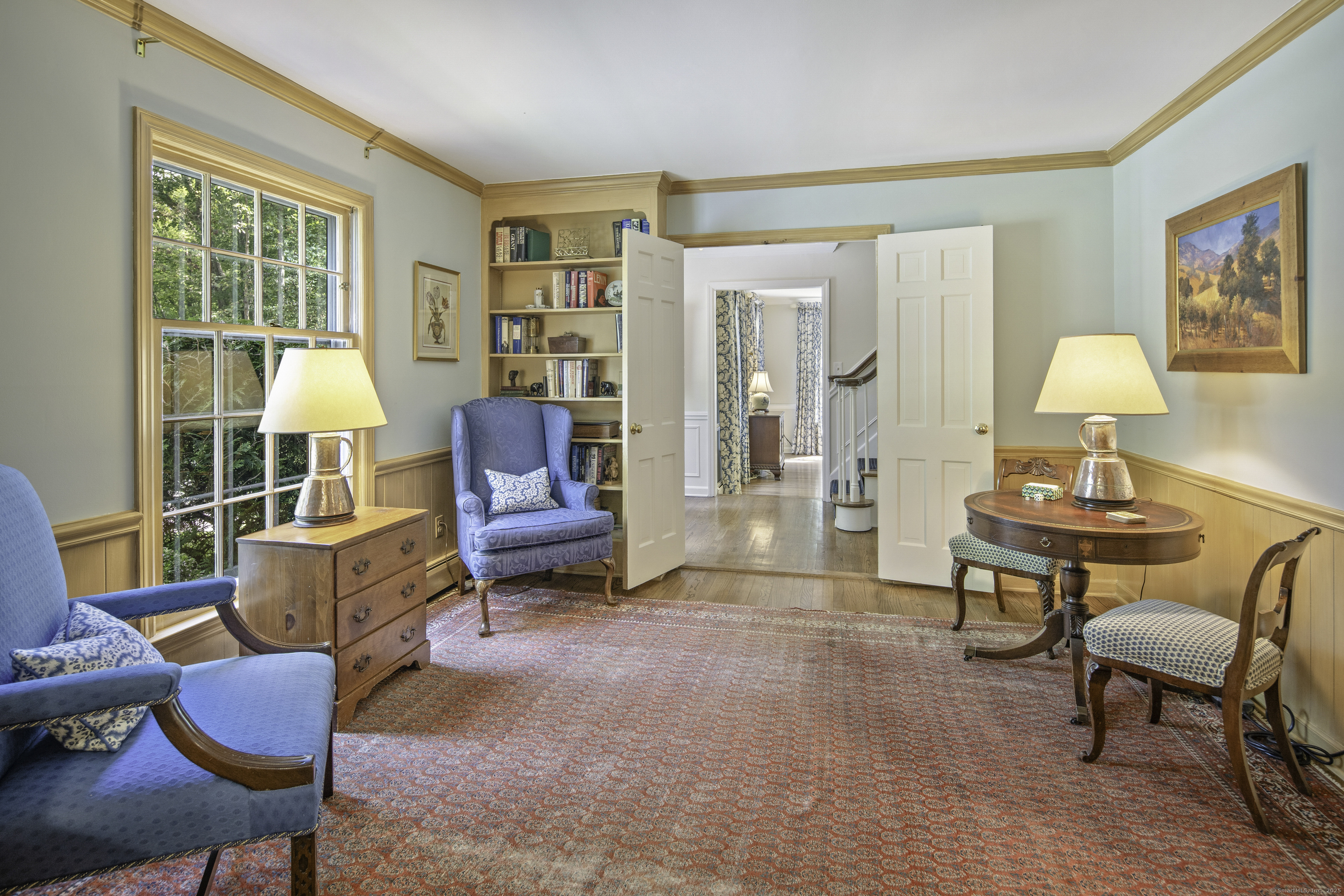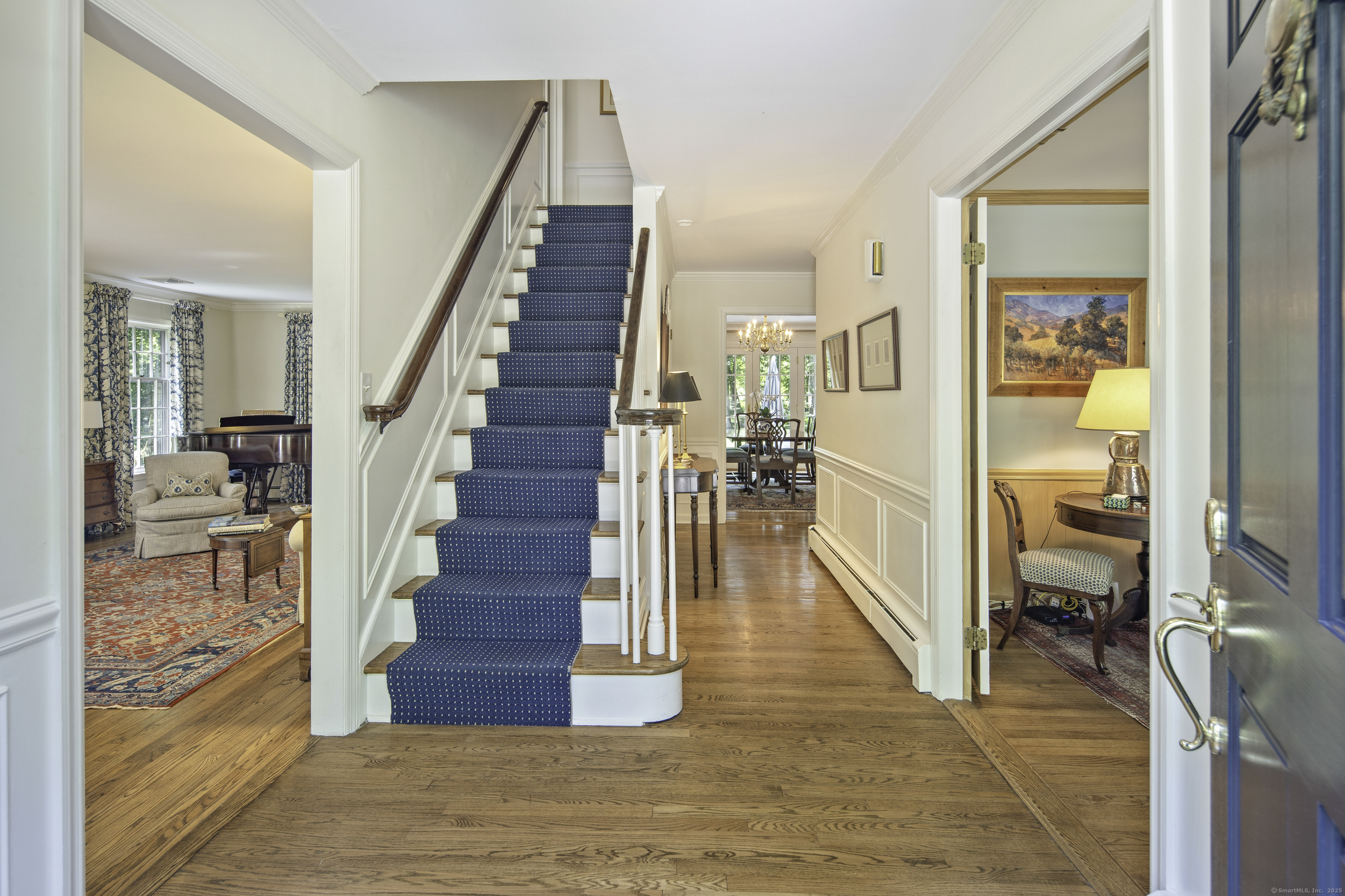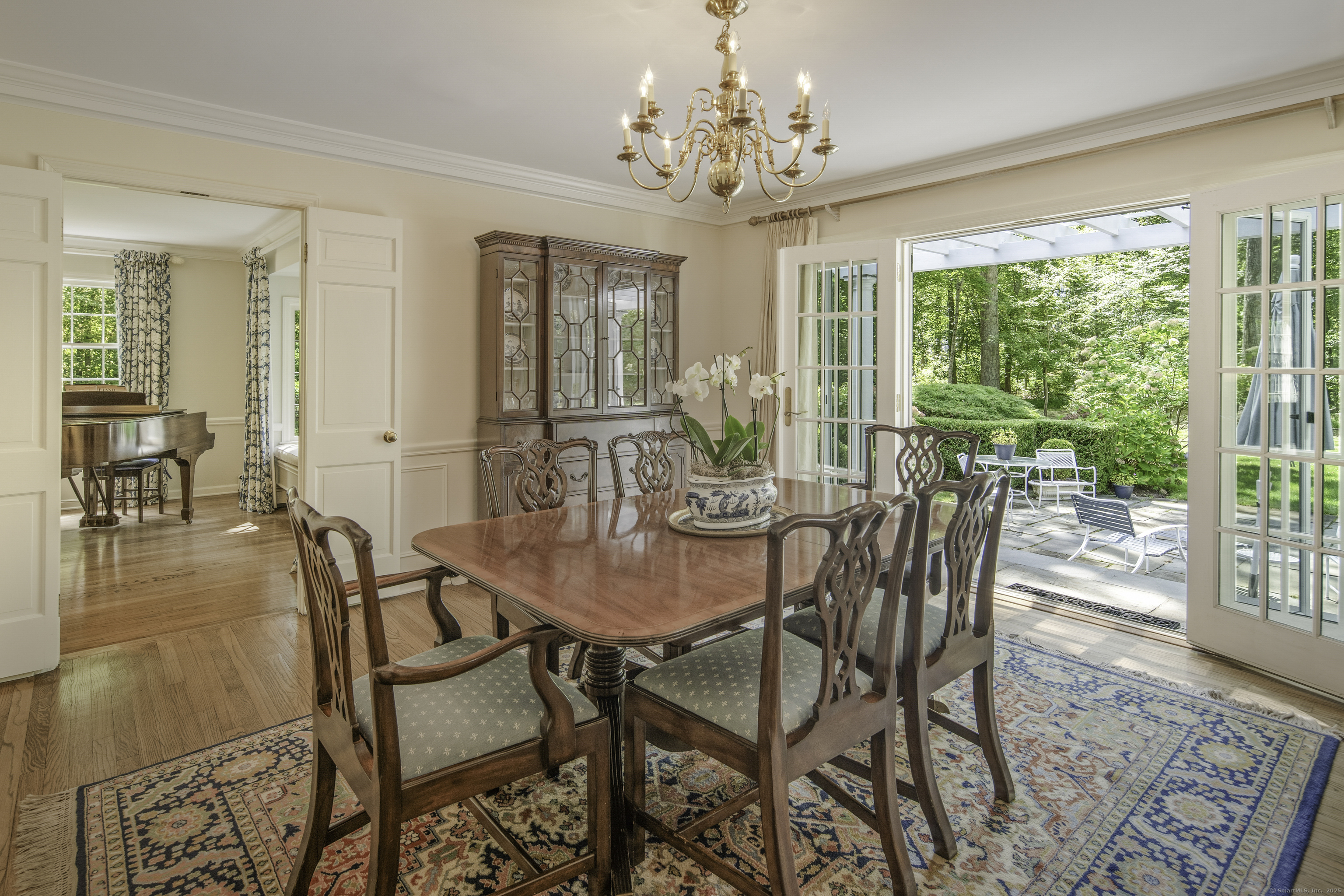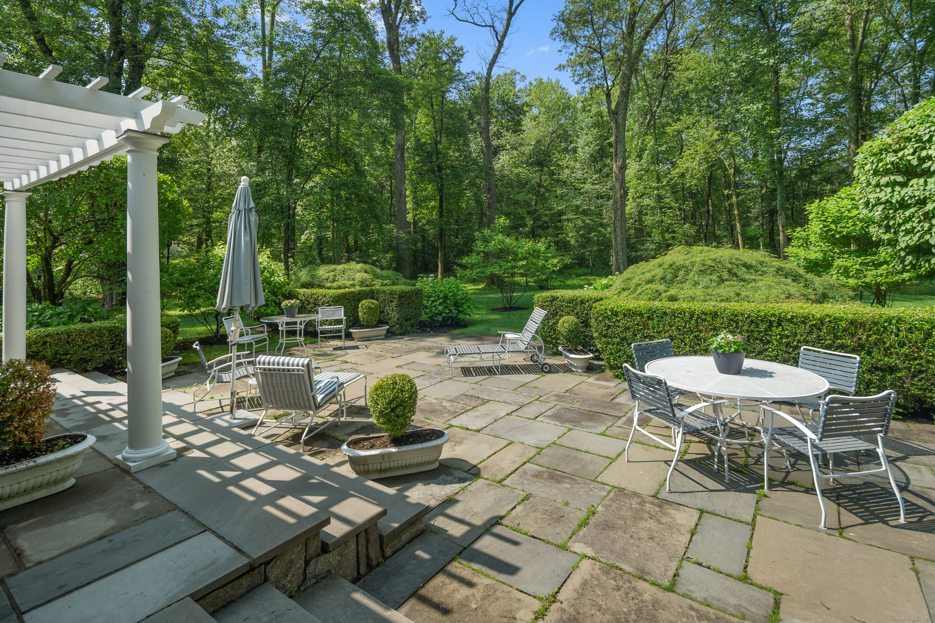 Located at the end of a quiet, tree lined street in the desirable, scenic Stephen Mather neighborhood, is this gracious 5 bedroom, 3.5 bath home awaiting its new owners. Occupied and loved by the same family for almost 50 years, this beautiful, cul-de-sac property is set on 2 lush, private acres enhanced by spectacular seasonal plantings and natural light, which pours into the house through oversized cottage-style and bay windows. The first floor, accented by custom millwork, offers a formal living room with fireplace and built-in window seat, a lovely dining room featuring French doors which lead out to a patio with pergola and specimen plantings, as well as a spacious kitchen with stainless steel appliances and charming sitting area. A cozy family room with a distinctive keyhole fireplace, and a library/home office with built-ins and wet bar complete the first floor. Upstairs is an elegant primary bedroom with fireplace, walk-in closet and an updated full bath, along with 4 other bedrooms, 2 full baths and a large, generous multipurpose room presenting numerous options of use. An automatic generator provides additional convenience and comfort to this wonderful home. Minutes to Metro North, Merritt Parkway and Ox Ridge Elementary School. Agent related to owner.