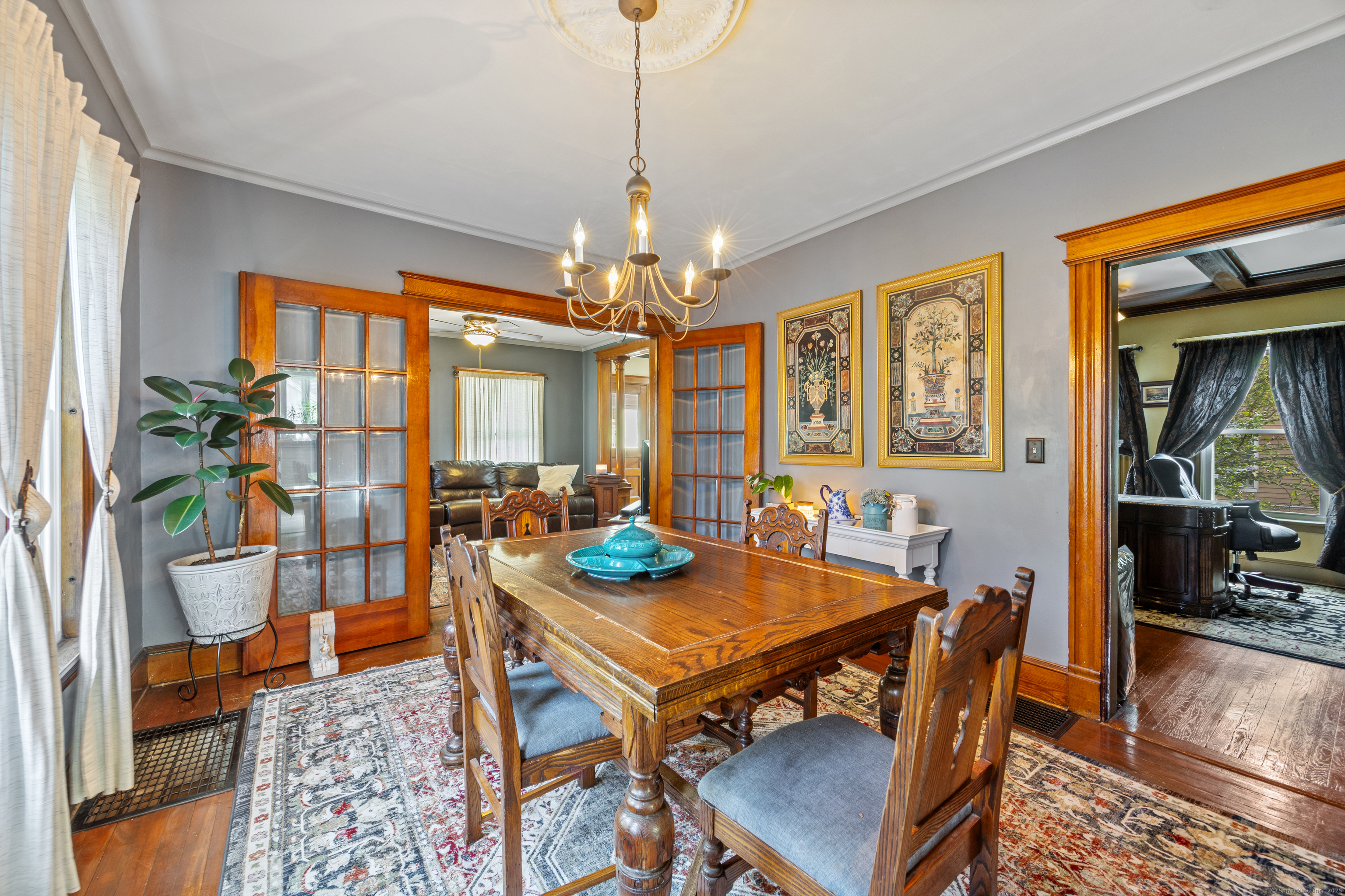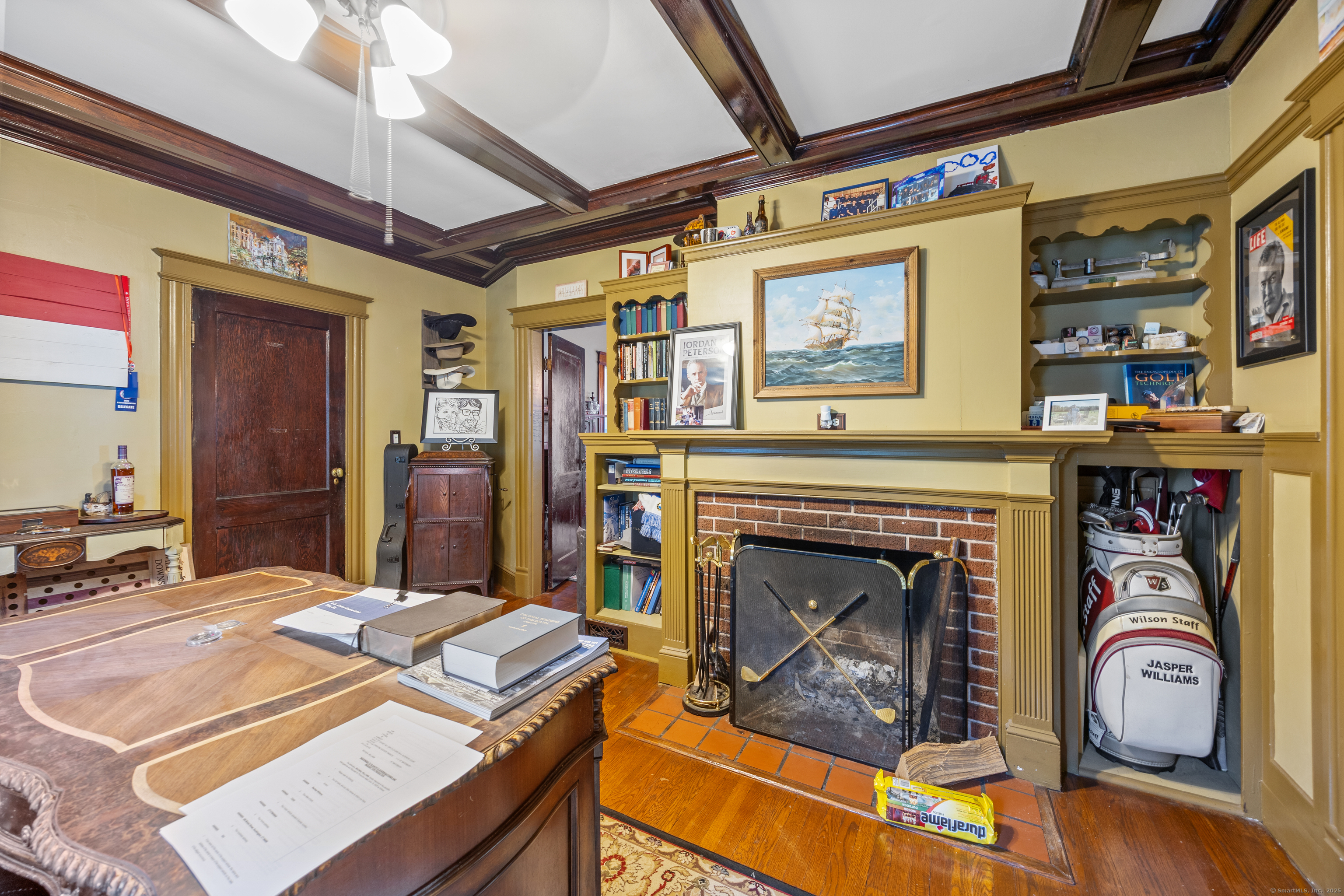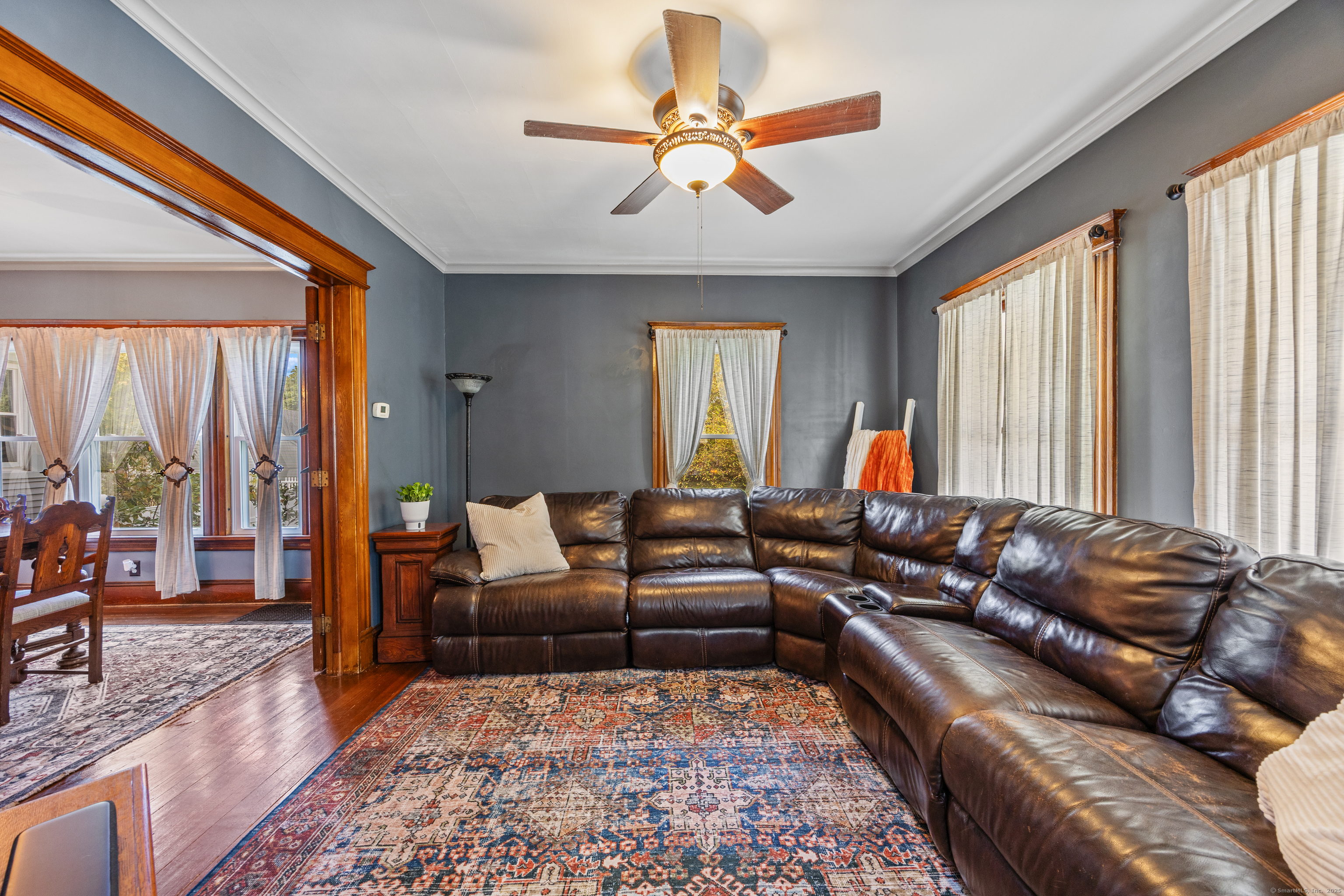 Step into a piece of history with this stately 100-year-old home, where old-world craftsmanship meets timeless elegance. From the original crown molding and ten-foot ceilings to beveled French glass doors, a warm beamed ceiling, and a grand wooden staircase, every detail whispers of an era when homes were built with artistry and care. The inviting fireplace in the office and graceful flow of rooms create a sense of comfort. The updated kitchen blends seamlessly with the home's antique character, featuring granite counters, stainless steel appliances, and a butler's pantry. Upstairs, discover three spacious bedrooms, a versatile flex room, and a beautifully finished bath. Two charming three-season rooms and partially finished third floor offer endless possibilities. Enjoy a large level lot with a brick fireplace, property abuts right to the Quinnipiac River. Two car garage and workshop for added storage. With new windows, new roof, and a location just minutes from downtown shops, & dining-this home is a rare blend of history and convenience. Make 308 Bristol Street your forever home, where every corner tells a story.