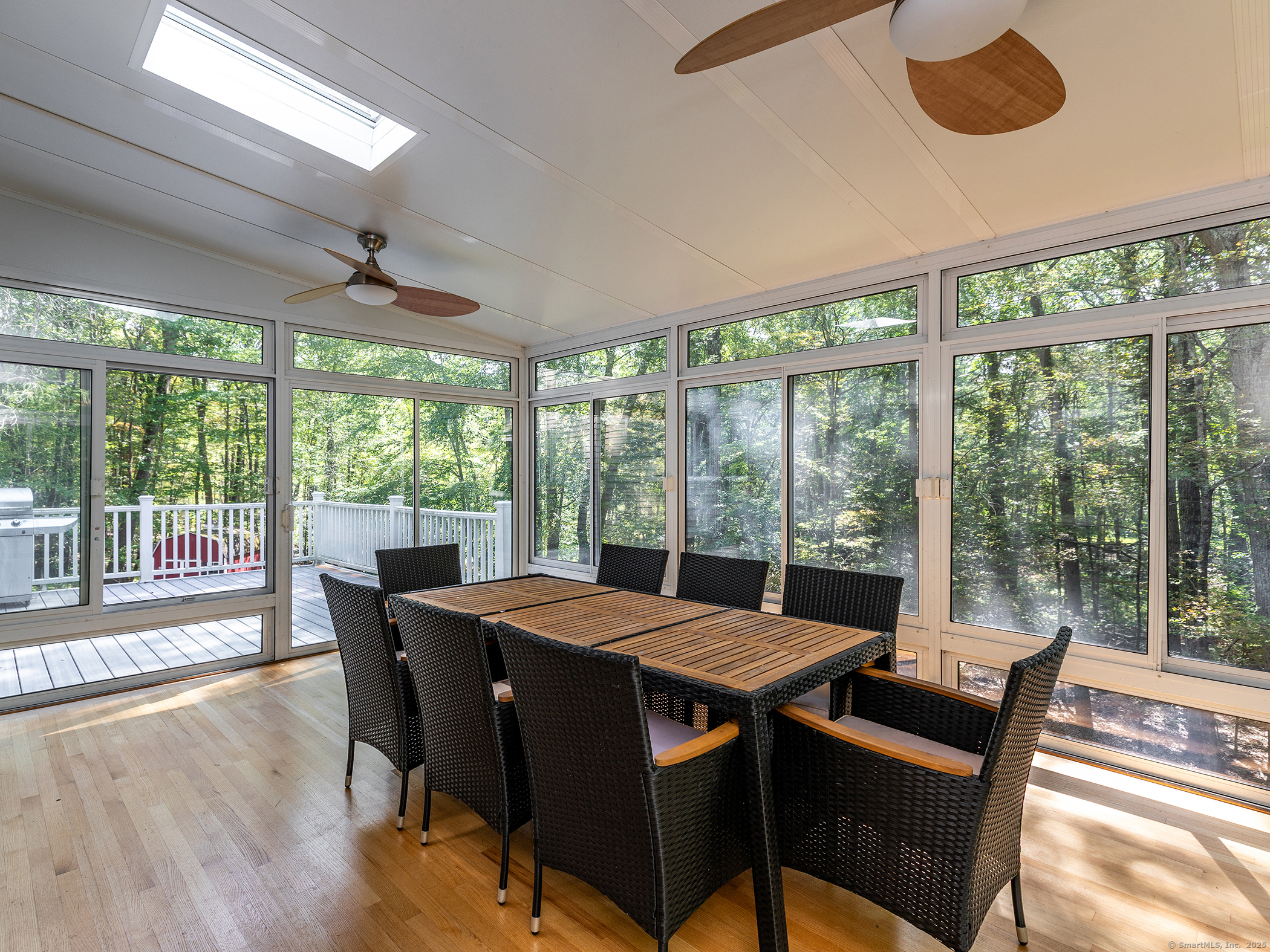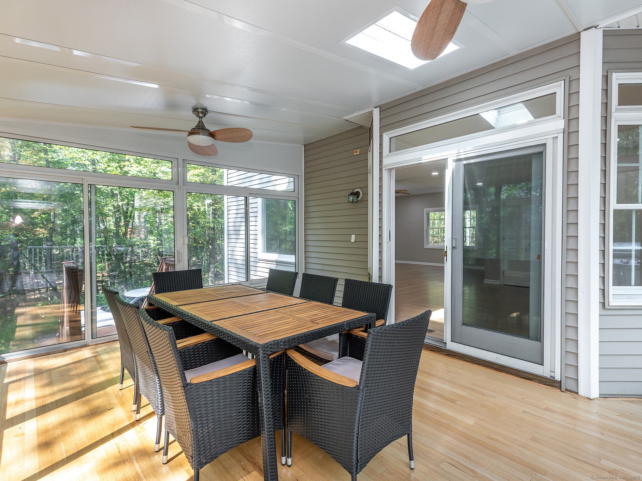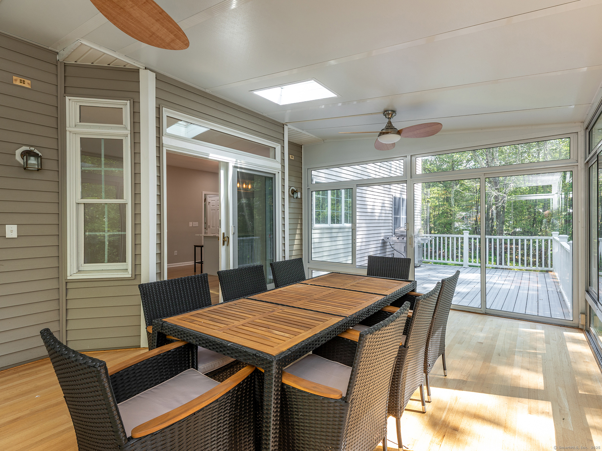 This spacious 5 bedroom, 3.5 bath colonial sits on a private interior lot of nearly 5 acres in the Sun Pond Woods development. The kitchen with its quartz counter tops, double oven, island and pantry make for great entertaining as it opens up to the large family room with fireplace. Also off of the kitchen is the sun room which has ac/electric heat and leads to the deck and the gas grill. appliances and mechanicals upgraded in 2021 were double oven, refrigerator, dishwasher, washer/dryer and the hot water heater. The well pump was replaced in 2023. The village center is less than ten minutes to enjoy the very walkable downtown. Visit the art deco movie house, restaurants, shops, the green or the playground at young's field and more. The fifth bedroom on the lower level could possibly be an in-law apartment.