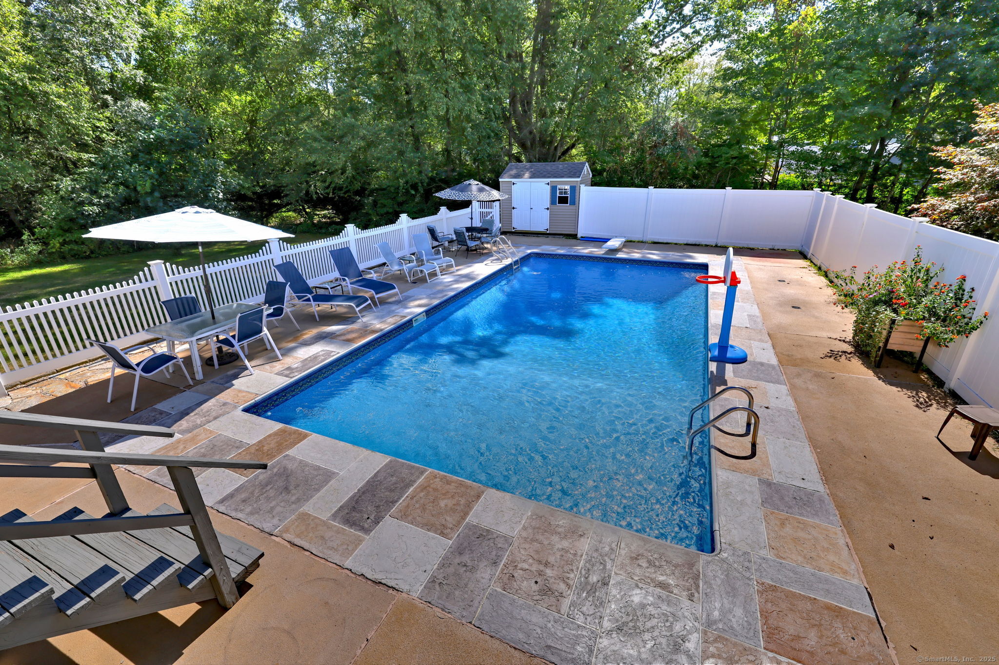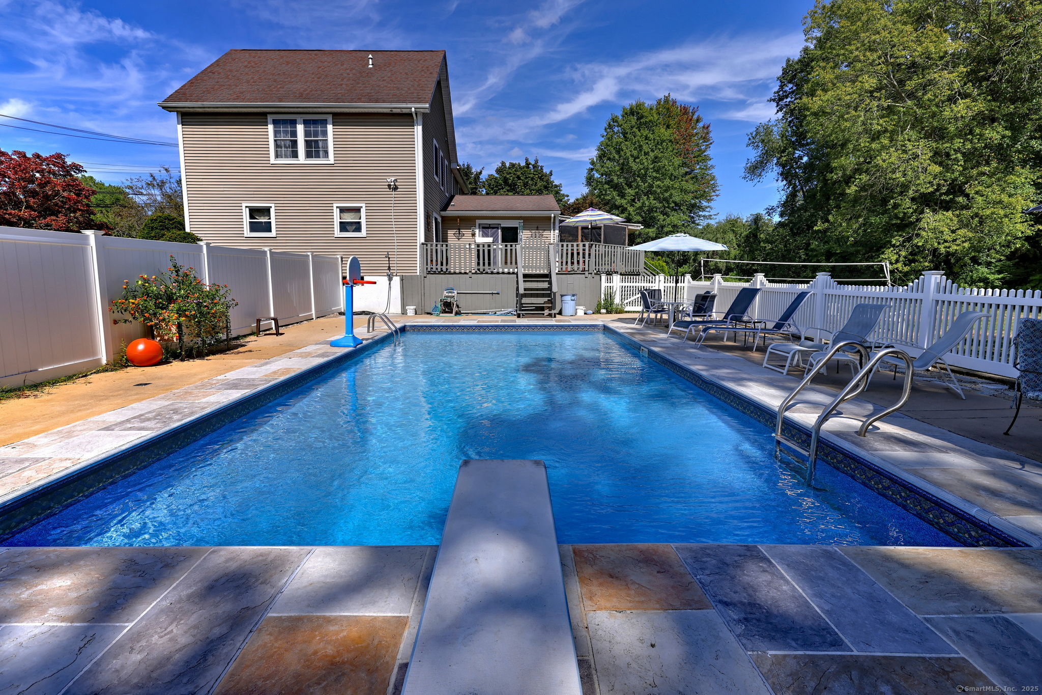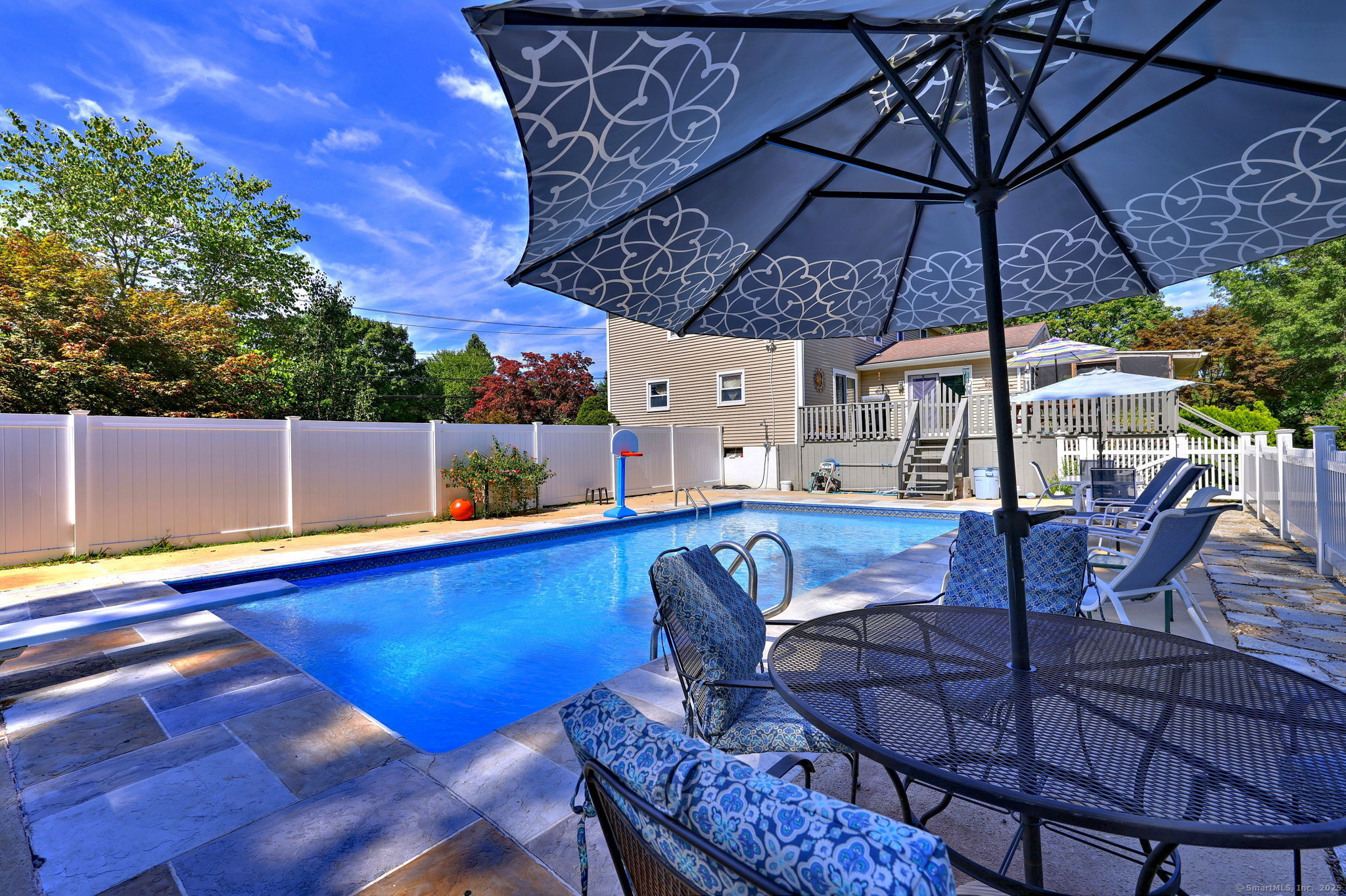 Welcome home to this charming 4-bedroom Colonial located at 161 Herbert Street beautifully situated on a circular drive on over a private acre. The expansive grounds and serene surroundings, are perfectly positioned between Wheelers Farms Road and the esteemed Great River Golf Club. Enter through the charming front porch into the foyer & living room boasting hardwood floors, built ins and a wood burning fireplace. The eat in kitchen showcases stainless steel appliances, granite countertops & an open flow into the welcoming famly room with two sets of sliders and a gas fireplace. The 2005 addition opens opportunities of a potential inlaw suite on the first floor currently used as a yoga room and attached to a full bath with a walk/roll in shower, it's own sliders to the deck and easy access to the expansive dining room with extra office/living area. Upstairsu the primary suite has a walk in closet & a full updated bath along with two large bedrooms, a third full updated bath and laundry conveniently located in the hall! A walk up stairway leads to an expansive attic which offers tons of storage & the potential to finish for more living space. The serene screened in porch, expansive deck, large grassy yard with gardening potential and stunning fenced in stamped stone concrete private pool & pool shed await you. Conveniently located with easy acess to Rt 15, The Milford Parkway, I 95, downtown Milford & it's stunning beaches!!