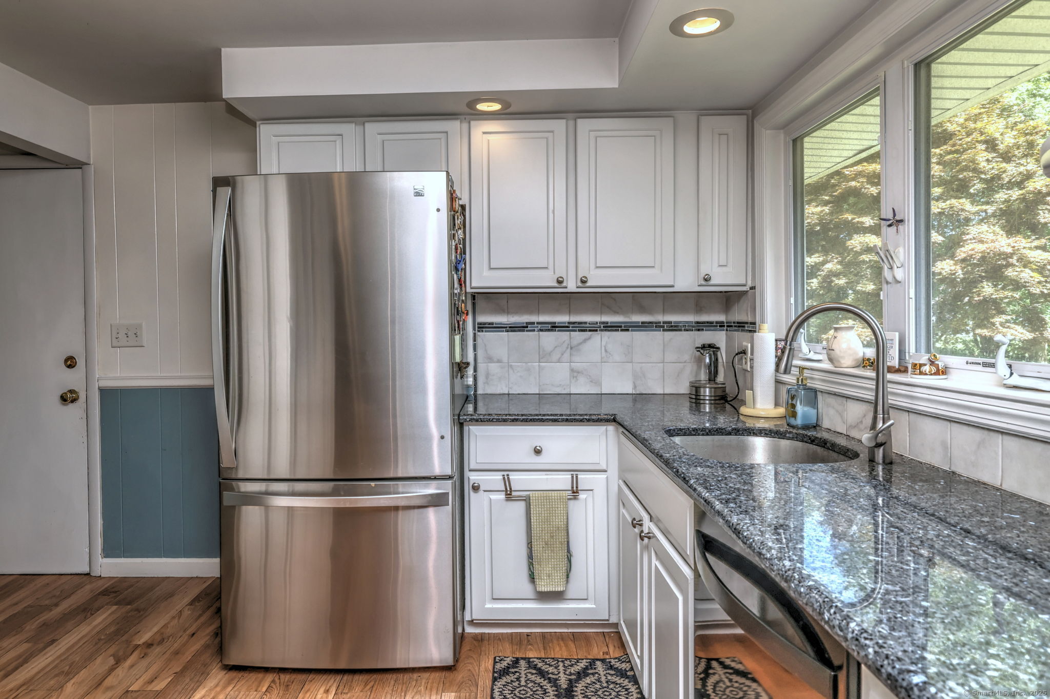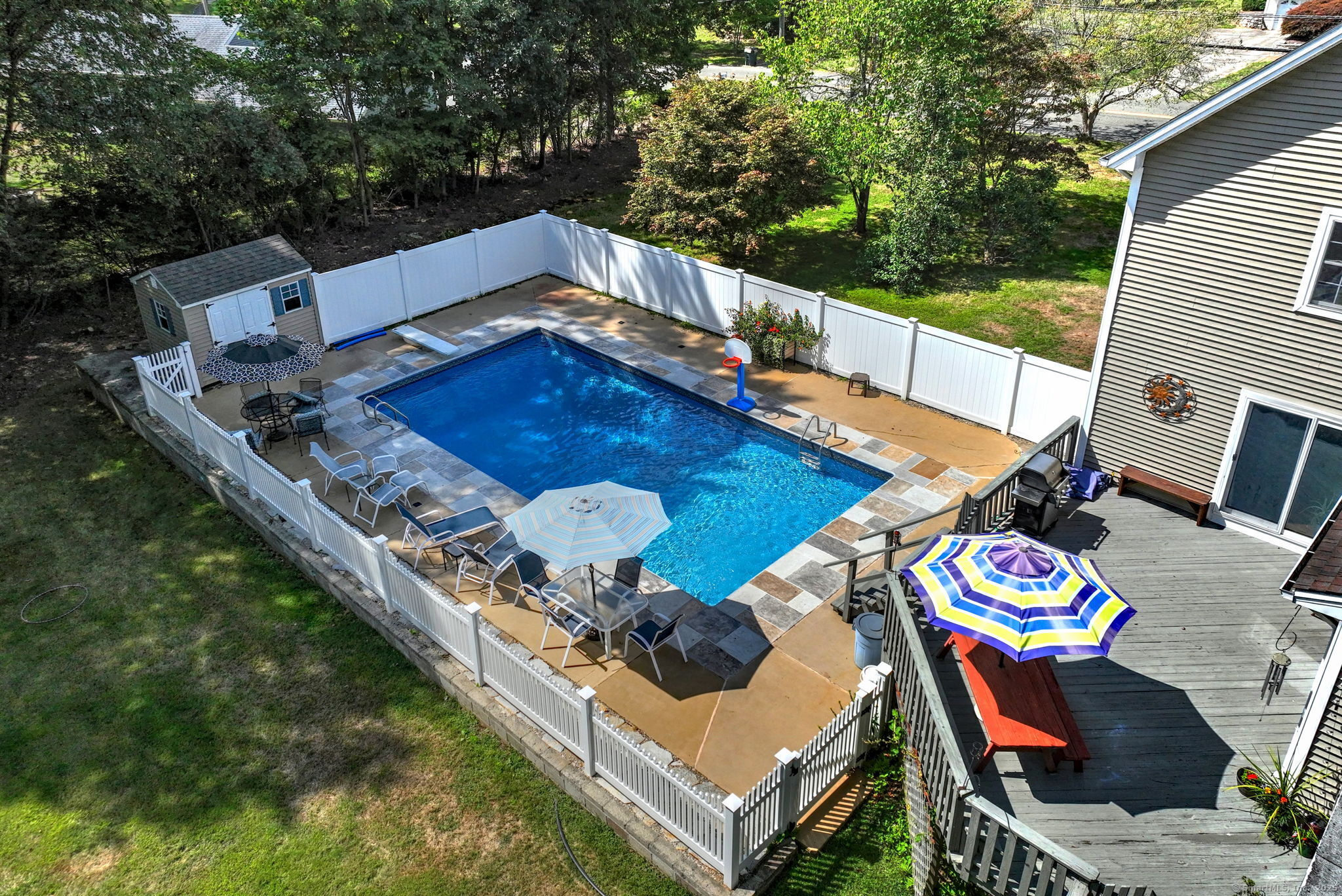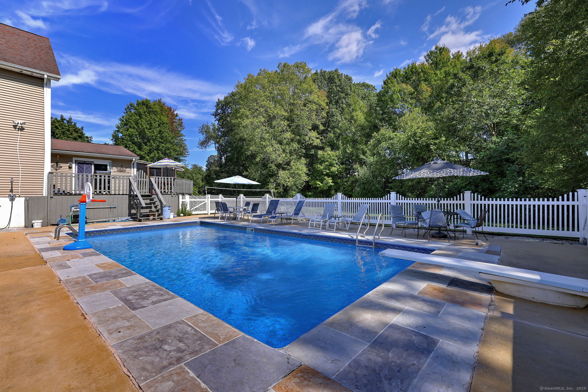 Welcome home to this charming 4-bedroom Colonial located at 161 Herbert Street beautifully situated on a circular drive on over a private acre. The expansive grounds and serene surroundings, are perfectly positioned between Wheelers Farms Road and the esteemed Great River Golf Club. Enter through the charming front porch into the foyer & living room boasting hardwood floors, built ins and a wood burning fireplace. The eat in kitchen showcases stainless steel appliances, granite countertops & an open flow into the welcoming famly room with two sets of sliders and a gas fireplace. The 2005 addition opens opportunities of a potential inlaw suite on the first floor currently used as a yoga room and attached to a full bath with a walk/roll in shower, it's own sliders to the deck and easy access to the expansive dining room with extra office/living area. Upstairsu the primary suite has a walk in closet & a full updated bath along with two large bedrooms, a third full updated bath and laundry conveniently located in the hall! A walk up stairway leads to an expansive attic which offers tons of storage & the potential to finish for more living space. The serene screened in porch, expansive deck, large grassy yard with gardening potential and stunning fenced in stamped stone concrete private pool & pool shed await you. Conveniently located with easy acess to Rt 15, The Milford Parkway, I 95, downtown Milford & it's stunning beaches!!