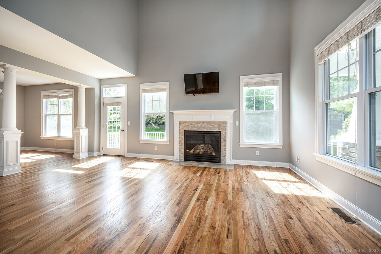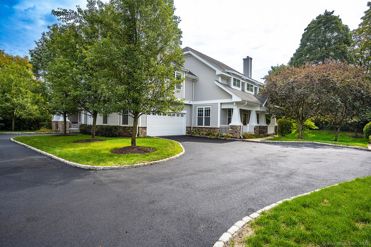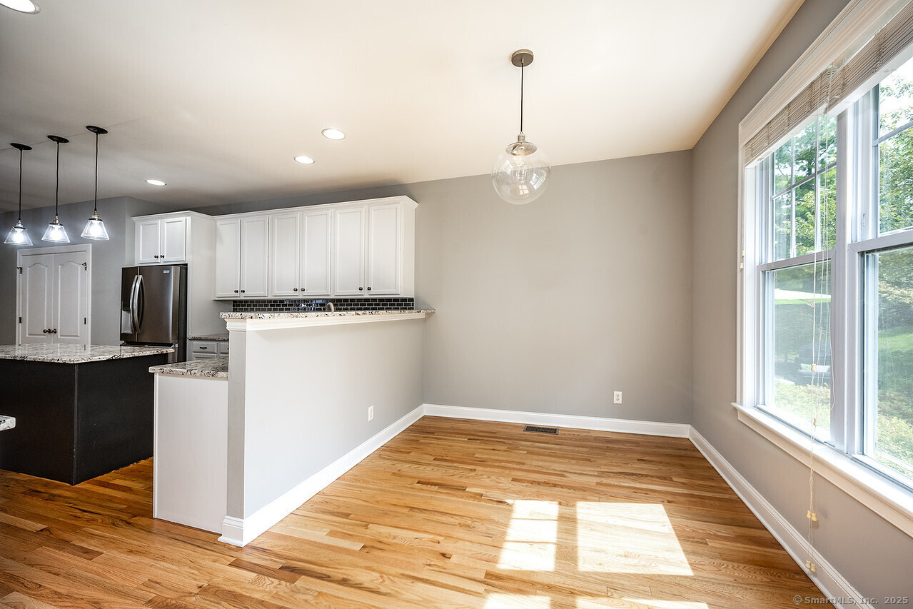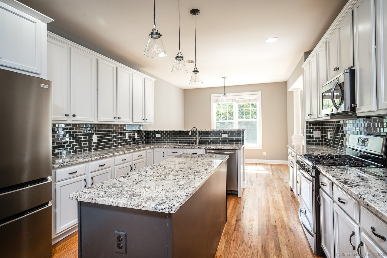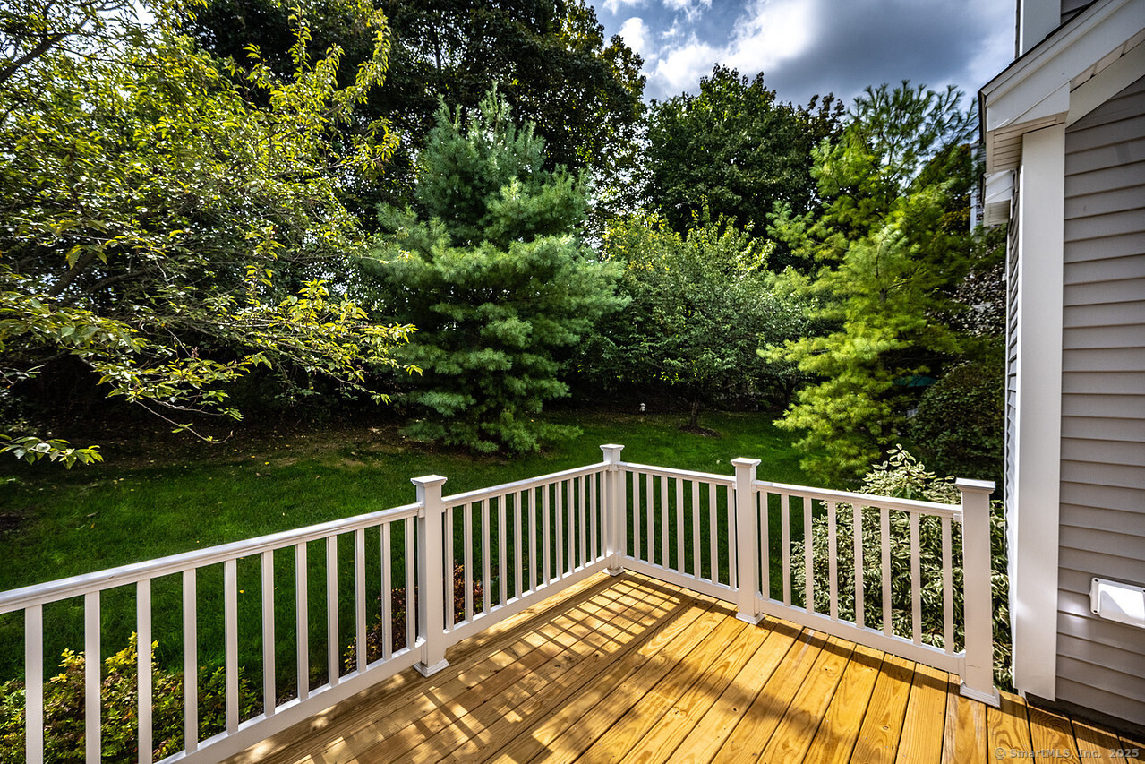 Fall in love with this stunning 3BR 3.5BA duplex that captivates from the moment you arrive! With its dramatic open floor plan, vaulted ceilings and sun-drenched interiors. Meticulously refreshed with crisp new paint, refinished hardwood floors and premium finishes throughout. The foyer with elegant columns opens to a sophisticated formal dining room and breathtaking two-story living room anchored by a cozy gas fireplace-perfect for intimate gatherings or entertaining in style. French doors beckon you to your private deck overlooking peaceful surroundings. The show-stopping kitchen is every chef's dream, featuring Alaska Ice granite countertops, center island, cabinetry galore, stainless appliances, including a brand new refrigerator, tile backsplash, and a generous walk-in pantry complete this culinary masterpiece. The thoughtful desk nook keeps life organized, while direct garage access makes daily routines effortless. Upstairs you'll find the primary bedroom with two walk-in closets, full bath, dual vanity sinks, tiled shower with seat and glass enclosure, plus soaking tub. Two additional bedrooms, full bath and laundry complete the upper level. Finished LL with full bath. TV in LR stays. Super Desirable Timber Oaks Community. Perfectly situated at end of cul-de-sac and just minutes to charming downtown Bethel. Convenient to major highways, shopping and numerous restaurants. Only a 15 minute drive from NY line!