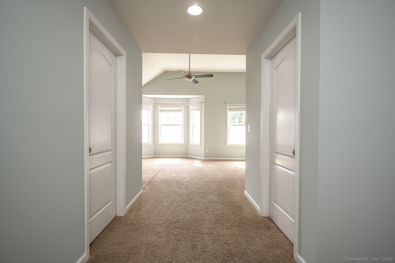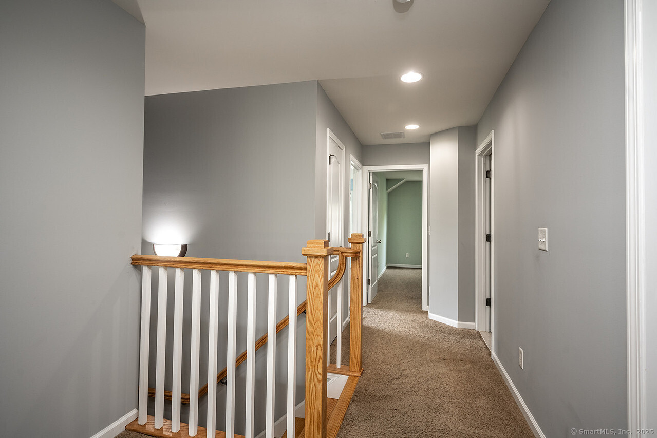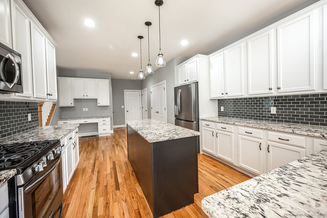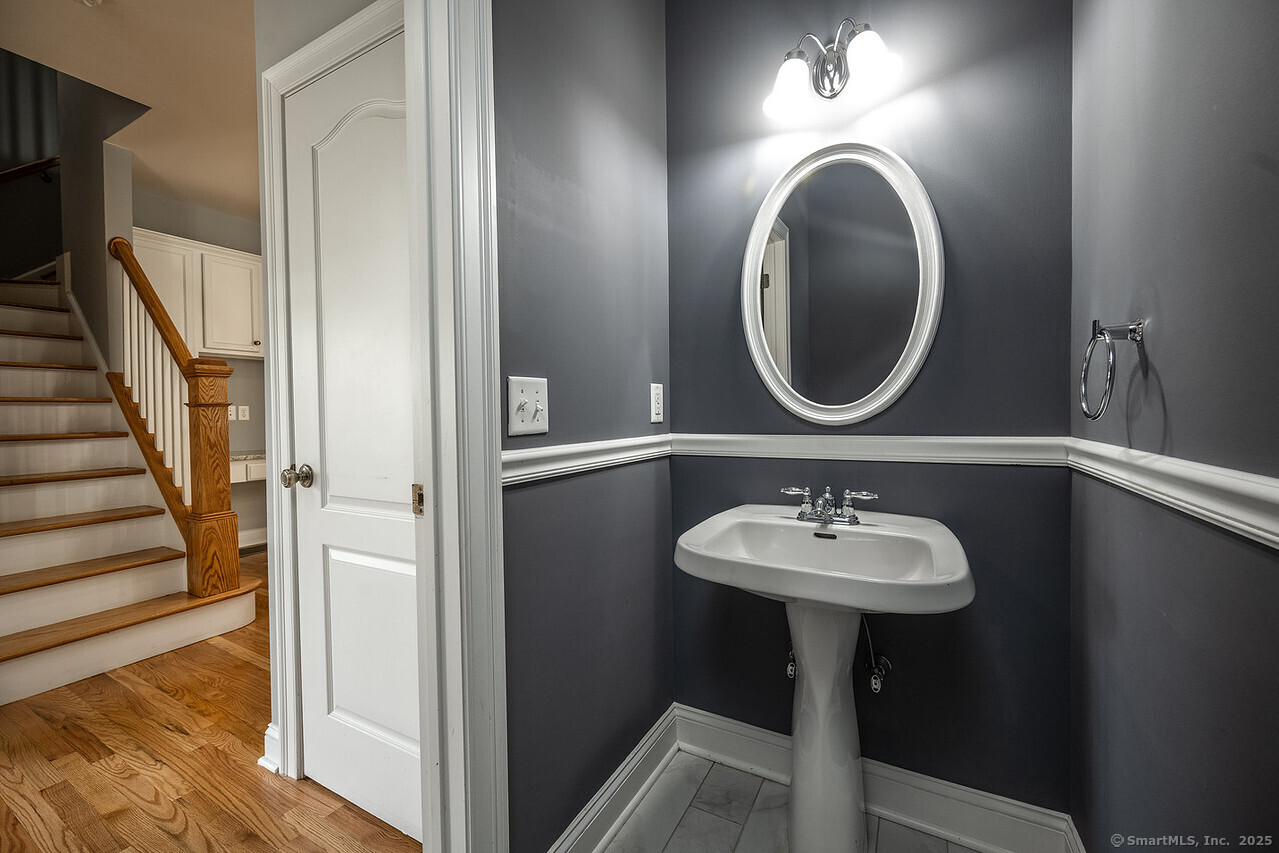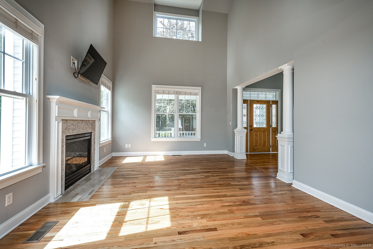 Fall in love with this stunning 3BR 3.5BA duplex that captivates from the moment you arrive! With its dramatic open floor plan, vaulted ceilings and sun-drenched interiors. Meticulously refreshed with crisp new paint, refinished hardwood floors and premium finishes throughout. The foyer with elegant columns opens to a sophisticated formal dining room and breathtaking two-story living room anchored by a cozy gas fireplace-perfect for intimate gatherings or entertaining in style. French doors beckon you to your private deck overlooking peaceful surroundings. The show-stopping kitchen is every chef's dream, featuring Alaska Ice granite countertops, center island, cabinetry galore, stainless appliances, including a brand new refrigerator, tile backsplash, and a generous walk-in pantry complete this culinary masterpiece. The thoughtful desk nook keeps life organized, while direct garage access makes daily routines effortless. Upstairs you'll find the primary bedroom with two walk-in closets, full bath, dual vanity sinks, tiled shower with seat and glass enclosure, plus soaking tub. Two additional bedrooms, full bath and laundry complete the upper level. Finished LL with full bath. TV in LR stays. Super Desirable Timber Oaks Community. Perfectly situated at end of cul-de-sac and just minutes to charming downtown Bethel. Convenient to major highways, shopping and numerous restaurants. Only a 15 minute drive from NY line!