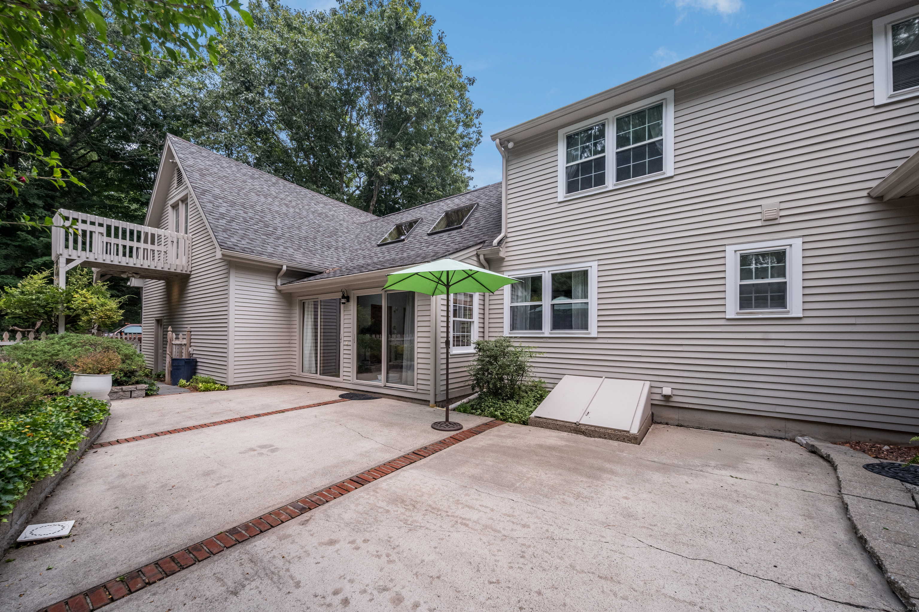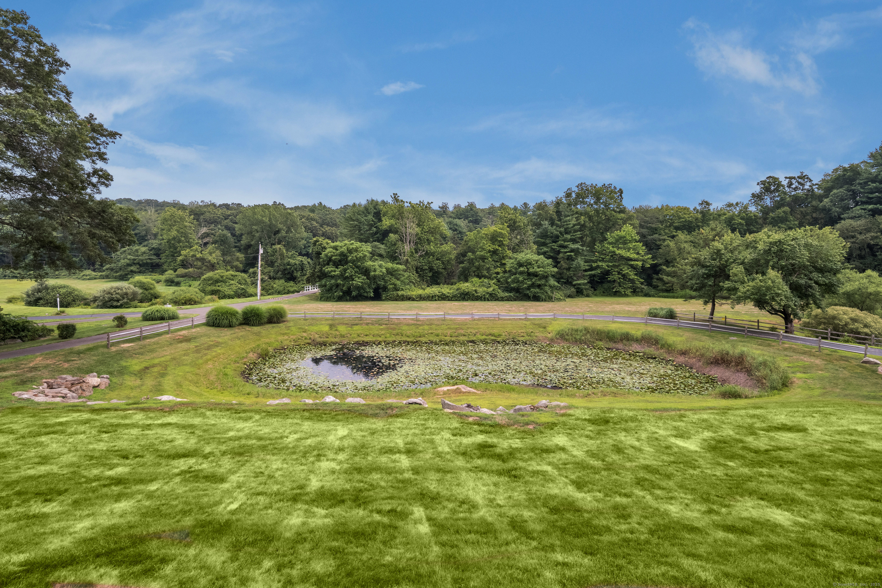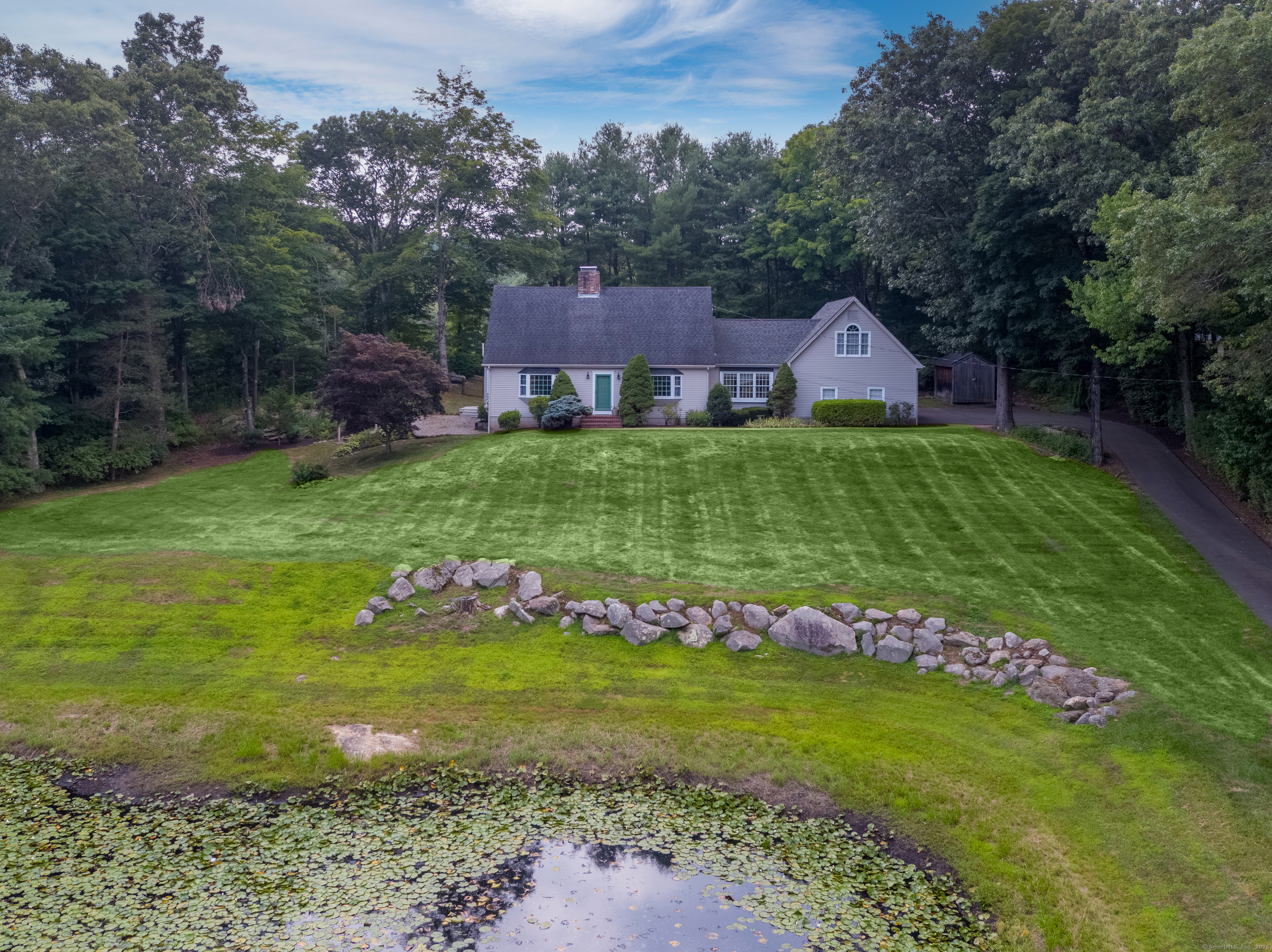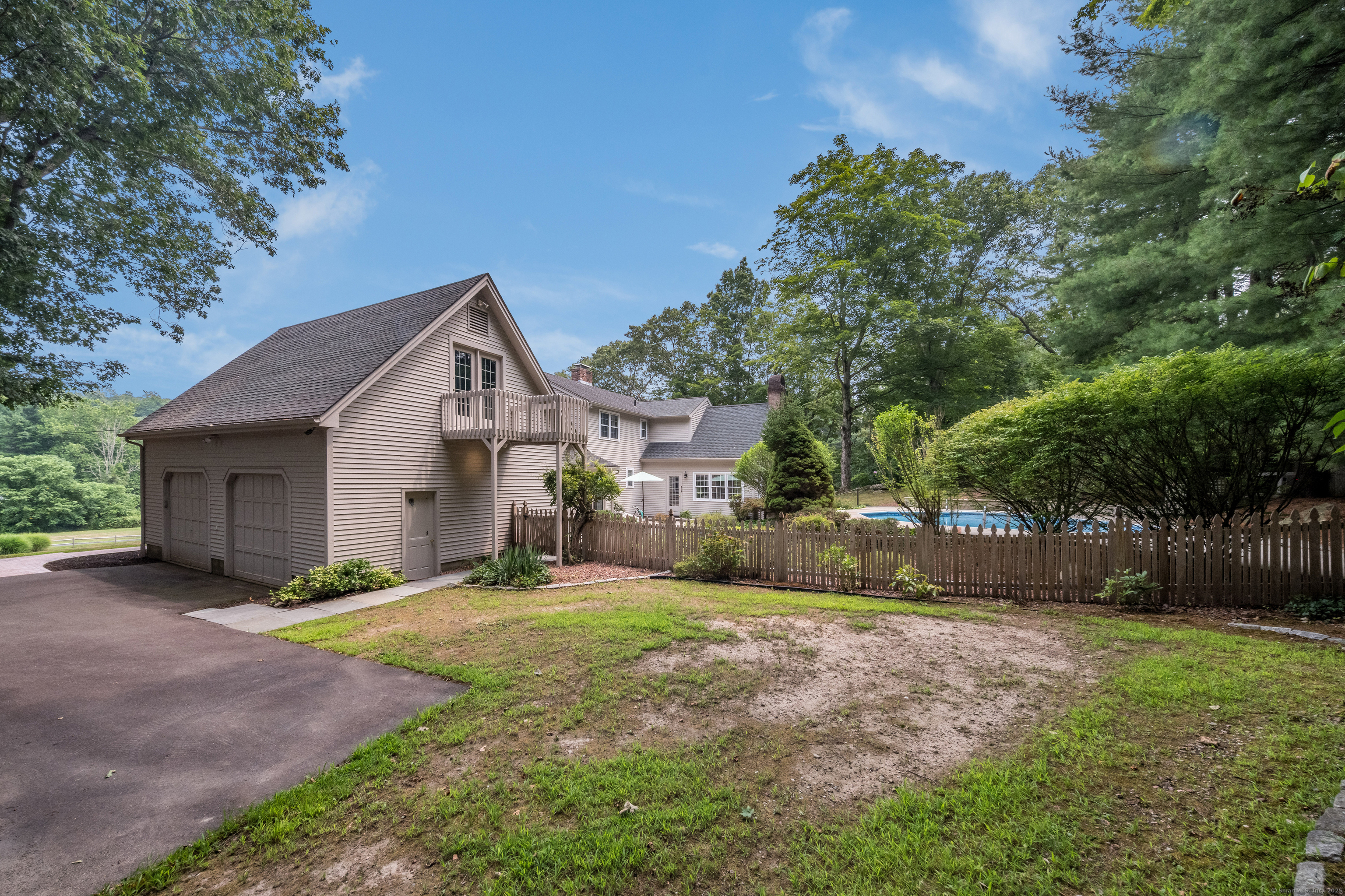Discover exceptional living on this private interior lot featuring your own tranquil pond and over 3,000 square feet of beautifully appointed living space. This impressive Guilford home offers endless possibilities with an additional 260 square feet of finished basement space and a remarkable 650 square feet of unfinished area above the oversized two-car garage, complete with its own balcony-perfect for future in-law suite or home office. The heart of the home showcases a recently remodeled kitchen that seamlessly flows into the expansive family room featuring soaring cathedral ceilings and a cozy wood-burning fireplace. Natural light floods the generous sunroom with its dramatic vaulted ceilings and skylights, creating the perfect year-round retreat with sliders that open to the back patio. The second-floor primary suite impresses with cathedral ceilings and dual walk-in closets for ultimate comfort and storage. The flexible first-floor dining room currently serves as a bedroom, offering versatile living arrangements to suit your needs. Outdoor entertainment reaches new heights with the built-in saltwater pool featuring a heat pump system and recently replaced liner. The private pond adds serene natural beauty to this already exceptional property. This rare offering combines spacious living, recent updates, expansion potential, and unmatched privacy in one of Guilford's most desirable settings.