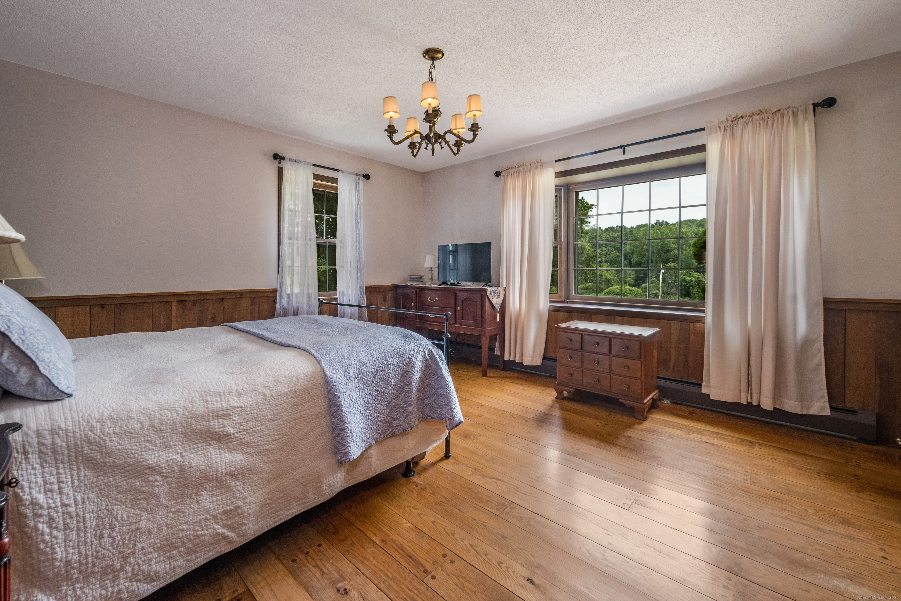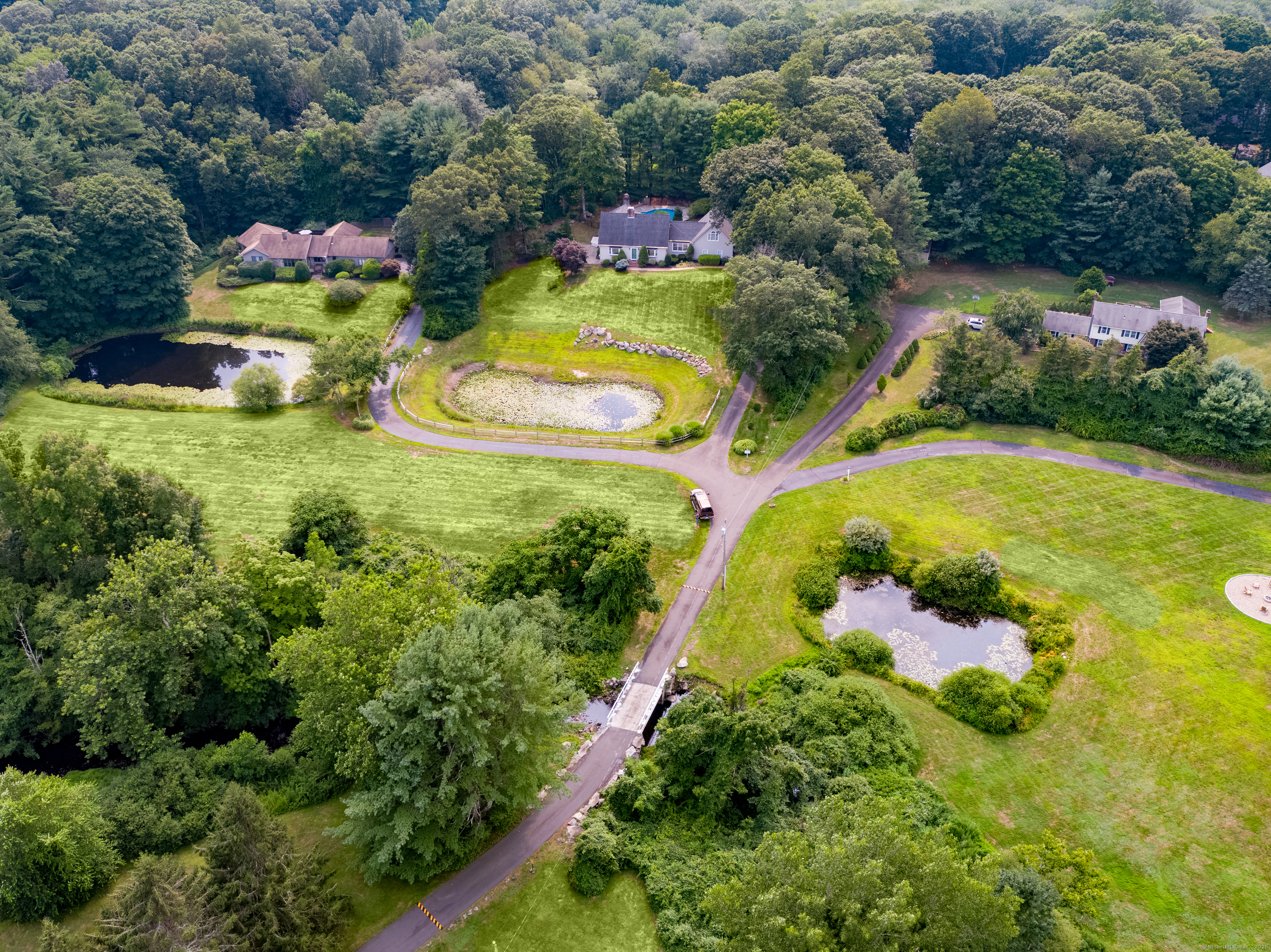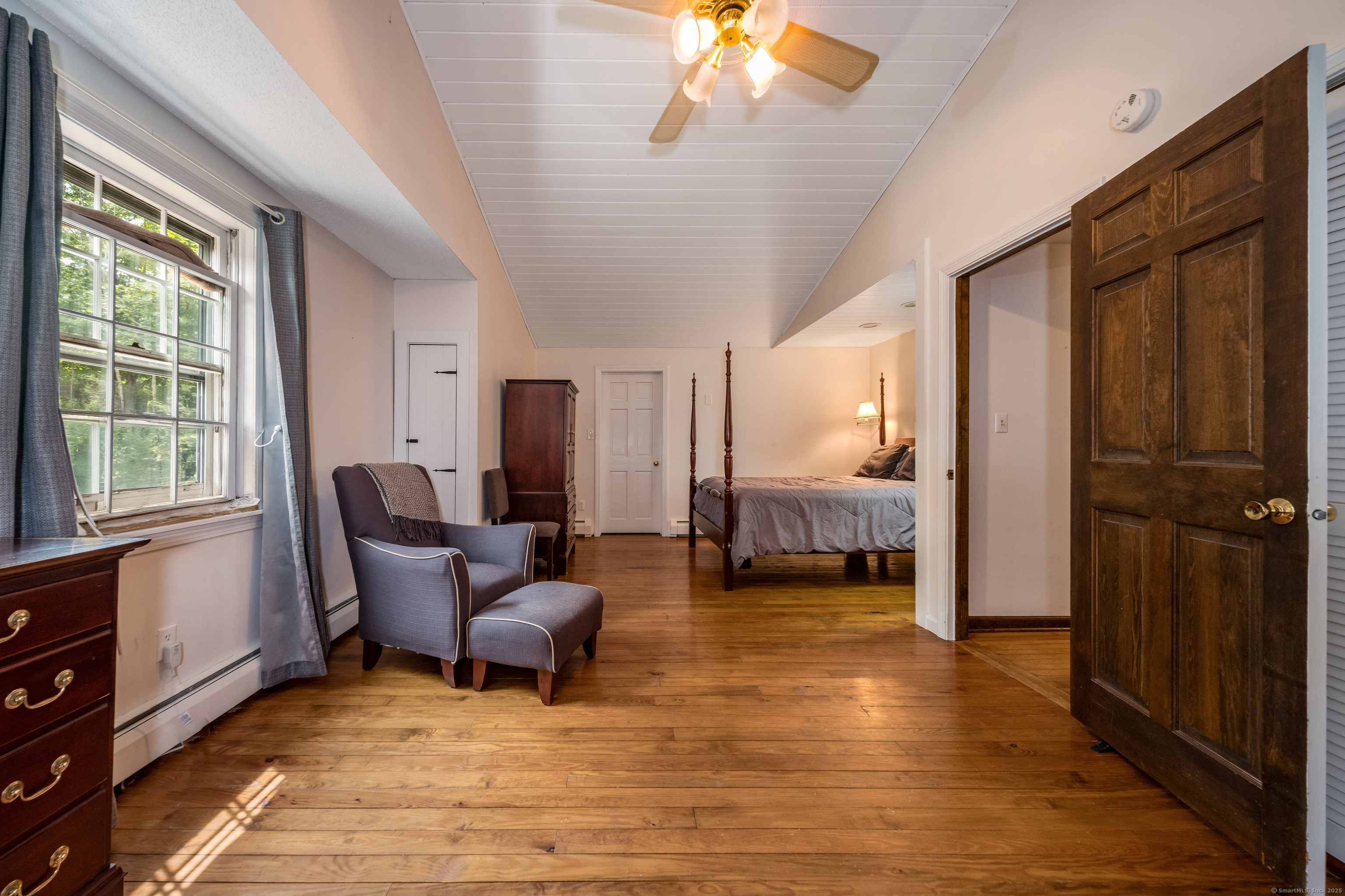 Discover exceptional living on this private interior lot featuring your own tranquil pond and over 3,000 square feet of beautifully appointed living space. This impressive Guilford home offers endless possibilities with an additional 260 square feet of finished basement space and a remarkable 650 square feet of unfinished area above the oversized two-car garage, complete with its own balcony-perfect for future in-law suite or home office. The heart of the home showcases a recently remodeled kitchen that seamlessly flows into the expansive family room featuring soaring cathedral ceilings and a cozy wood-burning fireplace. Natural light floods the generous sunroom with its dramatic vaulted ceilings and skylights, creating the perfect year-round retreat with sliders that open to the back patio. The second-floor primary suite impresses with cathedral ceilings and dual walk-in closets for ultimate comfort and storage. The flexible first-floor dining room currently serves as a bedroom, offering versatile living arrangements to suit your needs. Outdoor entertainment reaches new heights with the built-in saltwater pool featuring a heat pump system and recently replaced liner. The private pond adds serene natural beauty to this already exceptional property. This rare offering combines spacious living, recent updates, expansion potential, and unmatched privacy in one of Guilford's most desirable settings.