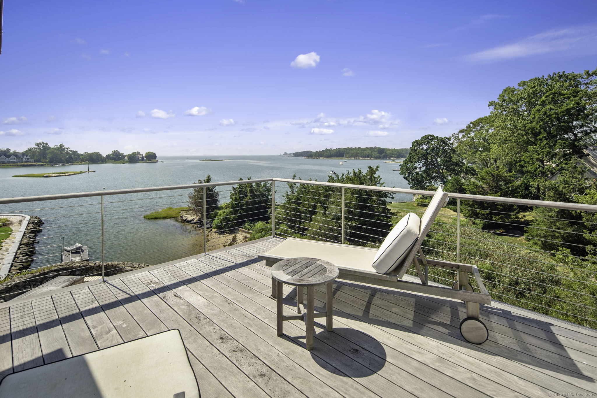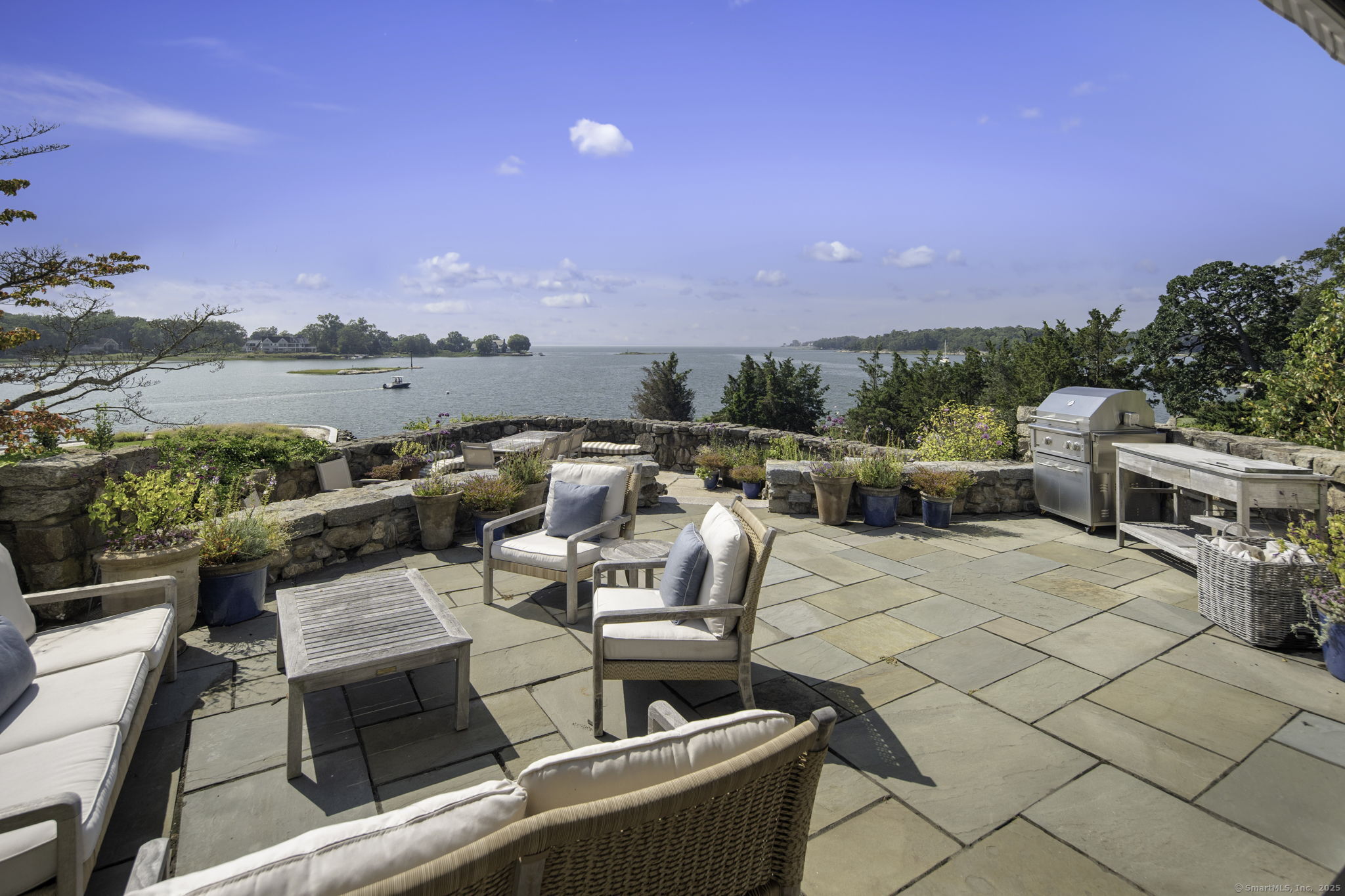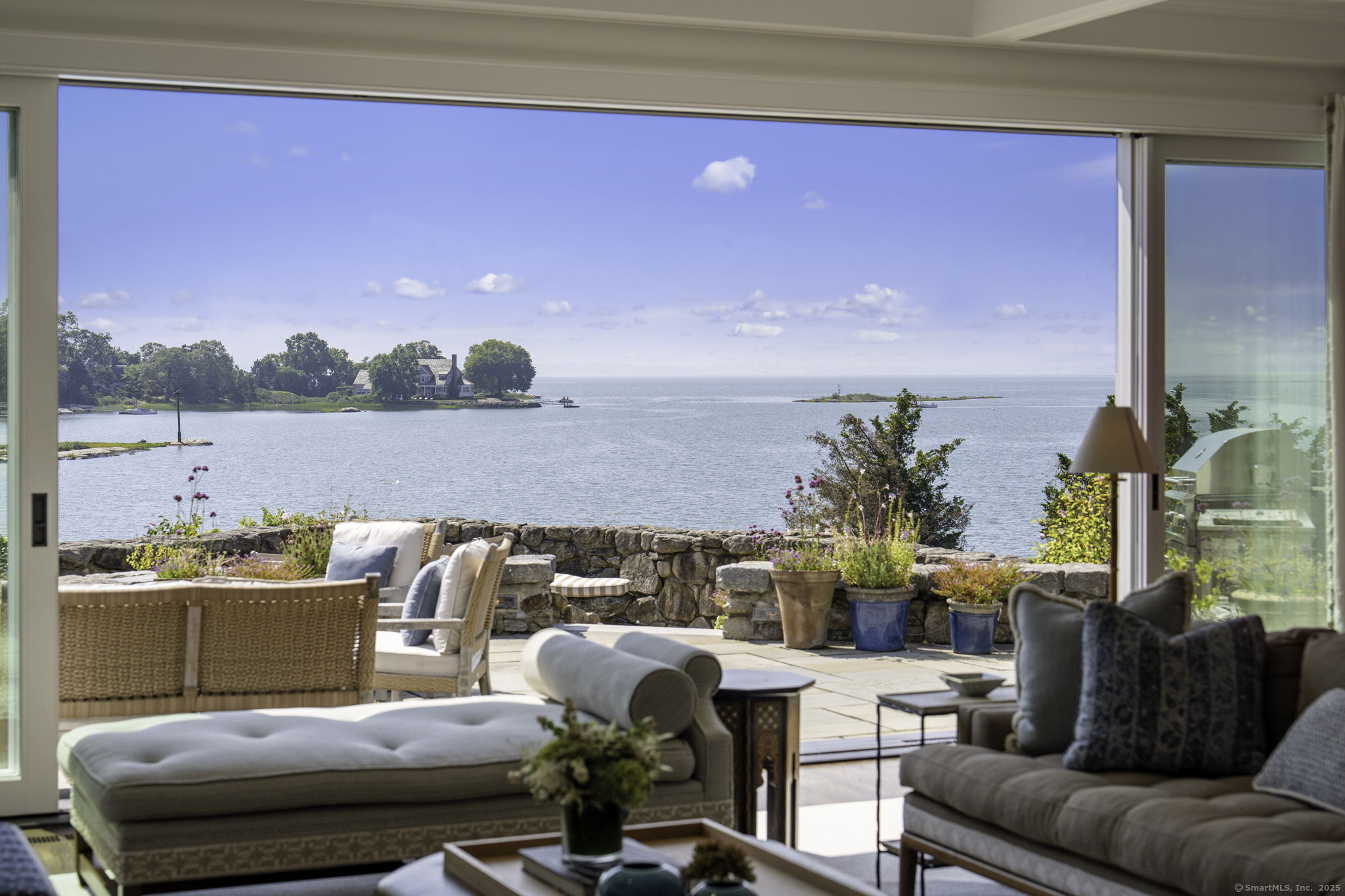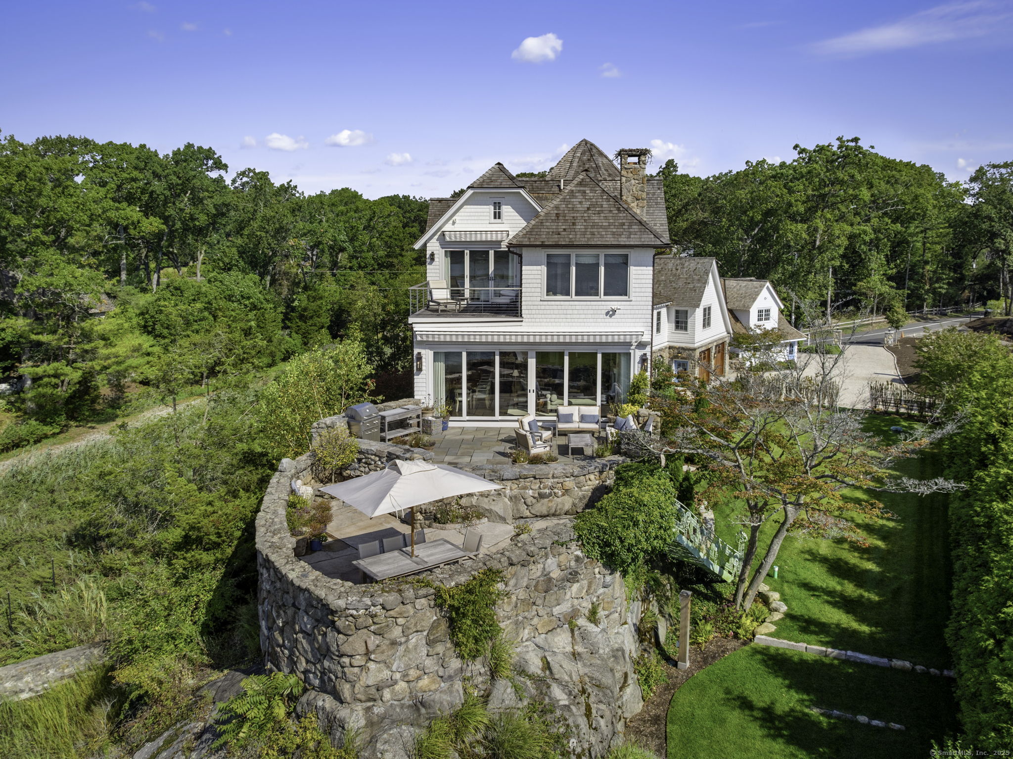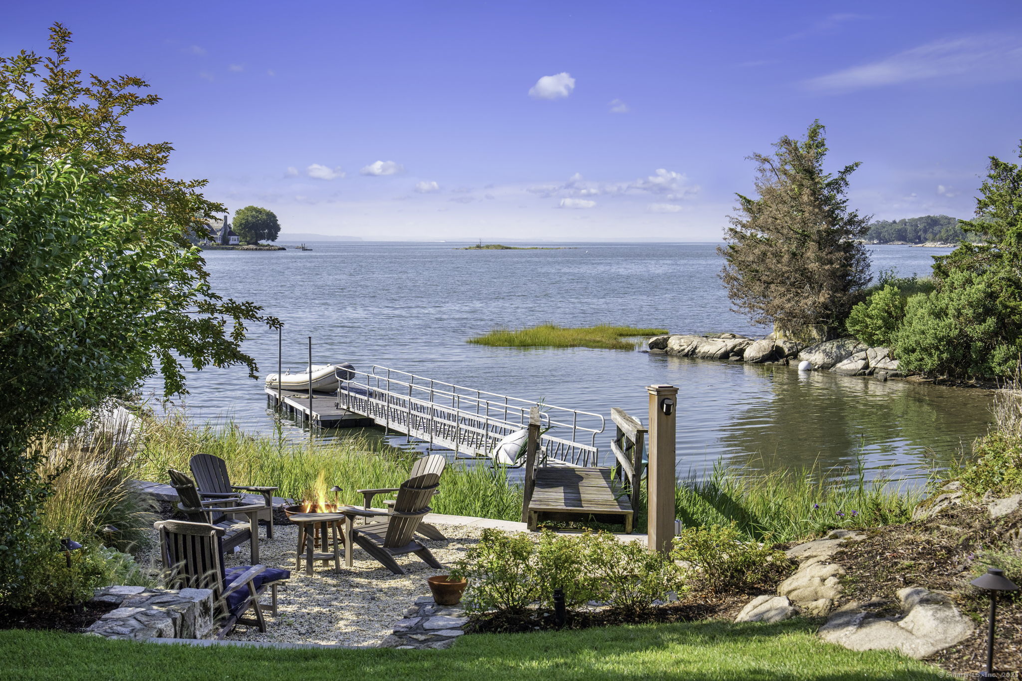 25 Tokeneke Trail - Where the Sky meets the Sea. Wake up to breathtaking sunrises, spend afternoons on the water, and end each day with sunset views from your private terrace. 25 Tokeneke Trail isn't just a home-it's a lifestyle. Perfectly perched above the shoreline and not in a flood zone, this stunning waterfront retreat offers direct access to the water with its own private beach, dock and mooring. Designed for seamless indoor-outdoor living, nearly every room frames panoramic water views. Multiple stone terraces, a firepit, and lush landscaping create the perfect setting for entertaining or quiet relaxation. Inside, over 6,000 sq. ft. of refined living space includes five bedrooms, seven baths, and a private studio suite over the detached garage ideal for a guest house or private retreat. Minutes from downtown Darien and the train to NYC, this rare property blends the serenity of coastal living with the best of modern luxury.