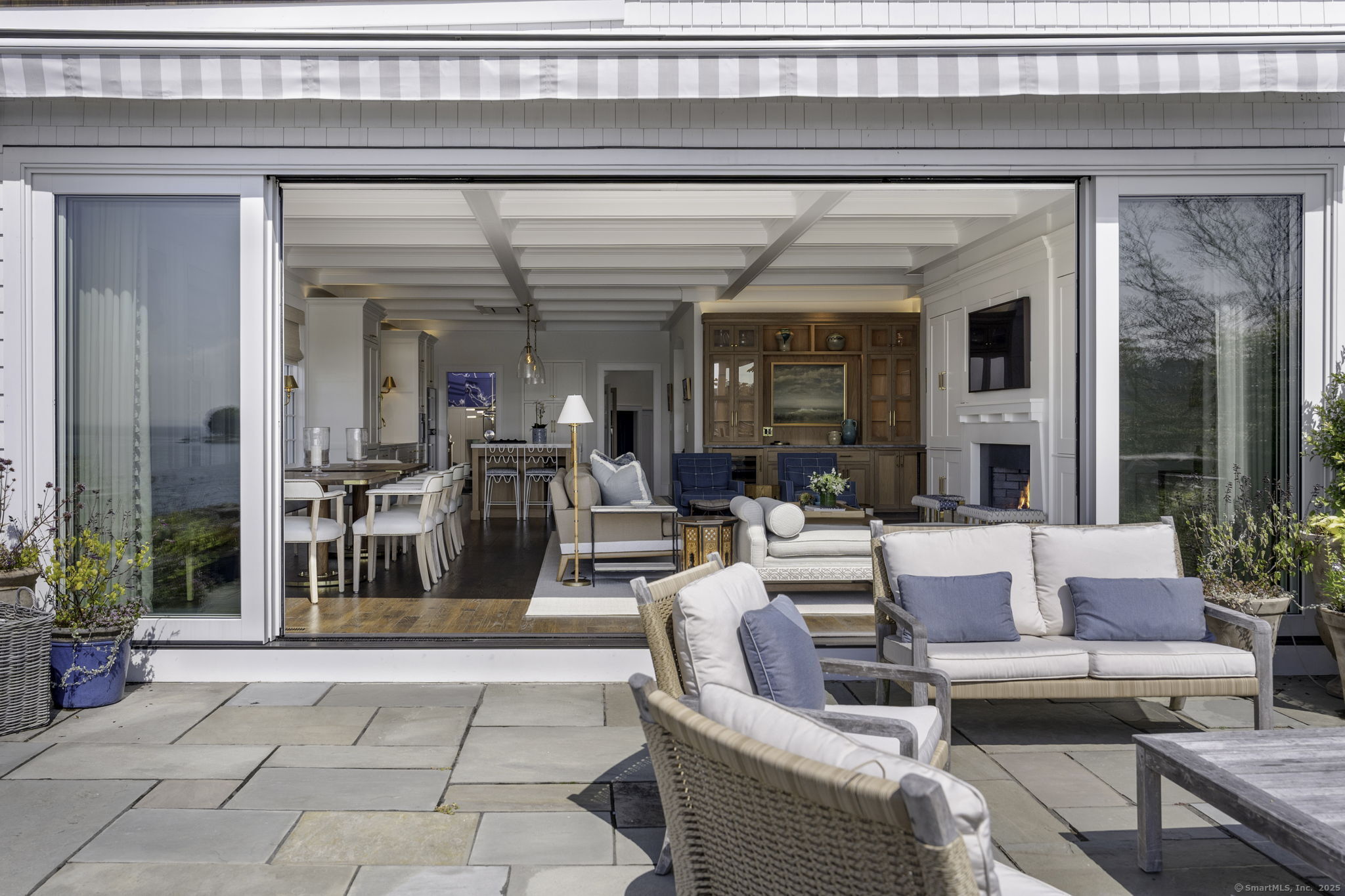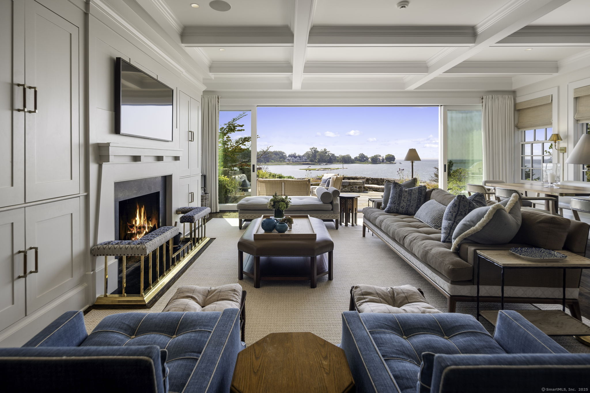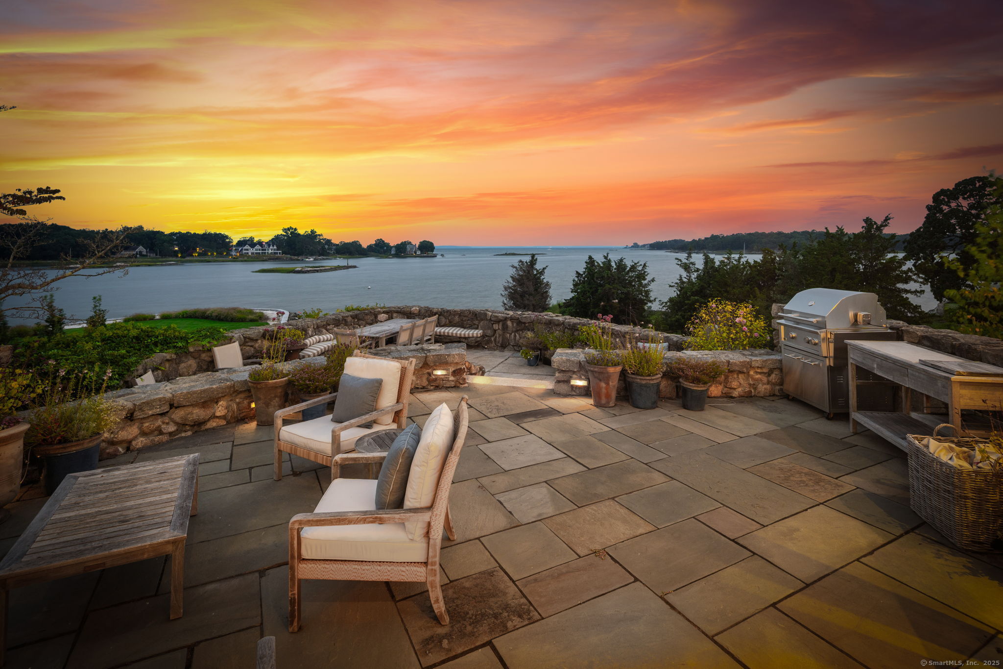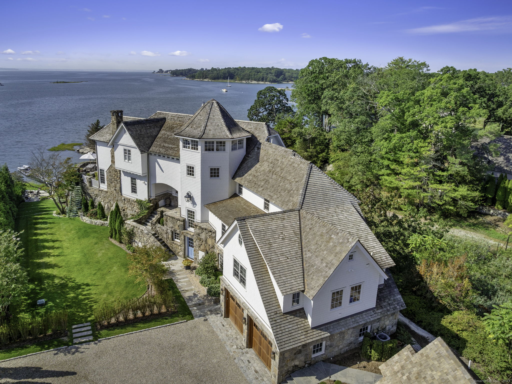 25 Tokeneke Trail - Where the Sky meets the Sea. Wake up to breathtaking sunrises, spend afternoons on the water, and end each day with sunset views from your private terrace. 25 Tokeneke Trail isn't just a home-it's a lifestyle. Perfectly perched above the shoreline and not in a flood zone, this stunning waterfront retreat offers direct access to the water with its own private beach, dock and mooring. Designed for seamless indoor-outdoor living, nearly every room frames panoramic water views. Multiple stone terraces, a firepit, and lush landscaping create the perfect setting for entertaining or quiet relaxation. Inside, over 6,000 sq. ft. of refined living space includes five bedrooms, seven baths, and a private studio suite over the detached garage ideal for a guest house or private retreat. Minutes from downtown Darien and the train to NYC, this rare property blends the serenity of coastal living with the best of modern luxury.