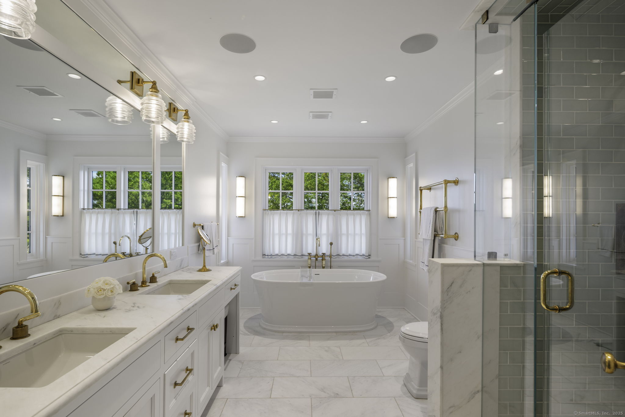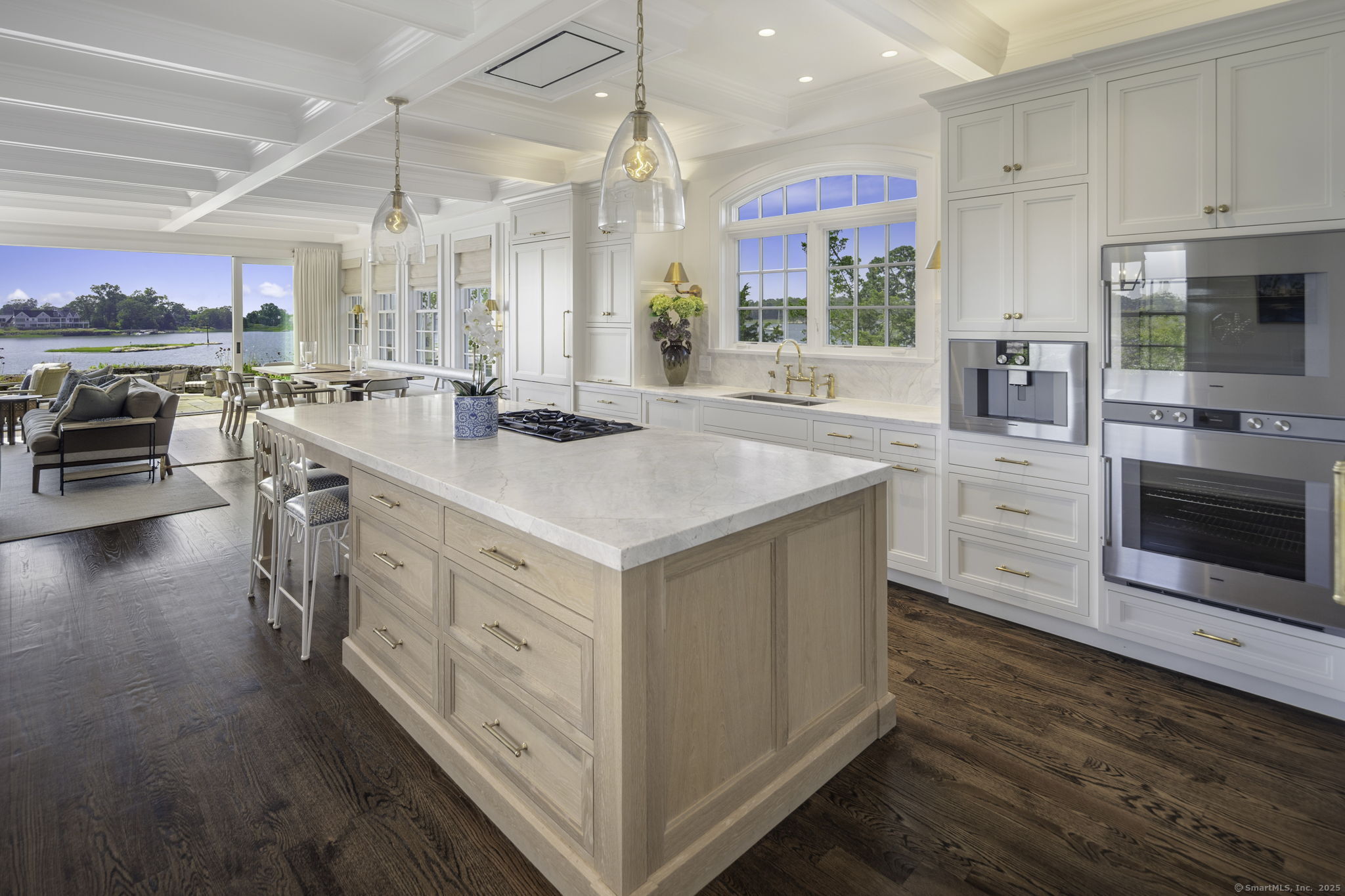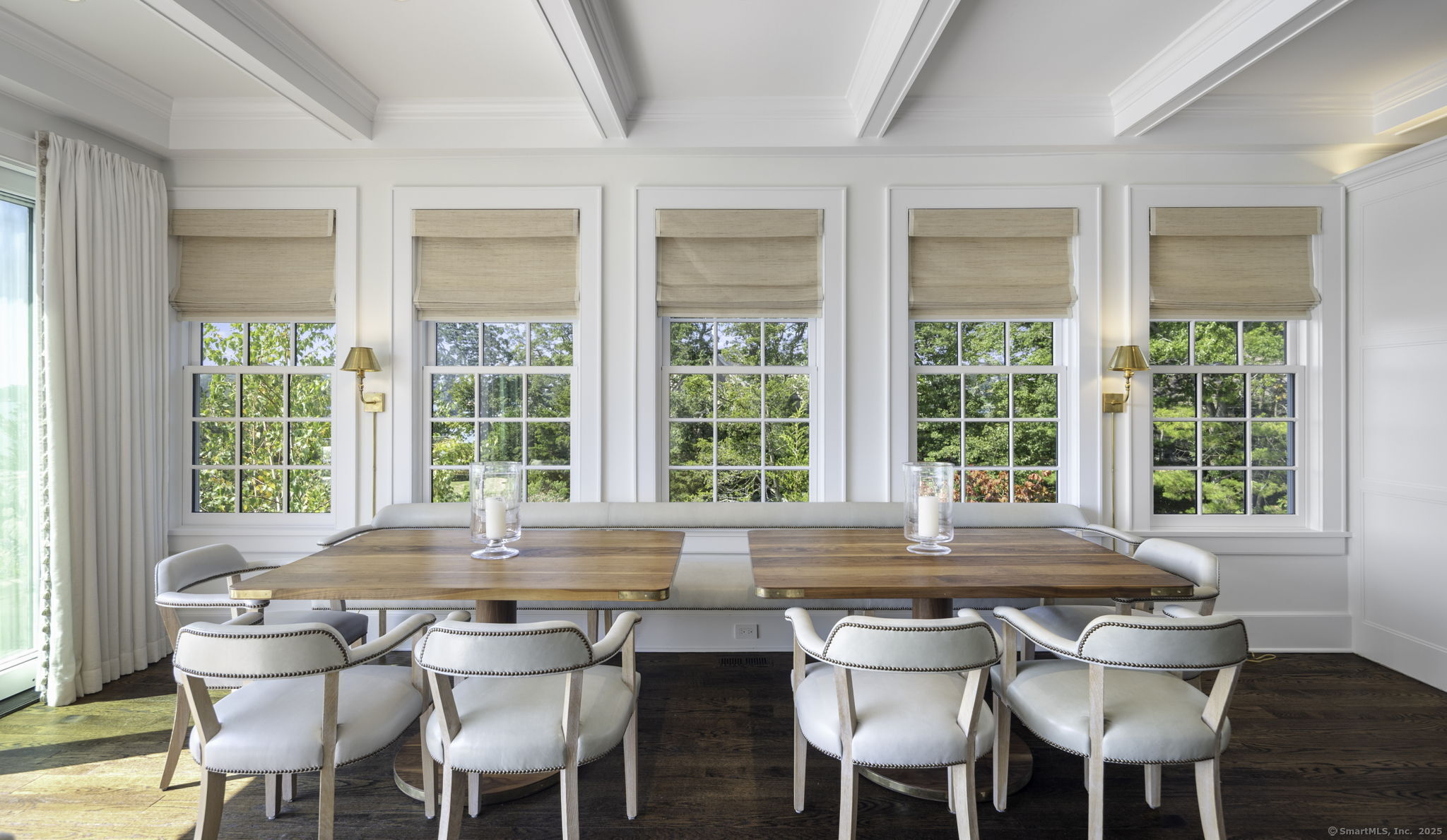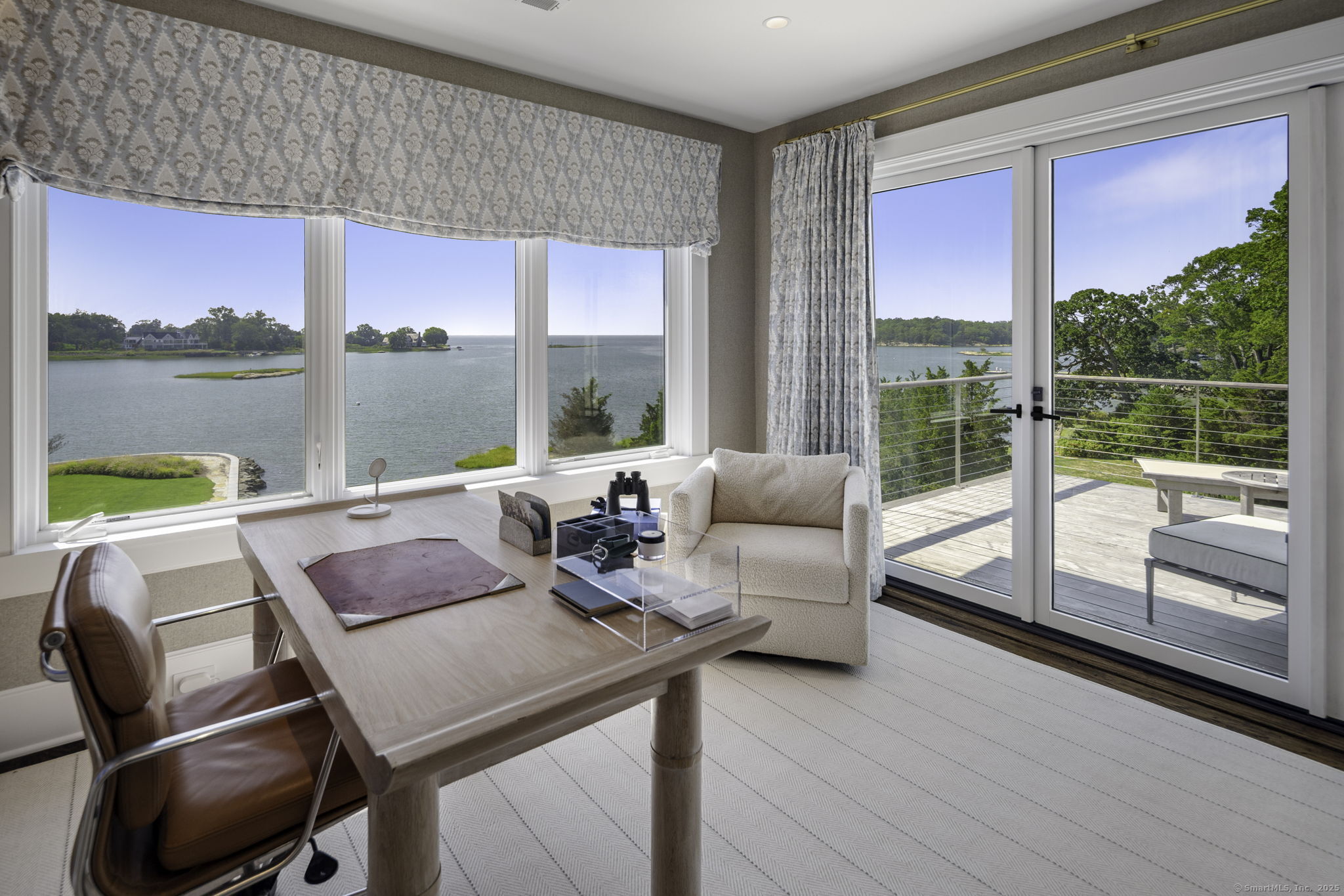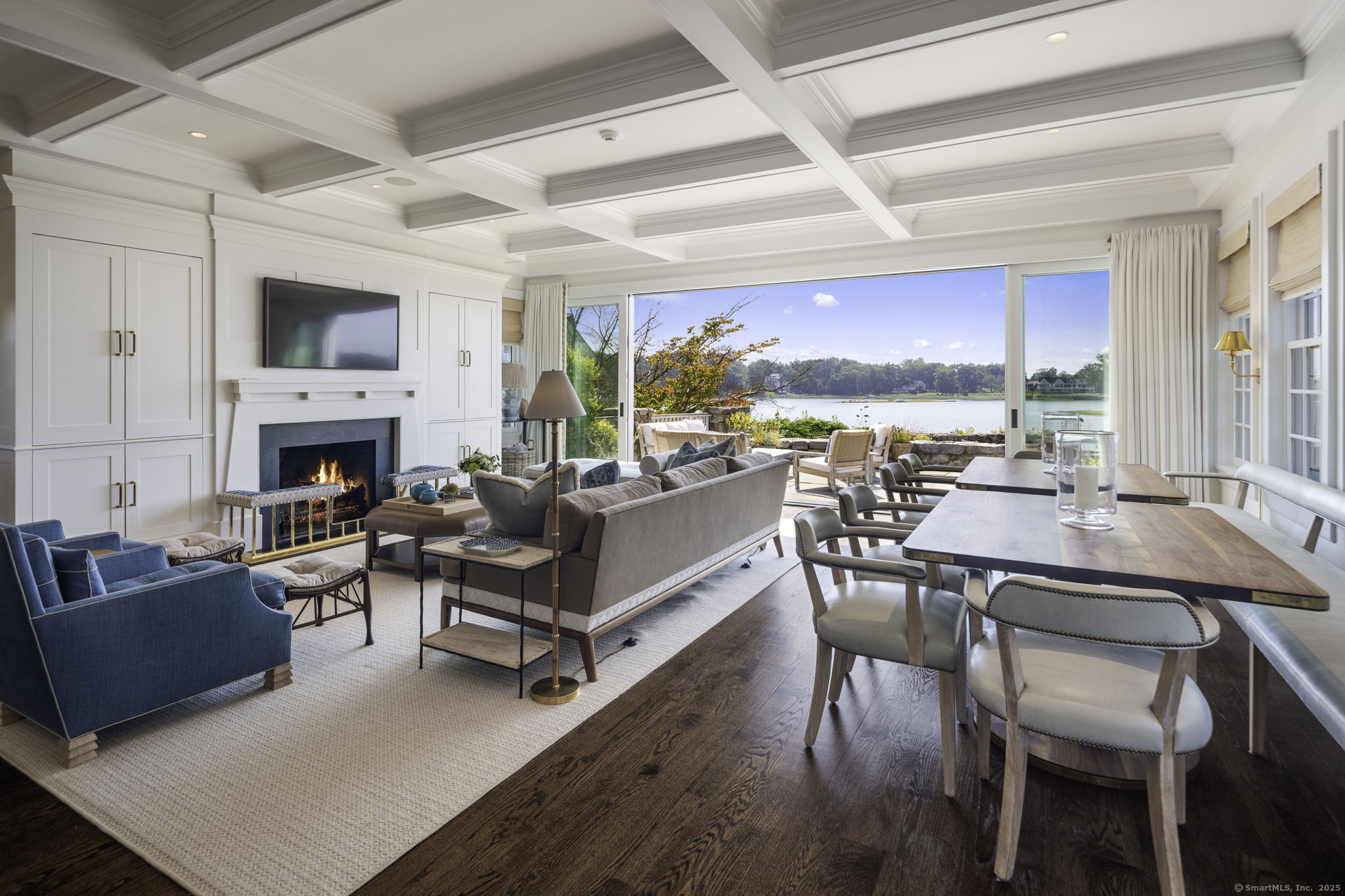 25 Tokeneke Trail - Where the Sky meets the Sea. Wake up to breathtaking sunrises, spend afternoons on the water, and end each day with sunset views from your private terrace. 25 Tokeneke Trail isn't just a home-it's a lifestyle. Perfectly perched above the shoreline and not in a flood zone, this stunning waterfront retreat offers direct access to the water with its own private beach, dock and mooring. Designed for seamless indoor-outdoor living, nearly every room frames panoramic water views. Multiple stone terraces, a firepit, and lush landscaping create the perfect setting for entertaining or quiet relaxation. Inside, over 6,000 sq. ft. of refined living space includes five bedrooms, seven baths, and a private studio suite over the detached garage ideal for a guest house or private retreat. Minutes from downtown Darien and the train to NYC, this rare property blends the serenity of coastal living with the best of modern luxury.