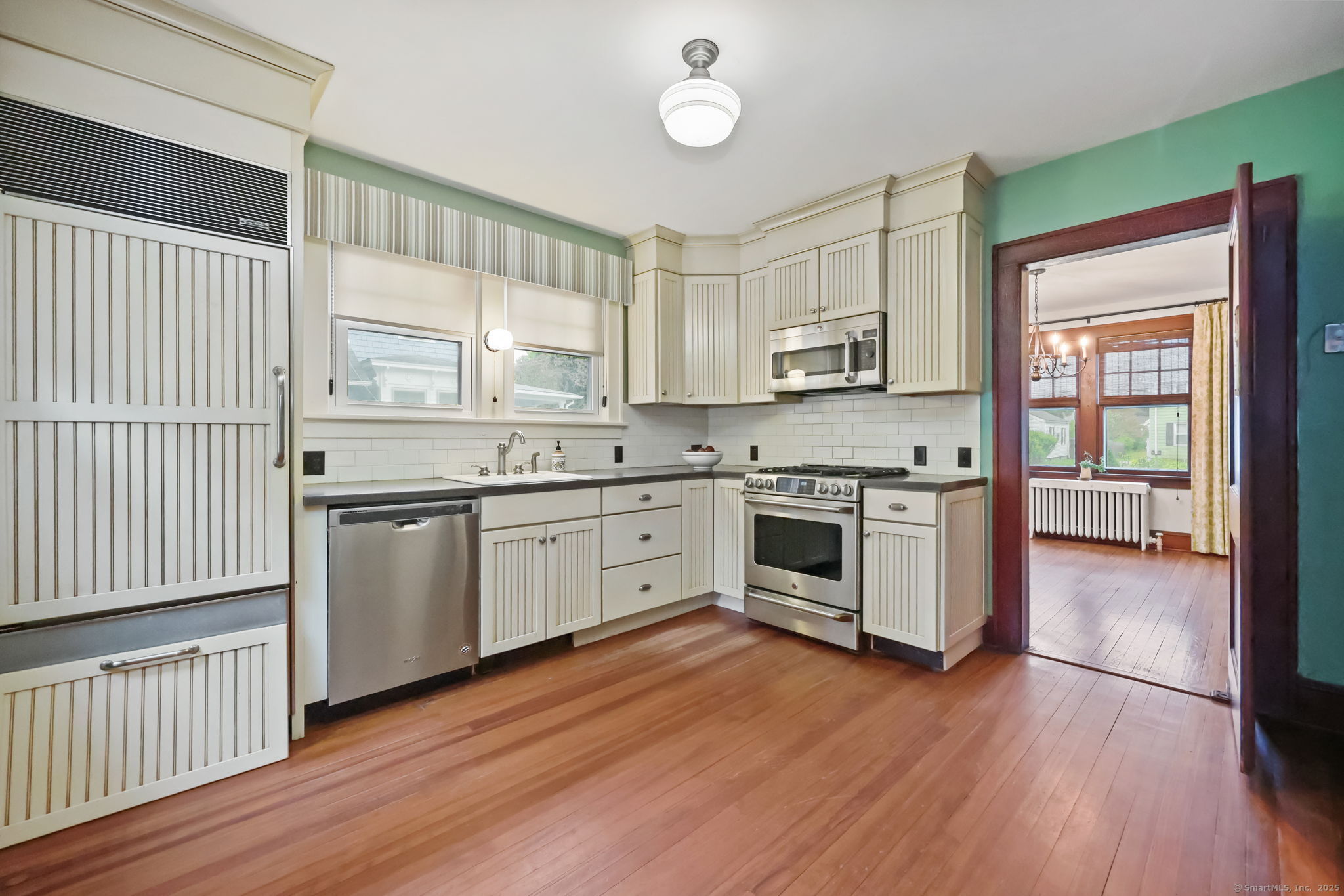 Charming 1930's Colonial in the Heart of Bethel! Step into timeless elegance with this classic 3-bedroom, 2.5-bath Colonial, brimming with character and warmth. Nestled on a level yard with a fenced-in area, this home combines vintage charm with modern convenience. Inside, you'll find beautiful hardwood floors, wood details in the dining and living rooms, and an old-fashioned pantry that adds a touch of nostalgia to the kitchen. The bright sunroom invites year-round enjoyment, while the spacious deck is perfect for entertaining or relaxing outdoors. A detached two-car garage provides ample storage, and the property's layout offers both privacy and functionality. Located close to shopping, schools, and major commuting routes, this home is as practical as it is inviting.If you've been looking for a home that blends history, charm, and everyday comfort-this Bethel Colonial is the one - Don't miss out!