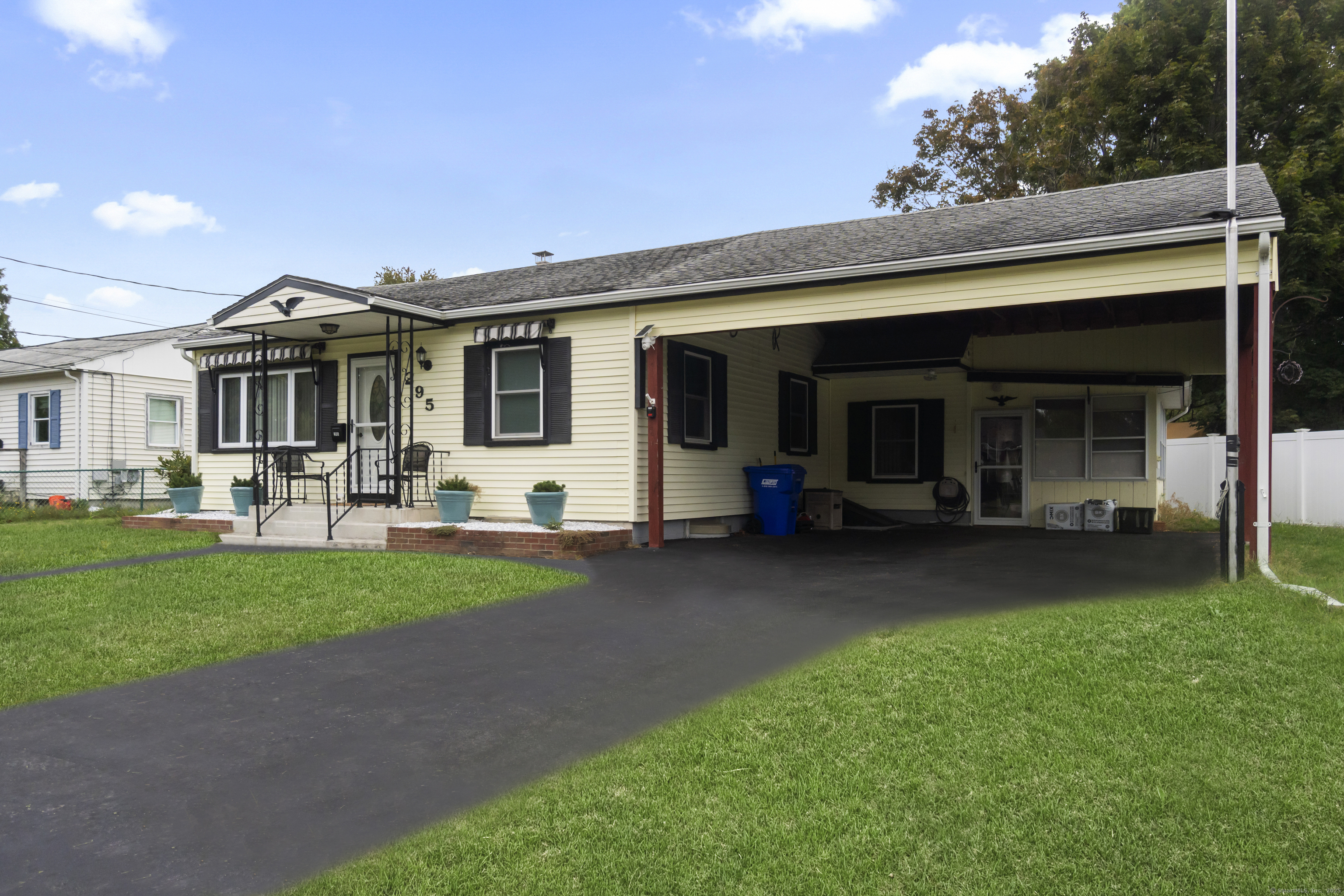 Welcome to this cheerful yellow ranch in Groton, offering comfortable single-level living with convenient features throughout. This 2-bedroom, 1-bath home sits on a fully fenced yard, perfect for pets, gardening, or outdoor entertaining. A cozy fireplace anchors the living room, while solar lighting adds energy-efficient charm to the property. Additional highlights include a carport for covered parking, an outdoor shed for extra storage, and a modern security system with real-time 24/7 surveillance accessible from your phone. Being sold as-is, with seller making no repairs, this home is a great opportunity to bring your own updates and vision to life.