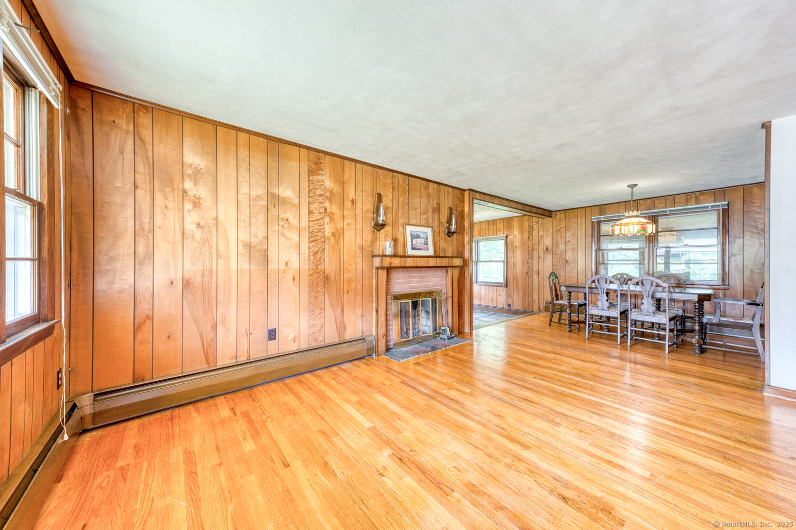 Charming ranch-style home featuring hardwood floors throughout the main living areas, a cozy living room with fireplace, and a dedicated dining room. Offering three spacious bedrooms and two full baths, this home provides both comfort and convenience. The walk-out basement with large windows offers excellent potential to be finished for additional living space. Nestled near the end of a quiet cul-de-sac, this property is an ideal choice for raising a family or downsizing in a desirable location.