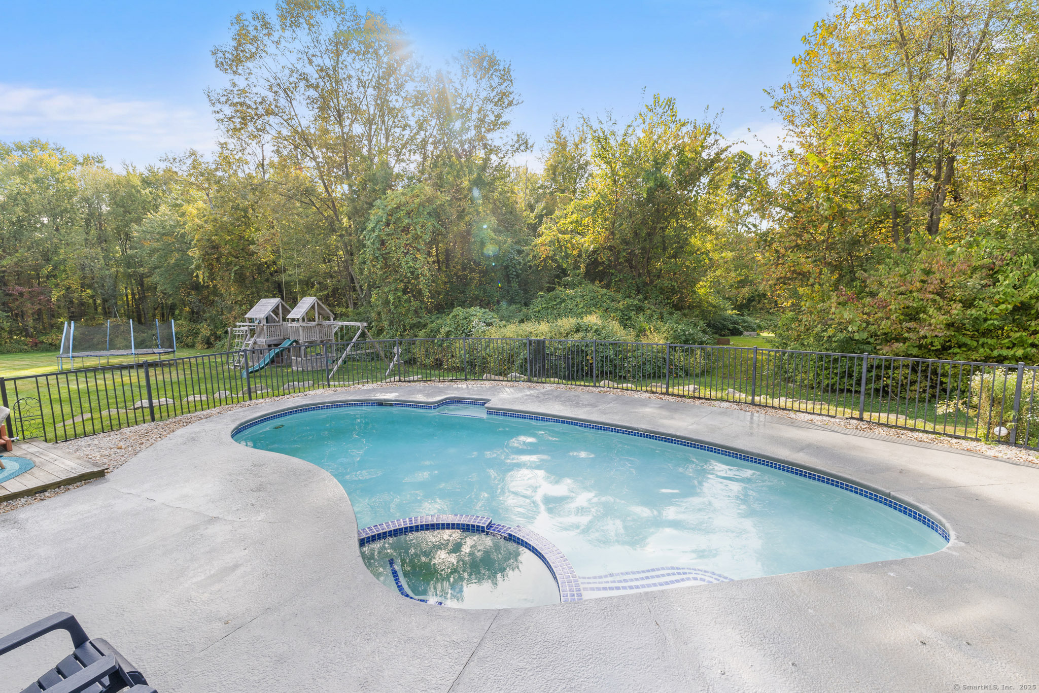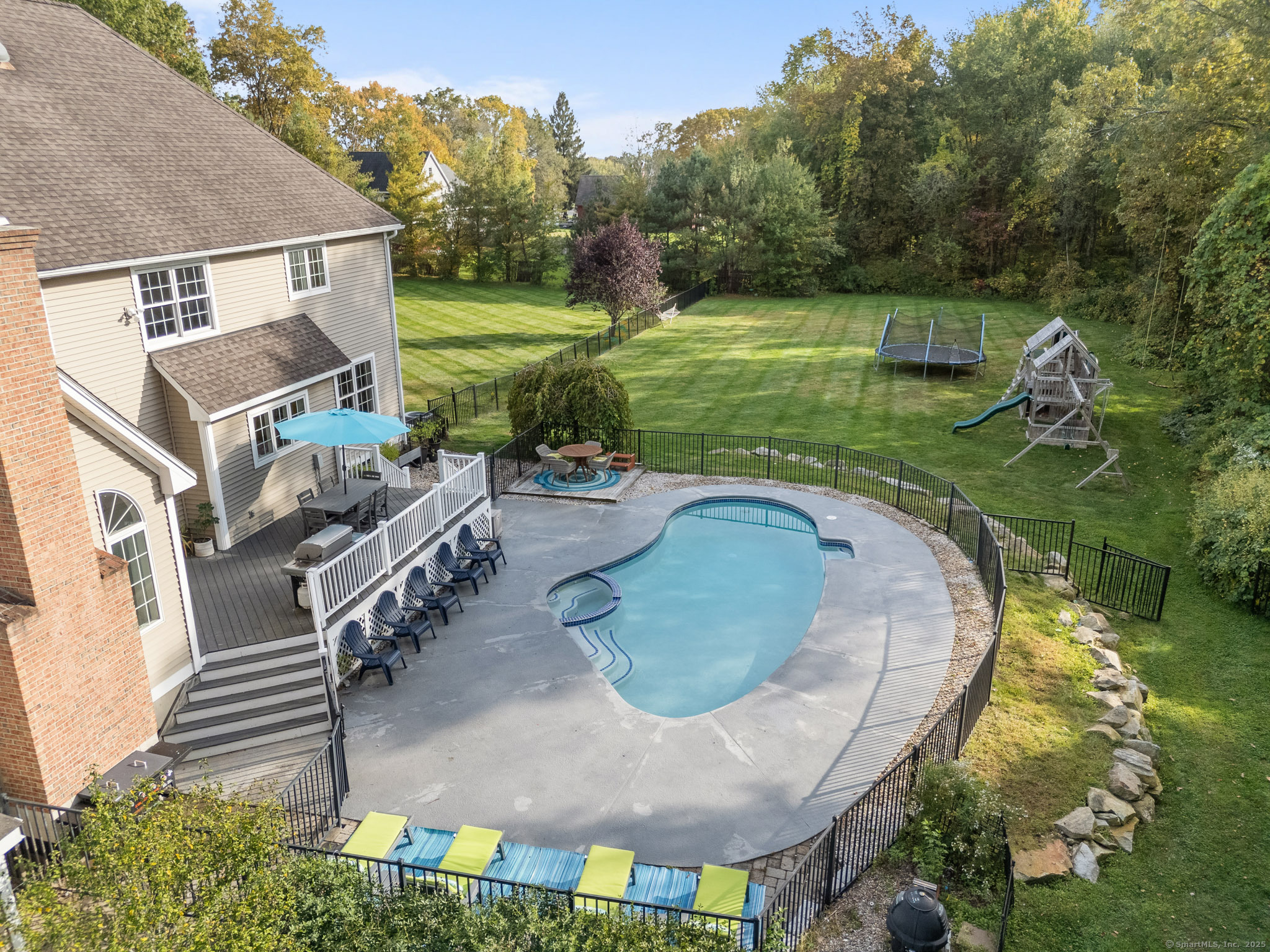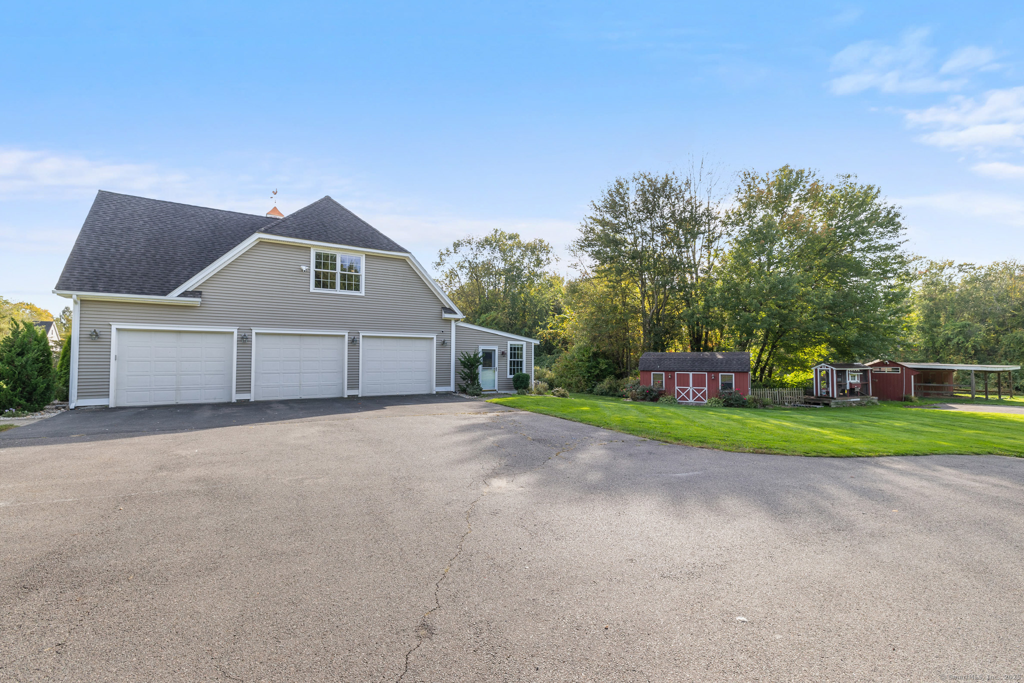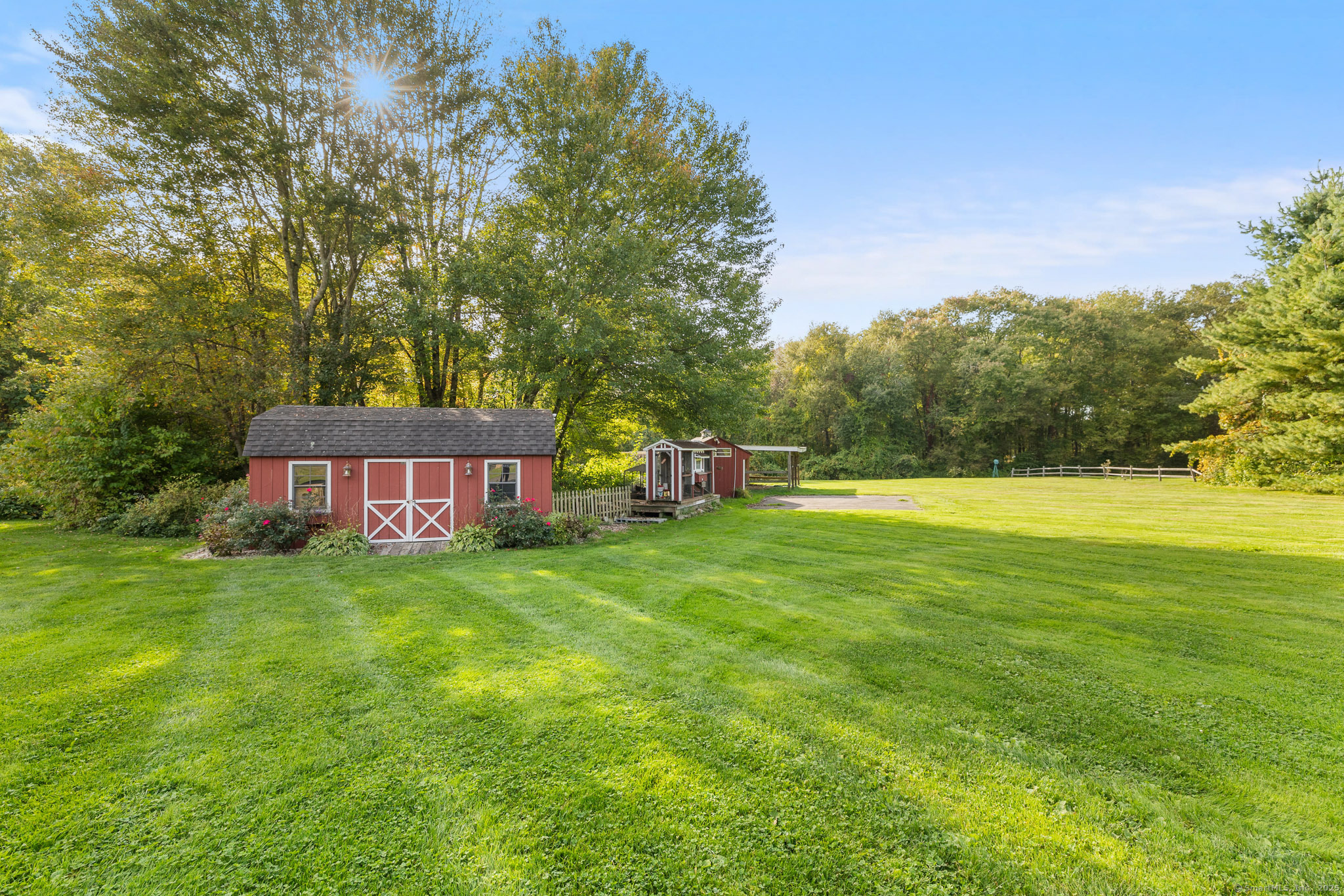 This stunning 5-bedroom Colonial is perfectly situated on more than 6 acres, offering true resort-style living. Open eat-in kitchen features granite countertops, center island with seating, all new stainless steel appliances, and a new slider to the deck. The impressive great room boasts a floor-to-ceiling stone fireplace, while the formal dining room includes a wet bar with granite counters and custom cabinetry. A cozy family room with a fireplace and hardwood floors throughout completes the inviting main level, along with a separate home office for today's lifestyle needs. Upstairs, the spacious primary suite offers a large walk-in closet and a luxurious bath with a deep jetted tub. Three additional bedrooms and a full bath complete the second floor. An exceptional in-law apartment is located over the garage with a private entrance, featuring its own bedroom, kitchen, living/dining area, and full bath. Additional office with private entry is attached to the oversized 3-bay garage, providing ideal space for remote work or a home business. Step outside to your own backyard oasis with a heated in-ground gunite pool (reblasted in 2024) with new pool heater, night lights, attached hot tub, perfect for entertaining day or night. The property also includes a 3-stall barn with tack area and a shed. Enjoy seasonal lake views, a firepit area, and a fully fenced space great for dogs or young kids. Huge open basement with tall ceilings Highest & best is due Monday October 13th at 4 PM