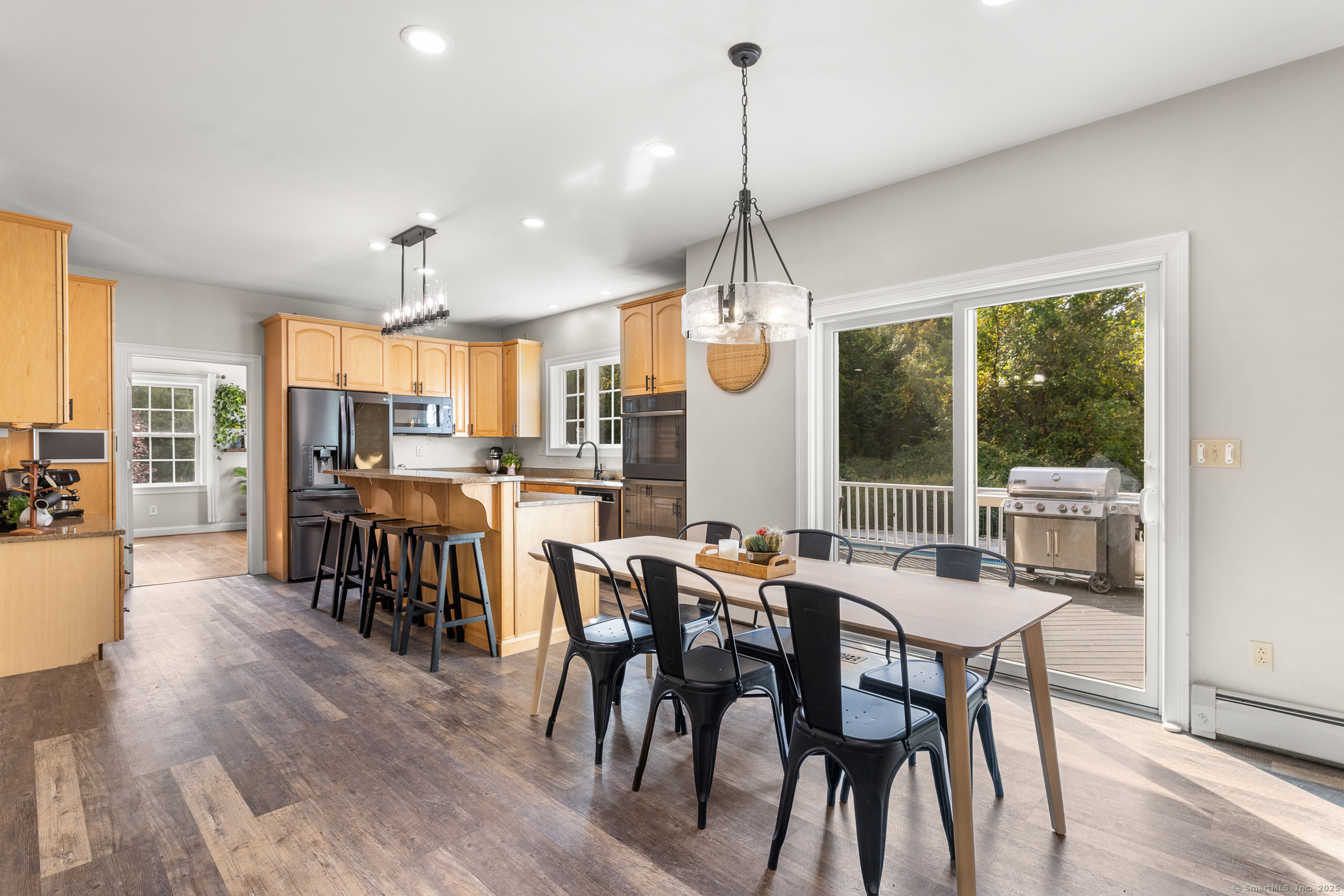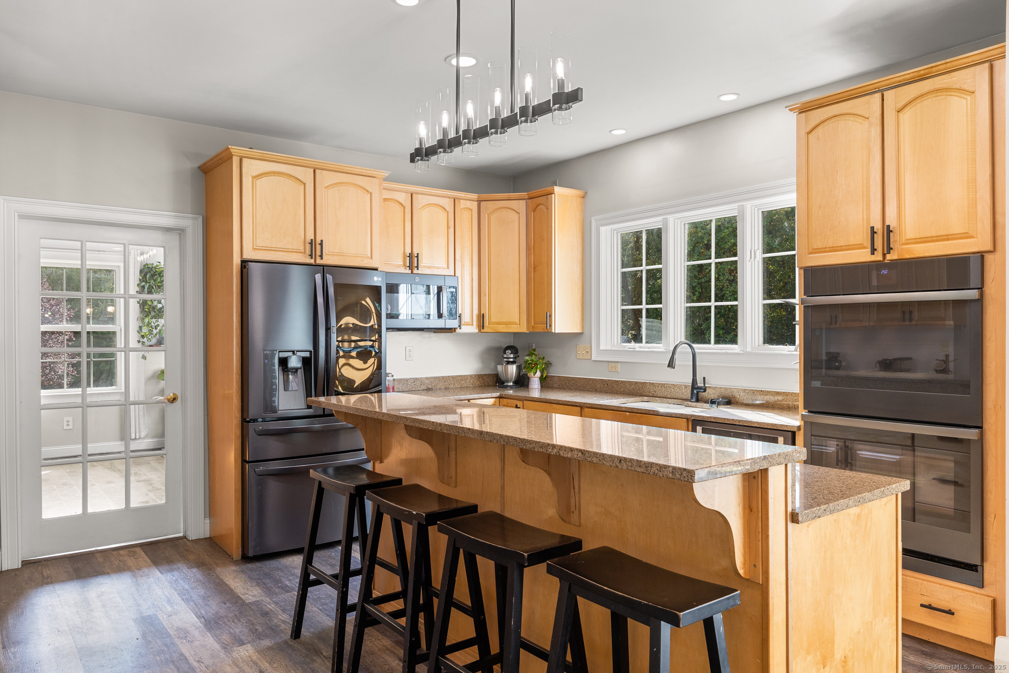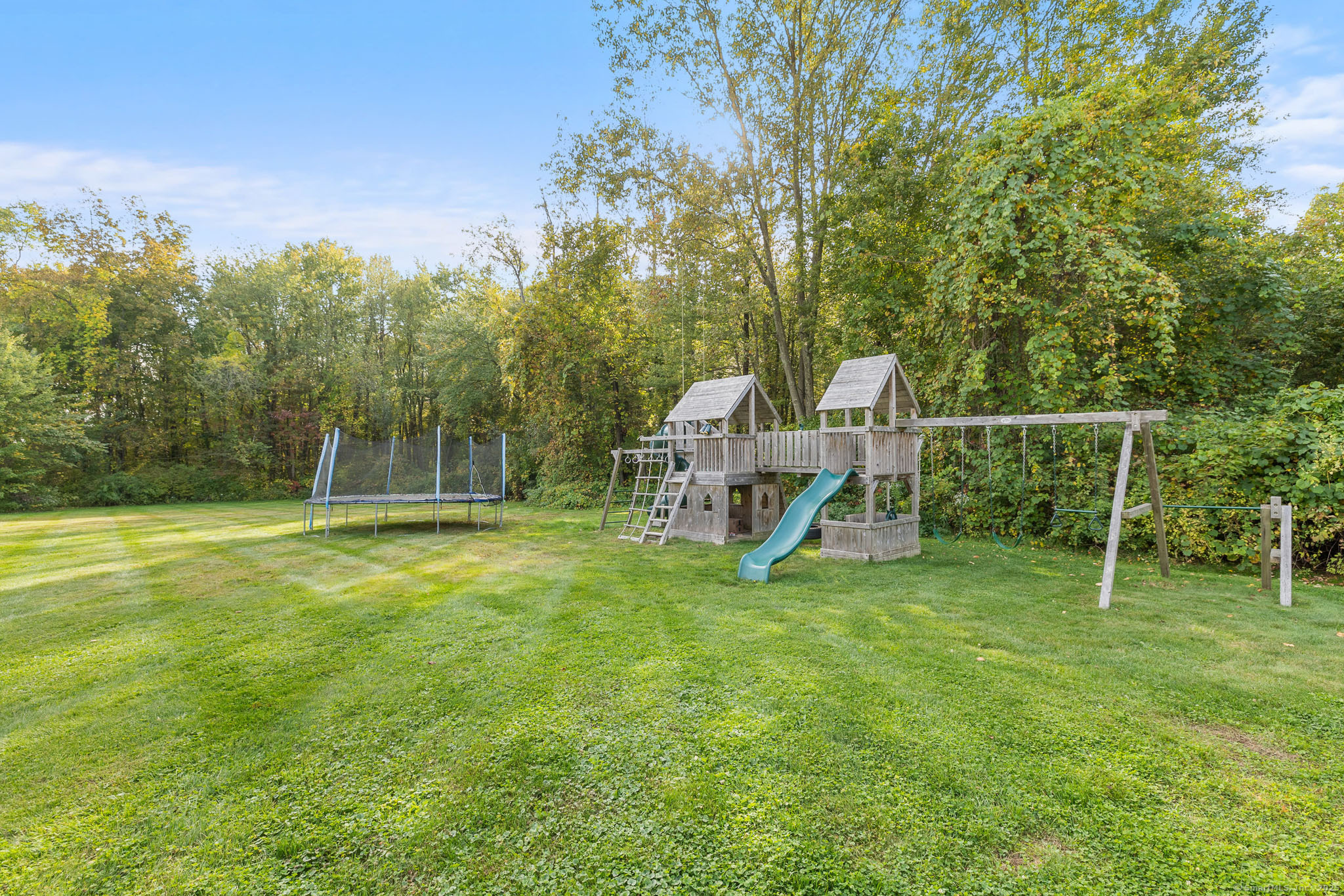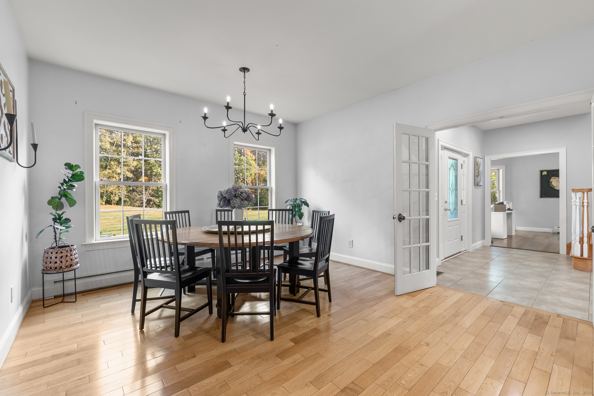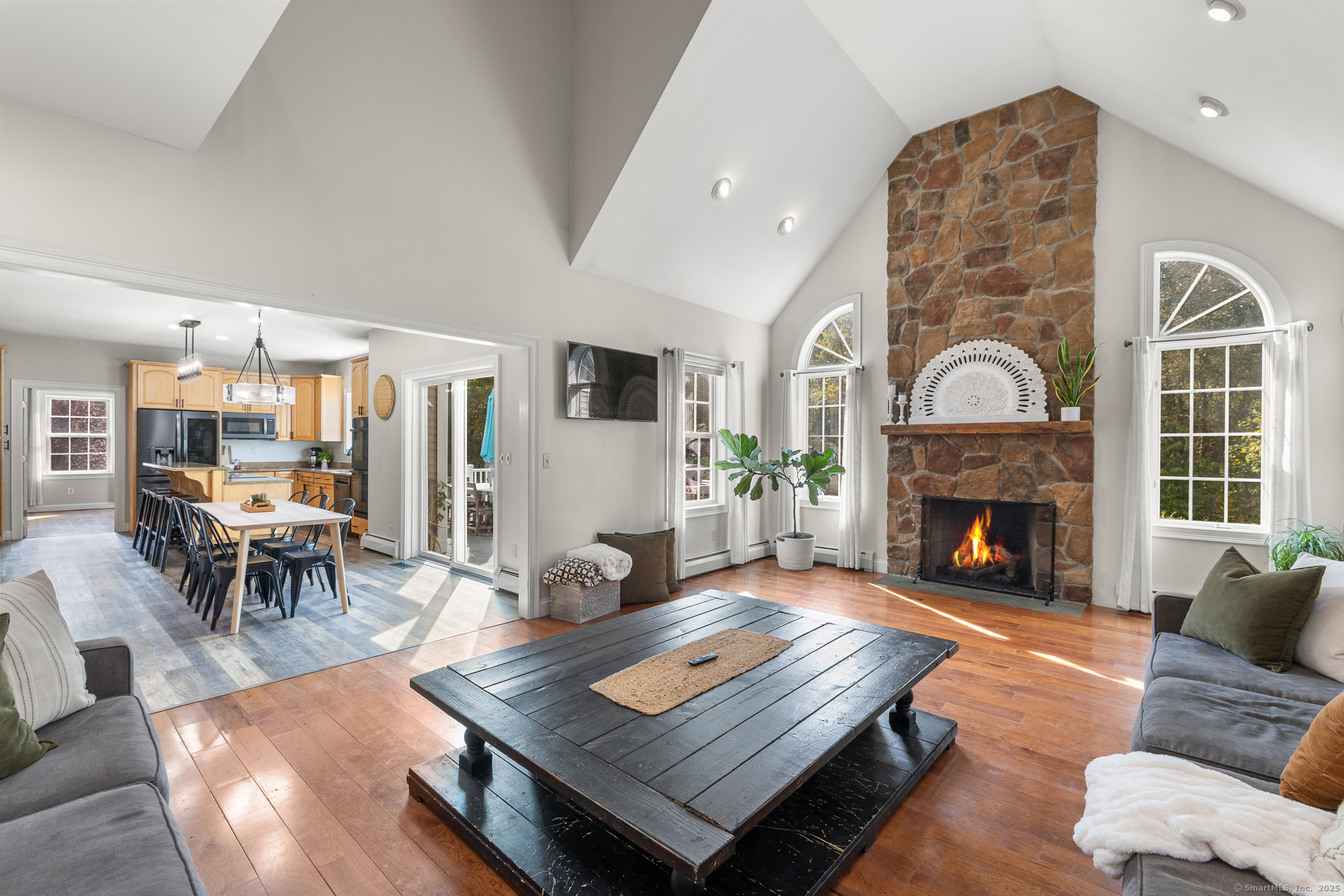 This stunning 5-bedroom Colonial is perfectly situated on more than 6 acres, offering true resort-style living. Open eat-in kitchen features granite countertops, center island with seating, all new stainless steel appliances, and a new slider to the deck. The impressive great room boasts a floor-to-ceiling stone fireplace, while the formal dining room includes a wet bar with granite counters and custom cabinetry. A cozy family room with a fireplace and hardwood floors throughout completes the inviting main level, along with a separate home office for today's lifestyle needs. Upstairs, the spacious primary suite offers a large walk-in closet and a luxurious bath with a deep jetted tub. Three additional bedrooms and a full bath complete the second floor. An exceptional in-law apartment is located over the garage with a private entrance, featuring its own bedroom, kitchen, living/dining area, and full bath. Additional office with private entry is attached to the oversized 3-bay garage, providing ideal space for remote work or a home business. Step outside to your own backyard oasis with a heated in-ground gunite pool (reblasted in 2024) with new pool heater, night lights, attached hot tub, perfect for entertaining day or night. The property also includes a 3-stall barn with tack area and a shed. Enjoy seasonal lake views, a firepit area, and a fully fenced space great for dogs or young kids. Huge open basement with tall ceilings Highest & best is due Monday October 13th at 4 PM