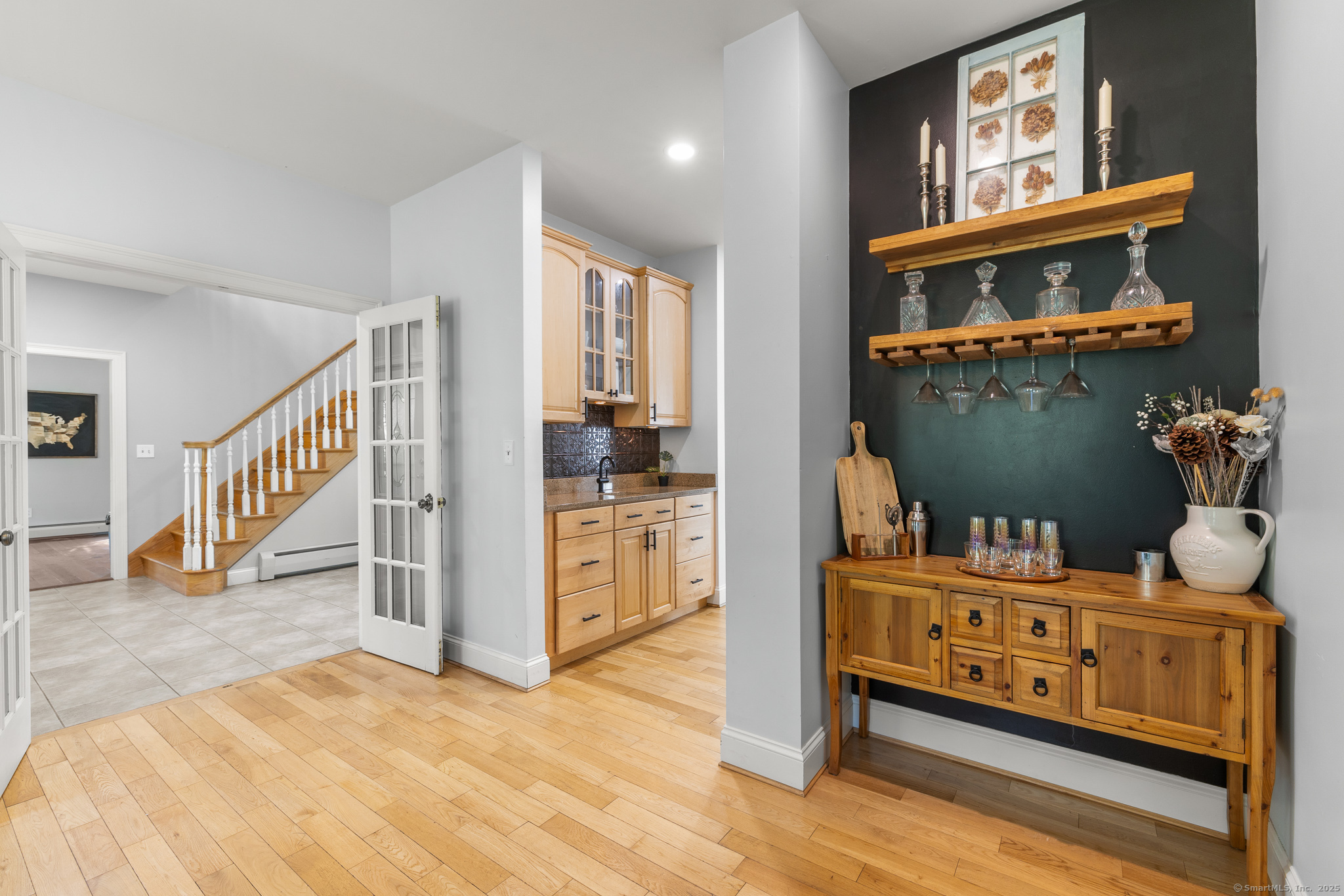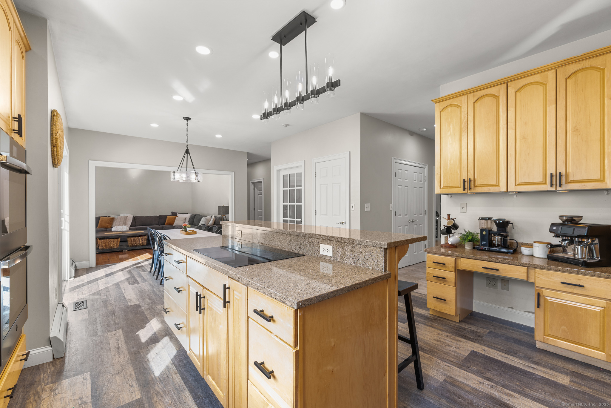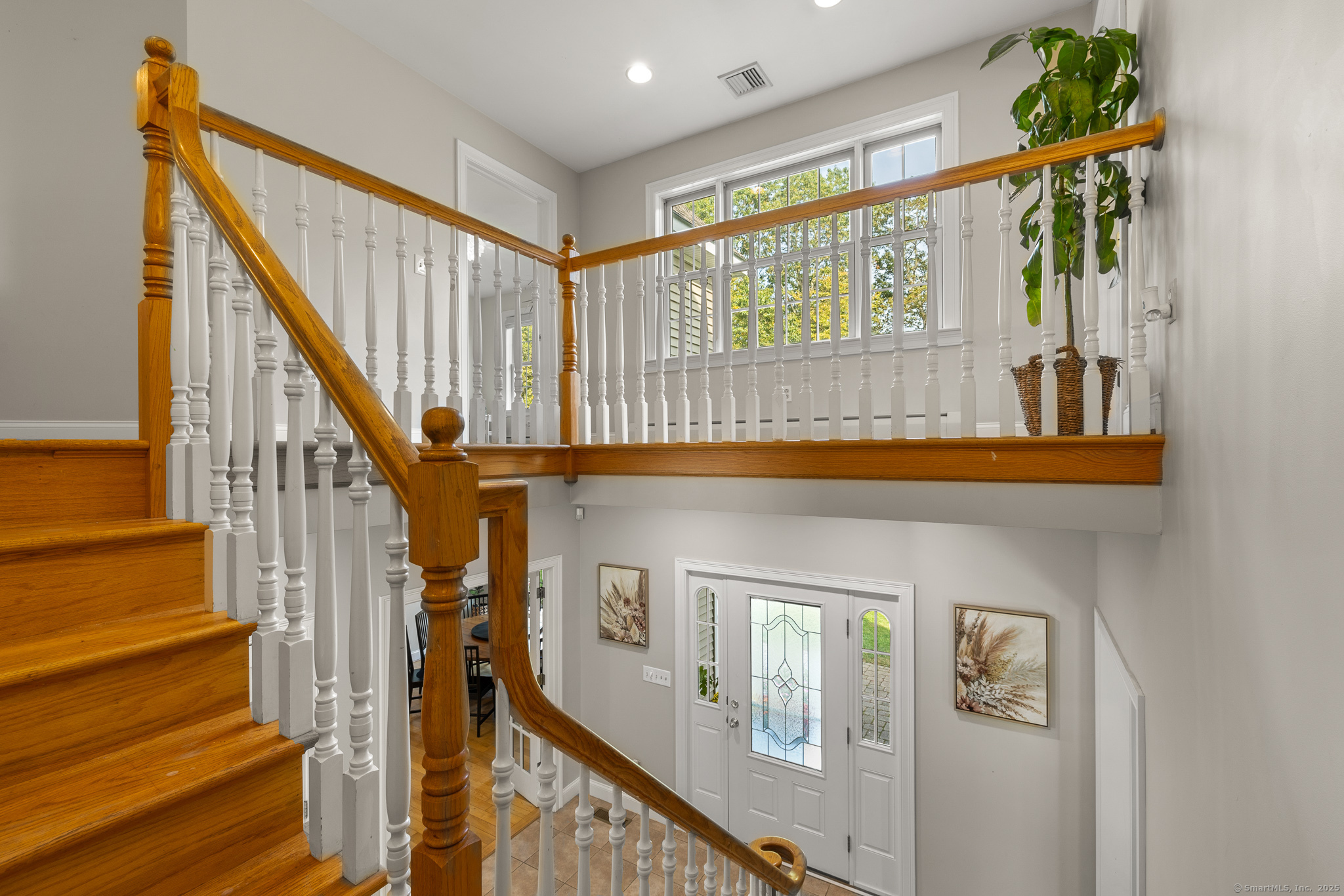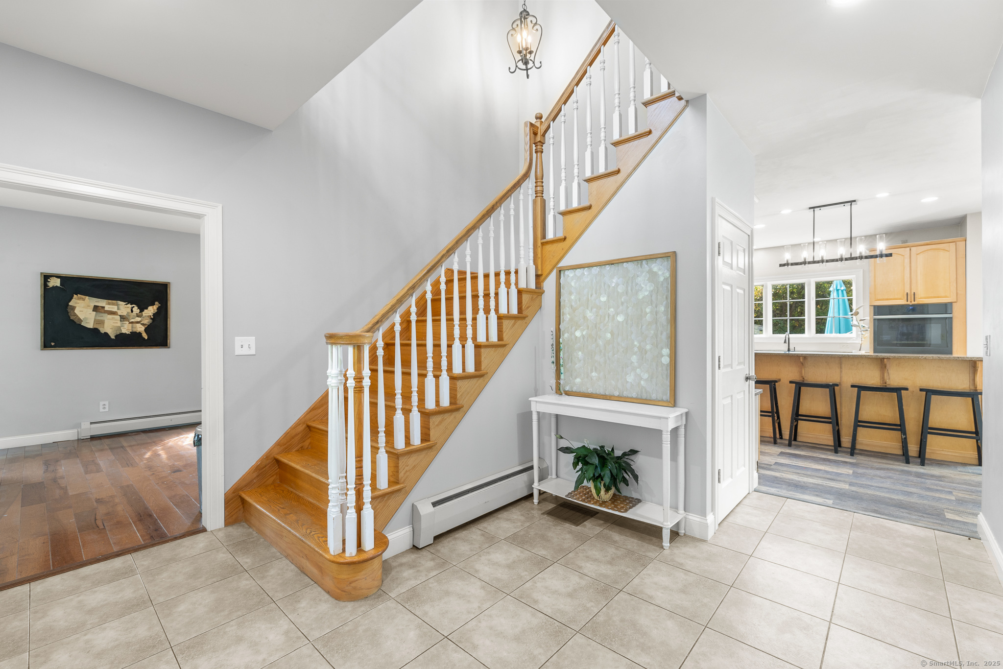 This stunning 5-bedroom Colonial is perfectly situated on more than 6 acres, offering true resort-style living. Open eat-in kitchen features granite countertops, center island with seating, all new stainless steel appliances, and a new slider to the deck. The impressive great room boasts a floor-to-ceiling stone fireplace, while the formal dining room includes a wet bar with granite counters and custom cabinetry. A cozy family room with a fireplace and hardwood floors throughout completes the inviting main level, along with a separate home office for today's lifestyle needs. Upstairs, the spacious primary suite offers a large walk-in closet and a luxurious bath with a deep jetted tub. Three additional bedrooms and a full bath complete the second floor. An exceptional in-law apartment is located over the garage with a private entrance, featuring its own bedroom, kitchen, living/dining area, and full bath. Additional office with private entry is attached to the oversized 3-bay garage, providing ideal space for remote work or a home business. Step outside to your own backyard oasis with a heated in-ground gunite pool (reblasted in 2024) with new pool heater, night lights, attached hot tub, perfect for entertaining day or night. The property also includes a 3-stall barn with tack area and a shed. Enjoy seasonal lake views, a firepit area, and a fully fenced space great for dogs or young kids. Huge open basement with tall ceilings Highest & best is due Monday October 13th at 4 PM