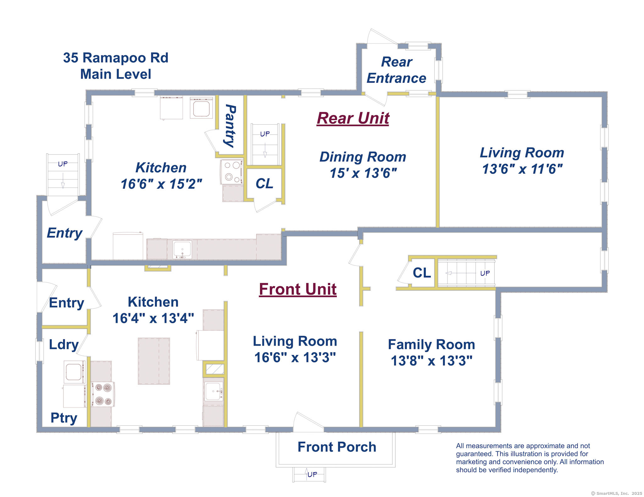Unique two-family home in the heart of Ridgefield! Whether you're an investor seeking reliable income, a home owner looking to offset expenses, or someone looking to create a multi generational living space, this property has it all. This well-maintained home sits proudly on a desirable corner lot just steps from all the amenities of town living. The front unit offers a spacious, light-filled kitchen with a center island for casual seating, an open living/dining area, and a cozy family room. Upstairs are three large bedrooms and a full bath. This unit includes a front porch and a separate laundry room. The rear unit, with a private entrance, has newly refinished hardwood floors, a large eat-in kitchen and a dining/living room combination. Upstairs, there are three bedrooms, a full bath, and a fourth bedroom that can double as a home office. Both units are equipped with their own washer & dryer, have separate electric service, and individual oil tanks for efficiency. The rooms are large and both sides have lots of light and windows. The attic and cellar span the full size of the house and are full height. Town water and sewer! Discover the possibilities this home has to offer including converting it to a spectacular, in town, single family home!