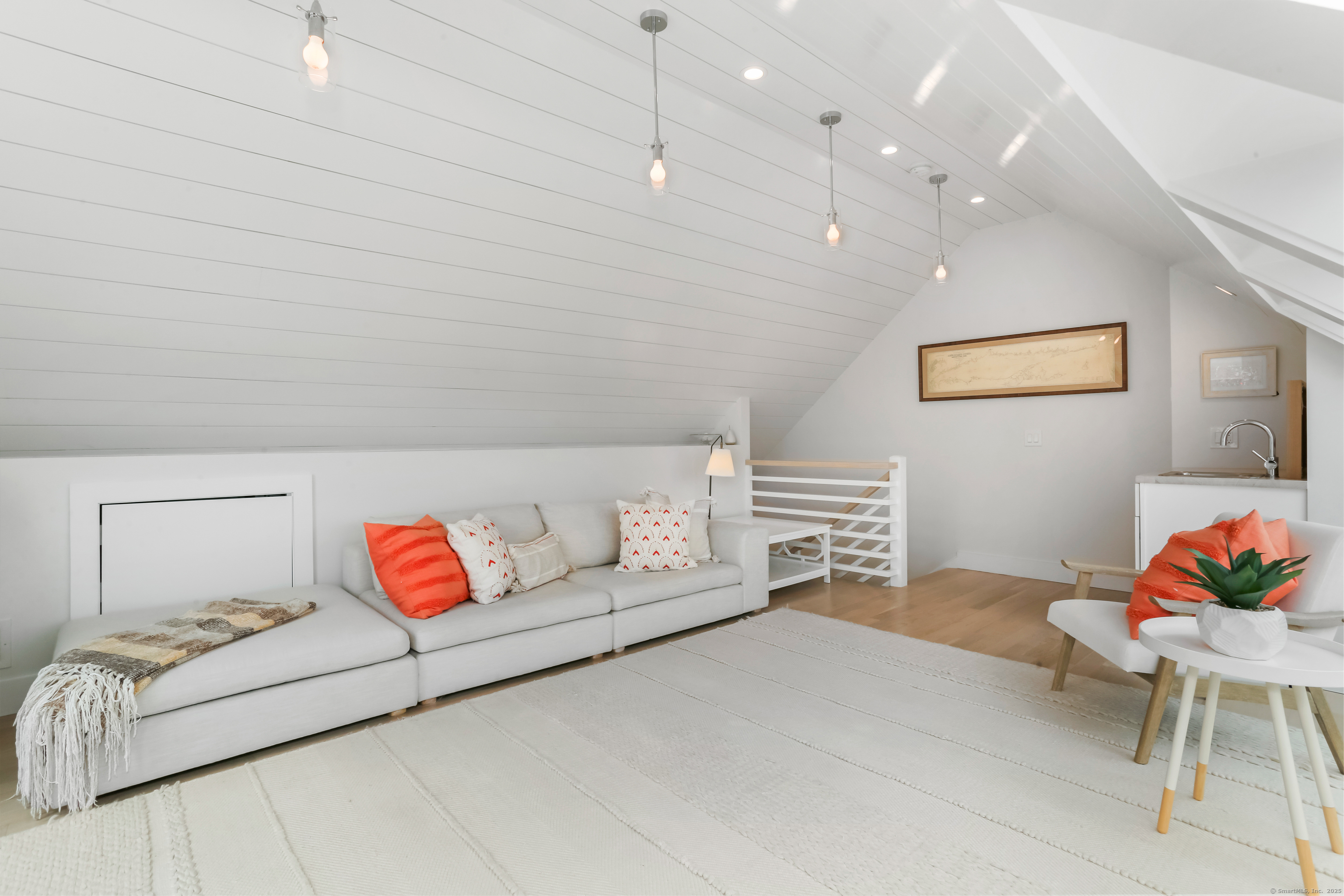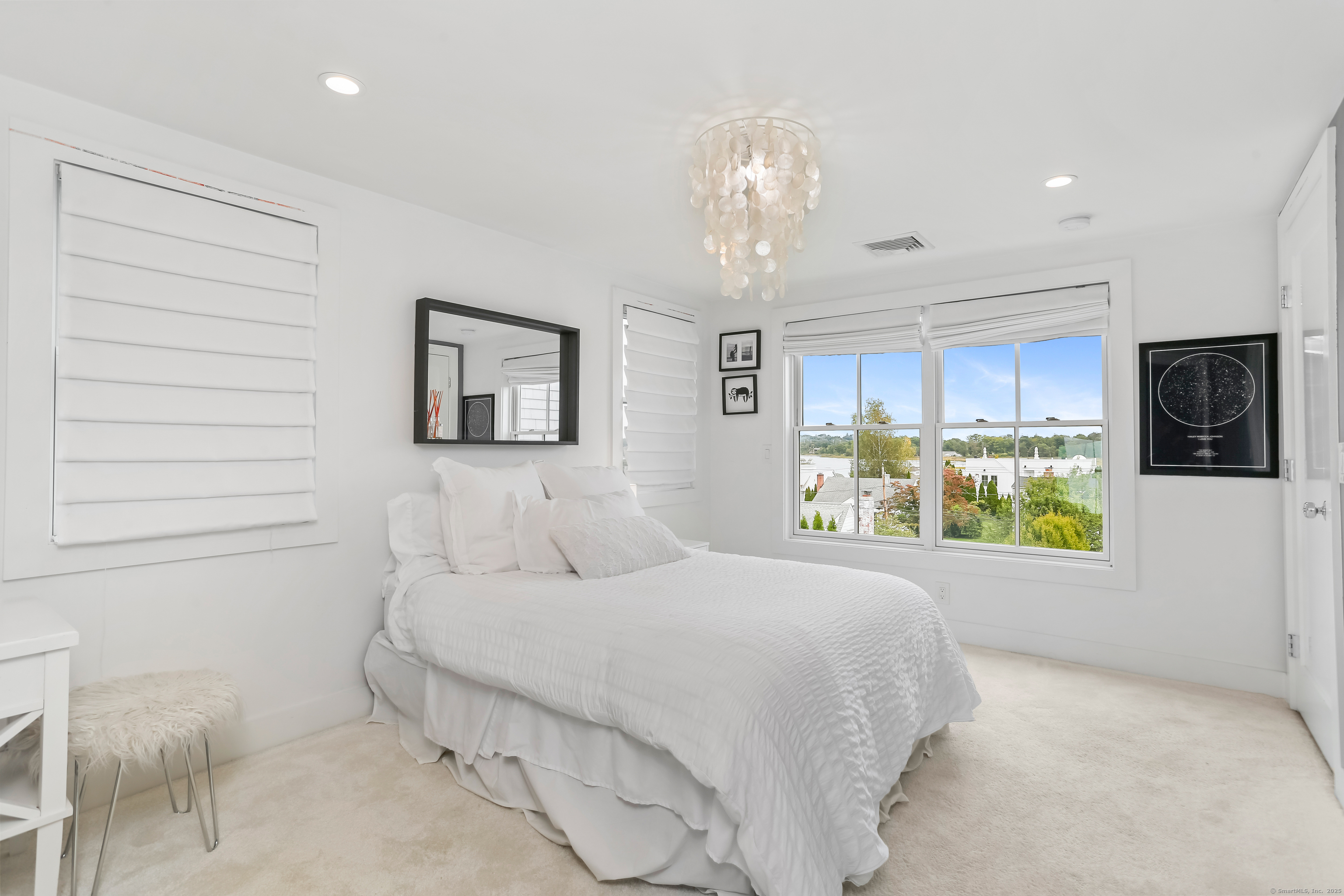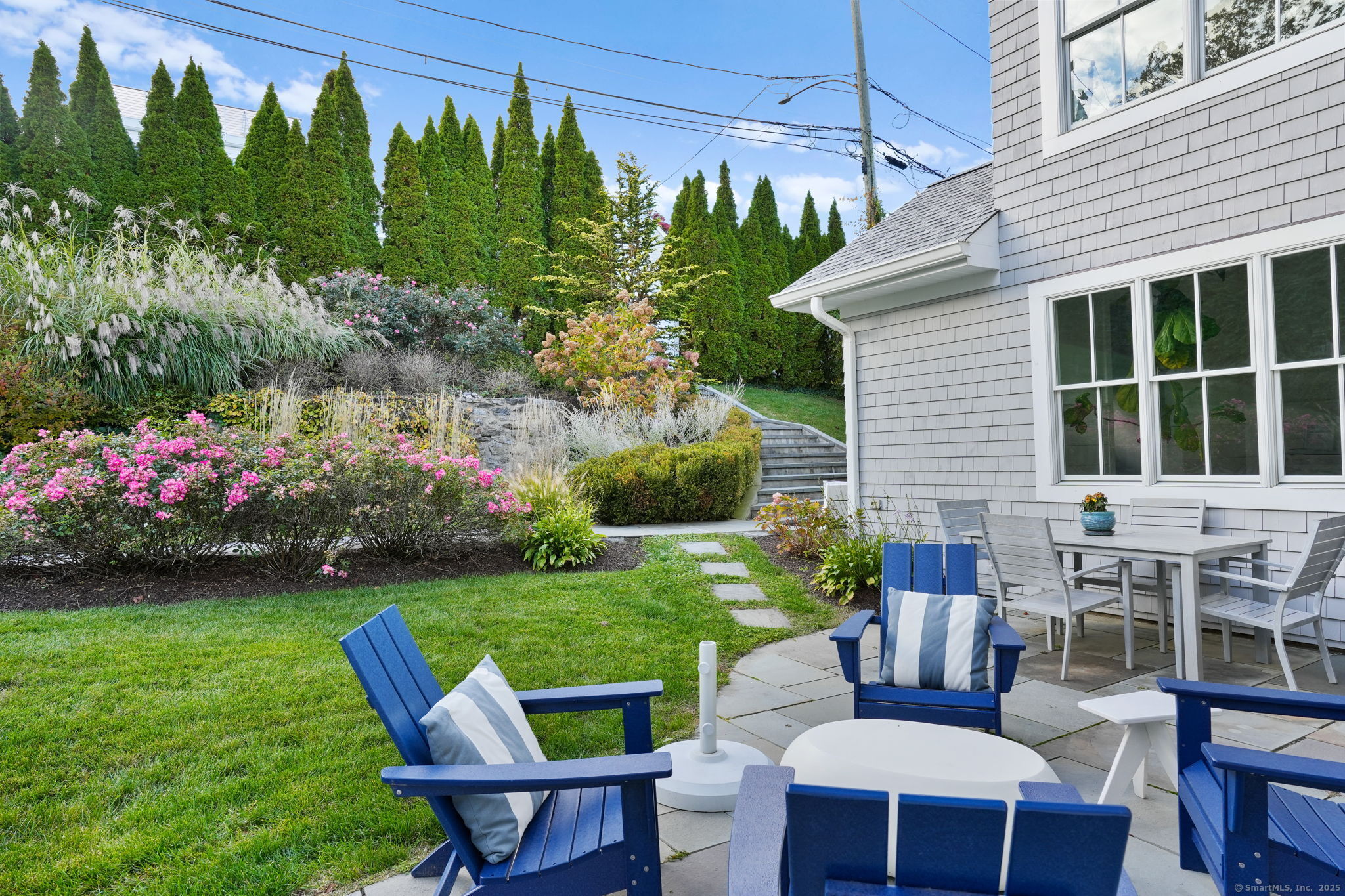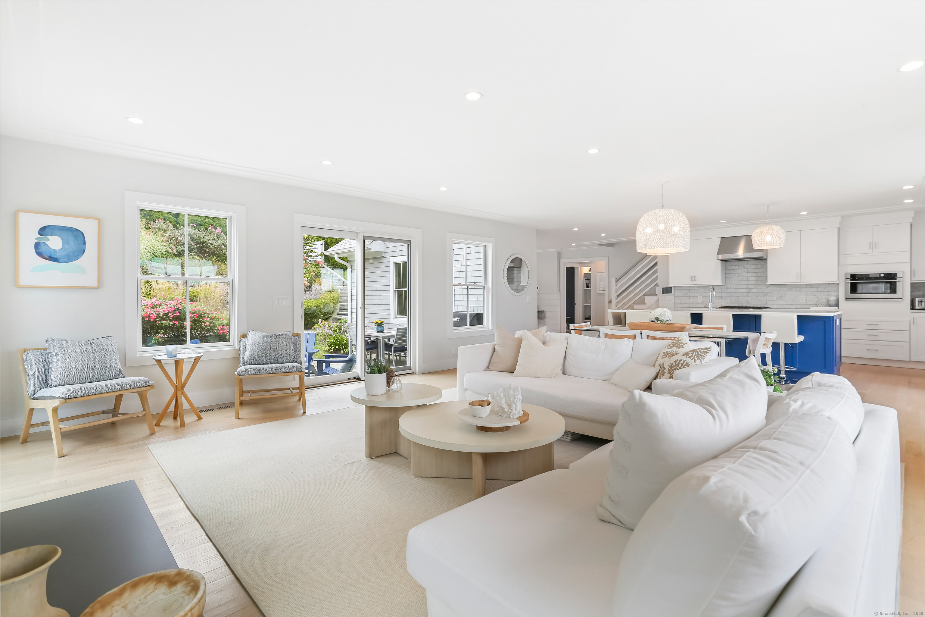 Nestled in privacy by nearly 100 arborvitaes, this ultimate retreat on a rare double lot is just steps from Old Mill Beach & Compo Beach. The home distinguishes itself by offering water views from nearly every room & from the expansive decks located on multiple levels. Fully remodeled & expanded in 2018, this thoughtfully designed home features oversized windows to enjoy spectacular sunrises & sunsets throughout the year. The sleek, modern kitchen seamlessly transitions into the dining & living areas, creating an ideal space for entertaining. The primary suite features a luxurious bathroom, walk-in closet, stylish dressing area & inviting fireplace. A finished third floor adds valuable living & entertaining space with modern glass doors opening to a rooftop terrace & outdoor fireplace. The versatile lower level can serve as recreational space or as a private guest suite. Enjoy al fresco dining on the bluestone patio adjacent to the colorful gardens. Easy access to golf, tennis and boating at Longshore, just a short stroll away.