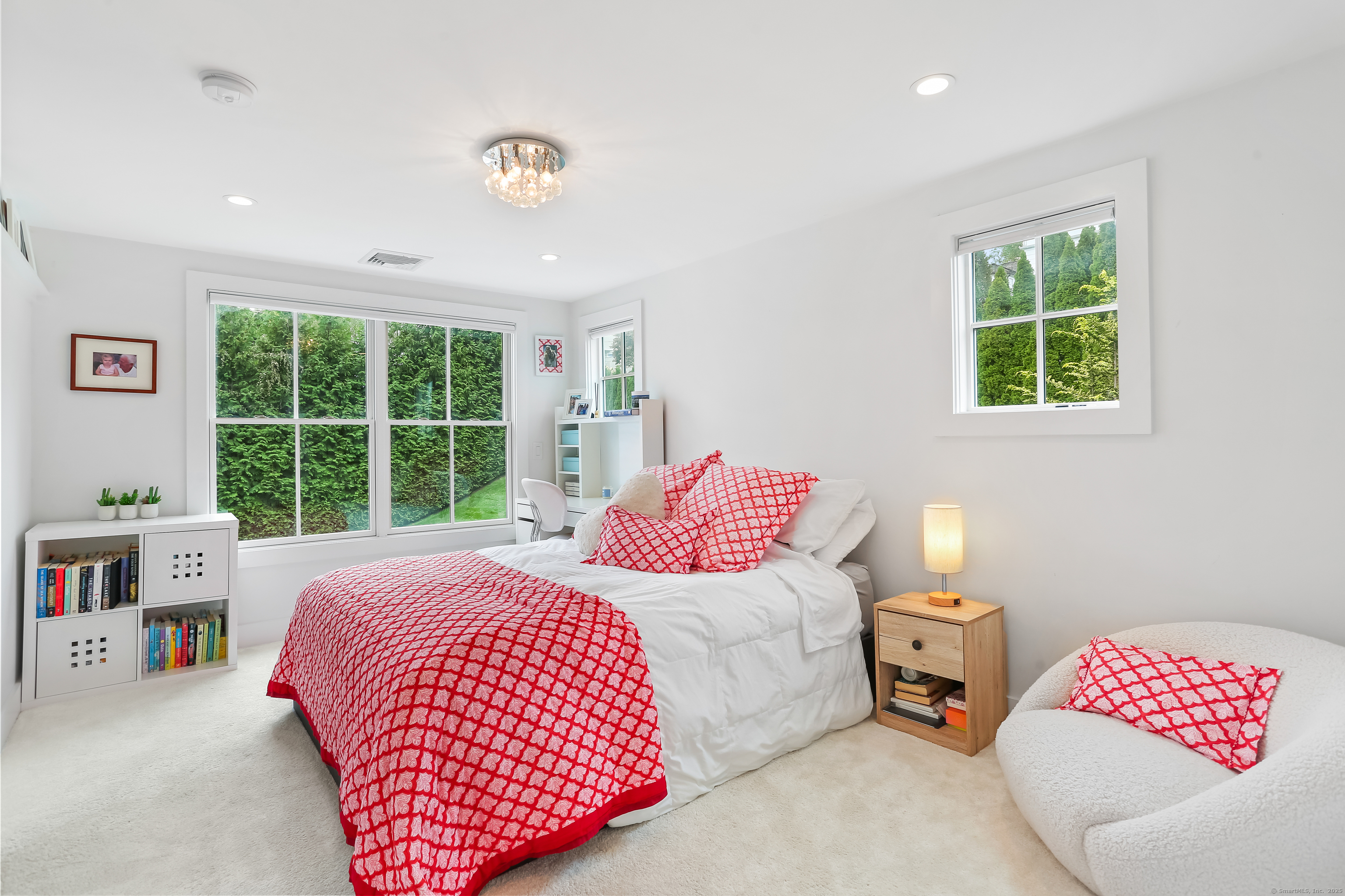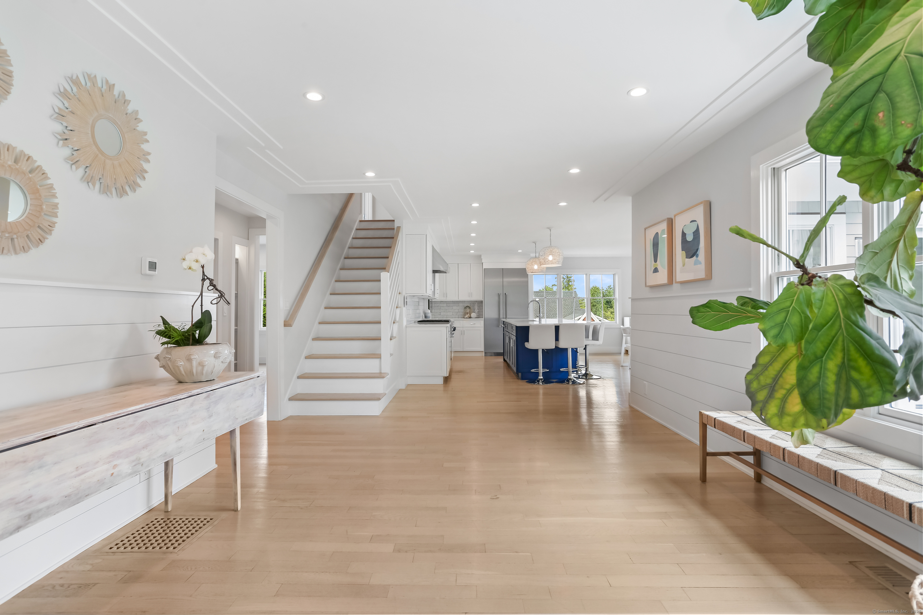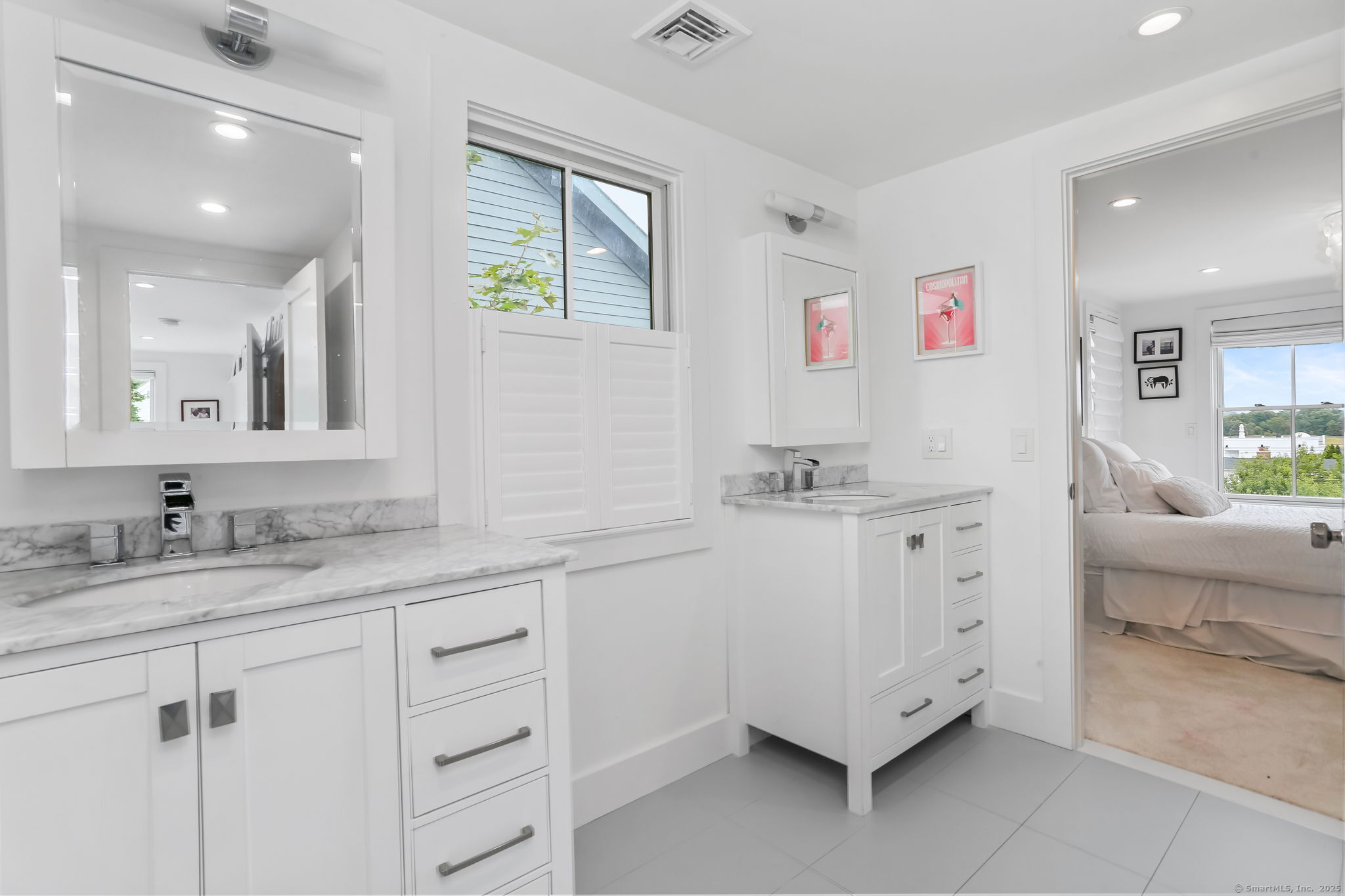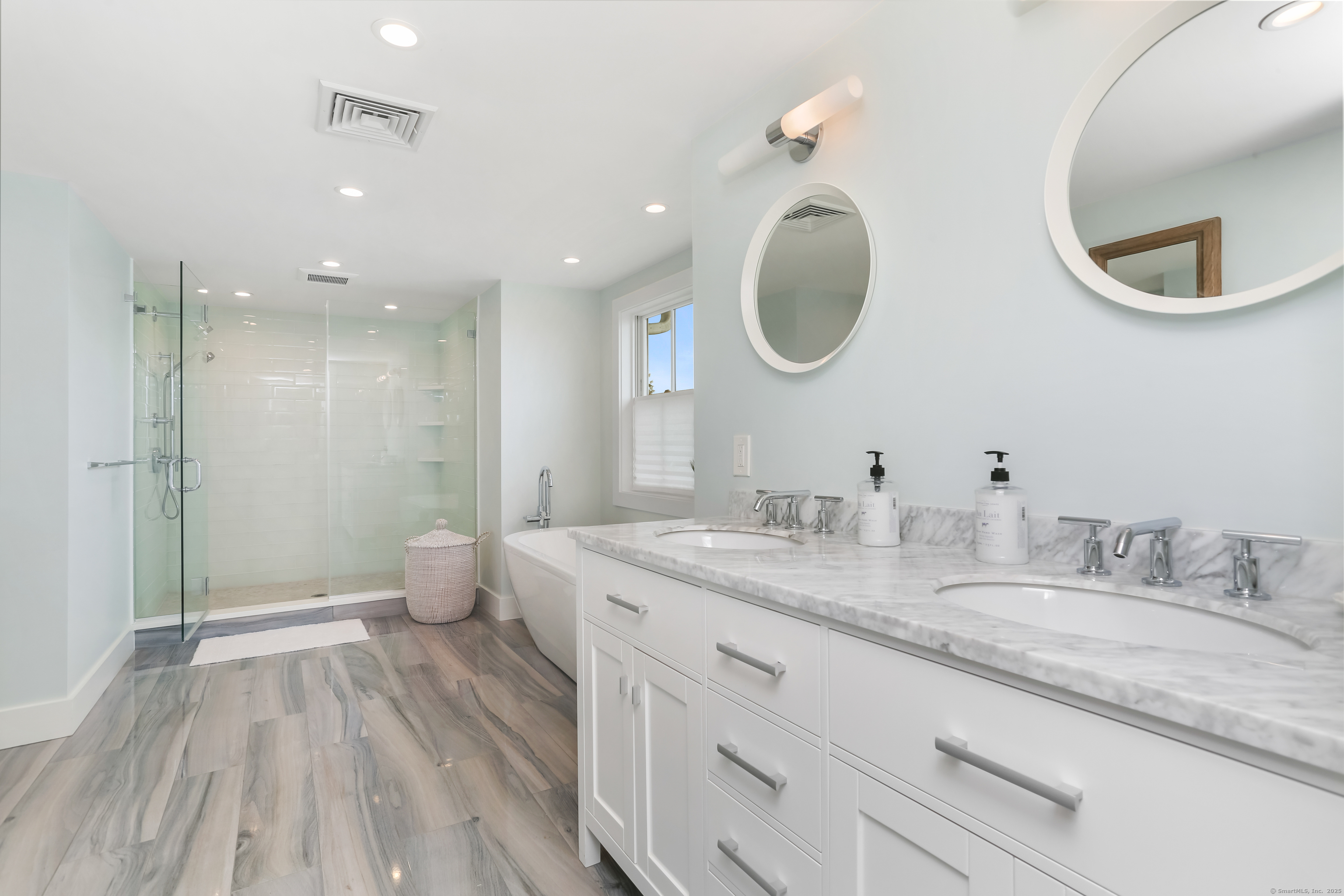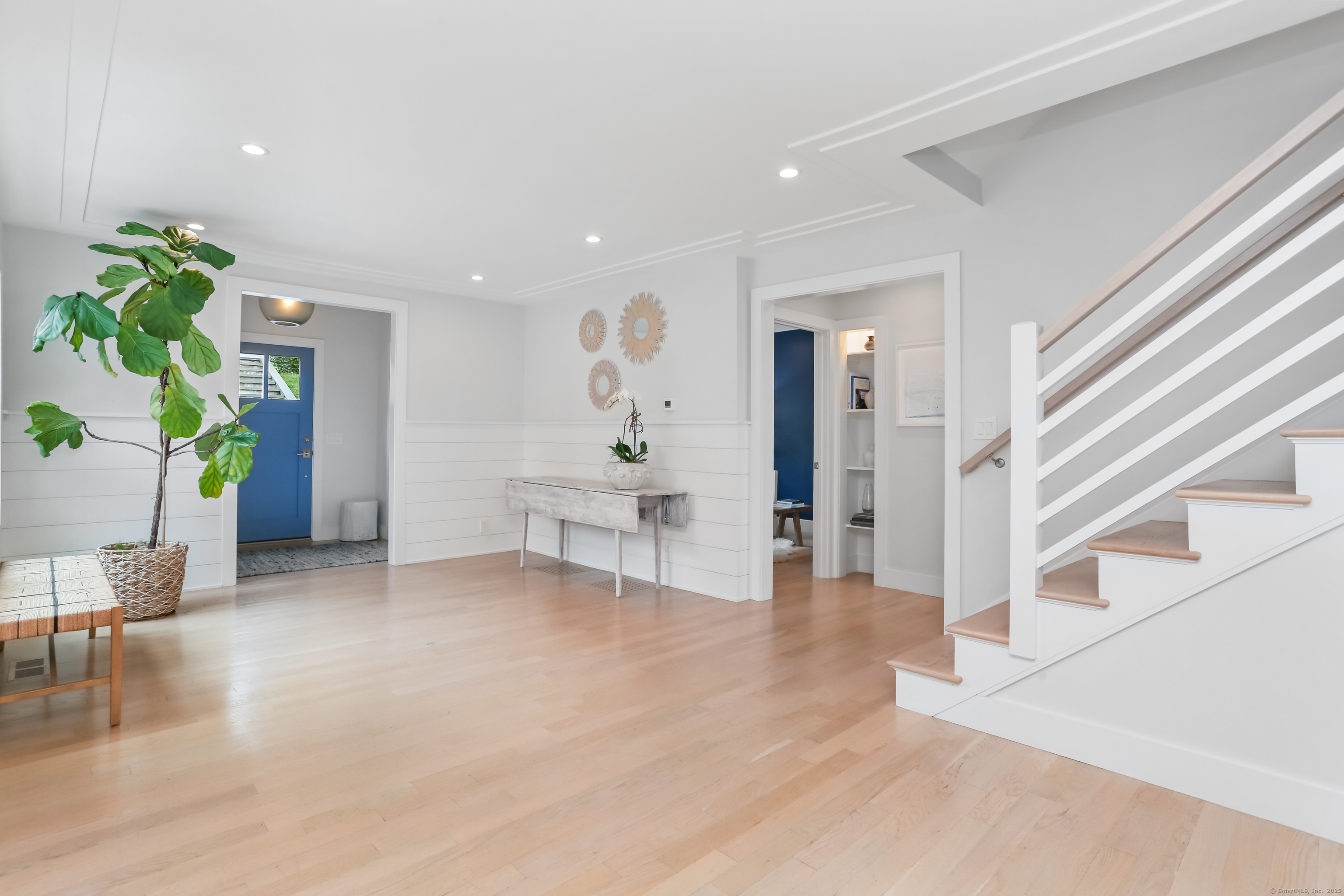 Nestled in privacy by nearly 100 arborvitaes, this ultimate retreat on a rare double lot is just steps from Old Mill Beach & Compo Beach. The home distinguishes itself by offering water views from nearly every room & from the expansive decks located on multiple levels. Fully remodeled & expanded in 2018, this thoughtfully designed home features oversized windows to enjoy spectacular sunrises & sunsets throughout the year. The sleek, modern kitchen seamlessly transitions into the dining & living areas, creating an ideal space for entertaining. The primary suite features a luxurious bathroom, walk-in closet, stylish dressing area & inviting fireplace. A finished third floor adds valuable living & entertaining space with modern glass doors opening to a rooftop terrace & outdoor fireplace. The versatile lower level can serve as recreational space or as a private guest suite. Enjoy al fresco dining on the bluestone patio adjacent to the colorful gardens. Easy access to golf, tennis and boating at Longshore, just a short stroll away.